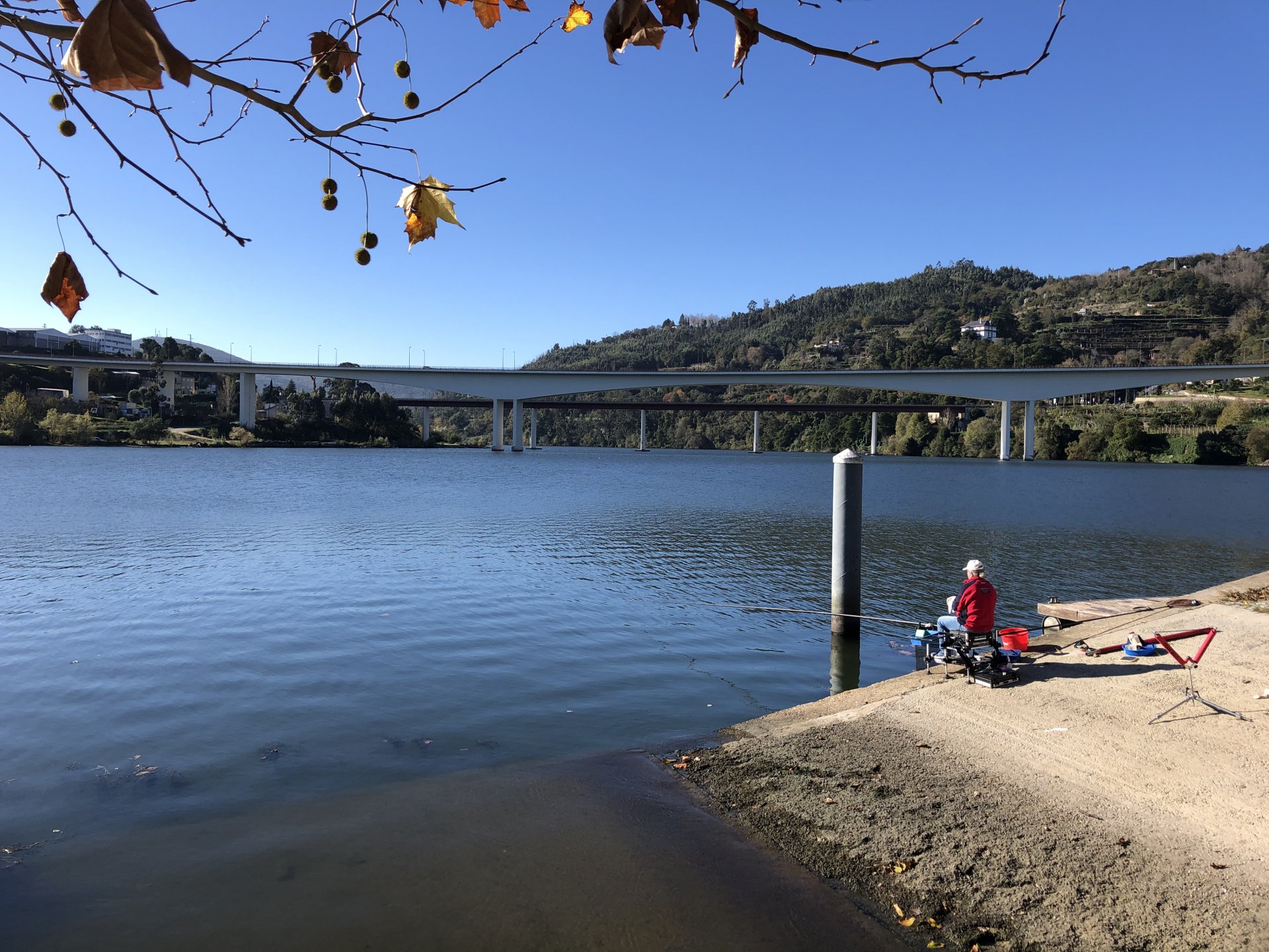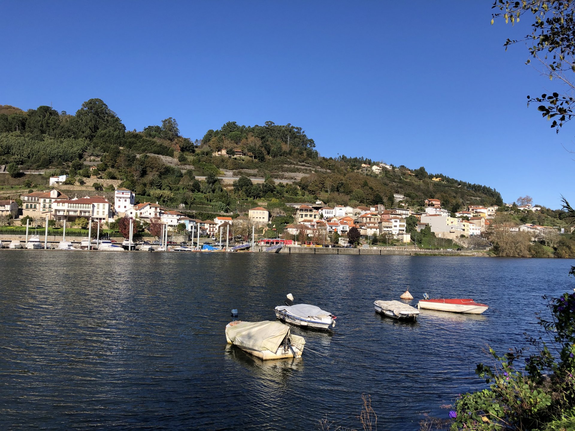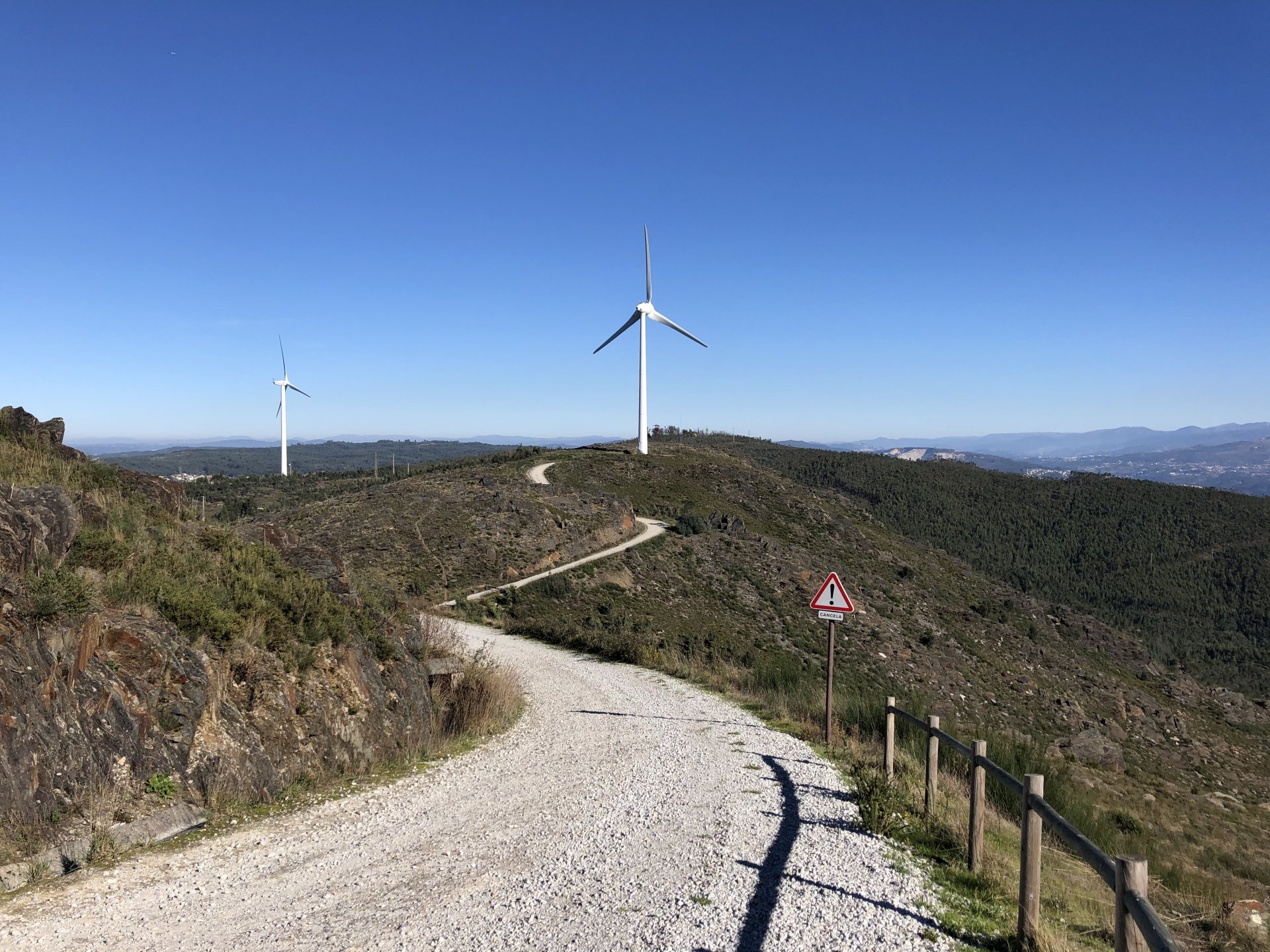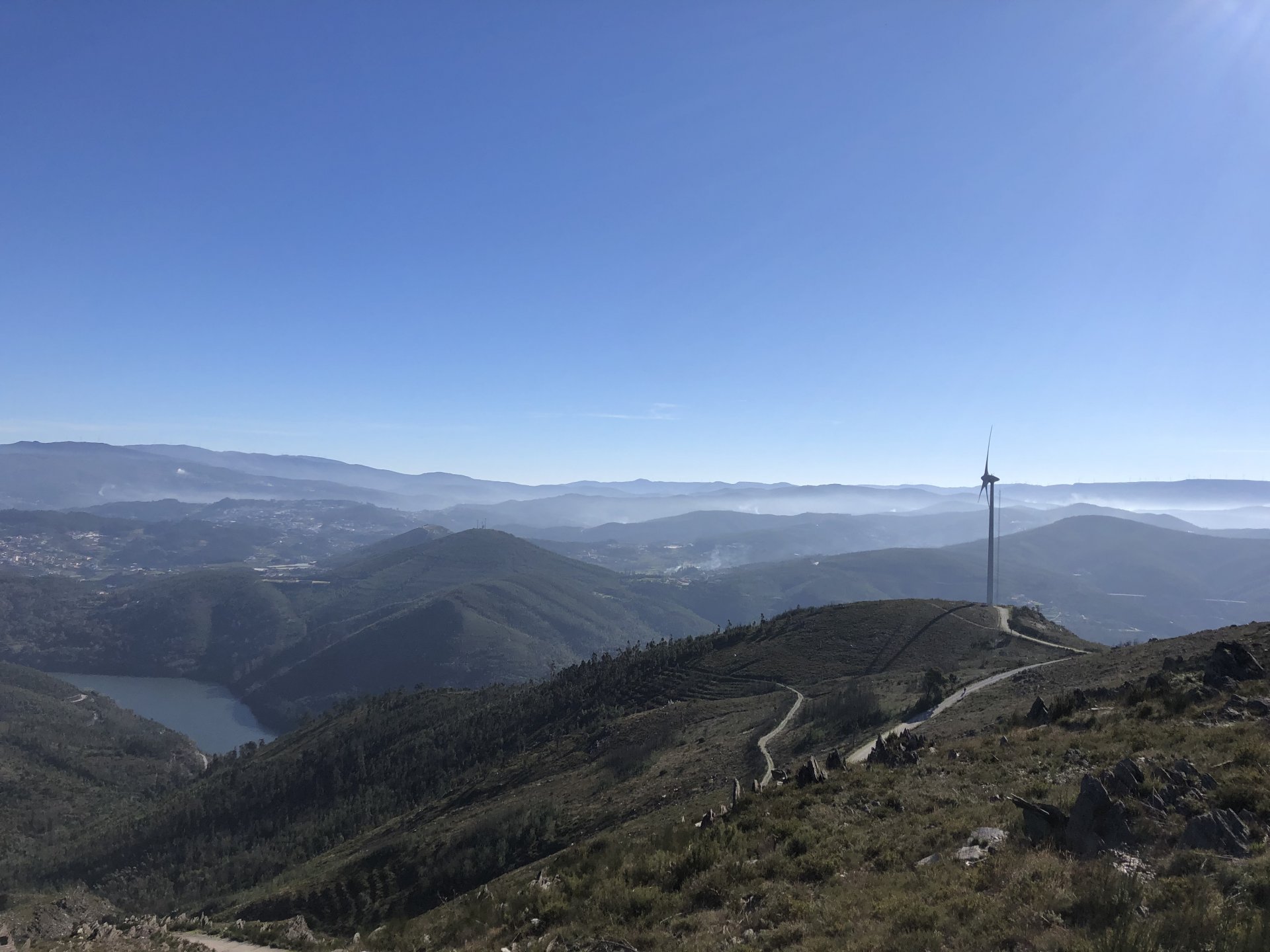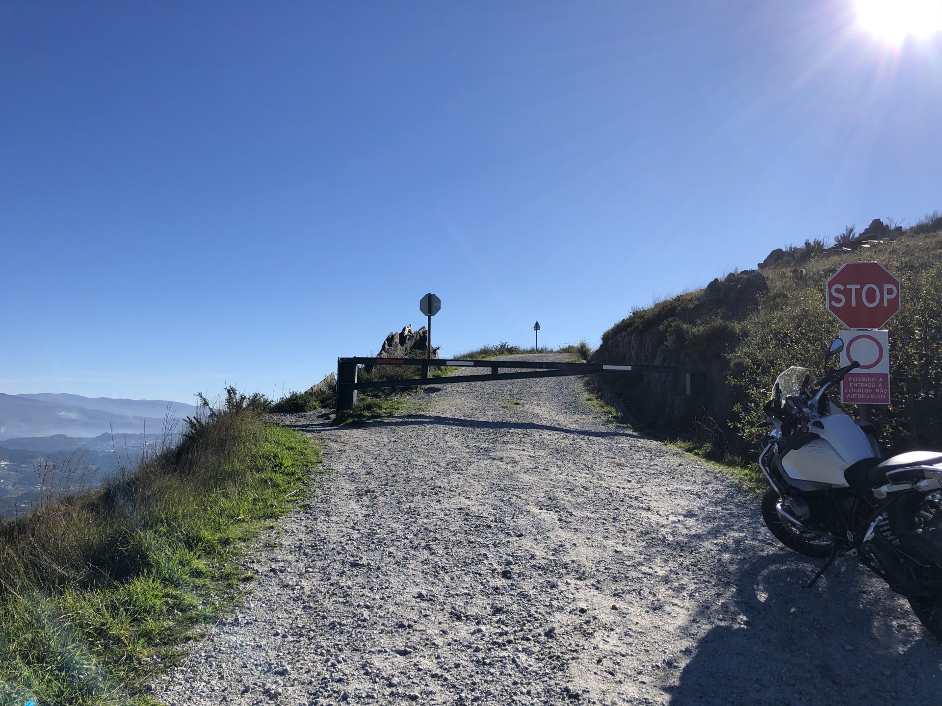 Waking up took me a while, I planned on a long ride but ended up only left the house by 10, that doesn't give a lot of time before the lockdown at 13, so I just went to the Douro, and had a cup of coffee there. I don't spend many weekends here, but this is where a lot of bikers come for a short weekend morning ride, they meet up at the marina's cafe before riding back, it's only about 25 or 30km to Porto via a twisty road. This is a cool road they ride but on weekends it's just too much lazy traffic, too many bikes too. I chose to keep to a smaller cafe with almost nobody there instead of joining the mob, social distancing comes very natural to my reserved ways. On the other side of that river, right to the red cafe is where all the bikes are, maybe you can see them if you're able to zoom in. They were making themselves heard from this side as everyone that arrived seemed to have a stuck throttle Going back I avoided the busy road, but my plan was to explore a "Serra" that I had been curious about for some time, Serra da Boneca was my stop on the way back home. The dirt roads getting to the more scenic spots were all closed, I don't really know why, I expected the road to get a lot steeper so I walked the last 100 or 200 meters. Turns out the steeper bit was exactly where they put the gate, which isn't cool . It was quite windy up there, quite nippy too, but the views were nice. Got back home in time to buy some bread before the lockdown. Gave the bike a wipe before lunch, meant to wash it properly but I don't like washing it without being able to ride it warm and dry after, this bike hides water poodled inside like it's magic.2 points