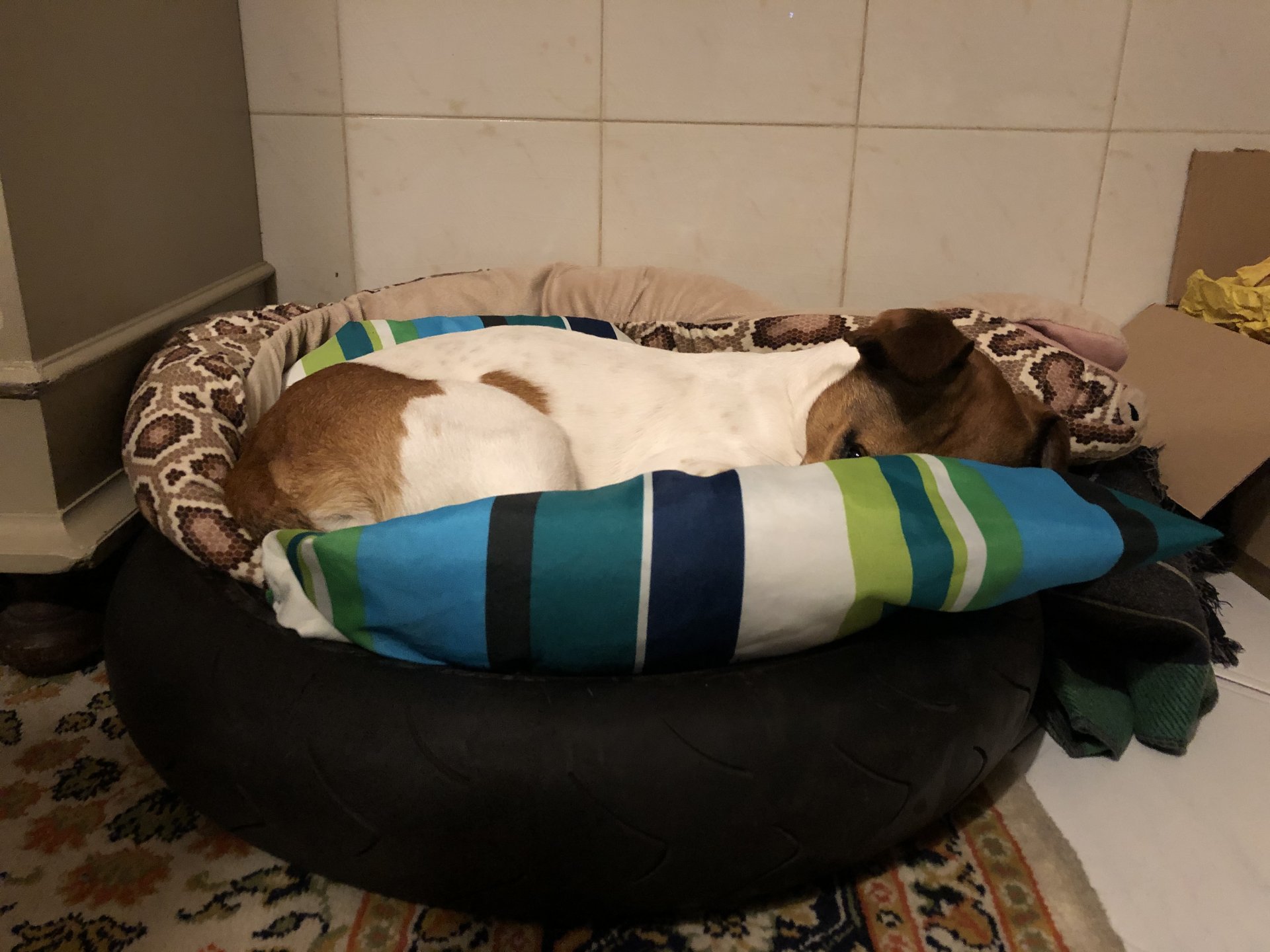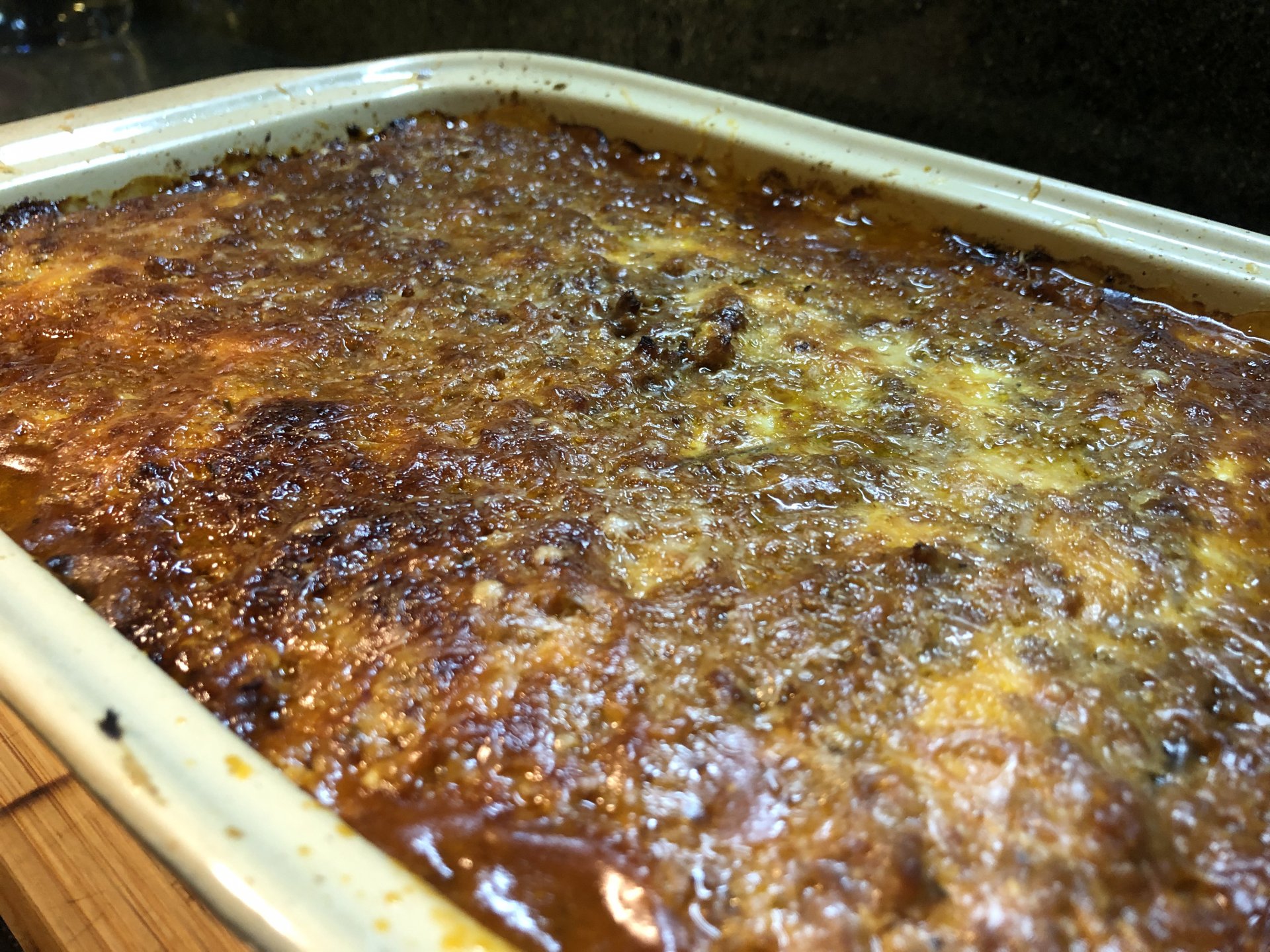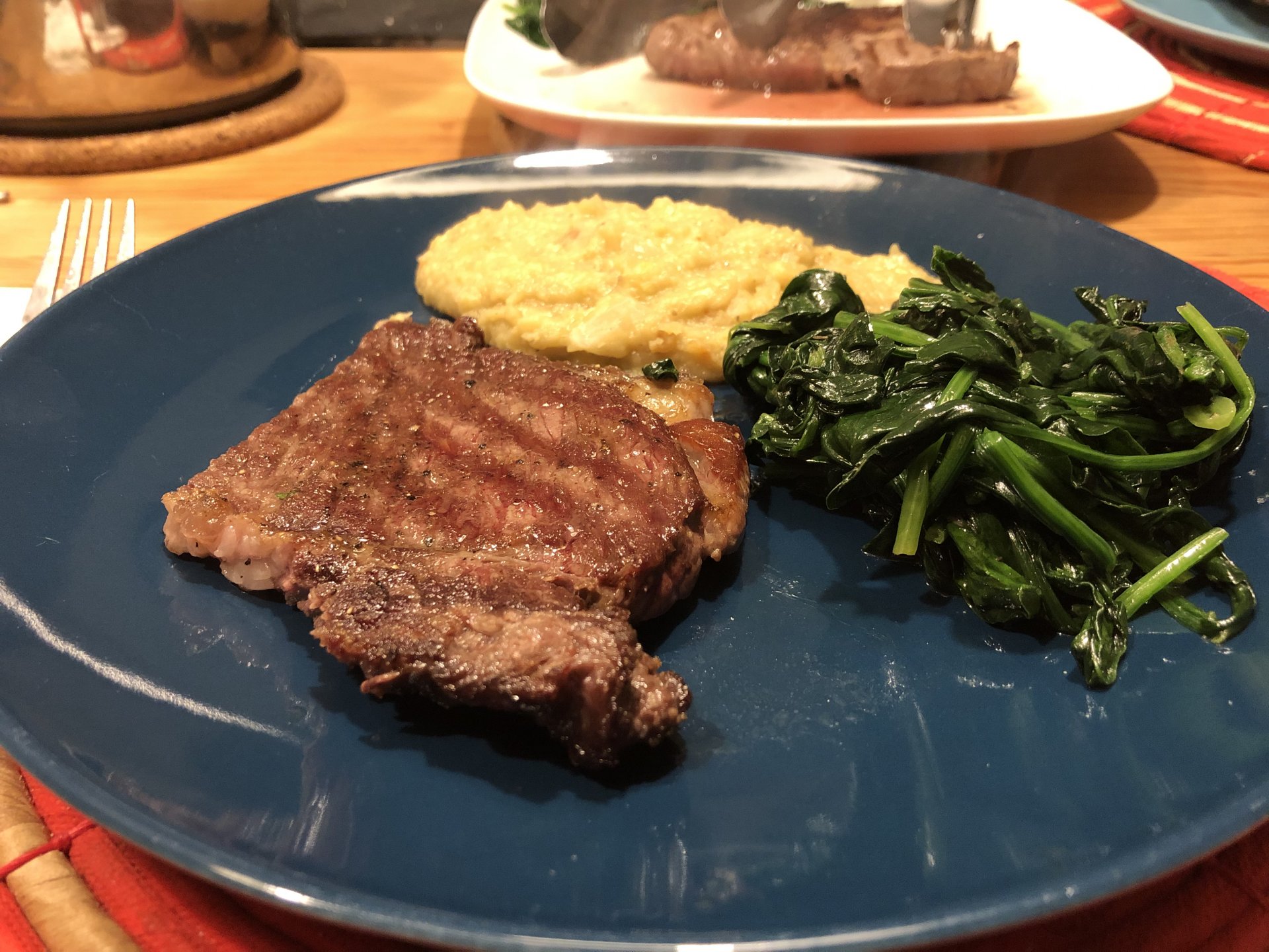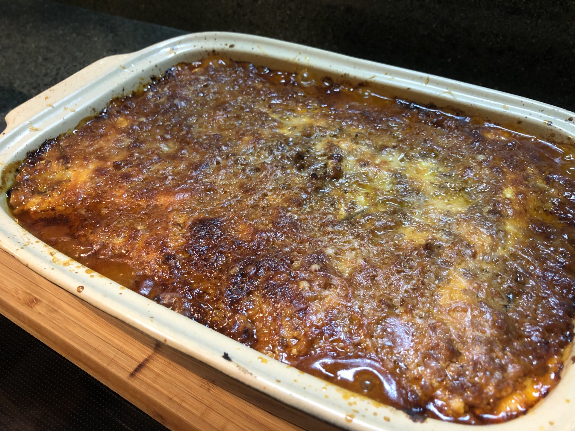 Perfecting my eggplant lasagna: No cooking, just a healthy lunch with some cheese for taste: Sofia's rib, spinach and dahl: Again, Sofia's amazing oven roasted aubergine and pepper dip, some cured ham, cherry tomatoes, and goat's cheese for lunch. An entree of cured black pig, some bread and local wine, simple flavours in my untamable garden My spicy onions and canned sardines dish with leftover dahl, a nice mix: Spaghetti and portobello mushrooms: Costa, watching me have some olives and white wine. Not looking too pleased but he had just finished his own dinner.2 points
