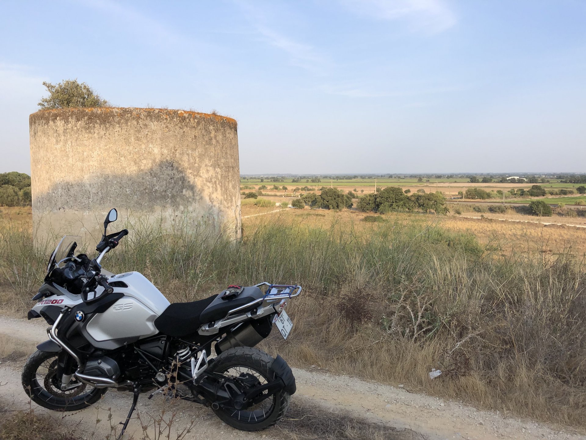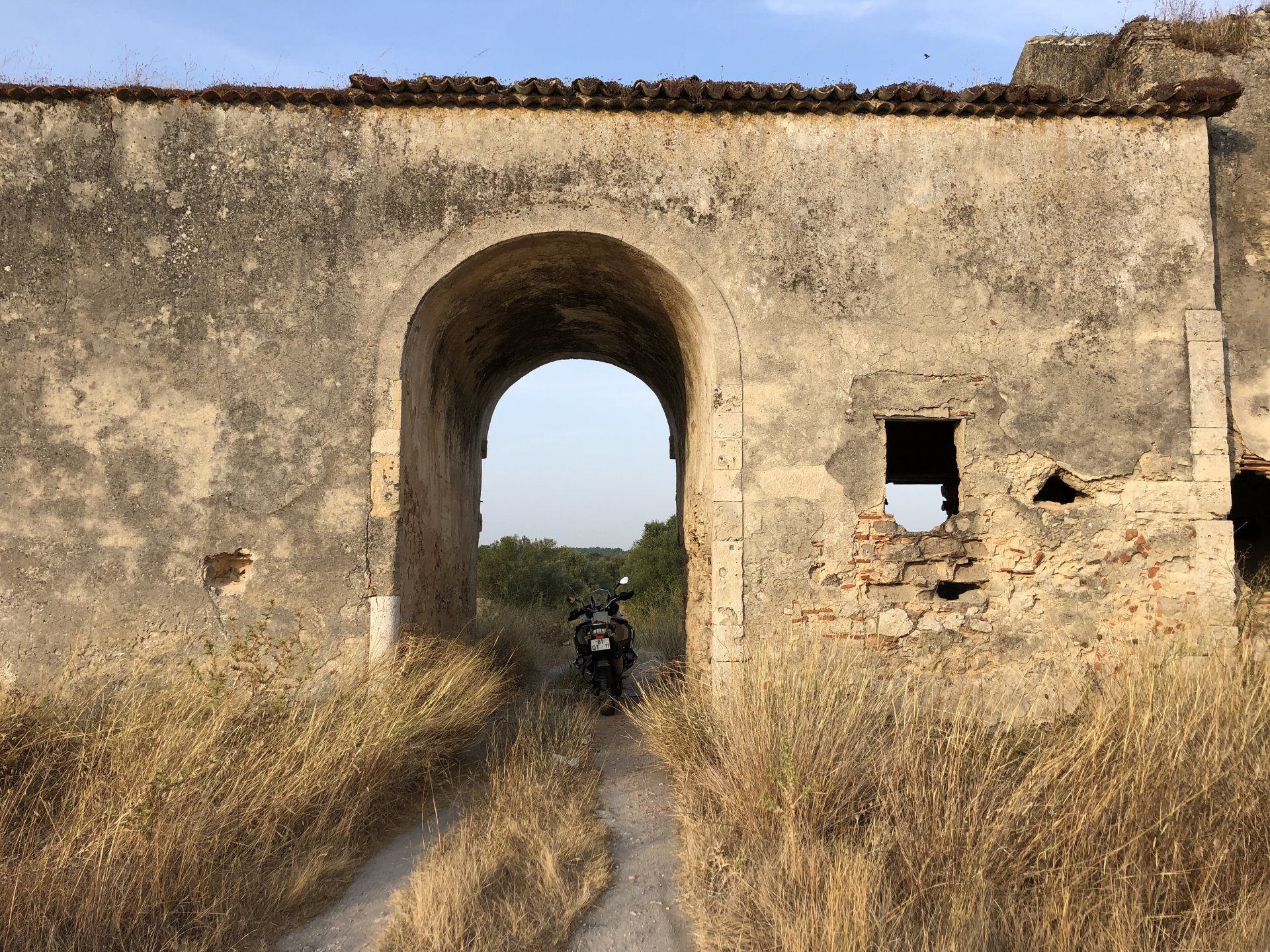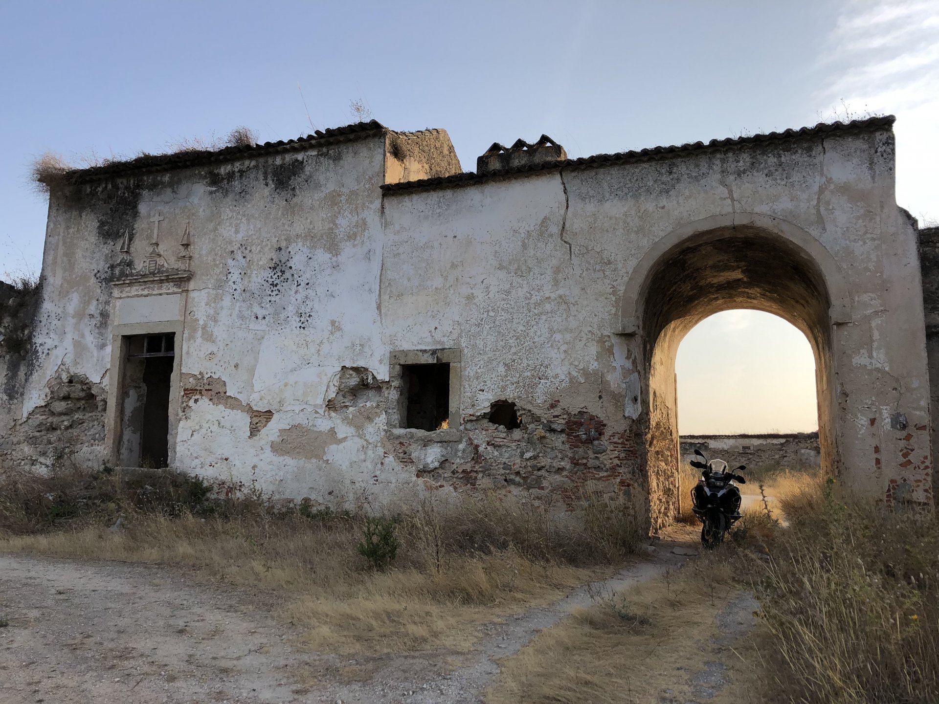 Had a nice ride today, but didn't stop for pictures at all. The roads were the same old ones and the ones I hadn't posted before weren't very interesting. Anyway, getting home I stopped by an abandoned place with a scenic view to take pictures for you guys. Being an abandoned building I could ride into I figured it would appeal to the resident guy in search of old stuff. It's right on the edge of town where my place is, a few meters away from the road on a lovely dirt road that then leads into a forest. This is "Quinta da Marquesa", meaning the "Marchioness' Farm". It was built in the late 1500s or early 1600s and passed on by really very wealthy families, the Portugal's elite used to visit for hunting. As a lot of old and historic buildings and industry in Portugal, it ended up being wasted after the revolution on 25th April 1974, communists took over and tried to subvert it's workers to only ended up with translates in the testimonies as a "strong ass whooping" Legend says there are hidden passages and treasure hidden around the place... This picture is worthless, but over the door to the chapel there is a statement you can't read here, it translates from old Portuguese to something like: "D. Isabel de Castro, daughter of Fernão Teles, entails this estate of the Mascarenhas in the year of 1618 with the obligation of paying 30000 kings: 25000kings to a daily mass in Alcácer do Sal, 3000 for factory, and 2000kings for the goodwill of Alcácer, to be administered by the chapel: 18th June, 1621" Don't really know how to explain most of it but Castro, Teles, Mascarenhas, these are names of some of the richest and most powerful families of the old times, and the names of later owners continue to be impressive. Into the remains of the chapel: And outside Graffiti and a sad looking sofa in the only "Deliverance" room, for @XTreme´s delection This is all quite sad, a country should take care of it's historic buildings a lot better than this, real history went down here for centuries, now left to crumble apart. The "Mascarenhas", I think the first family that owned it, for example, used to rule Portuguese India. I took these pictures at around 8PM, and the light was getting pretty, so the GS posed a little on the surrounding trails before going home. First with the farm land in the background: And then just looking for a pretty picture: Heading home, I stopped by a place with a vantage point over the farm so you can see where it stands amongst the surrounding area. You can spot it in the left third of the picture, above the green dumpster for reference:8 points
