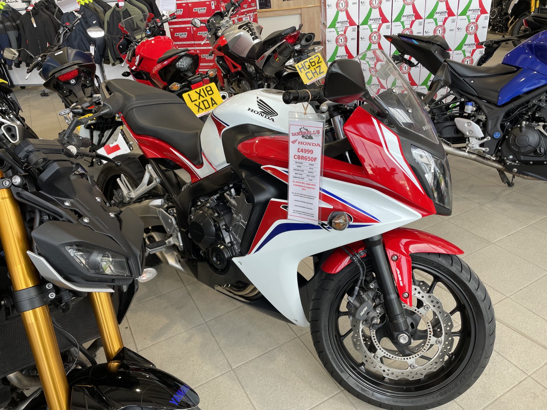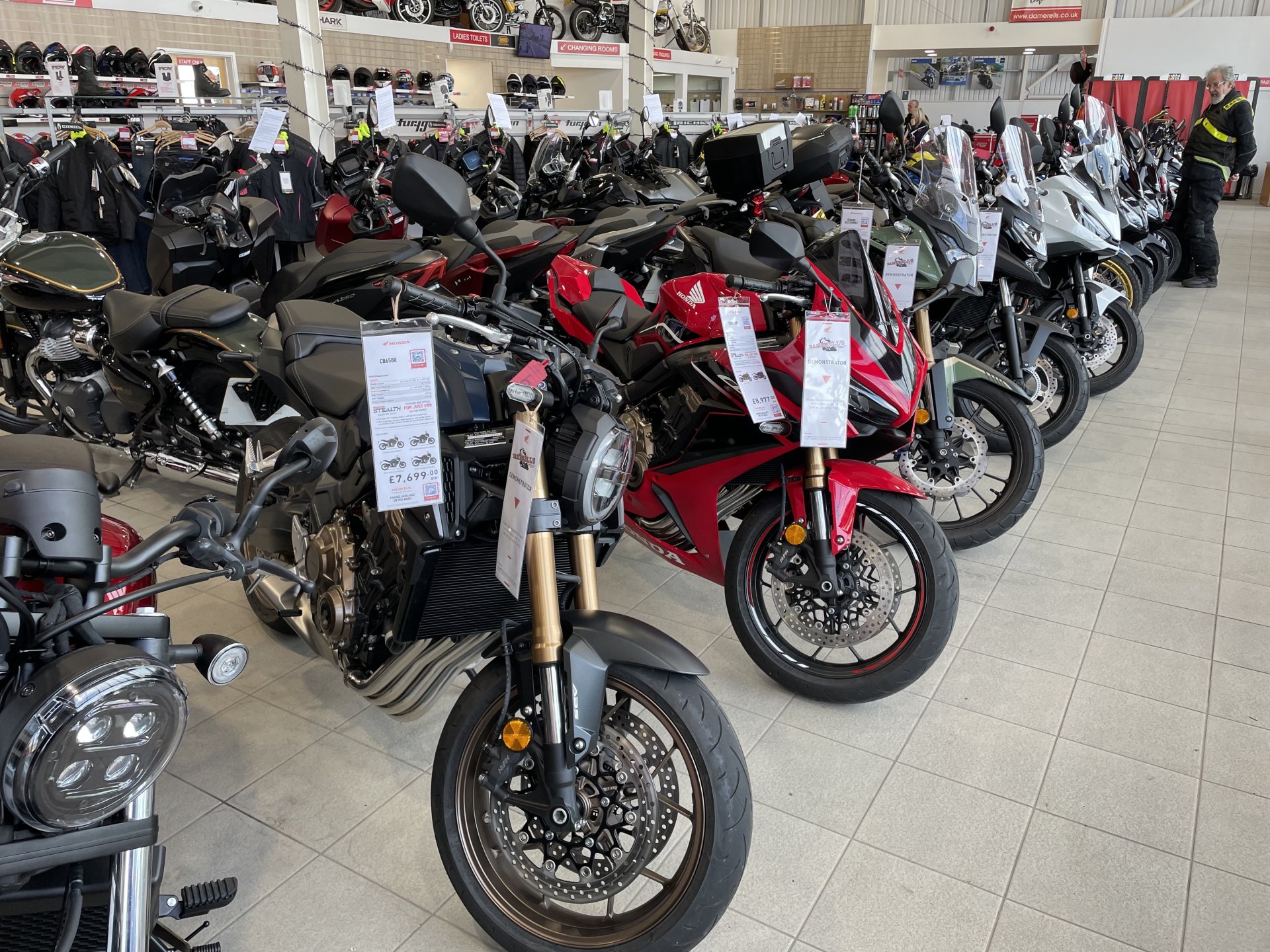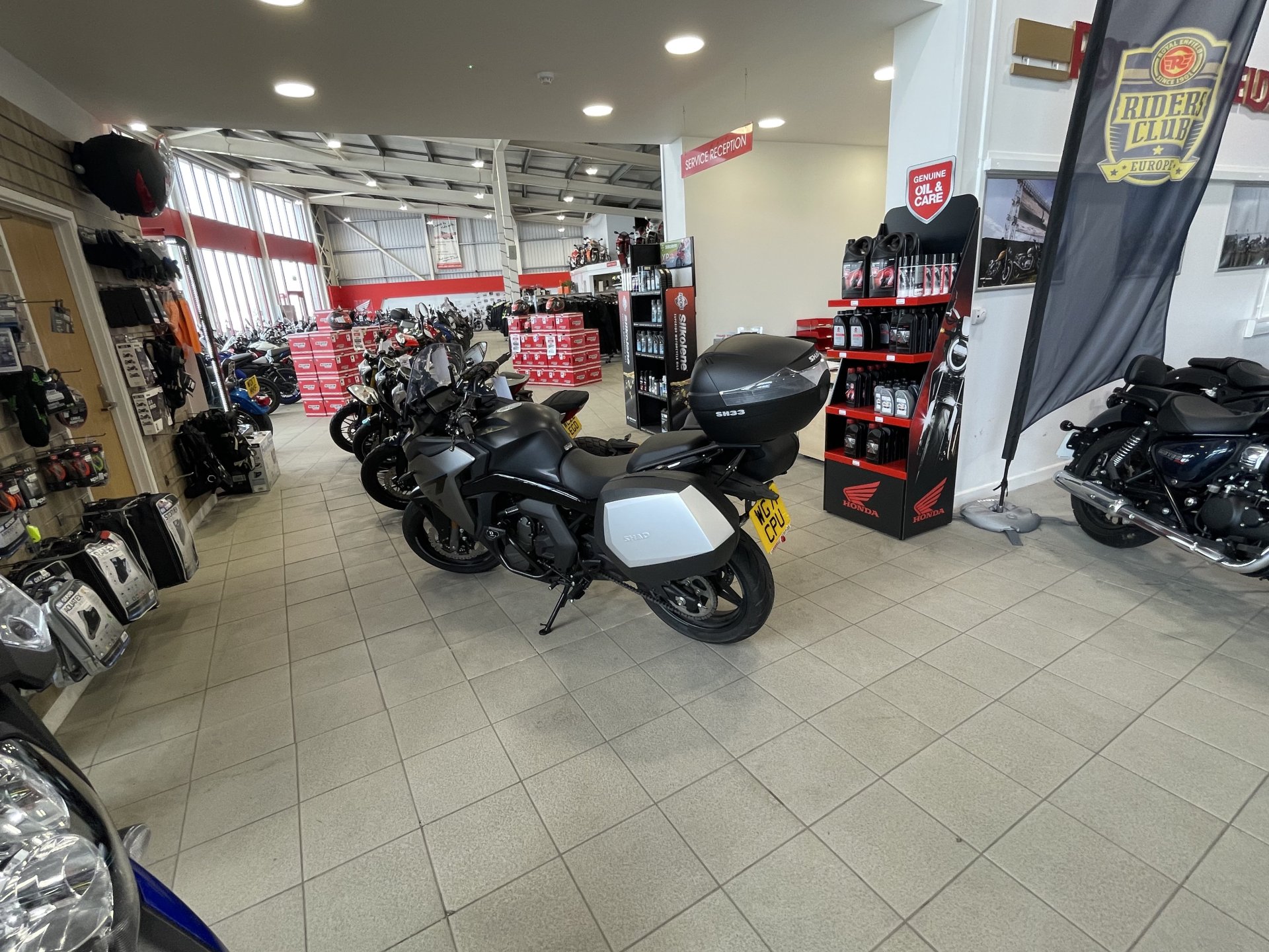 Lovely sunny day here so thought it would be a good one to go out. Tried to get my mate with the red CB to come along but his Darkness said no. And great day for a bimble around the clay country. Nobody about so some lovely empty dry roads, Got a chance to wind my CB up a bit and to be honest it was a lot of fun. Surprisingly good for a commuter bike. Anyway Darealls was a bit sparsely populated on the bike front, by their standards. Suppose it is silly season and all. I reckon they have sold 10 Interceptors since my last visit. They had some new interesting stock just the same. Also a nice old school Gixxer turned up outside. I was quite impressed with this CF Moro 650 GT for just 4.6k. Just 2500 miles on it on a 71 plate. Not something I would buy but a lot of bike for the money.4 points