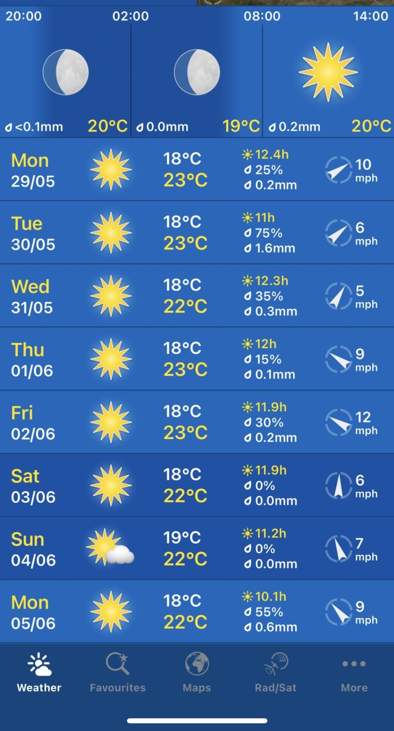 Depends which side of the mountain you foolishly/wisely (delete as appropriate) landed on, looking good here Only downside is it’s staying this temp overnight too, gets down to 19 degrees at best but that’s ok, it just depends if you foolishly/wisely (delete as appropriate) have aircon