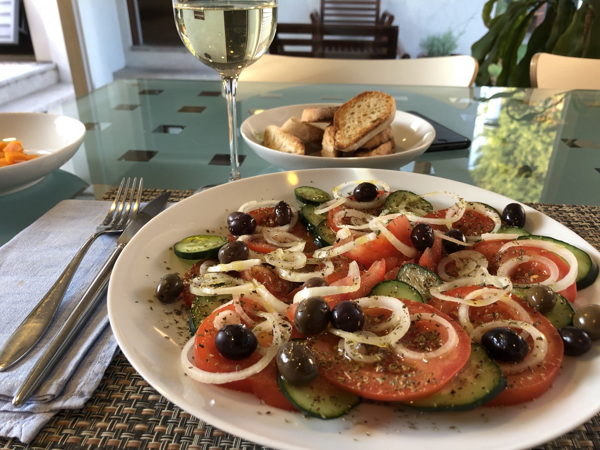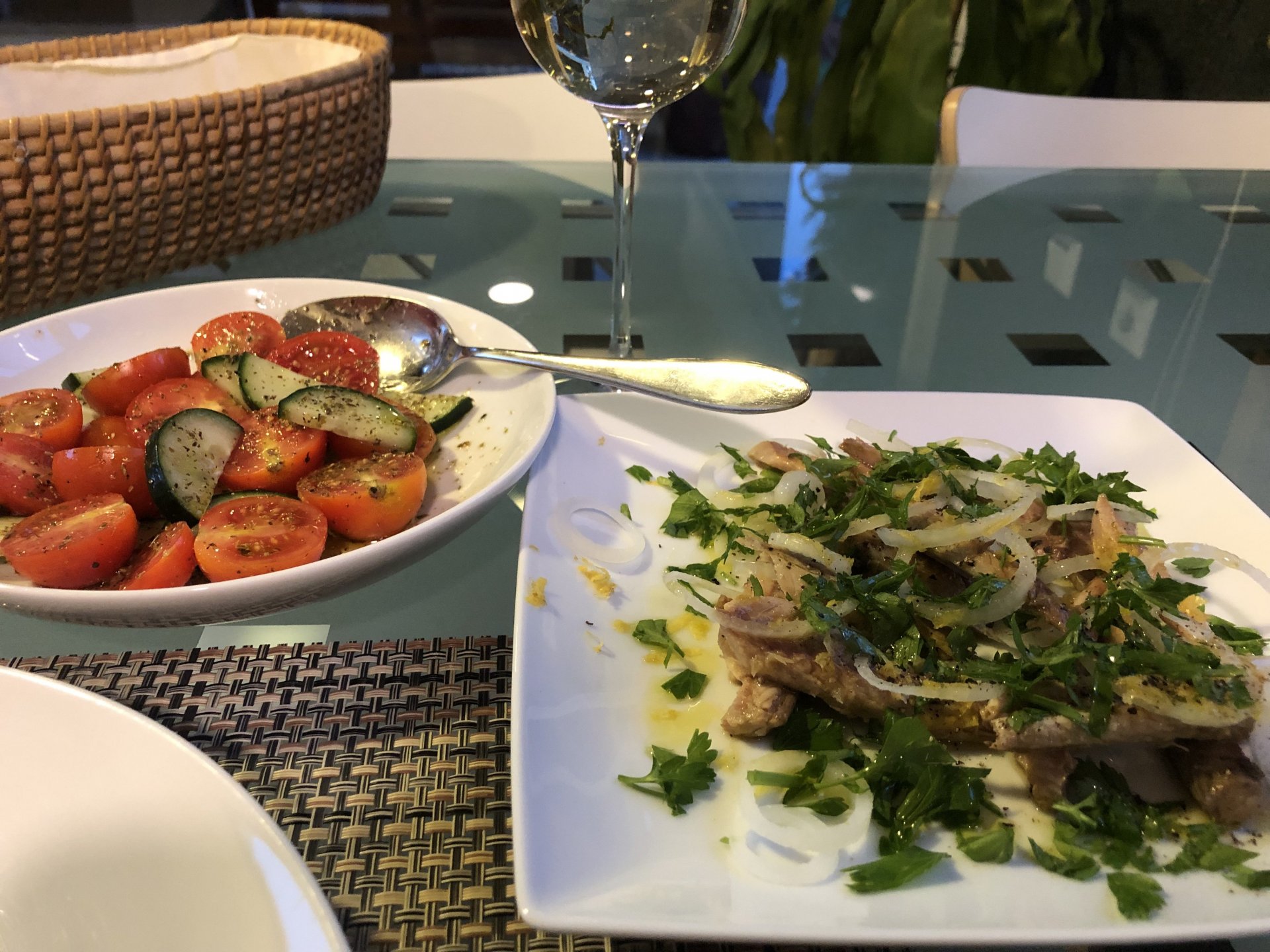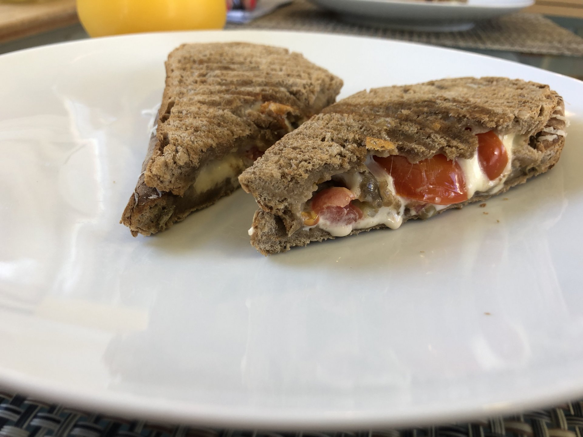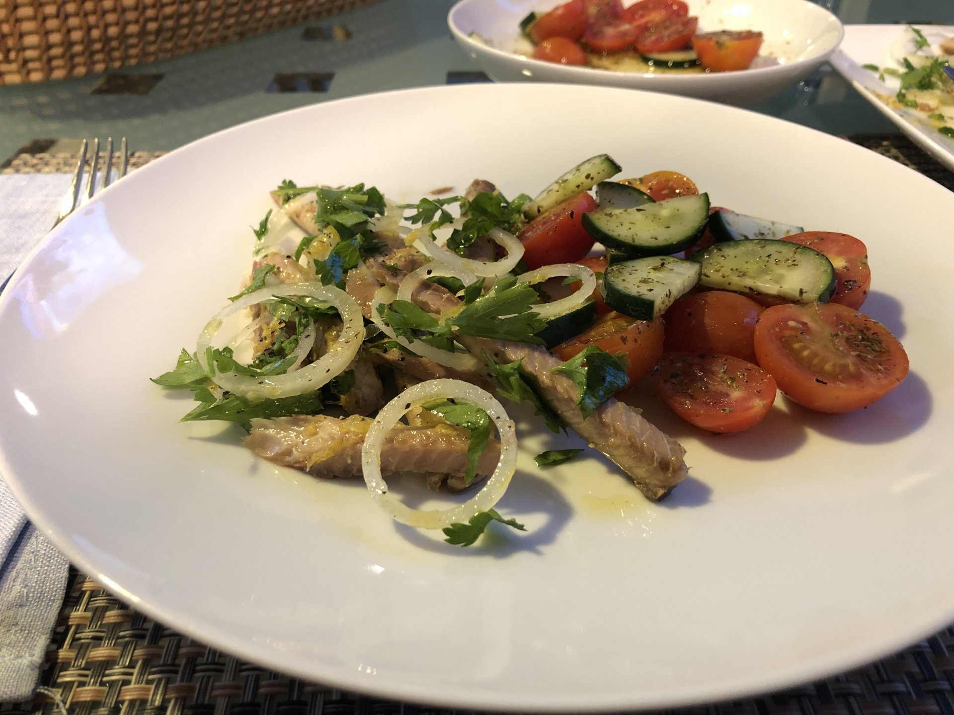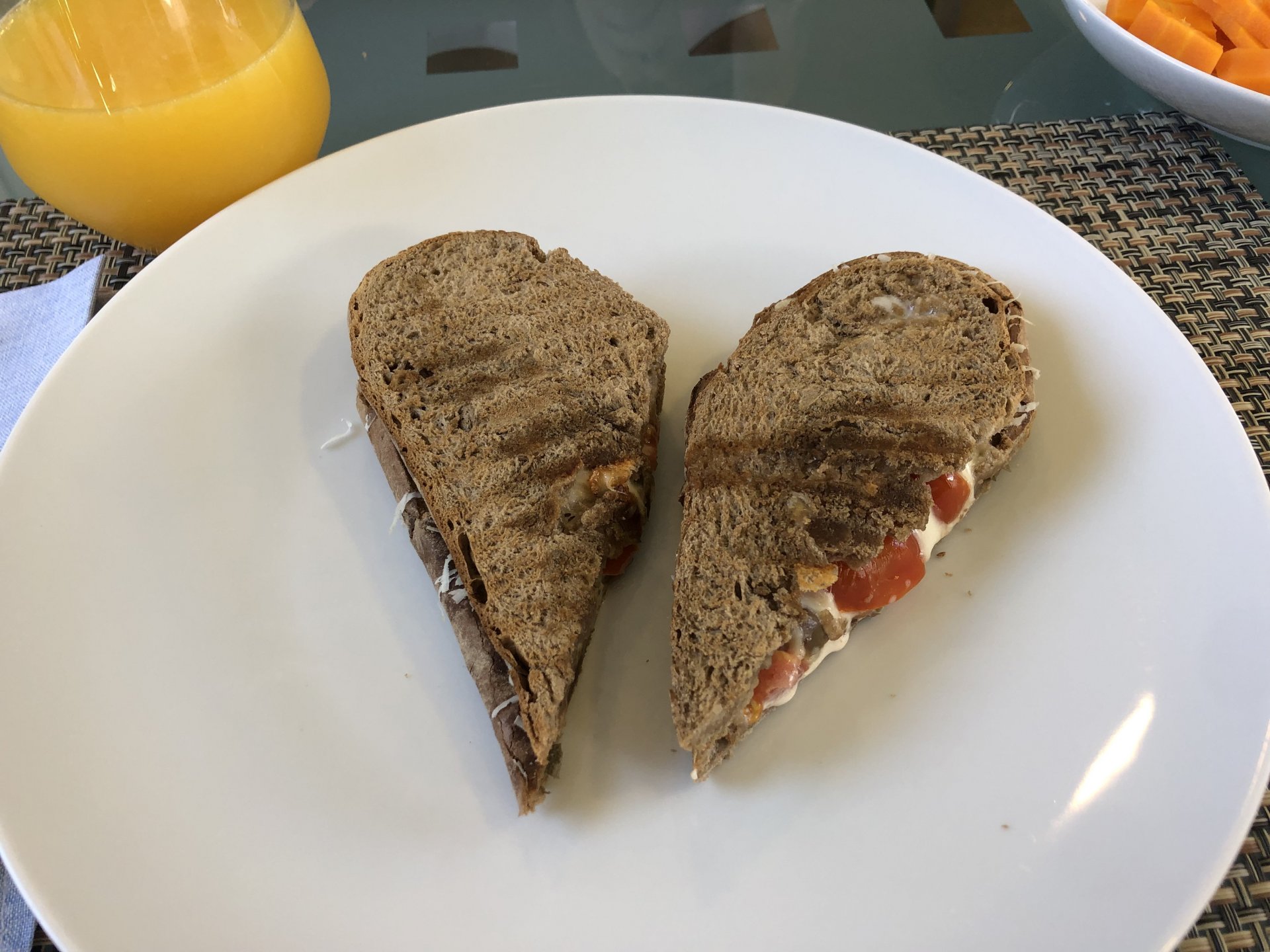 Tonights dinner was amazing, while watching pictures on the TV of a place I like in the Algarve burning, I got on on an Algarve state of mind and put some canned horse mackerel fillets on a plate, onions, plenty of parsley, freshly ground black pepper, plenty of lemon zest, and olive oil, together with a cherry tomato, cucumber and oregano salad. Along with some toast to soak up the olive oil it was southern flavors out of the pantry, tasted great after the beach. Lunch, another southern portuguese salad Heart shaped sandwich because of love! It was tasty, with a mayonnaise based sauce, it had onions, garlic, plenty of salted capers on it, plus some cherry tomatoes and mozzarella.