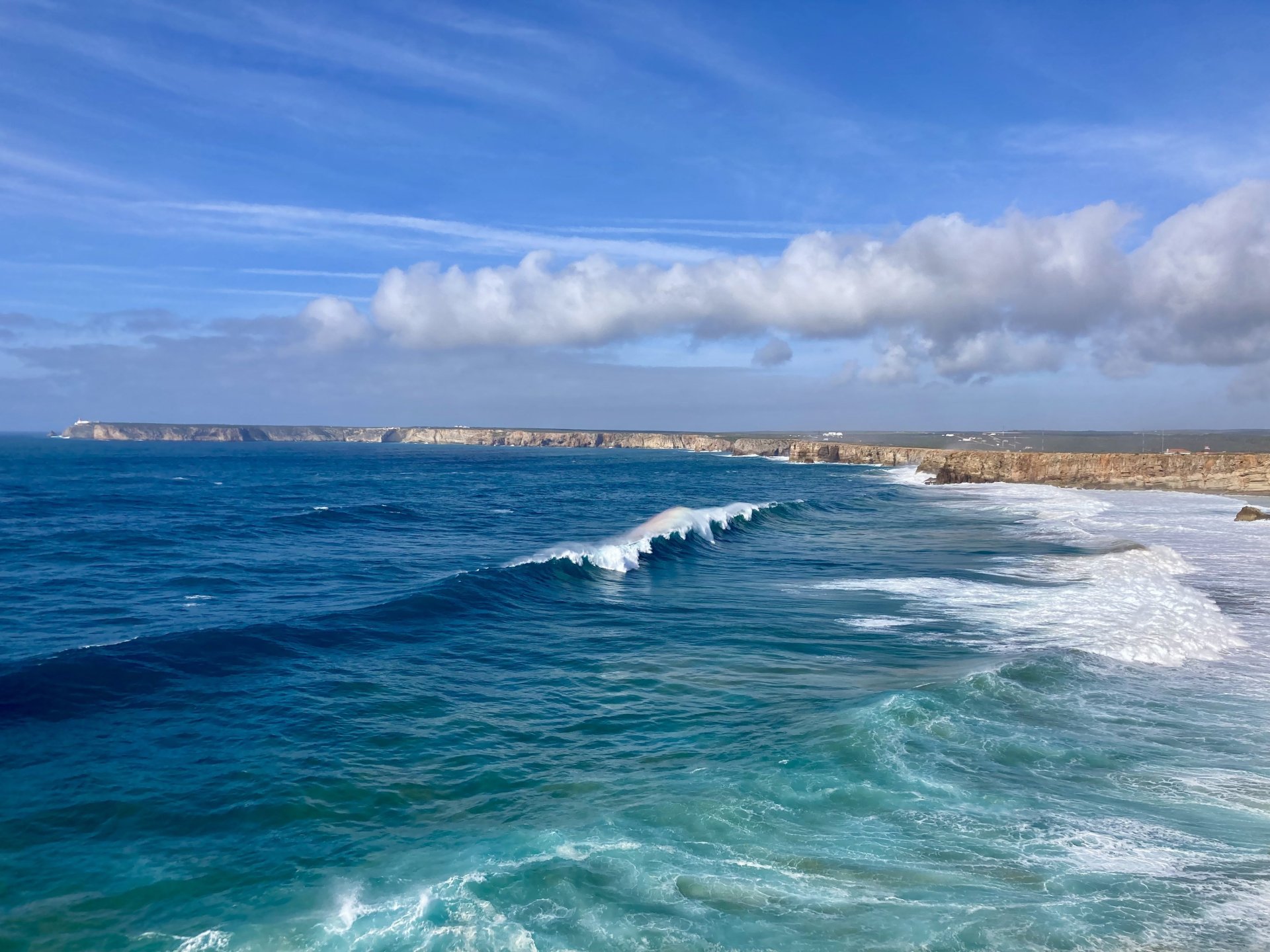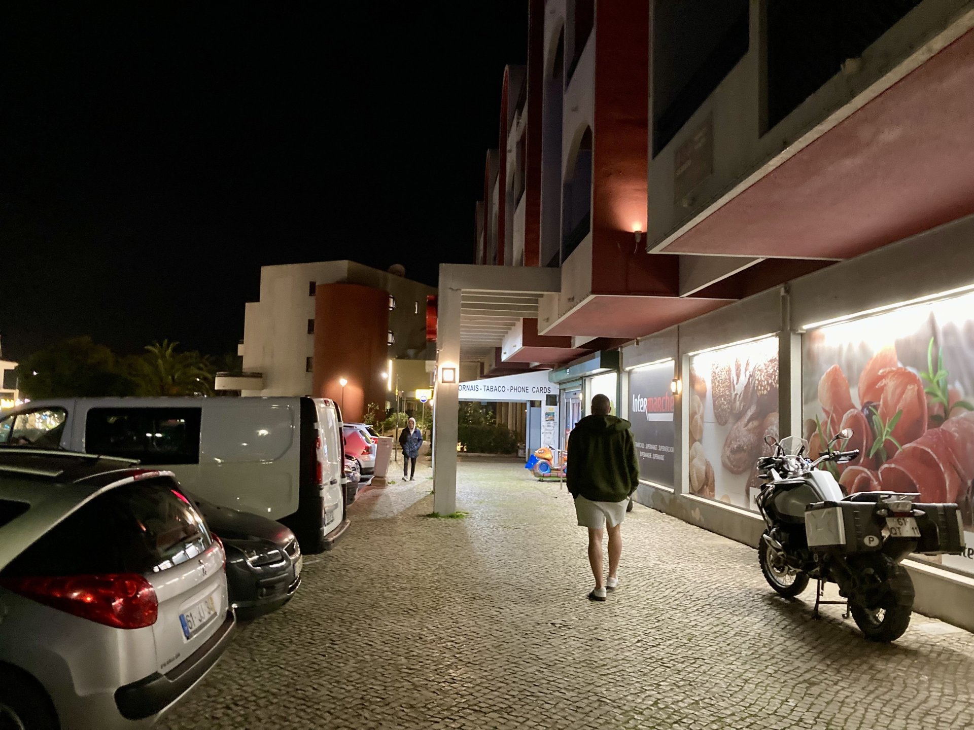 Cold morning, but only blue skies and the rains had all moved North, we headed South towards the Algarve hills, happy times! There, in the distance, it's the ocean sparking behind the hills. These are very nice motorcycling roads and usually deserted By the afternoon, we made it to Portimão, met up with our friends, looked around the pits and saw some people riding around. Scott Redding's training bike, pretty cool! He was obviously very fast, but the event was being used by a couple more racers for training, so the fastest guys in the faster group were really fast! Cool van We made it to our hotel, which had a nice view with the track in the distance: Someone had a blue cocktail, and spirits were high. Next day, and it was Sofia's birthday. We left the bikes in the garage, the plan was to walk to the track and hang out with Niel and Anne a little, walk around and then have dinner somewhere. Breakfast with the track in the distance, I like that! The dip at the end of the straight must be intense on a fast bike: There's a crest as you exit the last corner into the straight, faster bikes would float their front wheels for quite a distance after that: By mid afternoon it started to look like rain so most people cut their track time short. It was a three day event and nobody seemed like they wanted to ruin a nice experience by riding in the damp, it started to drizzle a little after that. I had a buzz around the pits in the Suzuki, it's incredible how easy and docile it is if you don´t poke many of the 200 horses. By the time we made it to the hotel the rain had officially arrived. We had a friendly van driver give us a lift to dinner, and much fun was had. The food was great and wine flowed merrily. It was a great evening filled with laughs and tales of motorcycling and life. In the morning the rain was all rained, we packed and left to visit Sagres before going to our home for a few days. Overlooking the beach and my favourite lighthouse in the distance, from the tip of Sagres: Stopped in Lagos for a bite to eat but got lost inside the old town. So parked the bikes and went on foot to find a snack. Just so you don´t think it's all scenic locations : Exiting Lagos we stopped for a while for some calls. After getting home I went to a local supermarket to fetch groceries for dinner, GS went into shopping trolley mode with the luggage stretched wider. Next few days, Algarve.
