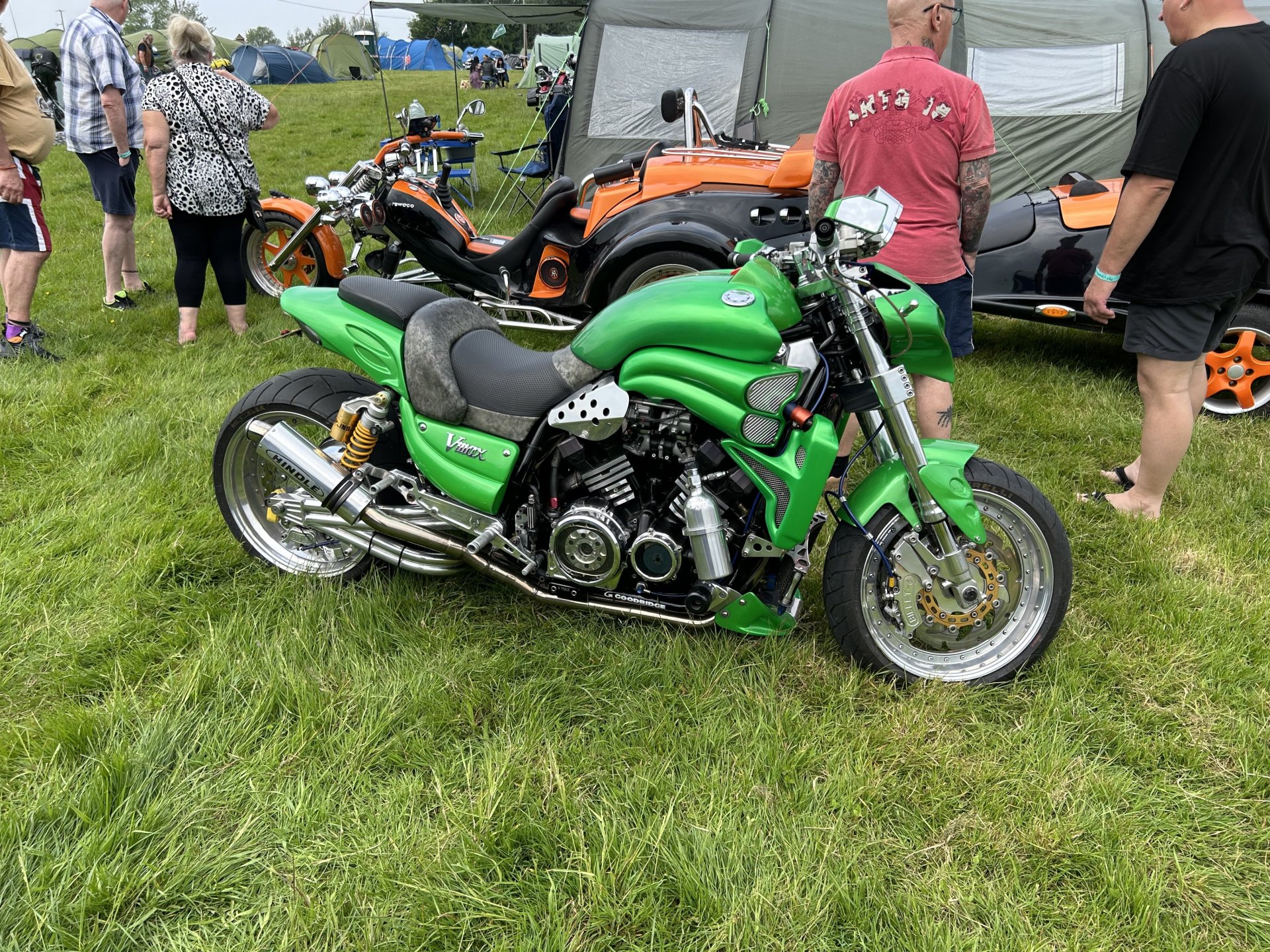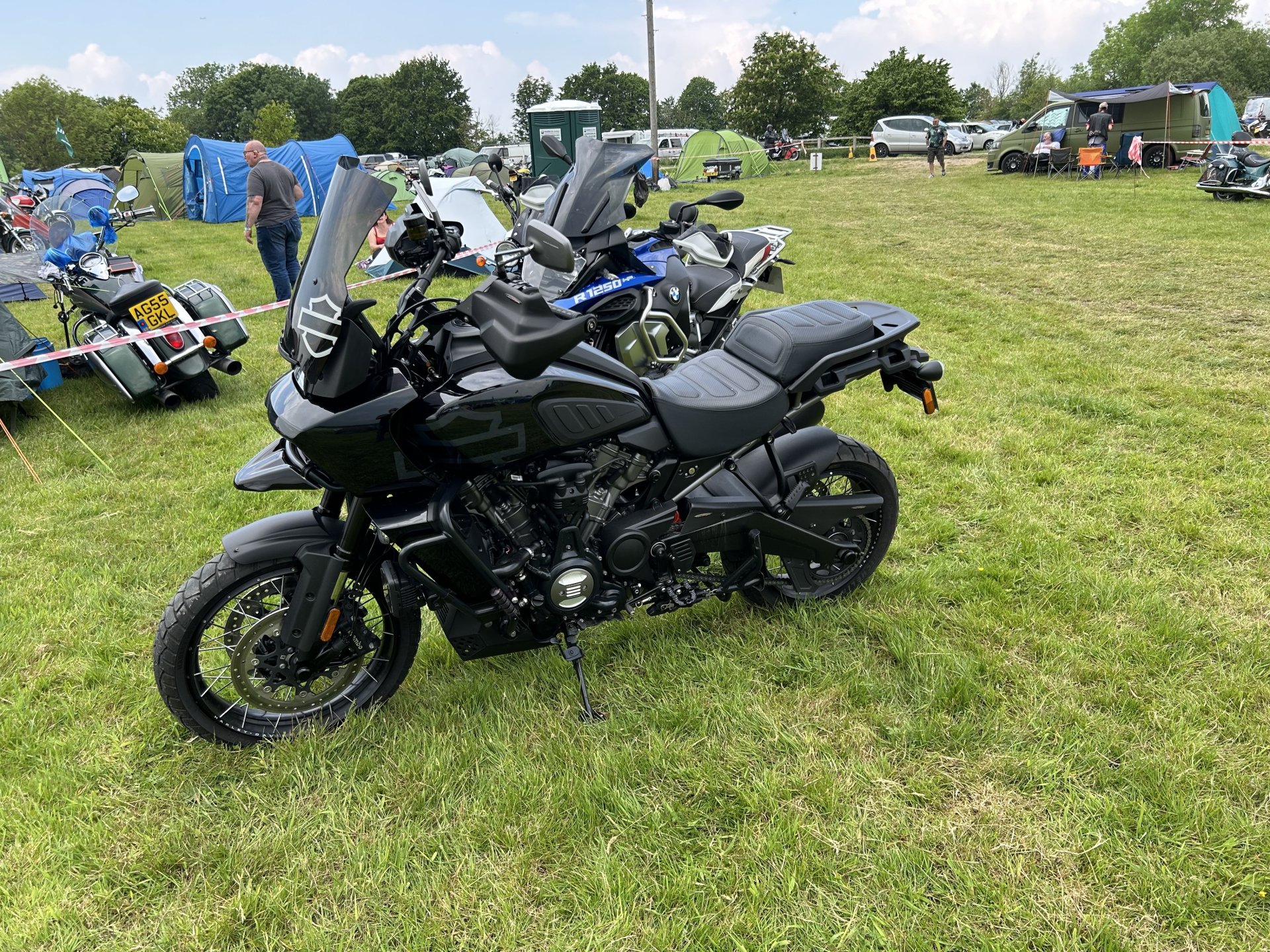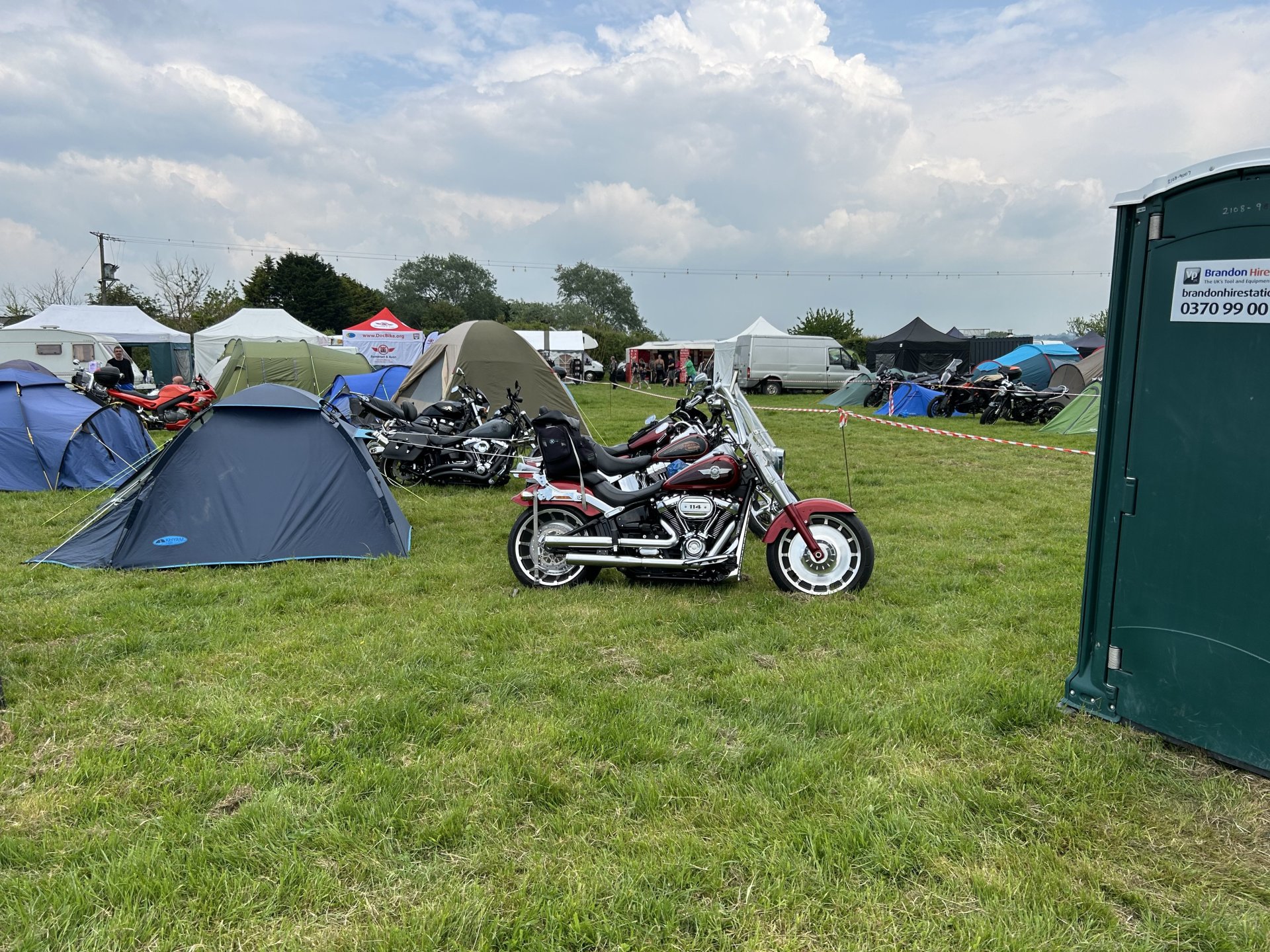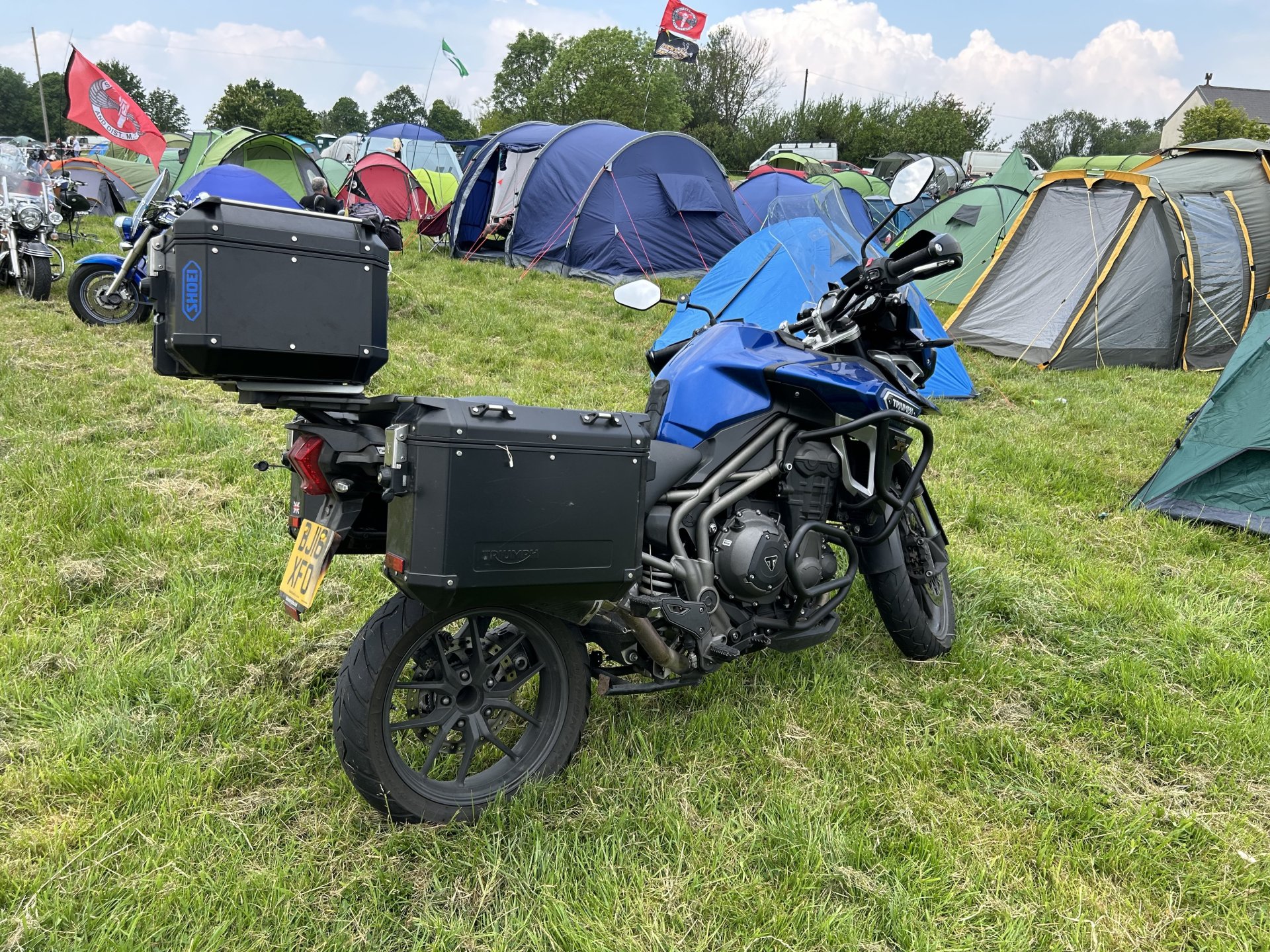 Left for the rally around 10 with thunderstorms forecast on route so I put the waterproofs on as it was all motorway there and nowhere to stop if it started to rain arrived with no rain and everyone enjoying the sun we looked a bit stupid dressed for rain anyhow tent is up and I’ve blown the froth off a couple here’s a few photos I took on the way to the outside bar