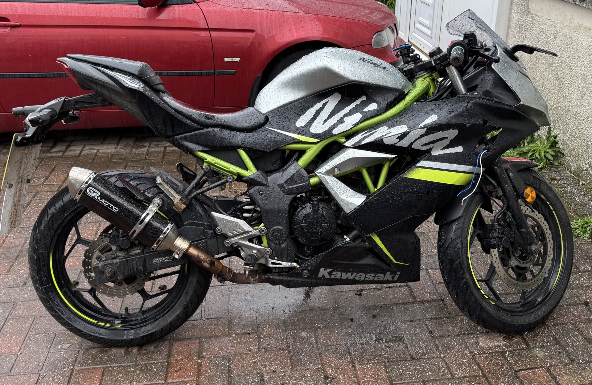 Well HH is a happy bunny, apparently his bike is going much better now with the new pipe, apparently the handling is on point now and the front brakes are awesome. Funny how having the right brake lever and straight forks does help . Seriously I am happy he is.