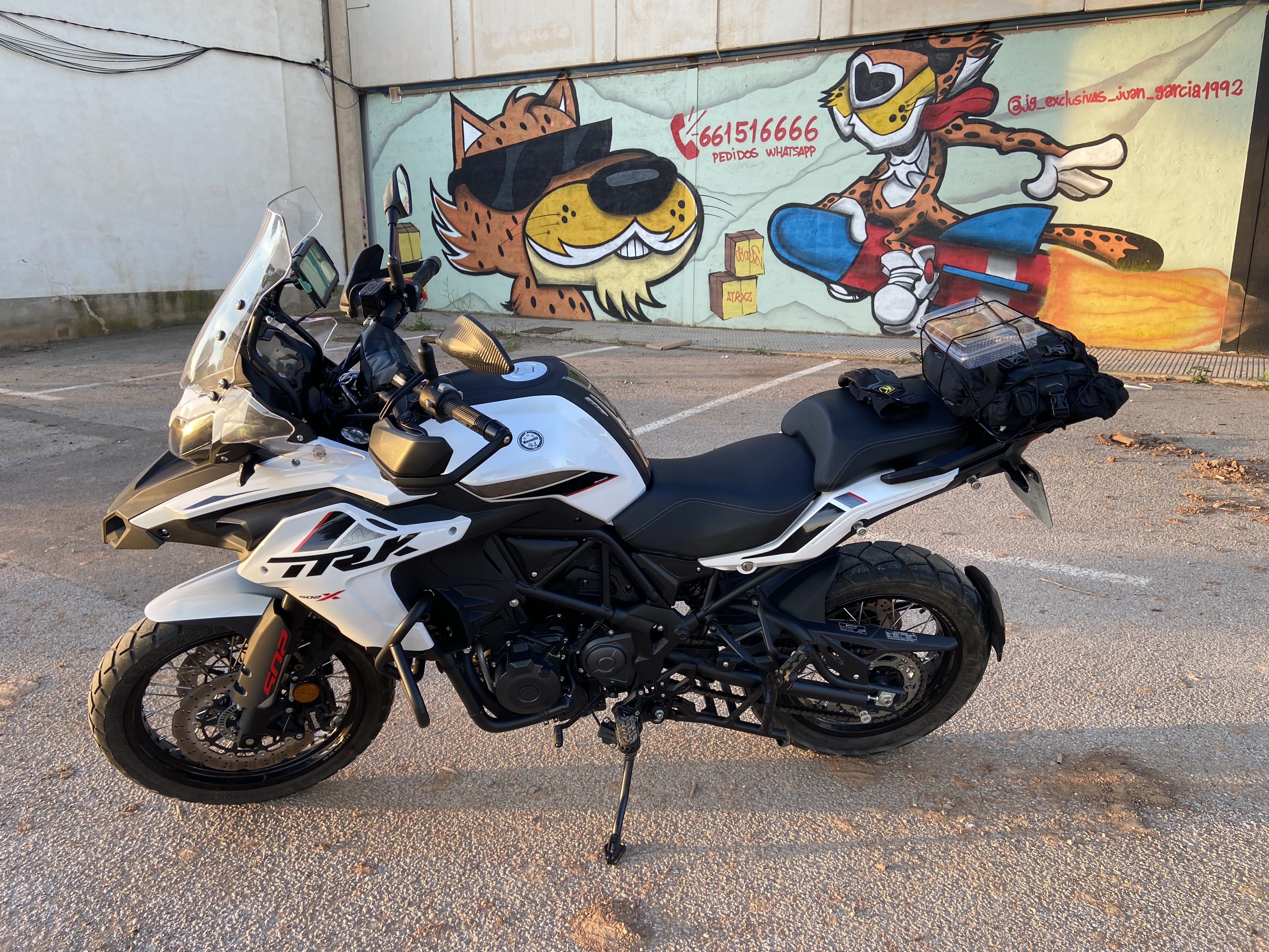 Benelli had its 7,000 klm service today, 100 euros all in including the Spanish equivalent of VAT. Had to take my own coffee and croissant though……..’kin disgraceful