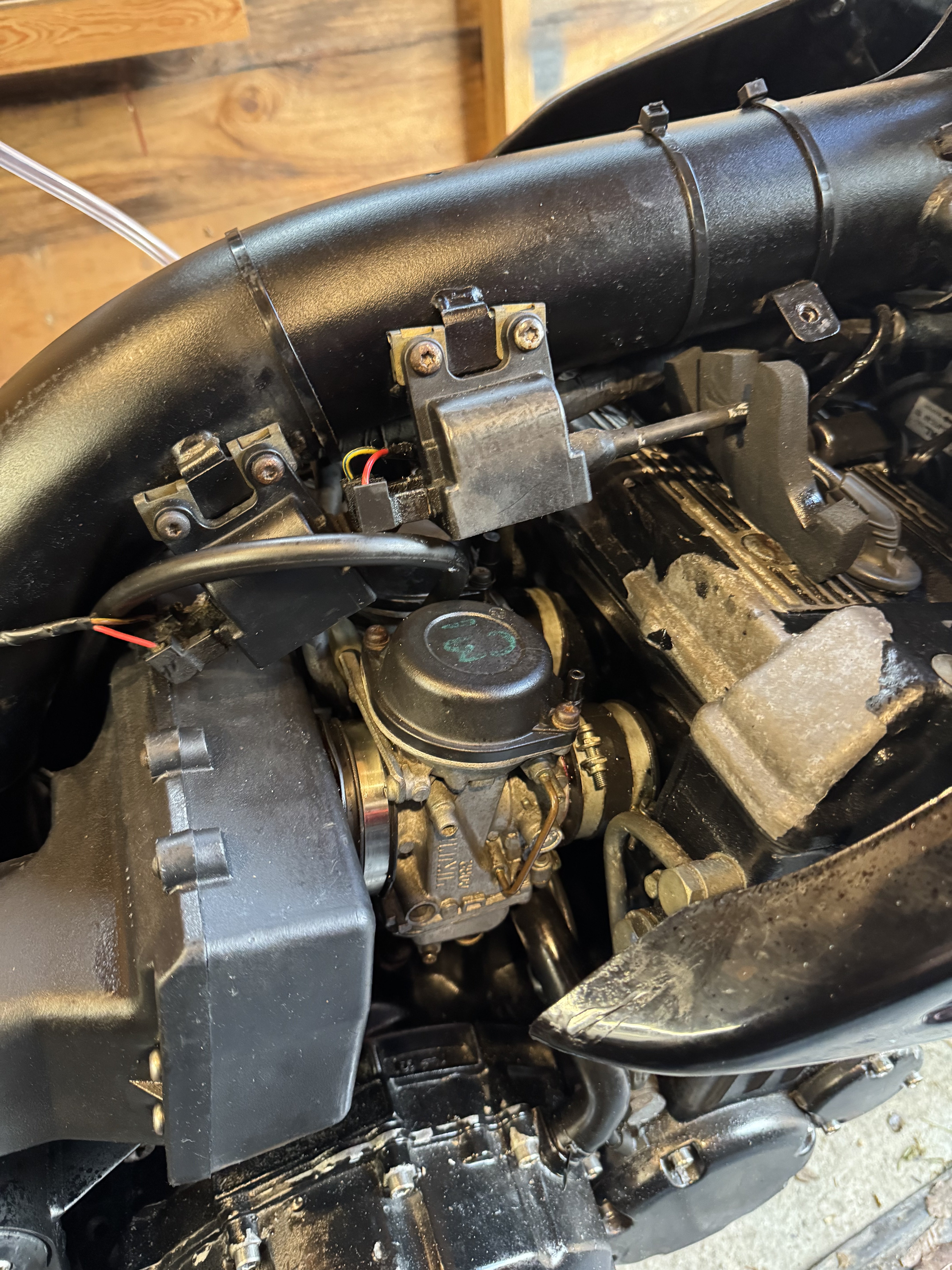 2. Well that was an hour of high tension but the carbs are back in. Won’t lie it’s not a pleasant job but doable with a bit of patience and a hair dryer to warm up the rubbers. The bike started first time on choke, came off choke reasonable quickly and once warm was able to set the tick-over to where it should be around 1050 ish. Supposed to be 950 to 1050 so no complaints. Still have to check the carb balance but to be honest it’s doesn’t seem far off IMHO. The point for me is that the bike ticks over well off choke now which it didn’t before. So for now I will take that . Still be a bit of fine tuning to come but I am a happy bunny. Still have to clean the tank out before the bike is rideable but my garden is currently like the Somme so getting the Sprint in and out isn’t easy on my own so no rush for that. Much else to do.