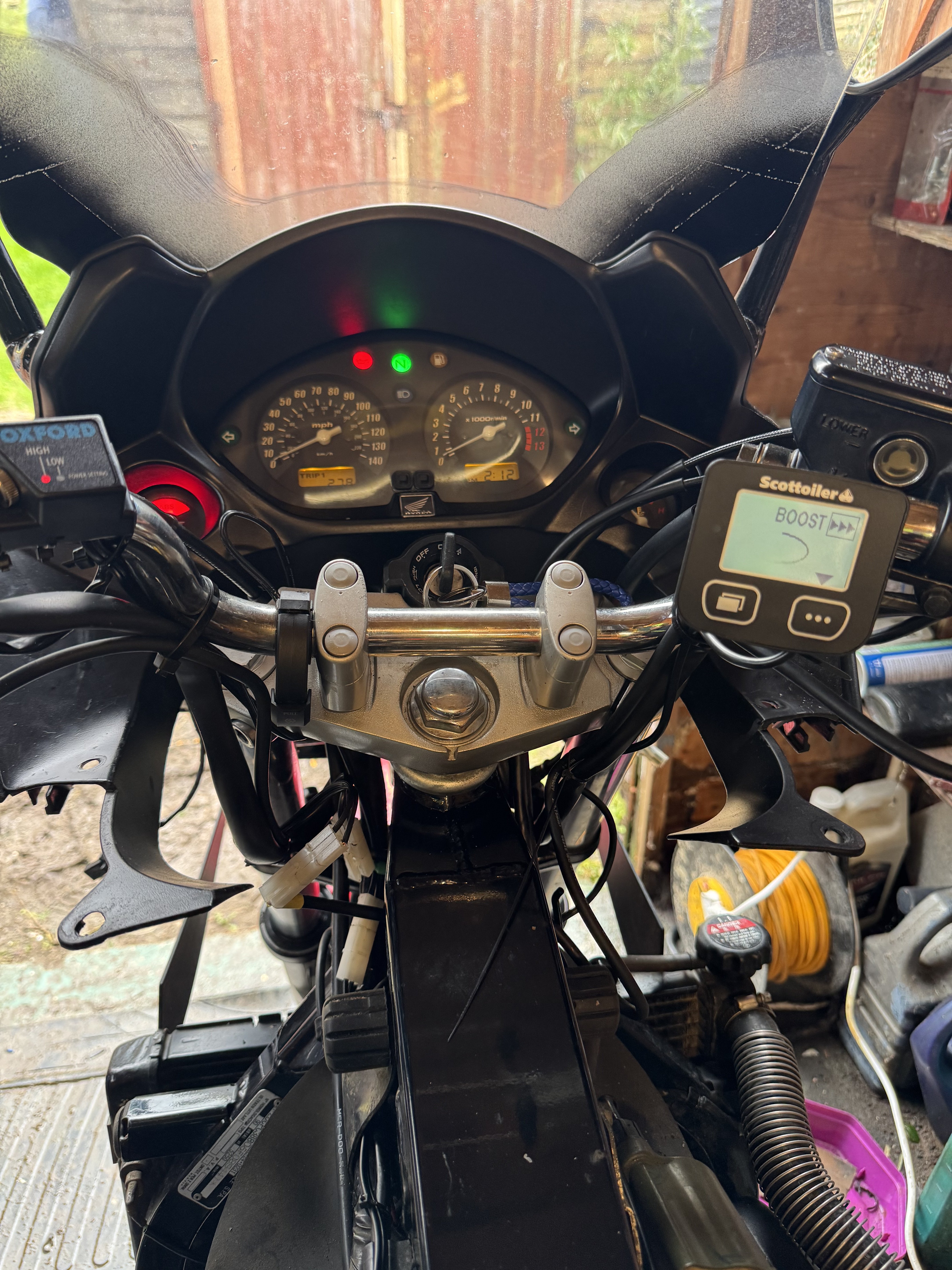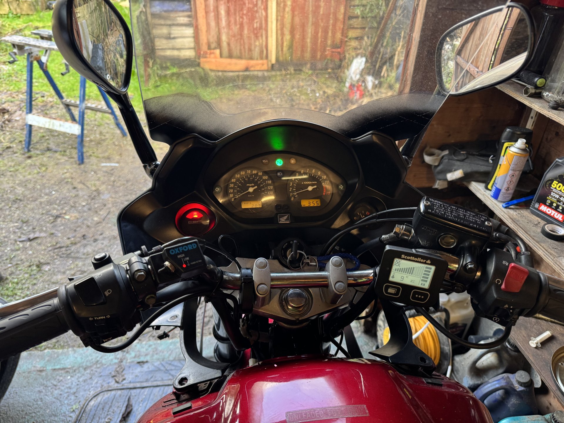2. The Oxford Heated grips on my CBF were worn smooth and the controller was on its last legs so I treated it to a new set of the same. Also while I had it stripped down I fitted an upgraded Scott Oiler that I was generously given a few weeks ago. I will put the simpler Scott oiler on my Hornet. I bought the commuter versions of the Oxford grips as they are significantly cheaper and don’t have the smart controller. They only have 2 settings but I never used the 5 levels of heat on the standard version of the heated grips. Plus they have an on off switch rather than a load of buttons. I also took the CarPlay GPS off the bike as I just wasn’t using it. To much clutter on the bars.