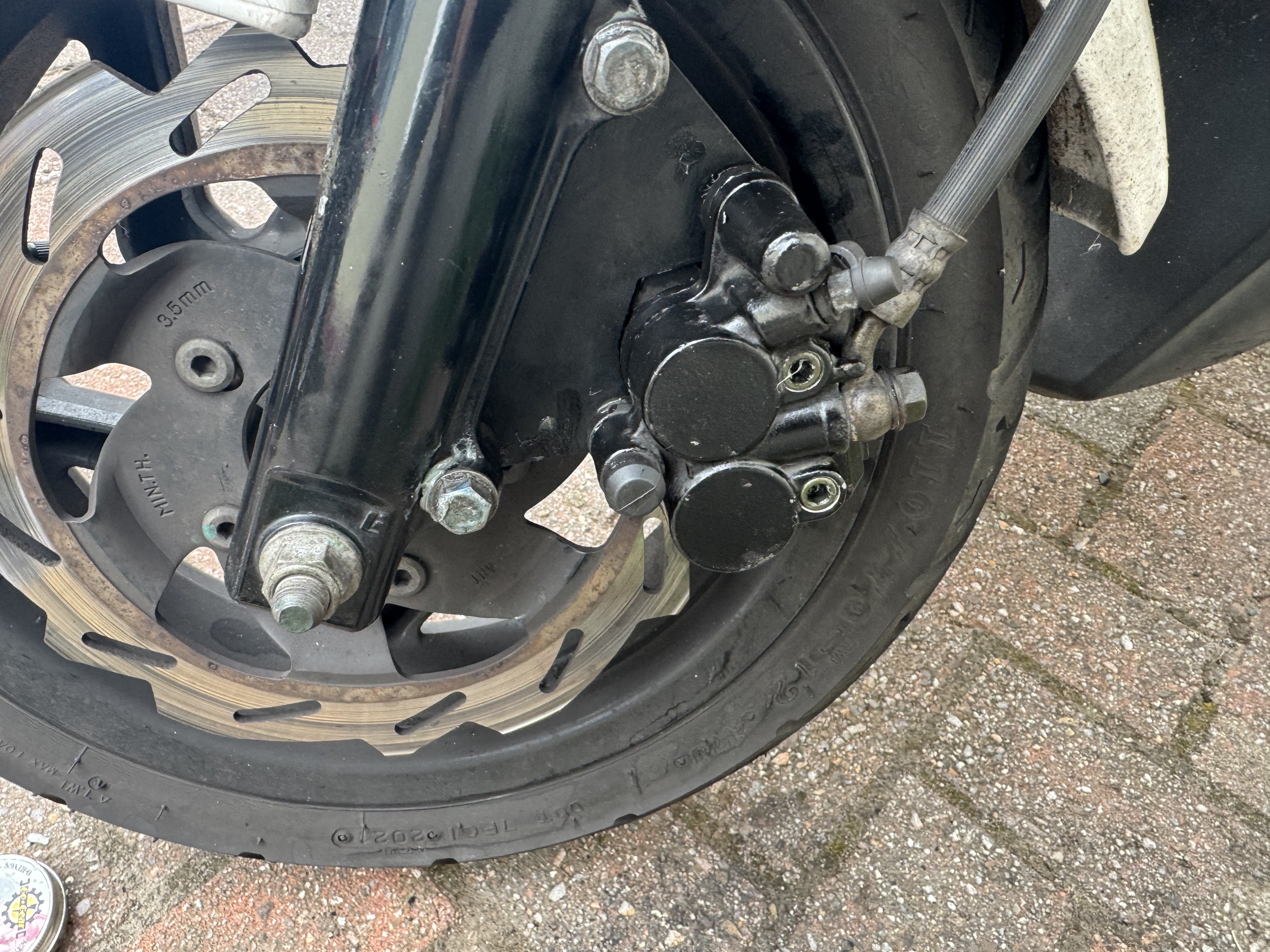 Out front snagging bikes all day today. Started with my boys ped as he had an advisory on his MoT for a binding front brake. Easy enough fix stripped it cleaned it and back together, no longer sticking. After that new chain and sprockets on How Highs Ninja plus stripped and cleaned both brakes with new fluid front and back. Also changed the oil and filter. Finally set about sorting my CBF. When I had my MoT last week the tester said the rear sprocket was on the wrong way around. Nothing to worry about but he just pointed it out. Now being me I did worry so had to sort it out. Before After Also stripped and clear the rear brake as I haven’t done that this year. All back together now Not sure my hands will ever be clean again and I’m bleddy knackered.