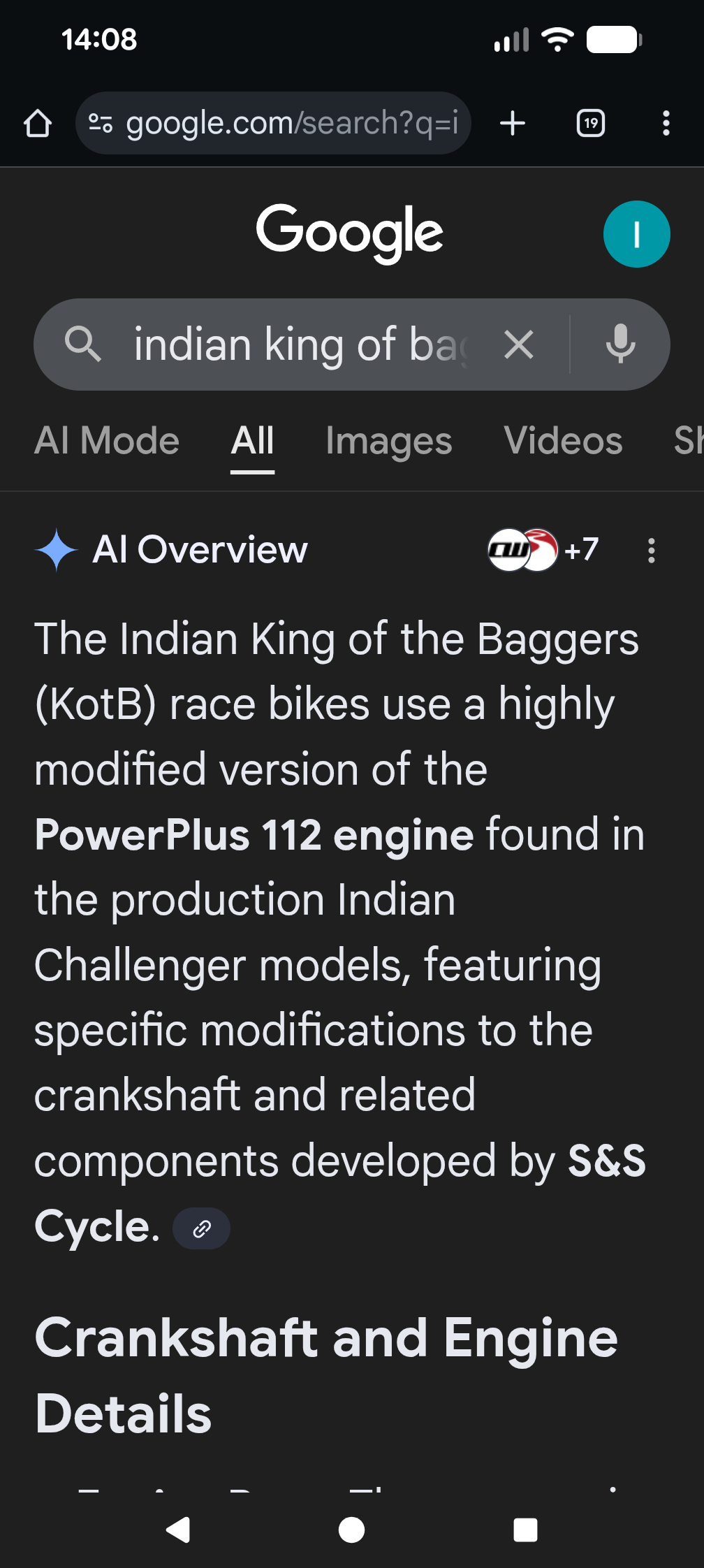 14. Well I can actually tell you that the Harley engine in King of the bagger are not pressed in crank design only...they are all welded and modified, the Indian Challenger uses the same exact crank that is in my 2023 with no modifications and those thing run around 180 hp....try doing that with a stock Harley crank and let me know what happens...kaboom!! Lol.