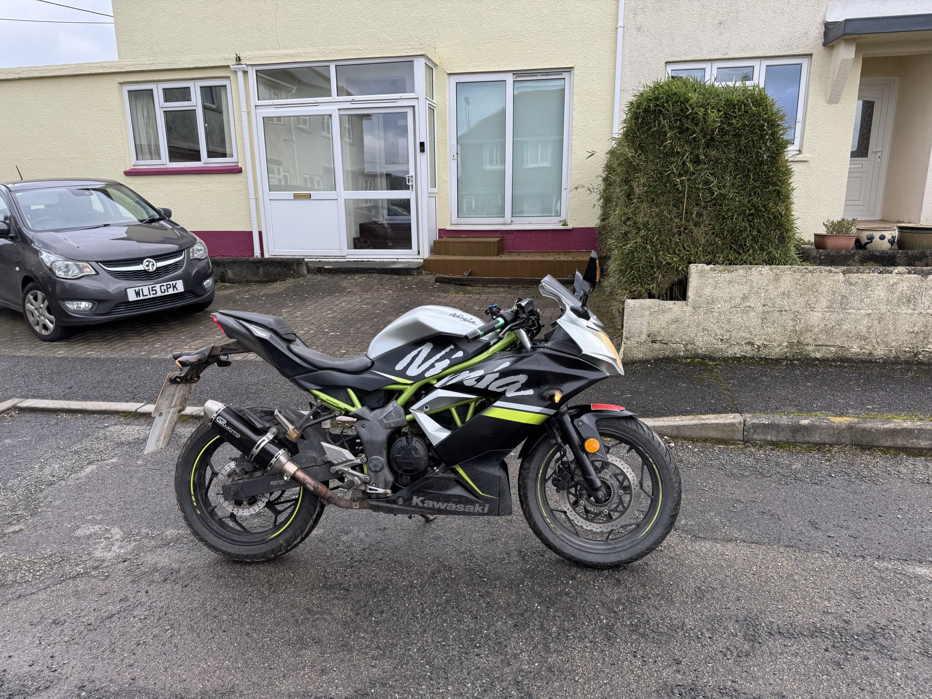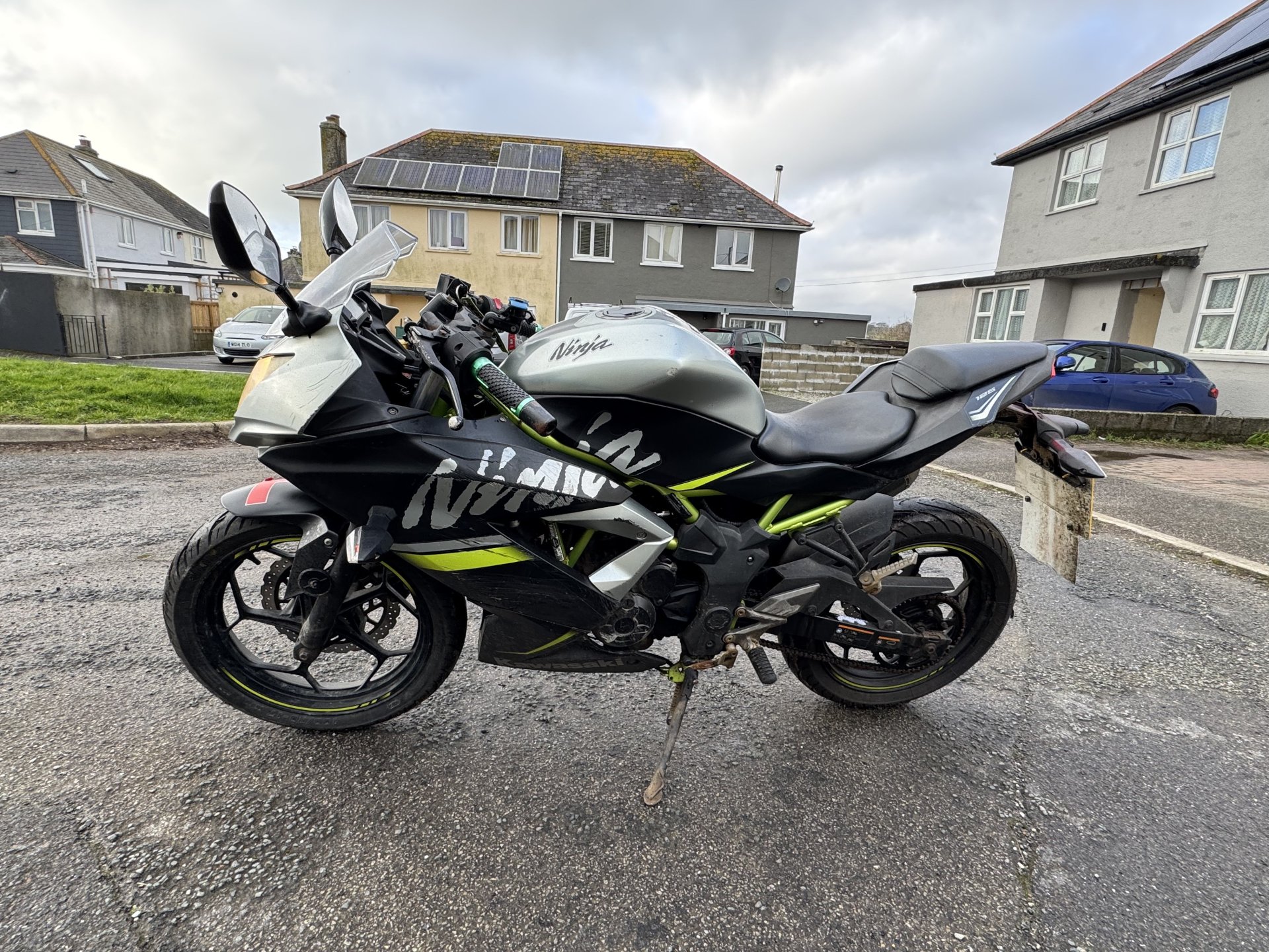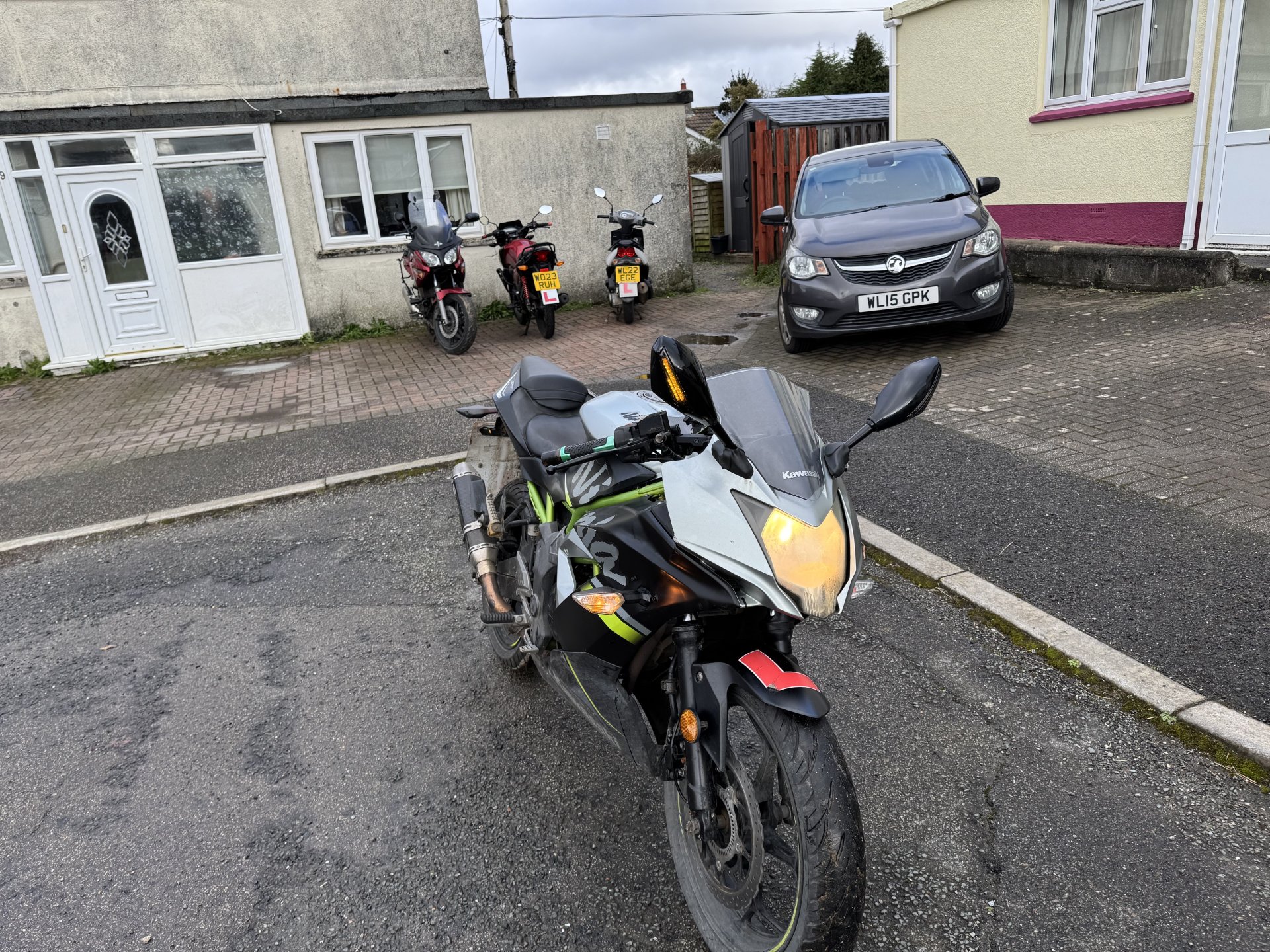 Got the Kwacker death trap back together. The repaired panel is looking ok but my eye is drawn to the imperfections. The mirrors look odd but work pretty well so I suppose that again is my problem. You can tell this bike has been down several times as there are multiple broken fairing mounts and alignment issues. Got it all secure but had to use a few discrete cable ties where mounts used to be. Suppose I need to be less critical as HH is chuffed to bits and out with my Mrs and Shadow for a birthday lunch. Looks better from some angles than others but is an improvement from where we started and does have it’s full compliment of indicators. For contrast this is the side I haven’t touched. I would like to give it a good clean but will wait for the new paint to cure first.