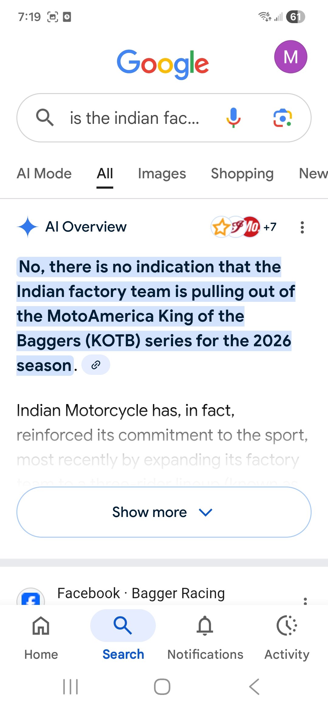 Your so full of it...they have 3 factory teams...seriously are you saying Barge racing is over ? It would be all over the news if indian pulled out of the king of the bagger races...