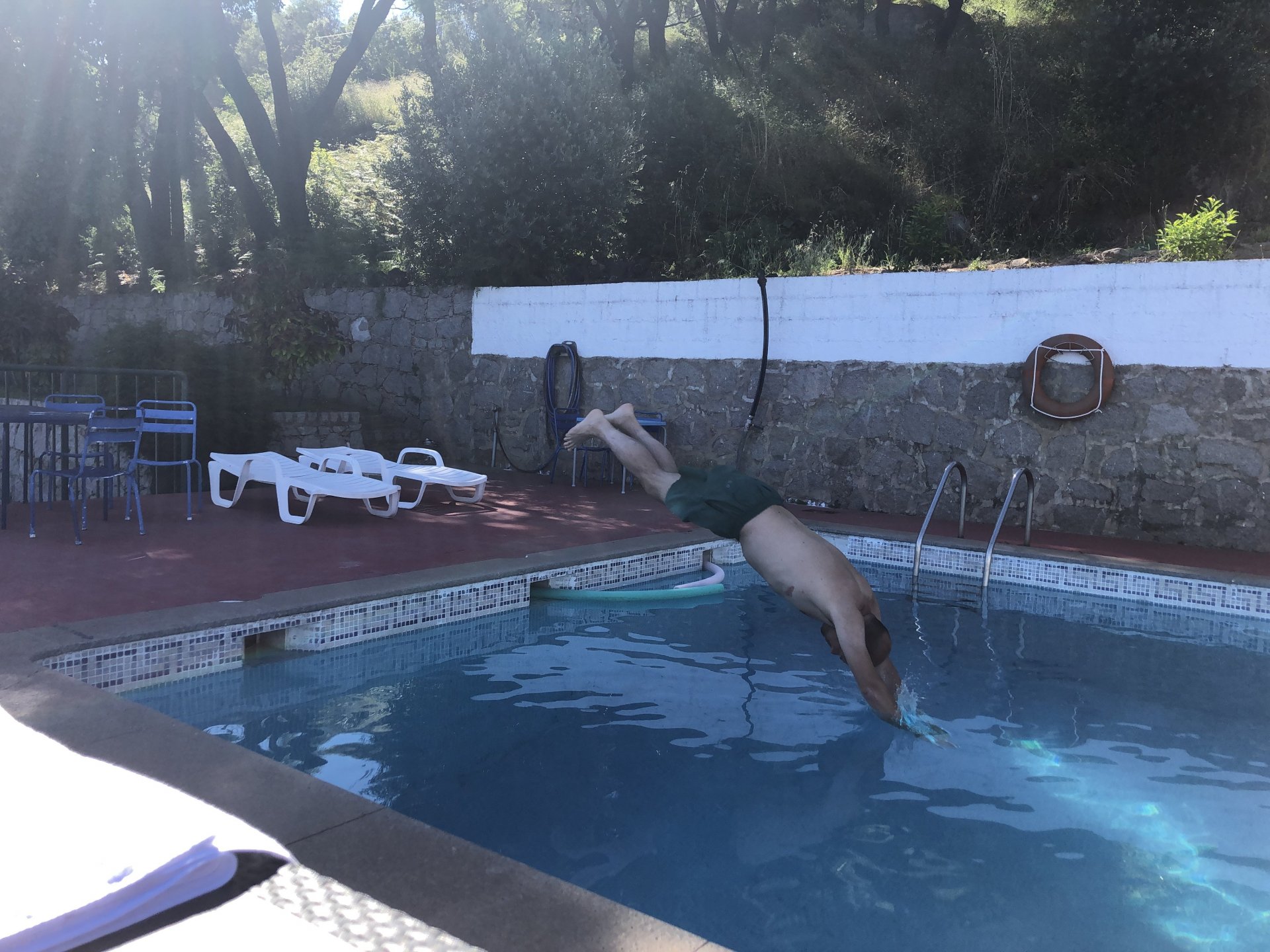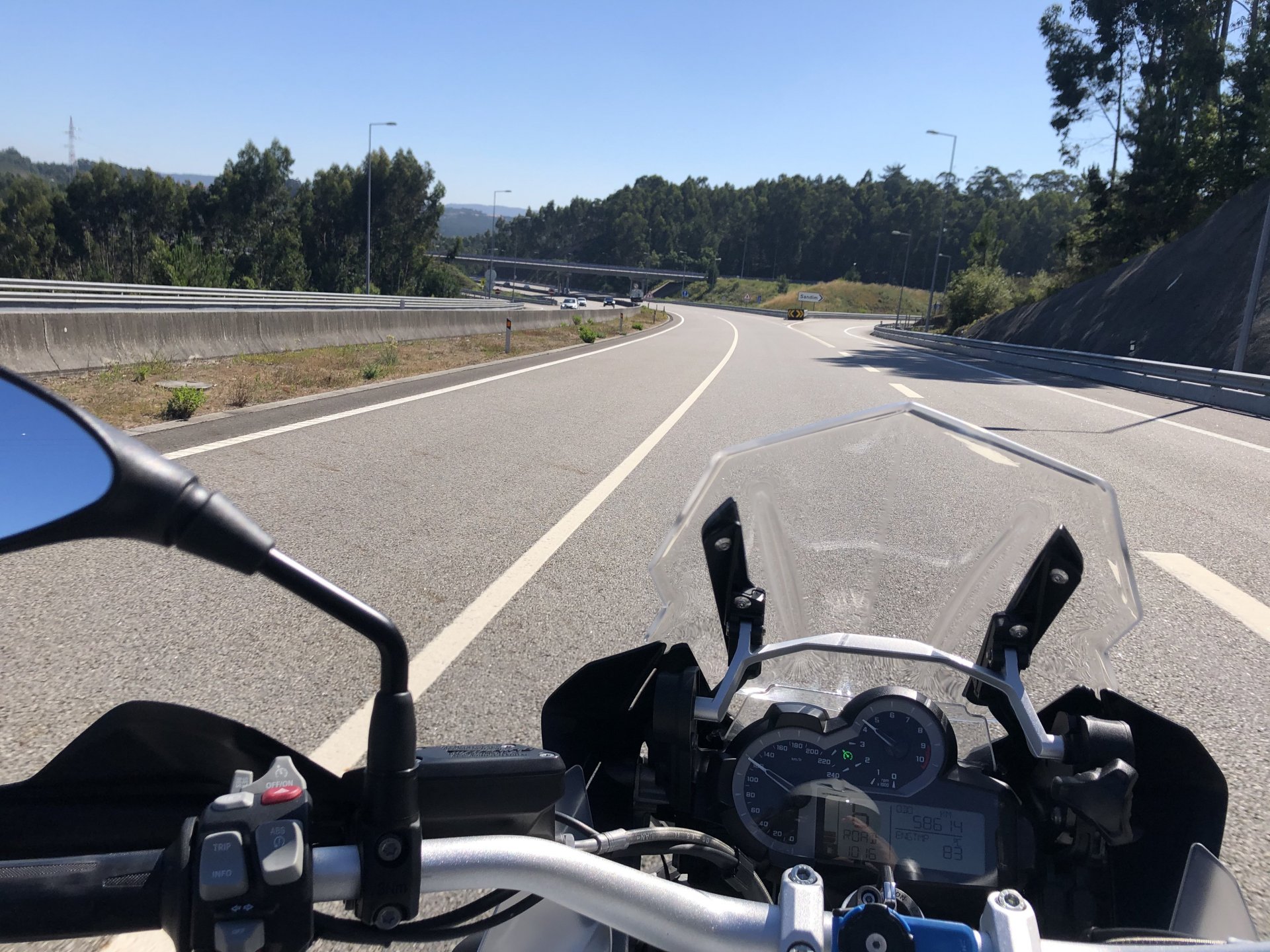 So, day one: Day one started late, because yesterday I had a great dinner, me and little bro had too much wine and things got silly Today, got up at about 9, by 10 Costa was walked and I was out of the house. Got on the motorway for the only 10 or 20km I expect to do on a motorway in the next few days. Made my way to the Douro river, and started to retrace the ride I last posted in Douro wine region. The 108 is a great little road, there was a big car meeting , maybe 30 cars or more, tuned and driving like idiots. Made it hard to pass them because a lot of the cars were quite fast, but very slow in other areas, started to piss me off until an old dude in a tractor caused a traffic jam and I passed them all in one go. Douro, along the 108 between Porto and Pinhão: Stopped a little for lunch, at a scenic place with a lot of shade: Lots of bikes there, a couple of groups making picnics, I had my leftover roast and spinach sandwich: Got back on the road heading to Pinhão After Pinhão, crossed the river and rode a little bit on the south side of it, a little away from the water. Temperature immediately increased as I went over the tall hills inland. Also, views started to get bigger, I needed big vistas: Road was quite nice: Got quite high Stopped to call firefighters, someone must have thrown a cigarette from a car and started a fire right on the side of the road, it was consuming a tree when I got there and about to get big. By the time my call made it through to the local department it was substantially big, but they told me they had been called and a car was arriving to deal with it. With everything that Portugal has been through in the last 4 years, I can't understand how some people can be so careless. Got lost crossing Vila Nova de Foz Coa, a few old, maybe restored houses, using the typical schist building. Stopped, to figure out what to do regarding sleeping arrangements by 4PM, didn't think there would be so many tourists and by that time most of the places were already fully booked. Finally got on the phone with a little place that only had a 5 people room/cottage, I cried the price down since I am by myself, and they were gracious enough to accept. A course was plotted to Freixo de Espada à Cinta, about an hour away. This would be less scenic but one hell of a road to ride, not wide, plenty of great mid speed corners and great rhythm. A sign warned "mountain road, use care", to which I think I ignored Arrived quicker than expected, feeling quite in need of drinking fluids. I neglected stopping to buy water in the afternoon and was feeling hot and a little thirsty. So I ignored the castles and touristy stuff since that's not really my scene, here's a picture in the distance for you Instead, found a place to park the bike with a view, under a little shade next to my accommodations for the night Enjoyed the great view, and went straight for a dip in the pool, drank half a liter of water and am now finishing this orange juice as I type this Temperature got to about 34º today (93ºF for the yanks, you are welcome) which surprised me since over the past days it's been cool. Next, will go back in the pool for a while, and relax. Then a little later will have dinner here as well, I'll keep you posted , but I feel like cold white wine to drink along with dinner1 point