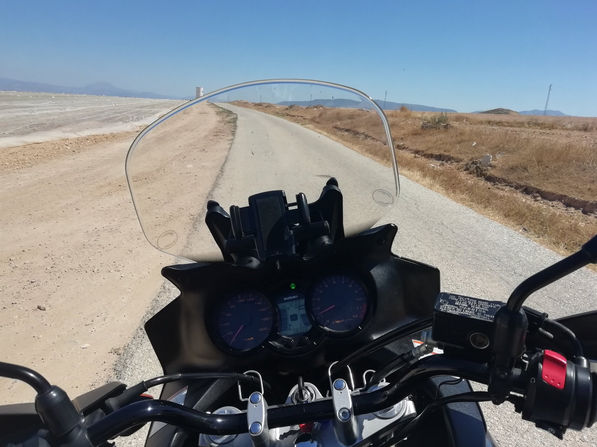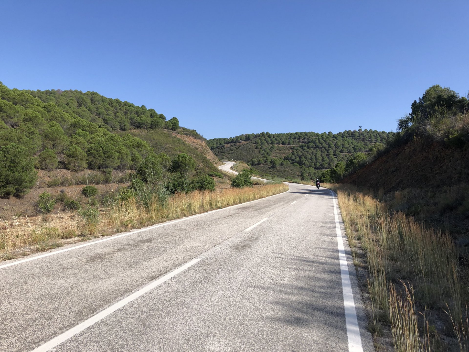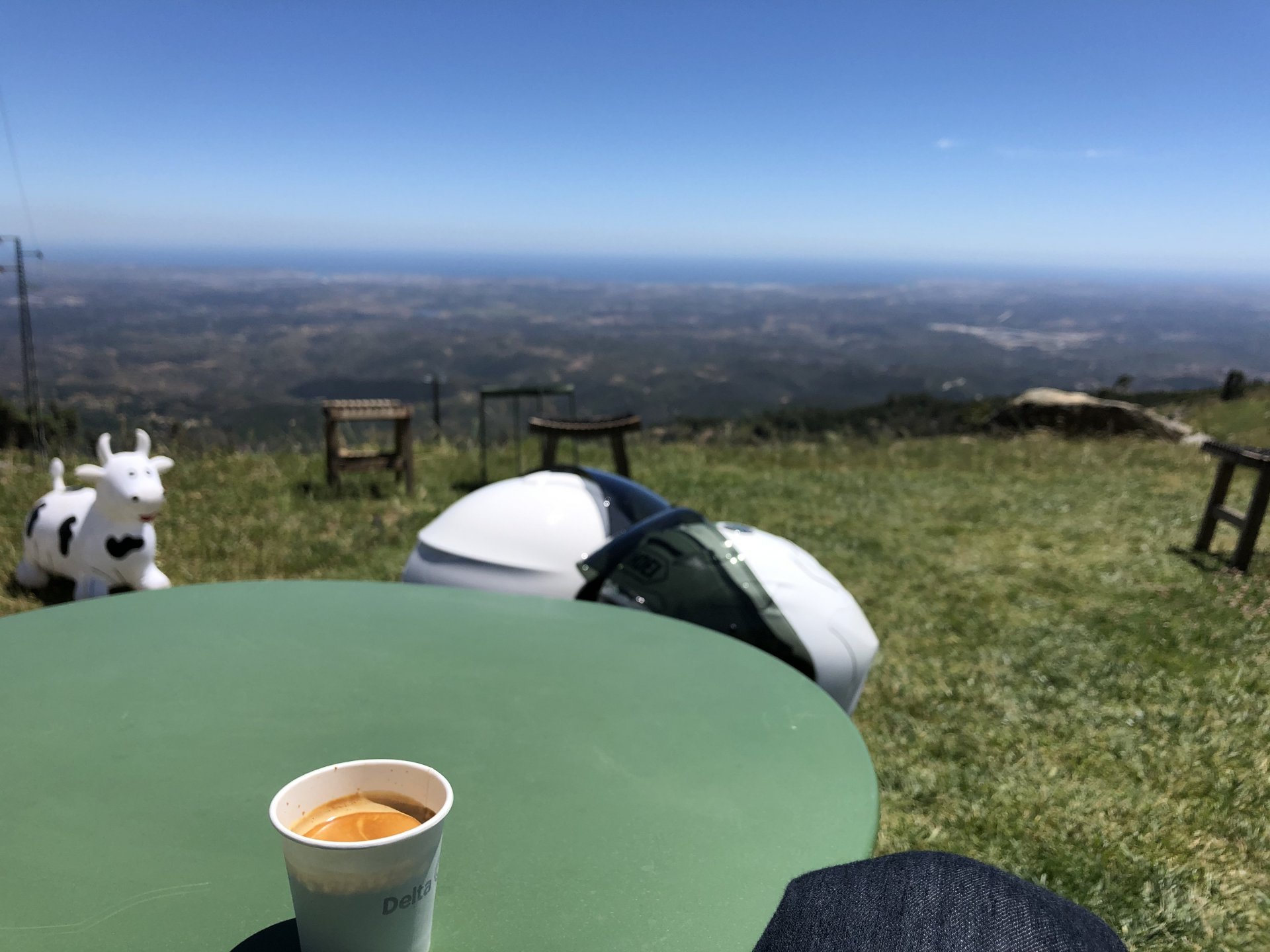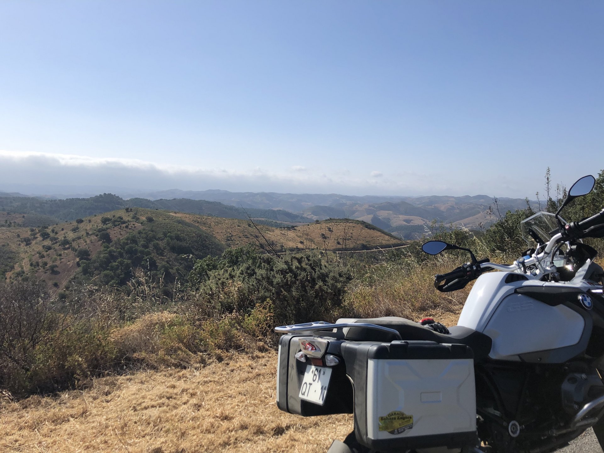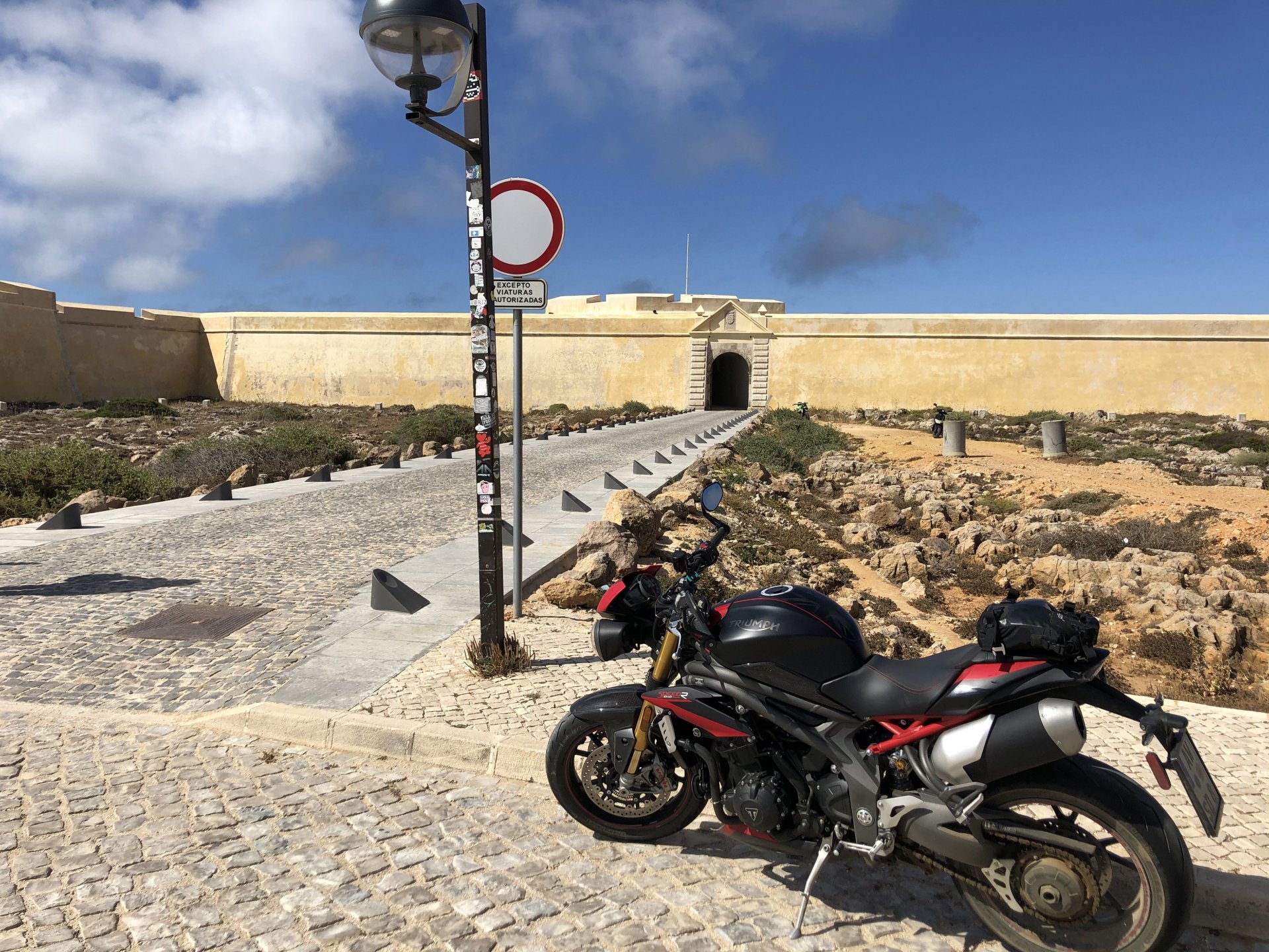 So last two to three days: Leaving Alcoutim we only have a very short ride to get to the sea, but instead I decide to cross the Algarve via inland hills to Sagres, check google maps where it is, as it's a special place for most Portuguese. First, we had a lot of nice mountain roads, I love riding on the hills in the Algarve We try to stop for fuel, get to the station and there is a sign saying "back by 10:00", it was 10 already so we went for an expresso at the local little cafe, run by a cool but loud old lady. Took the chance to buy a ham sandwich to have for lunch later. 15 minutes later, finishing our coffee and getting our sandwiches the fuel station guy comes to let us know he's going back to work, rural Portugal! And thus, we make our way to Monchique, getting used to nice roads now, Sofia was not happy to have roadworks and a detour via 4 or 5km of dusty track, made a mess out of her Triumph, here looking like a rally bike. Climbing high to get to Monchique, Algarve's highest point, we stop for lunch. I'm sure there is nothing wrong with a butter and ham sandwich, even to people with such weird tastes like you guys. Proceeded up the hill and had another expresso at what is arguably one of the best cafe vistas in Portugal. Didn't feel like riding away from the cool weather, plus I knew a great restaurant to go for dinner here, so booked into an old mountain hotel, quite rundown but friendly, and with a great swimming pool. Had a dip, and soaked up before going to dinner, getting the previous days' extreme heat out of my memory. My favourite thing after a ride in summertime, a cool glass of white wine at the end of the day Dinner was a great cress and orange salad, and some kind of pork cut I can't explain, deliciously cooked with fresh coriander, and mint rice. I had a blast, and drank WAY too much, so by the time I got to bed lights went out quite easily. We had such a great dinner, and enjoyed the mountain so much that it was decided to visit Sagres and come back for another night. Sofia took great joy in this as the Triumph isn't at all elegant with the big bag in the rear. Making our way past Odiaxere dam: Now the thing with Sagres is that it is the southwestern most point in Portugal, and Europe as well, this is where we used to have the school that trained master navigators and pilots that would venture around the world on boats, you need only to have a little bit of romance in your heart to feel a sense of adventure coming to this place. To help you, listen to this while you see the pictures, words won't mean anything to you, but this is probably the most portuguese of songs, about sailors missing home when out on sea. It's all about feeling, and that I'm pretty sure you can get from this: Entrance to the Sagres fortification, the tip of Portugal is behind it: Next visit was only 2 or 3km away, and probably my favourite building, it's the lighthouse at Cape Saint Vincent, pretty amazing place. Going back to Monchique, I decided to show Sofia a spot with some great ocean views, takes a little dust to get there though: And again, another cafe picture since that all I do, back in Monchique: Riding back to the hotel, I take a little offroad detour to take a picture of my bike higher than windmills, as it's not that common you can do that: Back in the pool. Let me tell you, a swimming pool or a dip in the ocean is something amazing after a bike ride in the summertime. Dinner that night was octopus and sweet potatoes, slowly fried in garlic and olive oil Day after, Sofia and I parted ways, she goes back home to work and I'll stay in the Algarve a few more days, in Faro to get some sun and salt water on my skin. Thing is, before going to Faro I needed to visit Sagres again. Sagres was my first trip with Maria when I first got the 1150GS, we came to the Algarve for my birthday, and rode down the coast in June. That was the first time I visited this bit of Portugal, and have loved coming here since then as you really get a feeling of adventure and history. However, the feeling I get when coming here is a huge amount of loss and grief, along with a good remembering of those days. So, I needed to come here alone, and I did. I had a good cry sitting there by myself, and I think I needed it as it cleared my mind a little bit. Going away with Maria for a week on my birthday was the highlight of my year, and now these dates are specially painful. A copule of hours later, rode along the Algarve's south coast to Faro, to meet up with my dad. Quick ride to the beach for 2020 first ocean dip, and then dinner on a very warm evening. Dinner was little clams, we call them "conquilhas" but I don't know the word in English for them. Cooked in a little white wine and coriander, with plenty of garlic, taste of the Algarve this is. Then, just to revolt you guys, fish eggs salad. Delicious and fresh. And this morning, back to the beach: So, this is it, the end of my ride around Portugal report. I got to see a lot of new things over the last week, and am a little in love with riding in my own country and my bike, also it's always good for me to be on the bike and on the move in days like these, hope you enjoyed it too.2 points