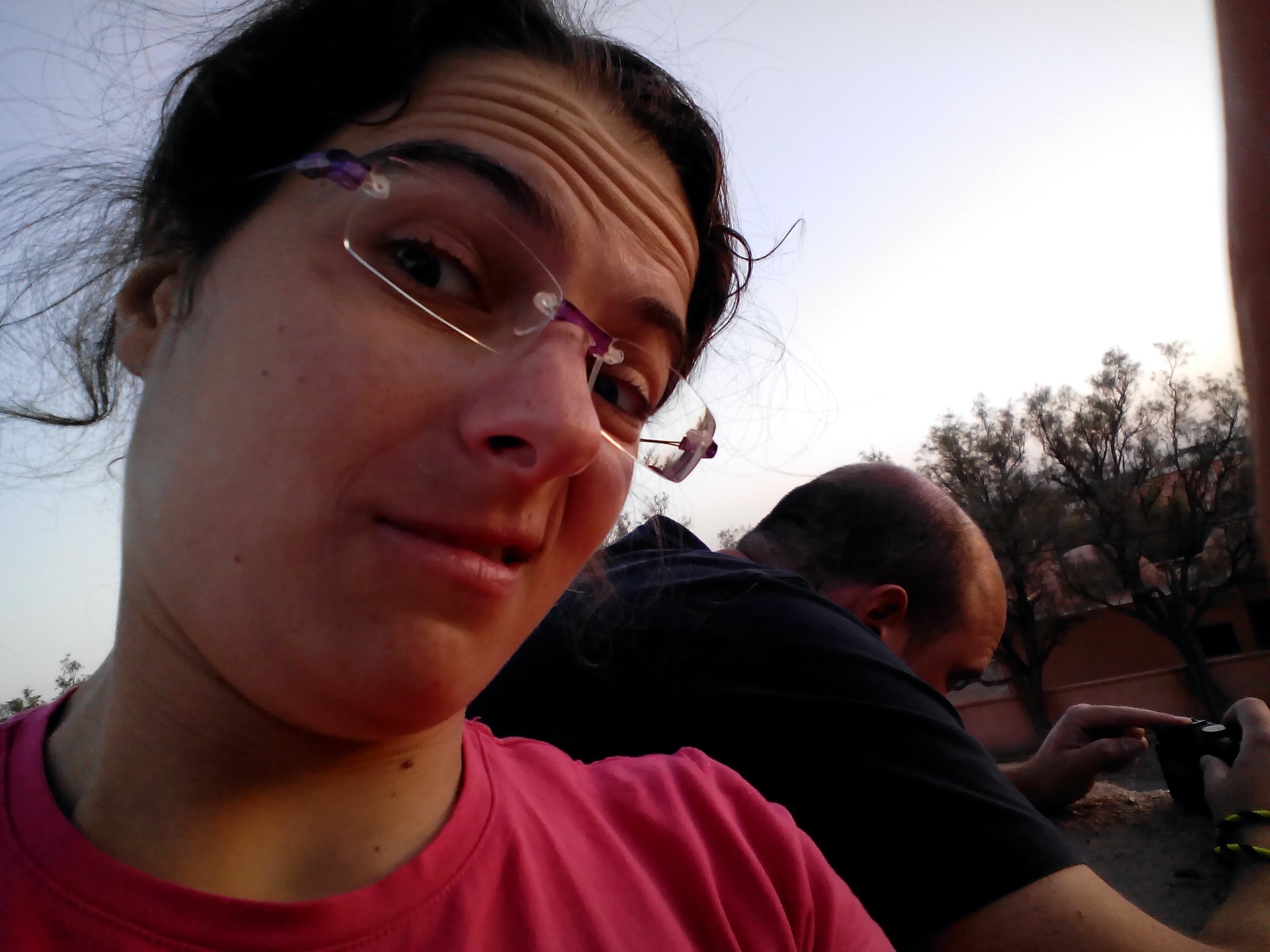 After lunch, we got on our way again, there was a long way to go if we were to sleep where we intended. We were to go through the Gorge du Todra, then to Errachidia and north to where we were to sleep. Maria was back on Rui's bike Good luck passing here when the rains come! After our most touristy stop, Maria's back on with me, and we're off to Errachidia And just like that, we're out of the canyons and onto open space As you can tell by the light, the sun is setting, so we got out of our own way and made a little progress We can smell the desert air by now, but first, a little detour and find our beds for the night. It was obvious we weren't going to make it before nightfall, so we stopped to enjoy the sunset. Sunsets here are amazing, and it was a special moment It was pretty dark when we made it to our accommodation, but we were well received. First a nice shower, then some kind of hot meal I can't remember much about, and plenty of tea. I would have paid good money for a proper bottle of wine4 points