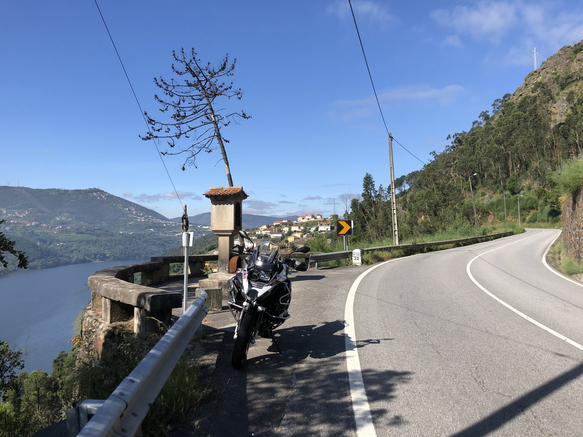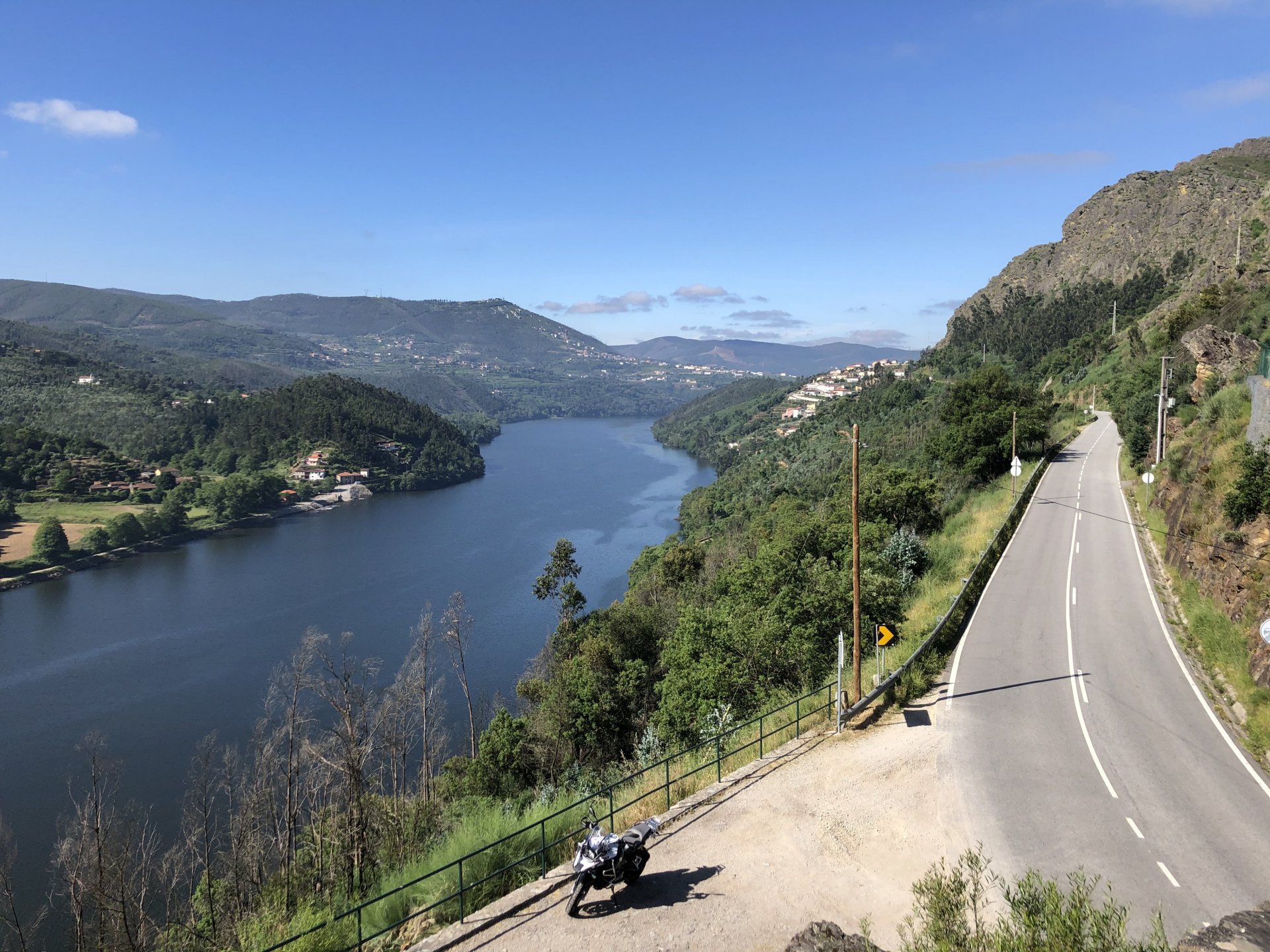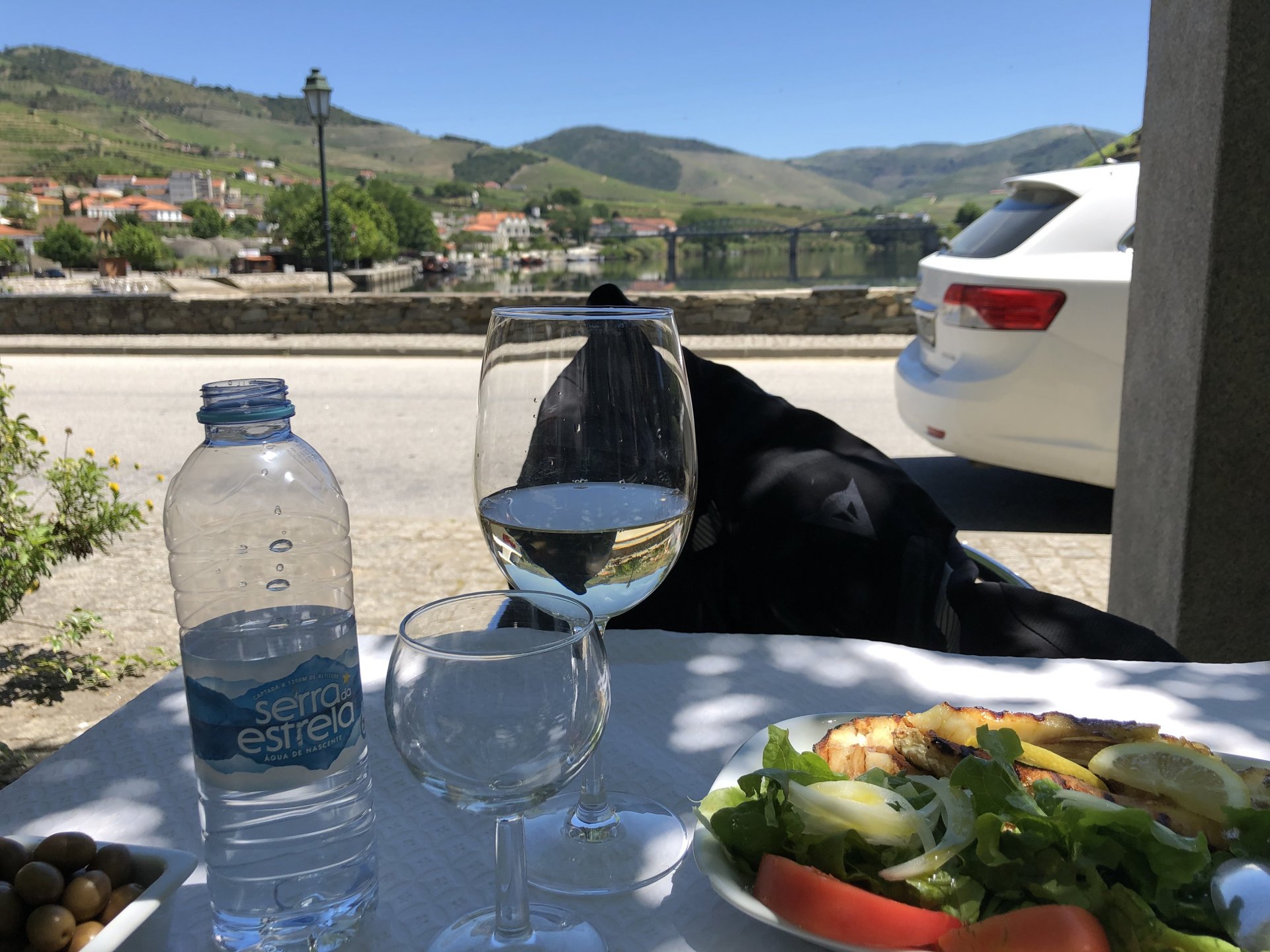 This might be a little repetitive, but if you like vineyard pictures this a good one. Around 9AM left home, 20 minutes later I take the small road along the northern bank of the Douro river, the N108, moving inland away from Porto. It's a nice 20º and I'm glad I brought a long sleeve t-shirt as a mid layer. First stop, to make a phone call, the river mist is starting to clear A few meters ahead I realize there was a much nicer place to take the same picture, so I stop again feeling a little foolish to do so This isn't amazing scenery yet, but what is so great is that it is a nice road to ride, and this place must be about 20km from the center of Porto, which is Portugal's second biggest city. No chance of enjoying the road like this on a weekend, though, as it's full of bikes and cars coming here to meet for a coffee, and that takes away from having the road to yourself. Further inland, in Baião, we start to reach the Douro wine region: Mesão Frio, and there is nothing but vines all over the place. The Douro is the first demarcated wine region in the world, they´ve been making wine here since before the Romans arrived. Around 10km to Régua, maybe, the main town in this area. Didn't take any pictures of Régua, but you're not missing much, it's a nice enough place but not really photogenic from this side of the river. After, between Régua and Pinhão, my goal for lunch, if you take the nacional road on the south bank it'll take you 20 minutes but I decide to take the really small roads on the northern bank even though I have to move a little away from the river. It was a nice choice as those were my favourite roads of the day, really enjoyed my bike there. The Chapel of São Leonardo da Bafaruda, nice and small, surrounded by trees and cool shade in a place that is unbelievably hot in the summer and cold in the winter. Hence the nice grapes. It's got some view behind it: This is a nice enough place, deserving of bringing lunch from home just for a picnic. Maybe an idea for the autumn with some chorizo and cheese. Made my way to Pinhão, amazingly fun roads, very narrow but with good tarmac, although with enough dusty and gravelly corners to make it interesting. Went past a few of the vineyards from the best wine makers, extremely well maintained and pretty. Apart from producing wine they use the farms as luxury restaurants and hotels so they should keep them looking pristine. No pictures of any of that, this detour took a little longer than expected and I was hungry When I get to Pinhão it's getting warm enough, at around 30º. I'm proper hungry and hot, and I forgot my mask so as I'm rolling into town wondering if I'll find a nice place to sit on some shade, I take the first chance I get: Daily specials were perch or mutton stew, given my effort to slim down and how hot it was, I went for the grilled perch with some fresh salad instead of potatoes, not the most amazing fish as daily specials are usually made to a budget, but it was grilled to perfection and juicy, and suited the ride perfectly. I couldn't say no to their polite offer of some cold white wine, but instead of a small jar I asked for just a glass. After eating, I lingered for a while, enjoying a second small glass because after riding through one of the world's best wine regions, it would be just rude not to. Try to take a picture of the eagle that had just catch a fish, and failed miserably, you get the scenery though. Riding back I am feeling sorry for having brought my gore tex jacket. It's not a proper warm jacket but only good up to around 25º. This is the first time I use it in warm weather so now I know. My summer jacket is 300km away at home. On the way back I stop at a hotel I stayed once before, but that time in a cold February drive with Maria, and wished I had brought a change of clothes and shorts as what I really felt like was checking into somewhere with a swimming pool and stay there. On the way back I returned by the south bank of the river. This is meant to be Portugal's best driving and riding road, but I fail to see why. Also, I start getting a LOT of polen alergies, sneezing horribly, congested sinus, the works. Having no mask I choose not to be a twat and avoid going to a pharmacy and freak everyone out by sneezing uncontrollably with no mask ? , but there are no pictures of the return ride either. Getting home, after a shower I start writing this and fall asleep on the sofa, to be waken by a call from my mate David who has already gotten some nice steaks for the grill and asking if I'll take long, so I am quick to get there and only return home by 3AM ? It was a nice day.2 points