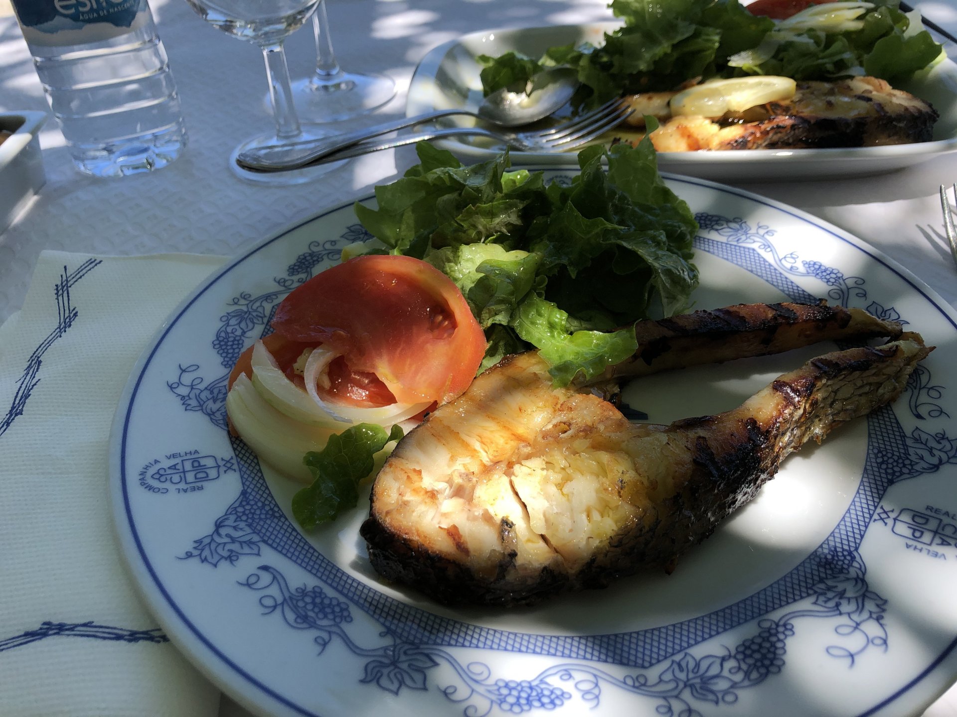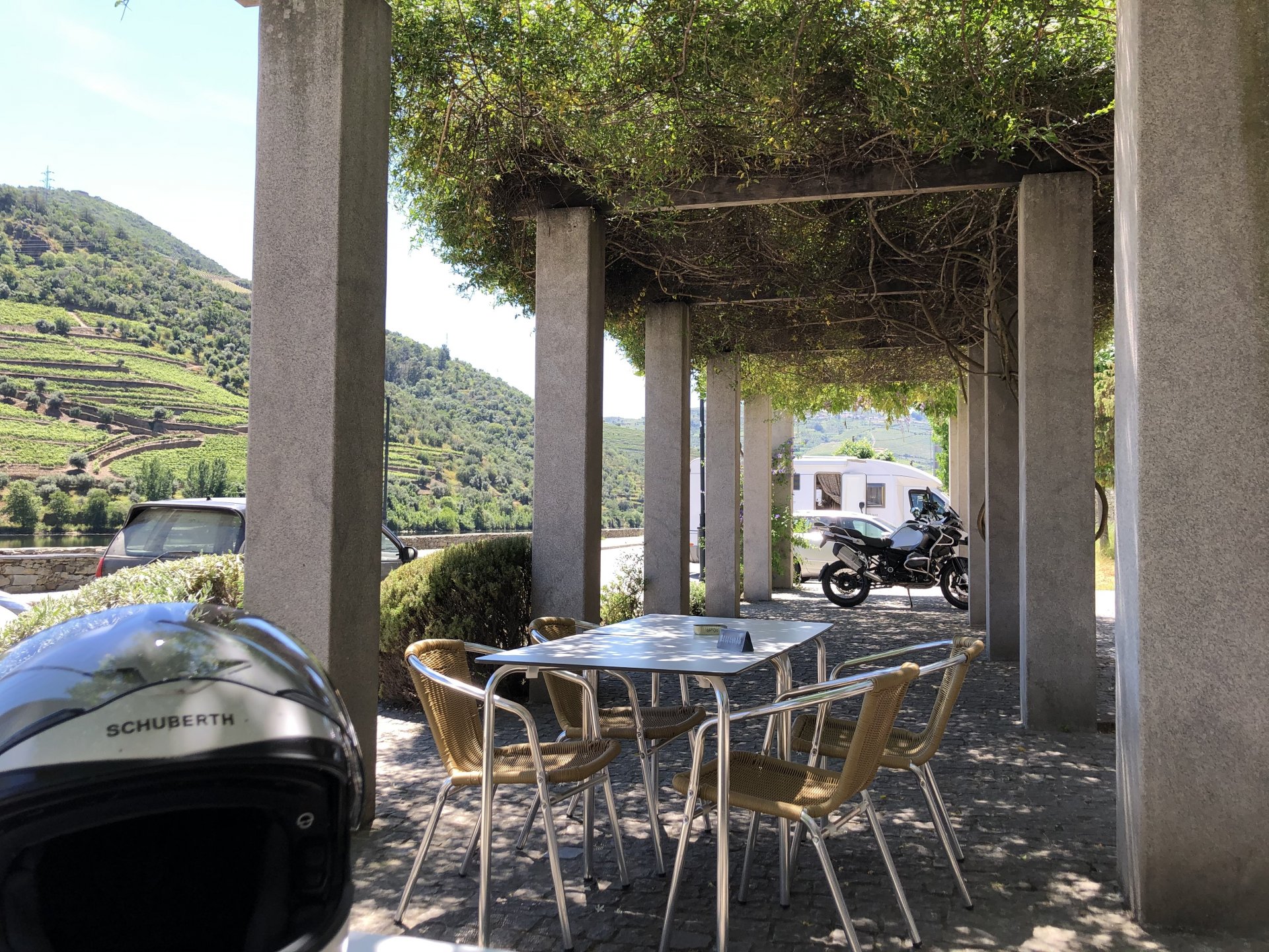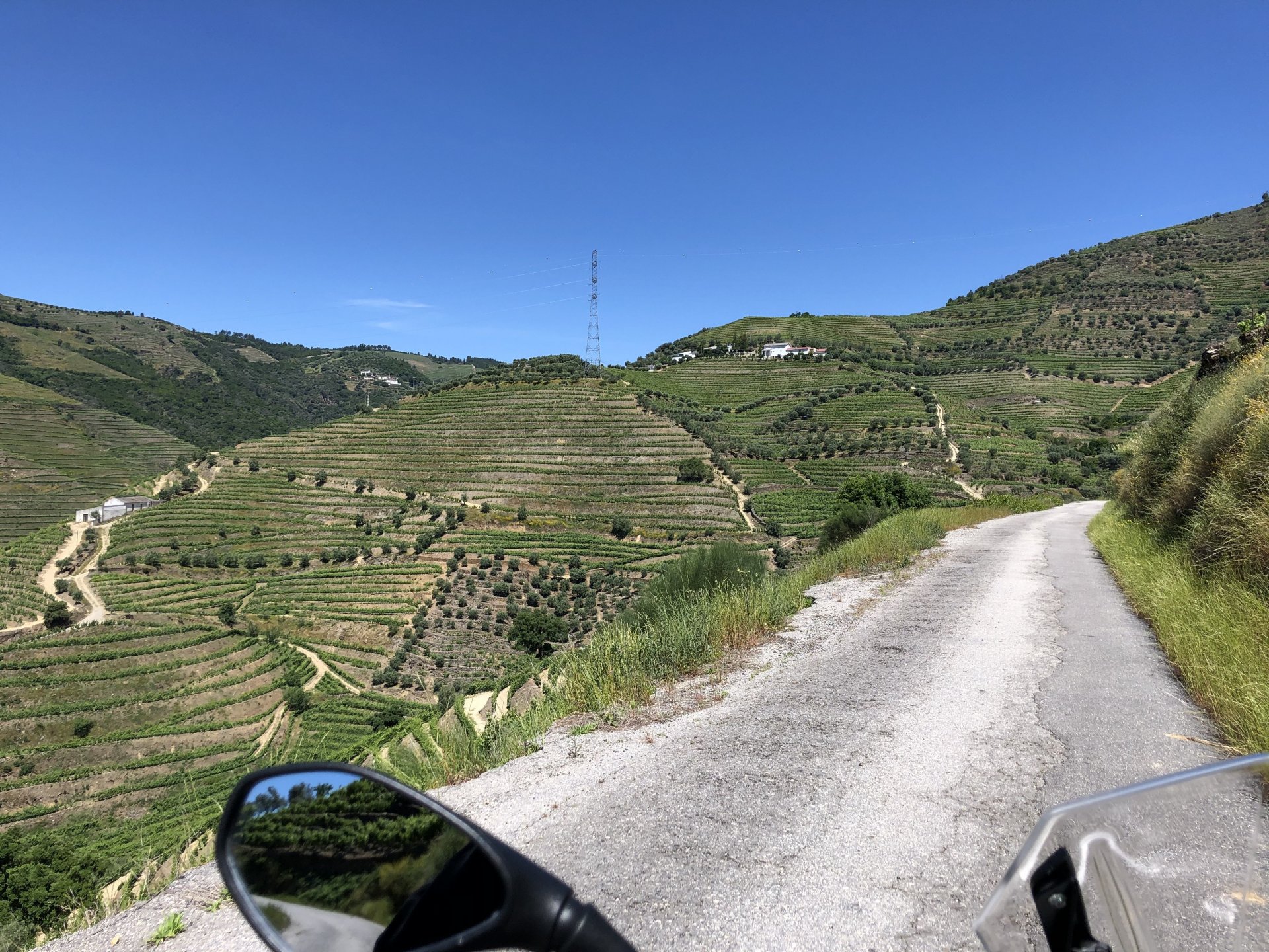 This might be a little repetitive, but if you like vineyard pictures this a good one. Around 9AM left home, 20 minutes later I take the small road along the northern bank of the Douro river, the N108, moving inland away from Porto. It's a nice 20º and I'm glad I brought a long sleeve t-shirt as a mid layer. First stop, to make a phone call, the river mist is starting to clear A few meters ahead I realize there was a much nicer place to take the same picture, so I stop again feeling a little foolish to do so This isn't amazing scenery yet, but what is so great is that it is a nice road to ride, and this place must be about 20km from the center of Porto, which is Portugal's second biggest city. No chance of enjoying the road like this on a weekend, though, as it's full of bikes and cars coming here to meet for a coffee, and that takes away from having the road to yourself. Further inland, in Baião, we start to reach the Douro wine region: Mesão Frio, and there is nothing but vines all over the place. The Douro is the first demarcated wine region in the world, they´ve been making wine here since before the Romans arrived. Around 10km to Régua, maybe, the main town in this area. Didn't take any pictures of Régua, but you're not missing much, it's a nice enough place but not really photogenic from this side of the river. After, between Régua and Pinhão, my goal for lunch, if you take the nacional road on the south bank it'll take you 20 minutes but I decide to take the really small roads on the northern bank even though I have to move a little away from the river. It was a nice choice as those were my favourite roads of the day, really enjoyed my bike there. The Chapel of São Leonardo da Bafaruda, nice and small, surrounded by trees and cool shade in a place that is unbelievably hot in the summer and cold in the winter. Hence the nice grapes. It's got some view behind it: This is a nice enough place, deserving of bringing lunch from home just for a picnic. Maybe an idea for the autumn with some chorizo and cheese. Made my way to Pinhão, amazingly fun roads, very narrow but with good tarmac, although with enough dusty and gravelly corners to make it interesting. Went past a few of the vineyards from the best wine makers, extremely well maintained and pretty. Apart from producing wine they use the farms as luxury restaurants and hotels so they should keep them looking pristine. No pictures of any of that, this detour took a little longer than expected and I was hungry When I get to Pinhão it's getting warm enough, at around 30º. I'm proper hungry and hot, and I forgot my mask so as I'm rolling into town wondering if I'll find a nice place to sit on some shade, I take the first chance I get: Daily specials were perch or mutton stew, given my effort to slim down and how hot it was, I went for the grilled perch with some fresh salad instead of potatoes, not the most amazing fish as daily specials are usually made to a budget, but it was grilled to perfection and juicy, and suited the ride perfectly. I couldn't say no to their polite offer of some cold white wine, but instead of a small jar I asked for just a glass. After eating, I lingered for a while, enjoying a second small glass because after riding through one of the world's best wine regions, it would be just rude not to. Try to take a picture of the eagle that had just catch a fish, and failed miserably, you get the scenery though. Riding back I am feeling sorry for having brought my gore tex jacket. It's not a proper warm jacket but only good up to around 25º. This is the first time I use it in warm weather so now I know. My summer jacket is 300km away at home. On the way back I stop at a hotel I stayed once before, but that time in a cold February drive with Maria, and wished I had brought a change of clothes and shorts as what I really felt like was checking into somewhere with a swimming pool and stay there. On the way back I returned by the south bank of the river. This is meant to be Portugal's best driving and riding road, but I fail to see why. Also, I start getting a LOT of polen alergies, sneezing horribly, congested sinus, the works. Having no mask I choose not to be a twat and avoid going to a pharmacy and freak everyone out by sneezing uncontrollably with no mask ? , but there are no pictures of the return ride either. Getting home, after a shower I start writing this and fall asleep on the sofa, to be waken by a call from my mate David who has already gotten some nice steaks for the grill and asking if I'll take long, so I am quick to get there and only return home by 3AM ? It was a nice day.2 points