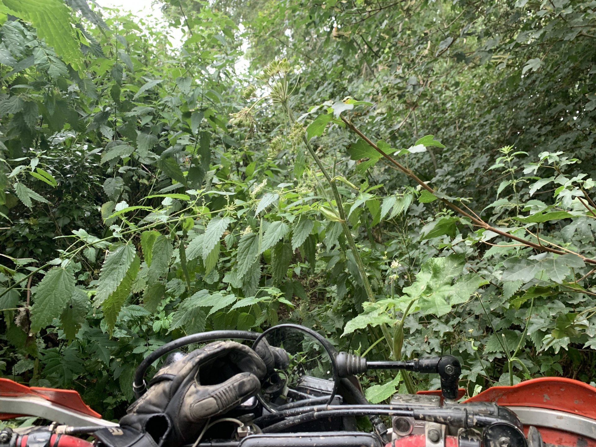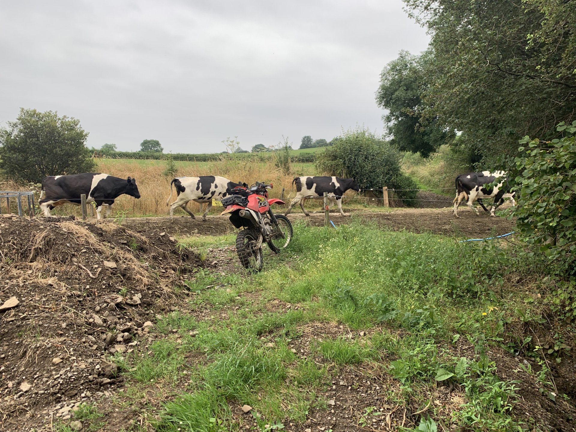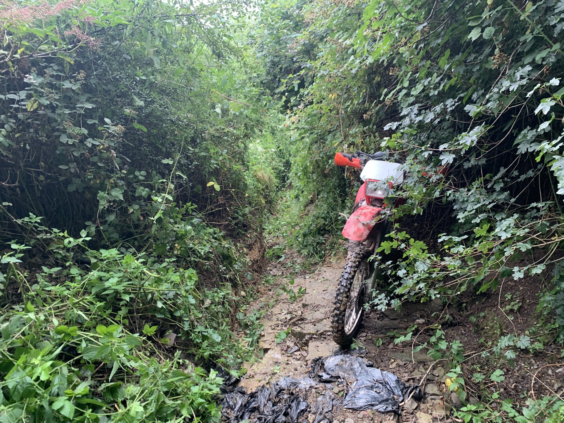 Wanted to have a couple of hours out today to check out two lanes out Llandegfedd way but it turned into an afternoon of trail riding and extreme exercise. The weather conditions and the ground after the rain last night were perfect for trail riding not too hot and loads of grip with no dust. No planned route just followed my nose taking in a few lanes on route there and back didn't take many photos on route This one is heading up to Twmbarlwm mountain stopped to open a gate a bit tricky starting off again on the loose ground This is the view in the opposite direction if it wasn't so murky you could see the Severn bridge from here i did give Bob a wave as he's in that direction Almost On the top This was the first lane i wanted to check out as i hadn't done it before, Its only a short one The thought i hadn't done it before disappeared here as i remembered this drop i had been on a ride not too long ago when we rode this but was following not leading so you don't know where your are or where you've been as a follower This was the other lane i wanted to check out i have done it before but couldn't remember it so wanted to do it again. its all up hill in this direction Just inside the gate was this sign for the ones not in the UK that means max speed of 60mph for us, i later discovered you needed to be doing 60 to get up here On the other side it had a 30mph sign to tell you to slow down as you enter the farmyard The track was a little washed out At this point i discovered a kickstart only bike was not a good idea in this lane i stalled it here and guess which side the kickstart is on. Ended up having to drag the bike to here so i could get a swing on the kickstart. Had to let the bike cool because it was suffering a bit which also gave me a chance to cool down i also trimmed some of the nettles and brambles to make it easier next time and then realised there wont be a next time dopey bastard I thought that was the last of the tough bits but there was more to come the slab rock was incredibly slippery and cambered to the right which is where the rear wheel went every time i touched the throttle, turning around wasn't an option as it was far too narrow and i'm too bloody stubborn so it was tough it out it was also overgrown When i eventually got out i had to adjust the clutch cable as i'd lost all the free play on it, never had to do that before. Another welcomed rest here waiting for these girls to exit the milking shed on their way back to the field I decided to head home from here as i was fooked took the road past Llandegfedd reservoir the water level looks low I did do a few lanes on the way back they were also overgrown reminding me why i normally ride this area in the winter time5 points
