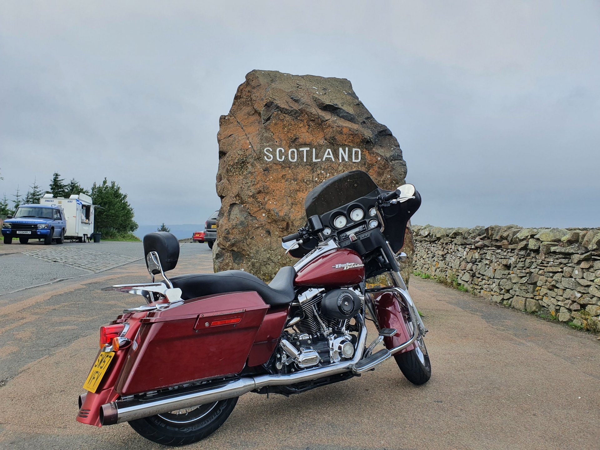 Finally got around to writing this up, I have been way too busy with union stuff at work. A couple of weeks ago I went for a run out to the border with England while it is still open, if the Scottish Nazi Party get their way it will be closed at some point. I went down the A68 which would be a great motorcycling road if it wasn't for all the speed cameras but that isn't much of an issue for the tractor. As there have been complaints of not enough pictures I went out of my way to take some. So here we are just outside Edinburgh, with those lovely wind turbines. Who doesn't love a nice wind turbine? Obligatory picture of the beast. Some miles later I headed off the main road towards my first planned stop. Which was Scotts View, said to be Sir Walter Scotts favourite view in Scotland. It was an even better view this time as this beauty was there. I continued along the lanes and was going to take in one of the Abbeys in the area but it was closed still so I headed to the Wallace statue that looks over the Jedburgh Valley, it was a bit of a walk though the woods to get there, luckily I wasn't raped by trolls. They live under trees like this. Here is the man himself. and his view of the lands he won back for Scotland before he made a twat of himself and suffered a brutal end at the hands of the English. I didn't go down the hill as there were strange noises and I am a lazy fucker. I headed back to the bike, it was at this point I realised I should have asked more questions of the person I spoke with earlier who said I might see "raptors" near the Wallace statue, I looked and looked and did not see any hawks in the area at all. However on the path back through the woods I met this bastard. Luckily a couple of English fatties walked up at this point so as my reptilian friend and his family took to eating this feast that were too wobbly to get away I took a swift walk to the bike and left. I headed back to the A68 and did not stop until I got the border. Where I turned around and availed myself of a cup of tea and a cheese burger and a cigar before heading back. I even got picture of some porn for Pete, these are English sheep.6 points