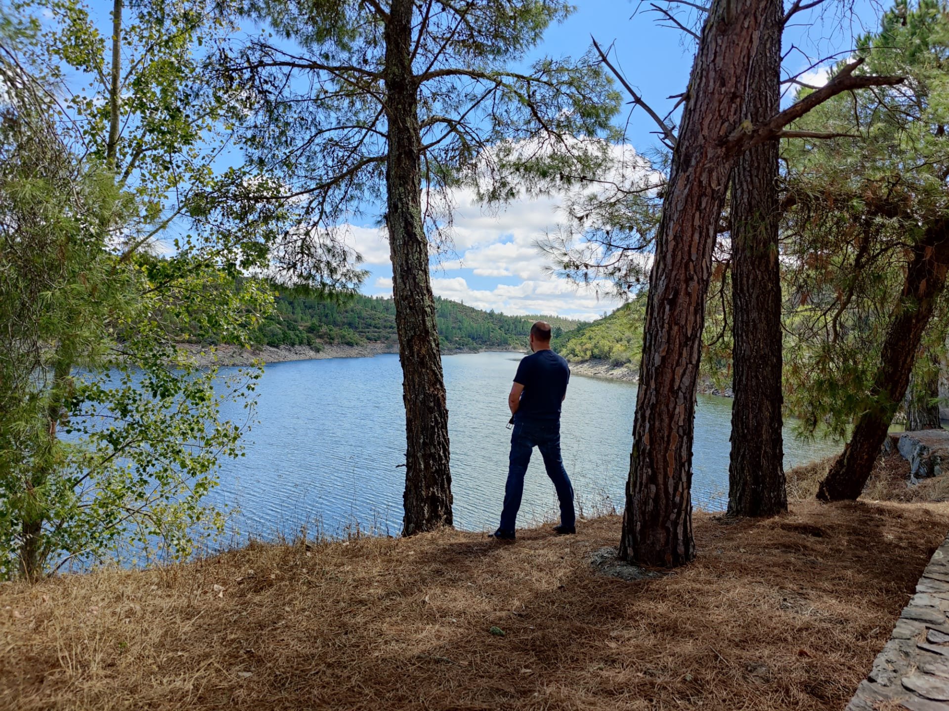 Almost two weeks ago I spend a couple of days riding around Alentejo with @Sofia, I didn´t take many pictures of the roads themselves as we covered areas that I´ve posted several times before in a few of my amazing ride reports This is more of a mood and food report, with a few pictures of old stuff we found along the way. First day, a day ride near my home, left mid morning and came back mid afternoon, only about a 100km roundtrip. First stop was in Santarem, for a coffee at the "Portas do Sol" (Gates to the Sun) old fortification walls overlooking the Tejo river and the Leziria. The Tejo looking rather sorry for itself mainly because of our esteemed neighbours from the other side of the border: Morning coffee next to a statue of D.Afonso Henriques, Portugal'l first king who conquered these lands and further south from the Moors. After a very short ride over that bridge you see in the previous pictures, we went to Almeirim to have a spot of lunch and visit a local wine producer, stopped by our table, a great older 50cc bike, so typical in Portugal and with amazing patina. It started first kick and rode off with hardly an effort. Lunch was mainly coal grilled codfish with garlic and olive oil, and a tomato salad. It was quite great. Fiuza, the winemakers whose shop I went to visit had the place decorated with a pretty cool mural outside The ride home was uneventful, through farm roads during very busy tomato harvesting season with plenty of overloaded trucks driving too fast. Next day, we left for the Alentejo, brief stop to show Sofia the RARET broadcasting station And onwards, we stopped for a few phone calls and while Sofia was busy I took a few pictures of the riverside in Coruche. We had amazing skies that day, and plenty warm enough. Coruche is very big on bullfighting, and although I prefer to see bulls lose on the hills than being tortured on the arena, there is a specific form of bullfighting that I do appreciate. The "Forcados" face the bull head on, and when it charges they grab it by the horns and hold on while a few of their team mates grab it and try to stop the bull. Simple as that, it does goes wrong for the guy in front sometimes... here are a couple of pictures in a small outdoor exhibit where we were stopped. Carrying on inland, casually cruising on a national road I spotted a secret spot that makes the best "Empadas" ever, which is some sort of small pastry usually filled with chicken. Sofia is a fan and I made an emergency exit to go have some along with coffee for breakfast. The lady that makes the famous pastries was on holiday so no Empadas, instead a delicious sort of Rissol complemented the expresso perfectly. Took these pictures to remember where the place is, I stopped by once with Maria and never can remember where it is except when passing by chance, now I now. A few kms ahead and we stopped by Mora, in a small river nature reserve Last time I was here was on Christmas day two years ago, I saw a beaver cross the street while riding over, today there were plenty of people about and the wildlife was probably more reserved. A nice road and warmer weather took us to another dam: Barragem do Maranhão was a relaxing stop Riding further to the warm Alentejo, I took this moving cockpit picture of a loaded trailer being towed by a tractor, weird distortion from the moving phone camera A few kms ahead, and we stop at another water crossing, this time on a narrow bridge On the pictures above you can see my hillbilly top case. It's an empty cardboard box meant to be filled with cheeses and preserved meats for dinner with hour hosts. As i said, we had great looking skies throughout this day: Stopping for lunch at the small town of Fronteira, we sheltered from the heat under some shade outside a cafe/restaurant and had some ham sandwiches and an "empada" After a stop in a cheese maker's shop, where we filled my cardboard top box with delicious things, we had only a short ride to Estremoz where Sofia had a meeting in the center of town. While waiting I went to buy some local bread to go with the meats and sat on a terrace under the shade and had some water. There I became quite disturbed to see the most evil looking statue I've ever seen. It's a boy Satyre: I swear that thing has an expression of wickedness while it's planting evil thoughts of destruction and mayhem on your mind. Walking past a few food stalls it smelled of Moroccan markets, pretty colors too Some enormous pumpkins: Translation to the two teas closer to the camera: "Tea for Hemorrhoids" and "Tea for Menstruation" Having some time to kill before meeting Sofia's friends at their place, we went to a wine farm intended on buying a few bottles to complement the food we were already carrying, "Herdade das Servas", a nice place near Estremoz: There, we found an Olive tree aged 360 years: And one aged 1100 years, still producing fruit, it's great to think what this tree has seen in it's life: After picking a few bottles, we had a mini tasting outside, just a sip to go with some cold water this is me packing a six bottle box under the cheese and meats box, all super safe. It was only a short ride to Sofia's friends farmhouse, It's an old farm house, first built to the farm hand, a place full of soul and character: Sun was starting to get lower: And I decided to go see some cows closer and marvel at the low light and golden grass, the black cow wasn't too happy about my unannounced visit and proceeded to stomp around, so I made my way back to the house: We had a delightful evening, eating snacks and soup and drinking wine and talking into the night. No pictures of this. In the morning I planned on leaving early but that failled, the three mares that live in the property escaped their fence and were happily running around having lost their way back in. After running around a little on account of the mares, we proceeded to get lost in talks yet again, and only ended up getting on the road near the end of the mornin