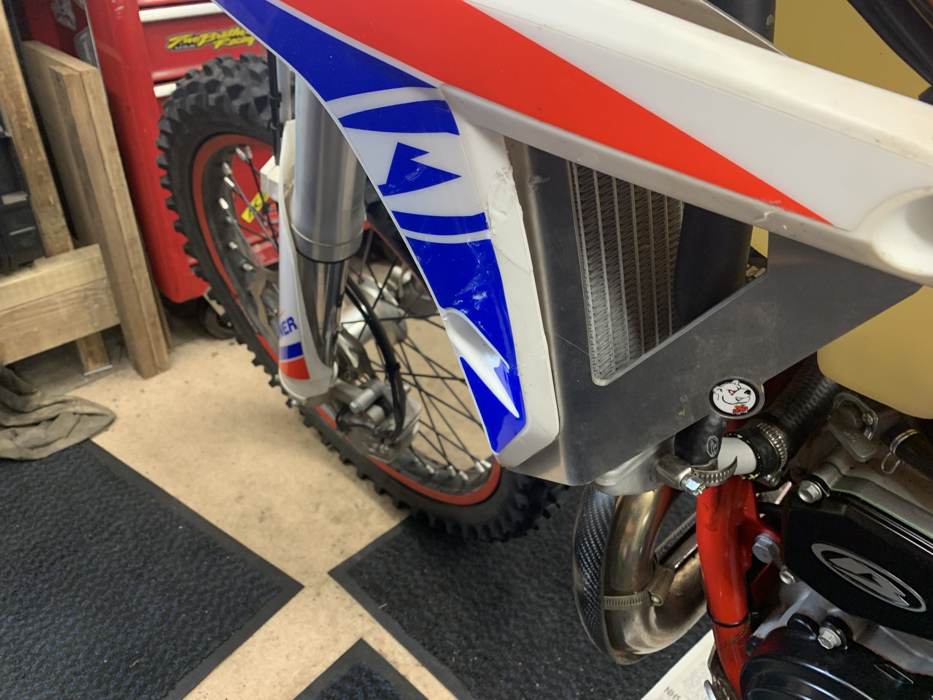 Had a great ride with the TRF again yesterday perfect weather for trail riding, we started with 11 riders then went down to 10 and later went up to 13 which went back to 10 and then went up to 11 again as we bumped into other riders and a few dropped out on route. We were in the Pontypool and Usk area again, everything is totally different after the recent rain we've had didn't have time to take photos as the ride was flowing so nicely. Only incident for me was I dropped the bloody bike fooling about on the way to the meeting point not 10 minutes from my house and bent the radiator. I think the rad brace i fitted payed for themselves yesterday. I had time to take this as there's someone laying down in the stream ahead Dreaded roman road in Mamhilad again those rocks were slippery This is what almost fucked my rad, i was practising riding over it when my footrest caught the piece of concrete sticking up and stalled the bike there was nowhere to put my foot down so the bike fell over landing on that large piece of concrete with the radiator taking the full impact. Assessing the damage when i got home I think without the brace on i would have been pushing it home7 points