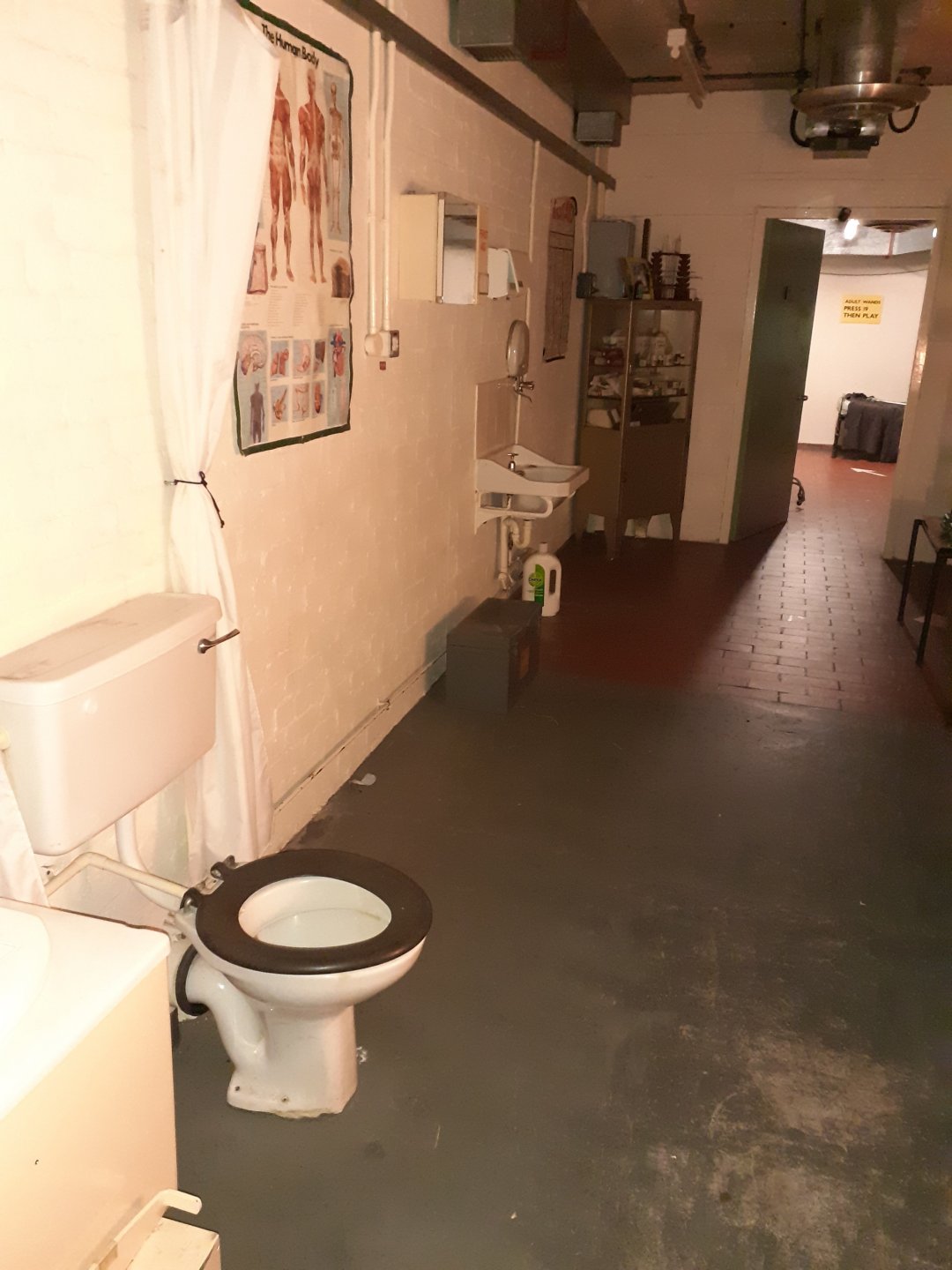 Same as up top I reckon, they have both doors open through the day. Took about an hour and half, would have been longer if I had watched all the films, but we all saw Protect and Survive when they released it in the 80s, so I know how to wrap grandma's body in plastic and label it clearly and to wipe down my tins of food before opening them to get the fall out off them.5 points