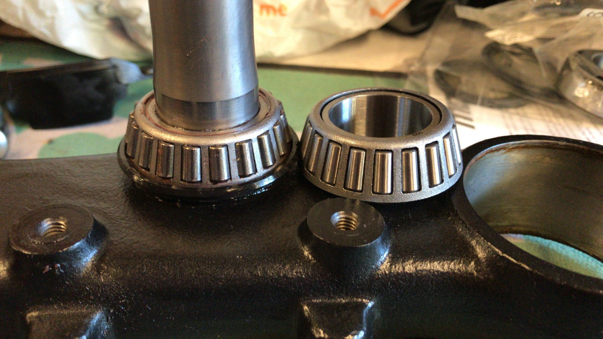 I wouldn't say the were 'gone' . Having looked at them the bearings look ok and the bottom race is fine but the top race does have a mark on it. I will look at it closer (my eyes are shite) and then decide what to do . I could just re-grease them and polish the mark out on the top race and re-fit them. These bearings take a lot of punishment on a dirt bike and you've seen the sort of shit we ride in. On a road bike you'd expect them to do 30 -40,000 miles before replacement.3 points