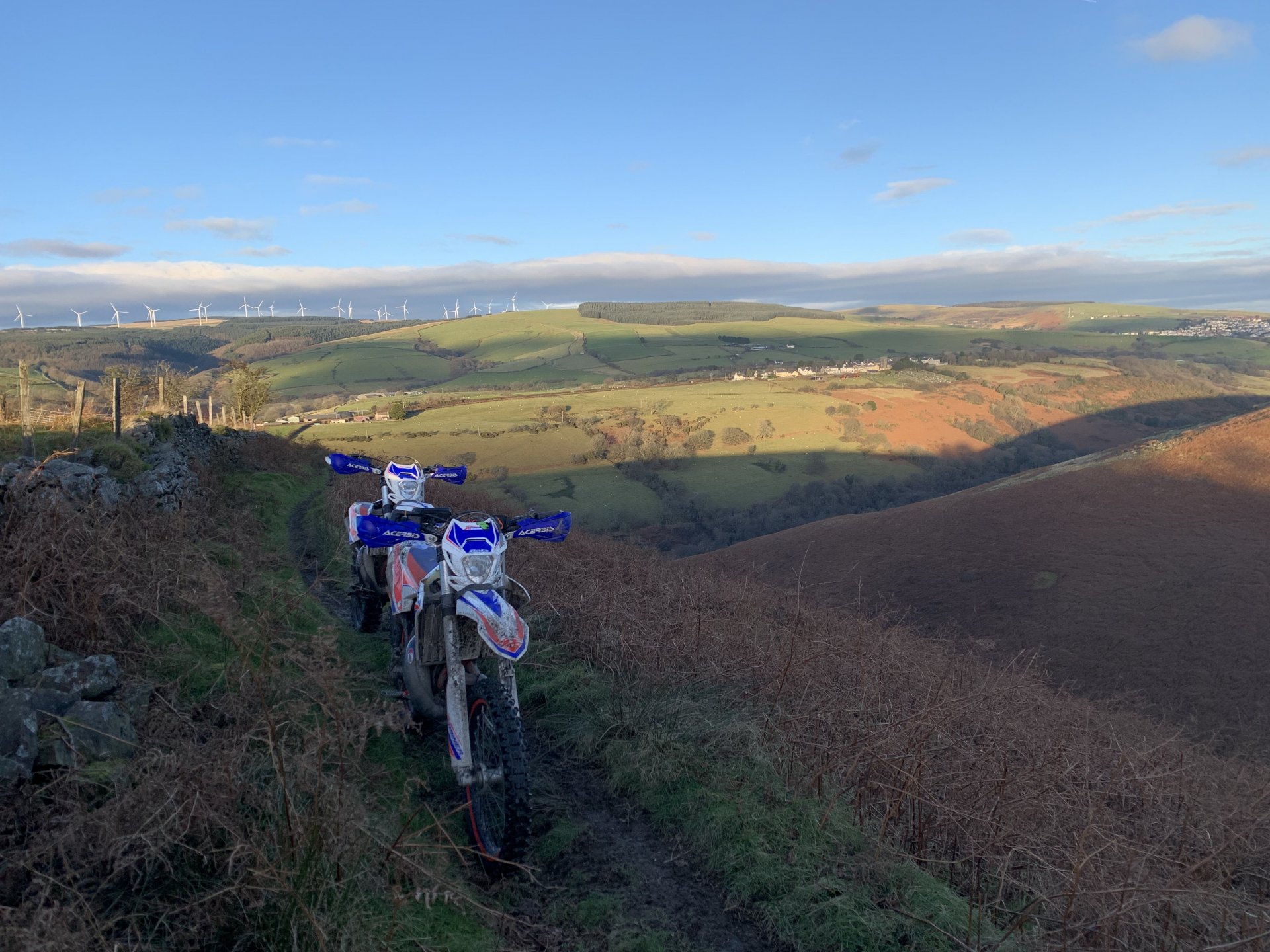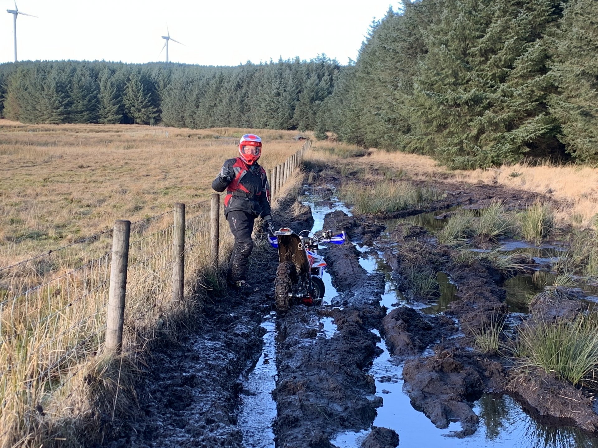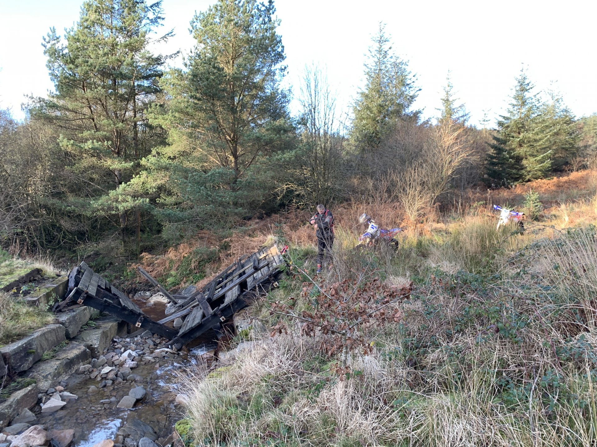 My mate was keen to get out on the Beta's today so didn't bother with the 650. It was a bit chilly setting off this morning but the trails soon warmed us up It was a bit slippery out there today hit the deck a few times but the only time the bike hurt me was before i left this morning moved the bike in the garage and the side stand flipped up and twatted me on my bare shin been hurting all day Allot of this shit today real good workout Bridge was out so had a little look about before turning around Someone left a memorial here its its a nice spot to rest1 point