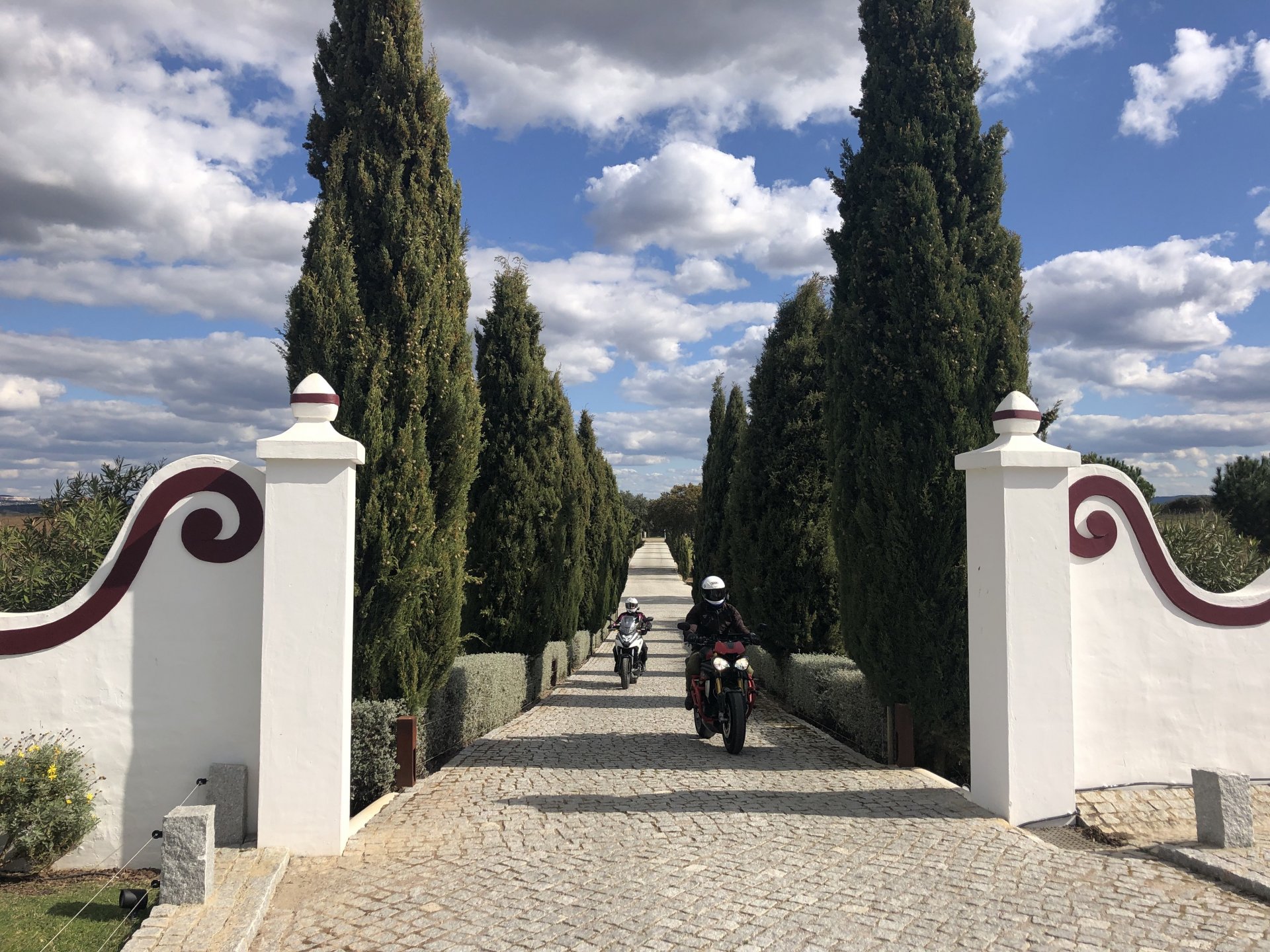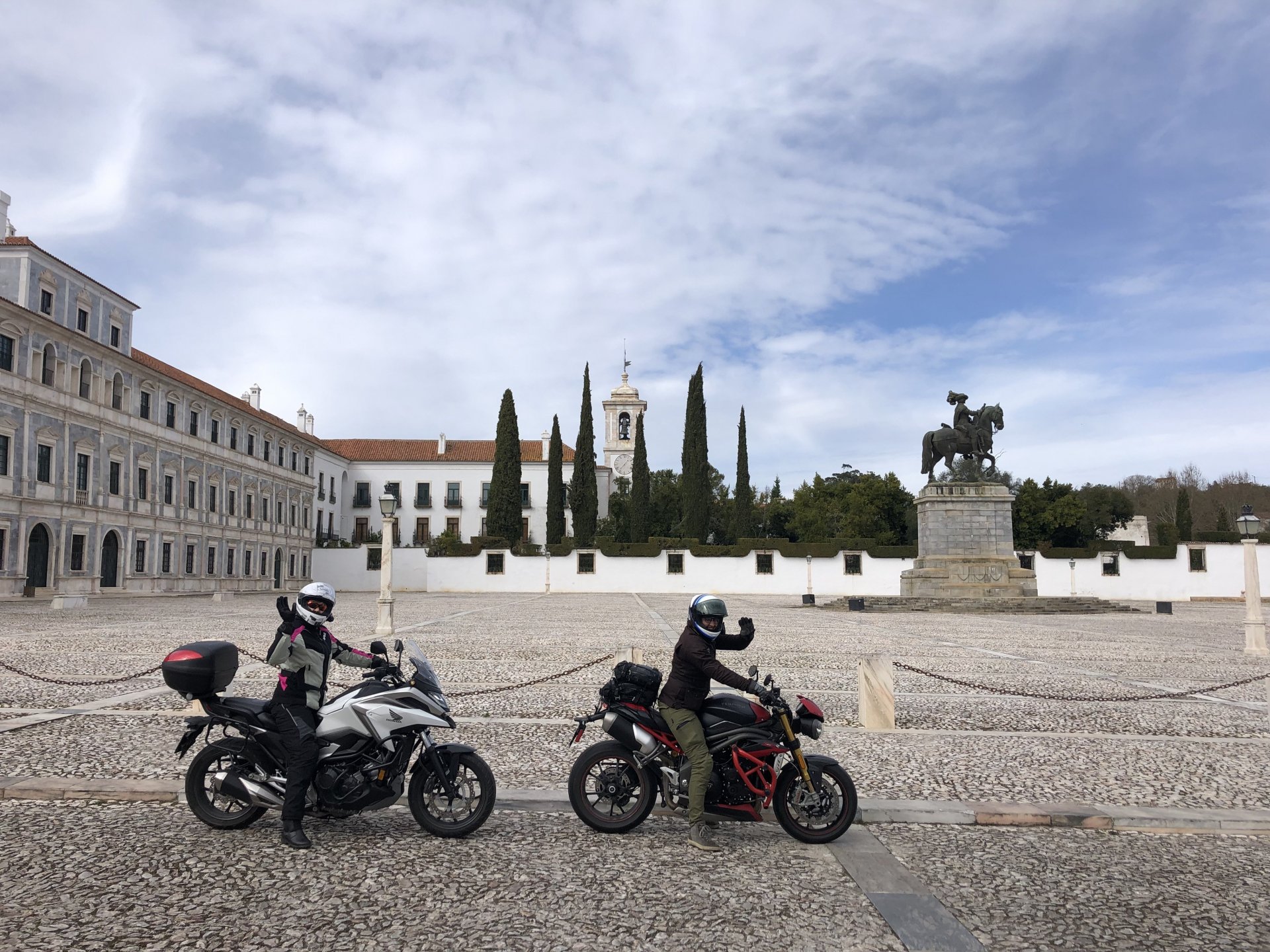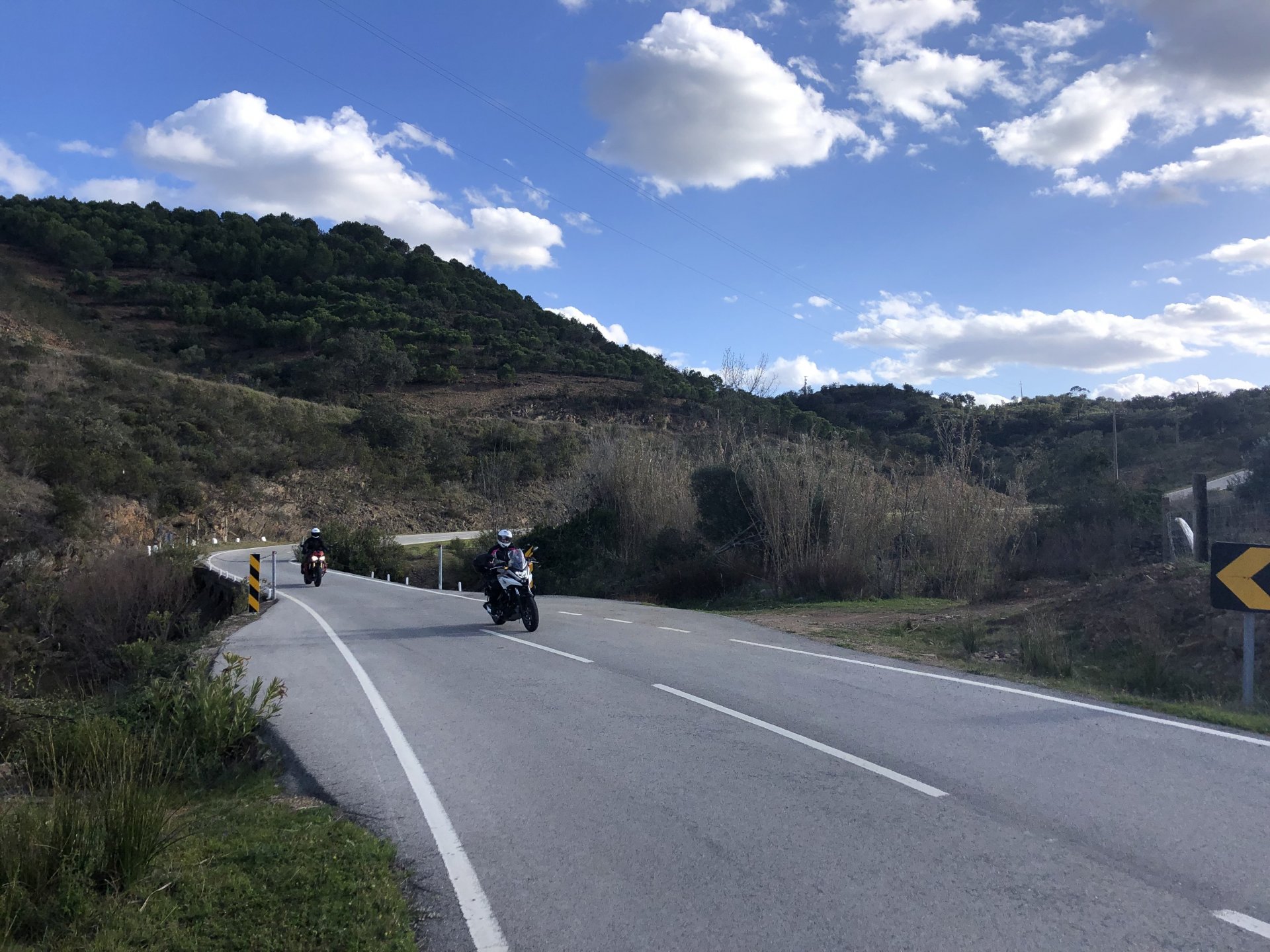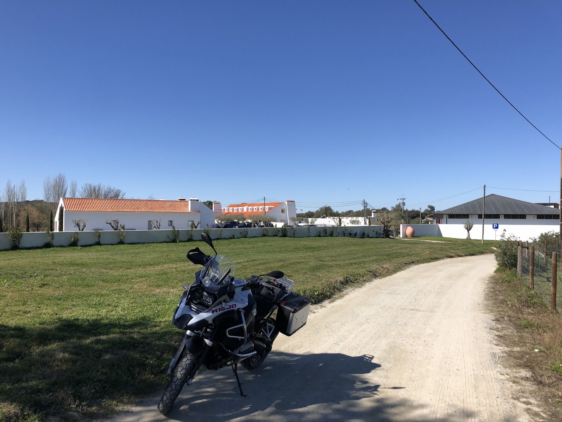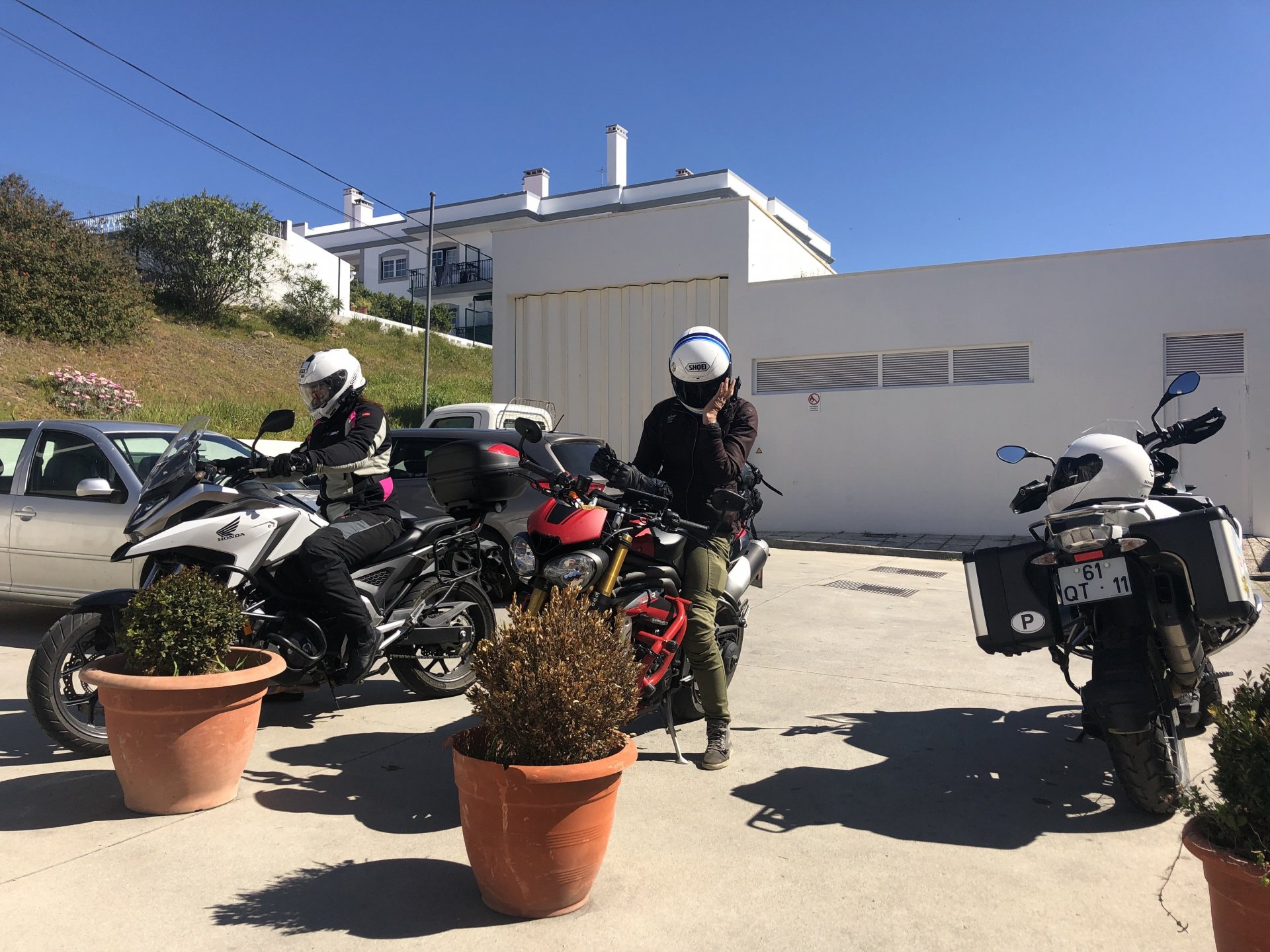 Sofia's very best friend came over from England to visit, and rented a bike for four days to go and see some of Southern Portugal. Sofia was going to take her on a short tour around Alentejo, there was warning of really bad weather, but still I decided to join for one day before going back up for work. Ended up aborting that plan and we spent a nice three days riding around. Screw work and long live motorcycles and good times! On a sunny but cold Sunday morning I set off from my place on my own, stopping for a breakfast expresso on my favourite place, Then rode into Alentejo on nice and empty roads, touring gently and enjoying the place, I had missed these more open spaces We were meeting up an hour's ride ahead, and I had some time to kill while the girls where picking up the rental bike and making their way to the meeting point, so I got off the main road and explored a little Found an amazing dirt road leading up to a small hotel and farm, I got a little excited and the day's top speed was certainly achieved on a straight dusty dirt road, that makes me quite happy These flowing corners made me wish for more aggressive tires, so that I could probably properly throw myself onto a tree playing Malcolm Smith Got to the agreed meeting point, had a snack consisting of a local typical chicken pastry and waited, and waited, and an hour later my company arrived: Barbara, used to Ducatis, quite enjoying the NC750's ease of ride and promptly declaring it the ideal rental bike for touring! I sat on it and think it's too low (as she does), it might have been a little lowered, I have no idea. After their midday snack, we rode off with the two best friends catching up ... on and on, relentlessly ... on the intercoms ... I took us to the castle at Arraiolos, which to me is one of the nicest views in the Alentejo region We then proceeded to Estremoz, our stay for the night, and I amused myself taking pictures of my rear view mirror, most of them out of focus but a couple of usable ones A stop to show Barbara a local winery, where a very small taste was had just before reaching the hotel A nice scenic road and we made it to the convent where we'd stay for the night The next day we had something to sort in Estremoz and that took all morning, which meant we left late. A stop for lunch near the Ducal Palace of Vila Viçosa was not avoided, though Quick stop by a famous dolmen... And then visiting the Castle of Monsaraz, which is nearby to where we'd stop for the day, didn't ride much at all that day but spirits were high: An aperitif was had at sunset while temperatures dropped, the cool fresh air had really opened my apetite. Showered and warm I fetched a little local cheese and wine, all they had in a period where tourists don't really pass here, and it was a result as we settled to see a cold Alentejo sunset before dinner We walked to a nice restaurant, converted from an old olive oil press room, and the food was amazing. I had (and shared) the octopus, it was declared unanimously delicious: The next day started with a cold morning. Stopping by a lookout of the Alqueva lake, here I am pondering my need to have brought proper touring pants as I was expecting lots of rain and cold, but happy for the sun. Quick stop in Mertola and I'm grinning at the prospect of the roads ahead of us. After the road crosses that river behind me in the picture it gets nice and fast, in my opinion you won't find a nicer 200km of tiny roads than what's ahead. Tarmac is dry, tires are good, sun is shining, prospect of being let lose on a nice road before a nice dinner and wines with a few laughs, etc... all that made for a happy Pedro I only stopped a couple of times, I have plenty of pictures of these roads from previous rides so only took a couple to catch the girls passing by. Barbara, being English and clearly used to a less brute civilization was pretty happy with the nice road surface, particularly the road markings (!!!), unlike my other favourite roads which lack these refinements and apparently are like farmers' track to a foreigner. Quick stop for water and deciding where to point our steeds for the night. A decision was made for Beja, trying to be within easy reach of Lisbon for the next early afternoon ... we did enjoy ourselves at dinner and Beja is a charming town to walk around searching for a restaurant. Sofia wanted to show off her favourite old bridge and again ride over something built more than 2000 years ago, so we did. It's still there and probably still will be long after electric motorcycles are finished when we'll all be riding martian plutonium powered bikes, those Romans and their slaves knew how to make a bridge: Here I am, acting as a guide and probably explaining the intricacies of roman ancient history and building bridges with rocks ... A german tourist was leaving just as we were arriving this place, and took our only group picture Couldn´t help but stop to check this out, someone converted an old dolmen and adapted it into the entrance of a chapel, I can't get mad at it although not the best conservationist effort ... Crossing the Ponte Vasco da Gama´s 12km length is a fine way to enter Lisbon, sadly, this meant returning the rental bike thus ending the trip. It had been a fun three days. After Barbara returned the Honda, I gave her a ride to Sofia's and proceeded to cook a nice dinner after going grocery shopping, it was a bit of a flop but out of sympathy and love they declared it a win. A lot of wine was consumed and a lot of reminiscing was done, I was amused with the realization of how small the world is when I spotted Barbara wearing a Luigi Moto jumper, isn't that where you work part time, @boboneleg? Earlier today I made my way north, by myself, and caught the only serious rain in the entire trip on the last 45 minutes before getting home. Here stopping to put winter gloves on in a rare moment of proficient motorcycling.4 points