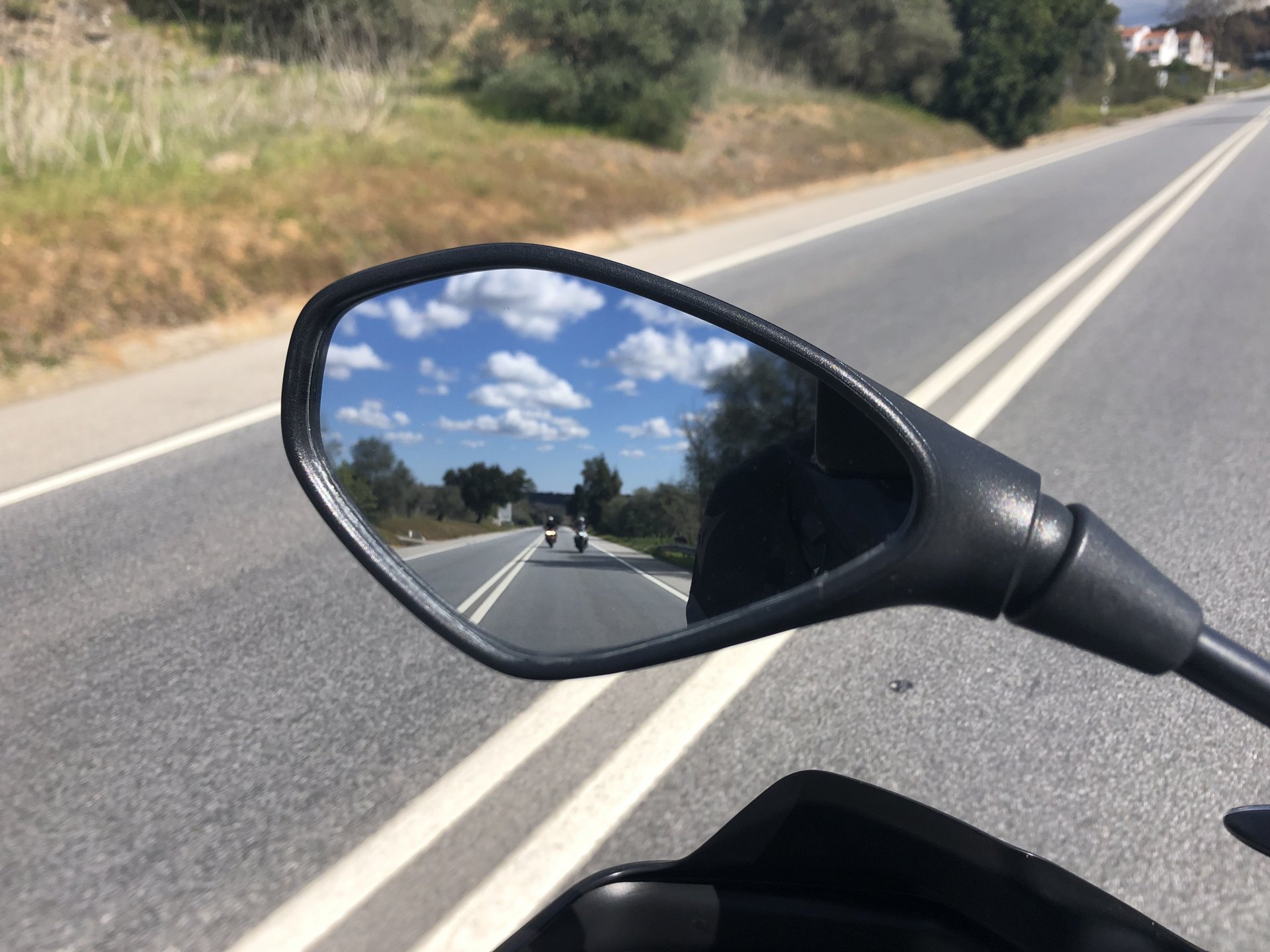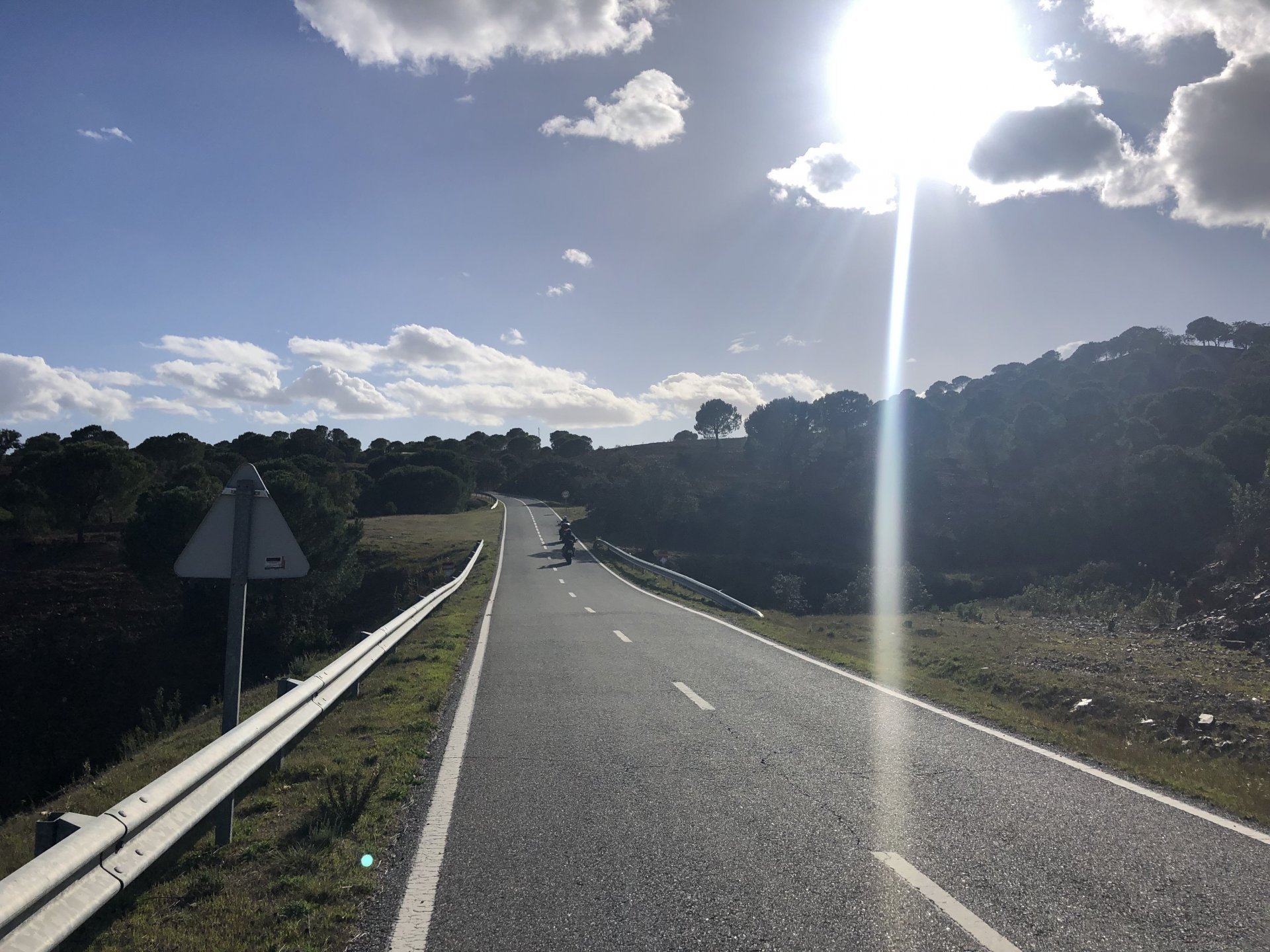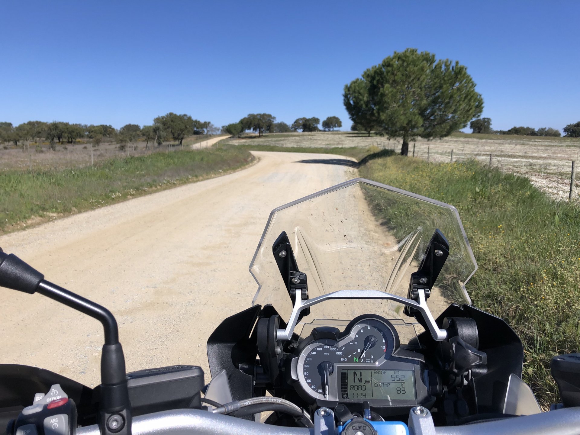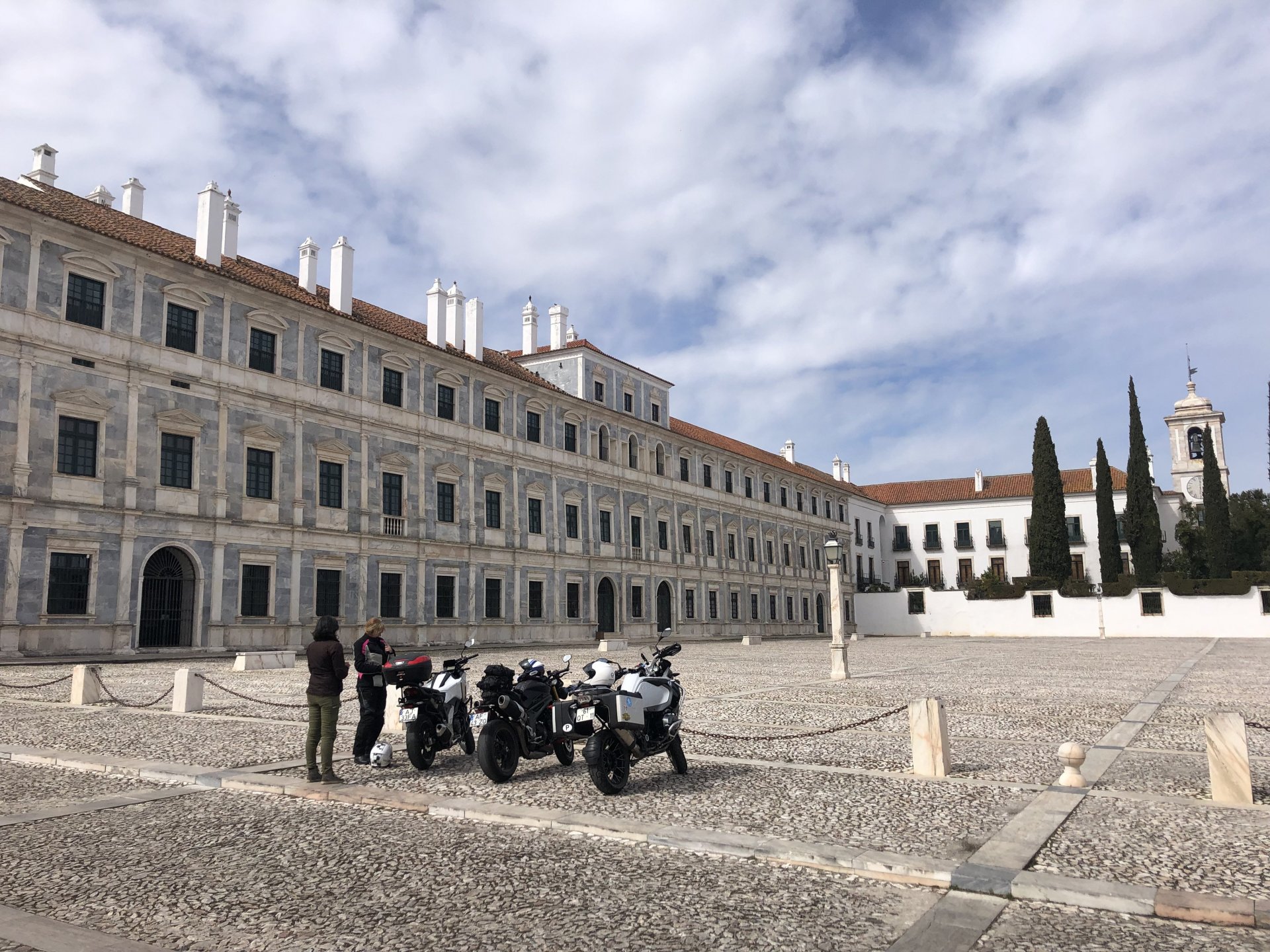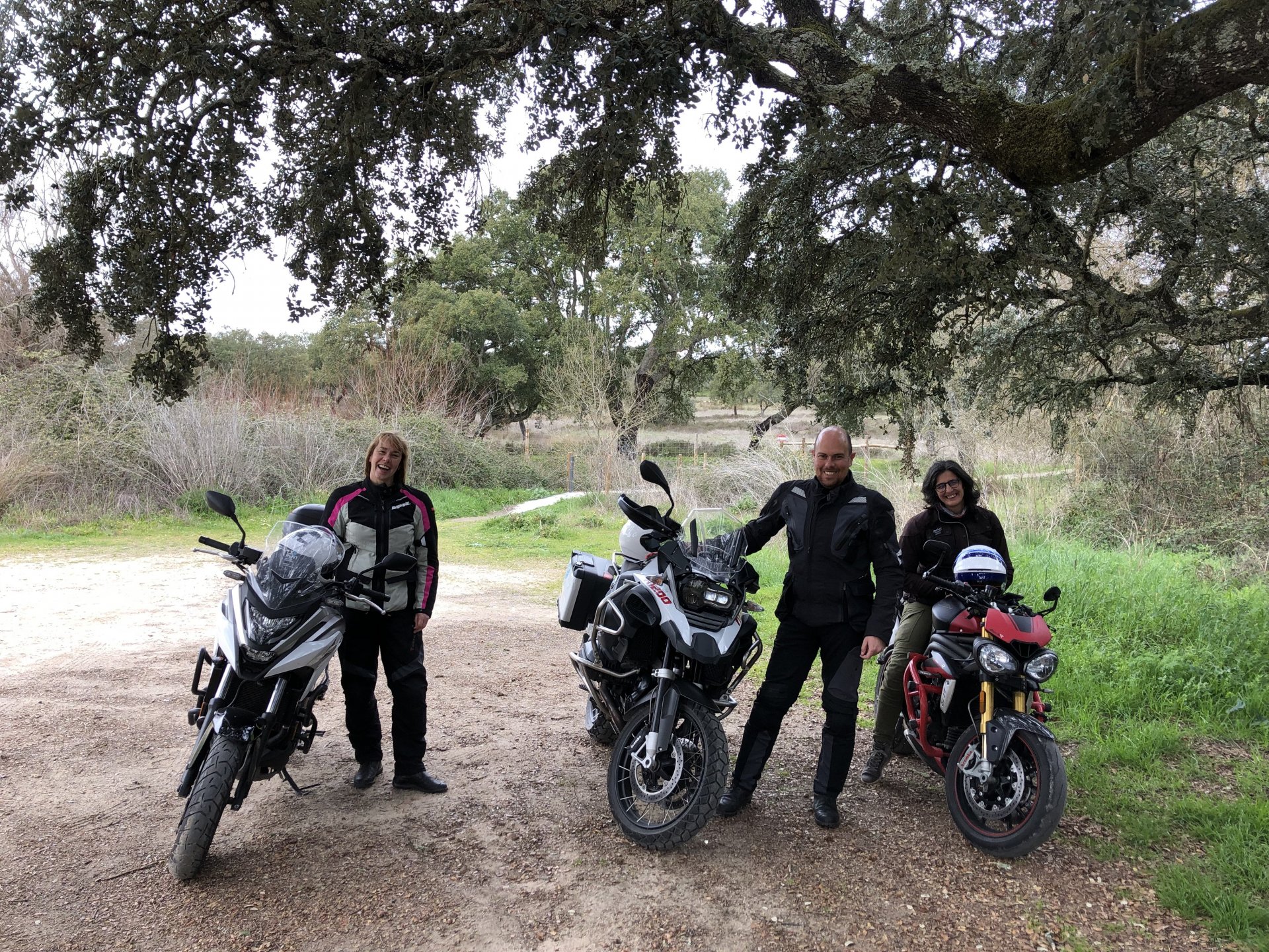 Sofia's very best friend came over from England to visit, and rented a bike for four days to go and see some of Southern Portugal. Sofia was going to take her on a short tour around Alentejo, there was warning of really bad weather, but still I decided to join for one day before going back up for work. Ended up aborting that plan and we spent a nice three days riding around. Screw work and long live motorcycles and good times! On a sunny but cold Sunday morning I set off from my place on my own, stopping for a breakfast expresso on my favourite place, Then rode into Alentejo on nice and empty roads, touring gently and enjoying the place, I had missed these more open spaces We were meeting up an hour's ride ahead, and I had some time to kill while the girls where picking up the rental bike and making their way to the meeting point, so I got off the main road and explored a little Found an amazing dirt road leading up to a small hotel and farm, I got a little excited and the day's top speed was certainly achieved on a straight dusty dirt road, that makes me quite happy These flowing corners made me wish for more aggressive tires, so that I could probably properly throw myself onto a tree playing Malcolm Smith Got to the agreed meeting point, had a snack consisting of a local typical chicken pastry and waited, and waited, and an hour later my company arrived: Barbara, used to Ducatis, quite enjoying the NC750's ease of ride and promptly declaring it the ideal rental bike for touring! I sat on it and think it's too low (as she does), it might have been a little lowered, I have no idea. After their midday snack, we rode off with the two best friends catching up ... on and on, relentlessly ... on the intercoms ... I took us to the castle at Arraiolos, which to me is one of the nicest views in the Alentejo region We then proceeded to Estremoz, our stay for the night, and I amused myself taking pictures of my rear view mirror, most of them out of focus but a couple of usable ones A stop to show Barbara a local winery, where a very small taste was had just before reaching the hotel A nice scenic road and we made it to the convent where we'd stay for the night The next day we had something to sort in Estremoz and that took all morning, which meant we left late. A stop for lunch near the Ducal Palace of Vila Viçosa was not avoided, though Quick stop by a famous dolmen... And then visiting the Castle of Monsaraz, which is nearby to where we'd stop for the day, didn't ride much at all that day but spirits were high: An aperitif was had at sunset while temperatures dropped, the cool fresh air had really opened my apetite. Showered and warm I fetched a little local cheese and wine, all they had in a period where tourists don't really pass here, and it was a result as we settled to see a cold Alentejo sunset before dinner We walked to a nice restaurant, converted from an old olive oil press room, and the food was amazing. I had (and shared) the octopus, it was declared unanimously delicious: The next day started with a cold morning. Stopping by a lookout of the Alqueva lake, here I am pondering my need to have brought proper touring pants as I was expecting lots of rain and cold, but happy for the sun. Quick stop in Mertola and I'm grinning at the prospect of the roads ahead of us. After the road crosses that river behind me in the picture it gets nice and fast, in my opinion you won't find a nicer 200km of tiny roads than what's ahead. Tarmac is dry, tires are good, sun is shining, prospect of being let lose on a nice road before a nice dinner and wines with a few laughs, etc... all that made for a happy Pedro I only stopped a couple of times, I have plenty of pictures of these roads from previous rides so only took a couple to catch the girls passing by. Barbara, being English and clearly used to a less brute civilization was pretty happy with the nice road surface, particularly the road markings (!!!), unlike my other favourite roads which lack these refinements and apparently are like farmers' track to a foreigner. Quick stop for water and deciding where to point our steeds for the night. A decision was made for Beja, trying to be within easy reach of Lisbon for the next early afternoon ... we did enjoy ourselves at dinner and Beja is a charming town to walk around searching for a restaurant. Sofia wanted to show off her favourite old bridge and again ride over something built more than 2000 years ago, so we did. It's still there and probably still will be long after electric motorcycles are finished when we'll all be riding martian plutonium powered bikes, those Romans and their slaves knew how to make a bridge: Here I am, acting as a guide and probably explaining the intricacies of roman ancient history and building bridges with rocks ... A german tourist was leaving just as we were arriving this place, and took our only group picture Couldn´t help but stop to check this out, someone converted an old dolmen and adapted it into the entrance of a chapel, I can't get mad at it although not the best conservationist effort ... Crossing the Ponte Vasco da Gama´s 12km length is a fine way to enter Lisbon, sadly, this meant returning the rental bike thus ending the trip. It had been a fun three days. After Barbara returned the Honda, I gave her a ride to Sofia's and proceeded to cook a nice dinner after going grocery shopping, it was a bit of a flop but out of sympathy and love they declared it a win. A lot of wine was consumed and a lot of reminiscing was done, I was amused with the realization of how small the world is when I spotted Barbara wearing a Luigi Moto jumper, isn't that where you work part time, @boboneleg? Earlier today I made my way north, by myself, and caught the only serious rain in the entire trip on the last 45 minutes before getting home. Here stopping to put winter gloves on in a rare moment of proficient motorcycling.4 points