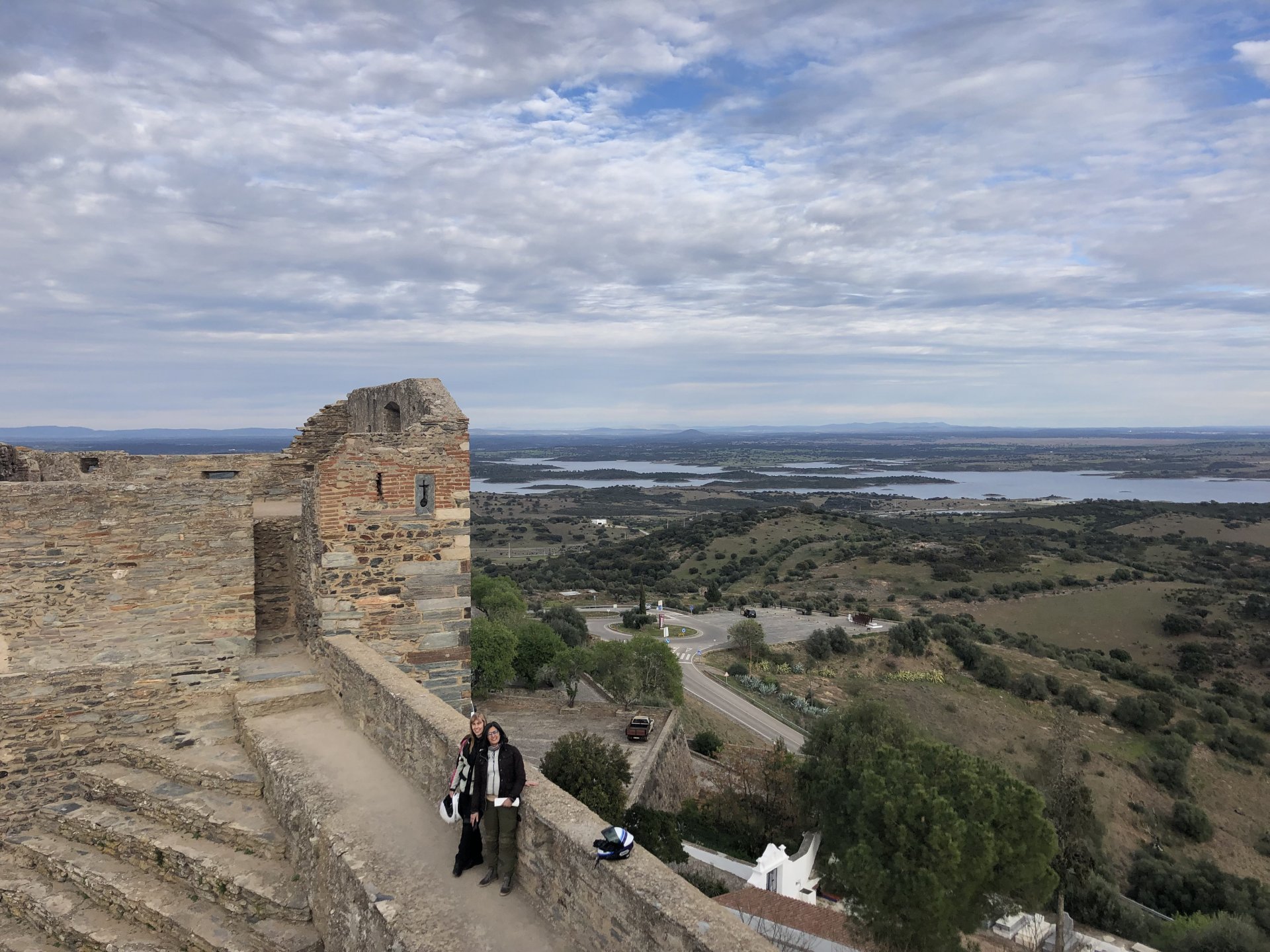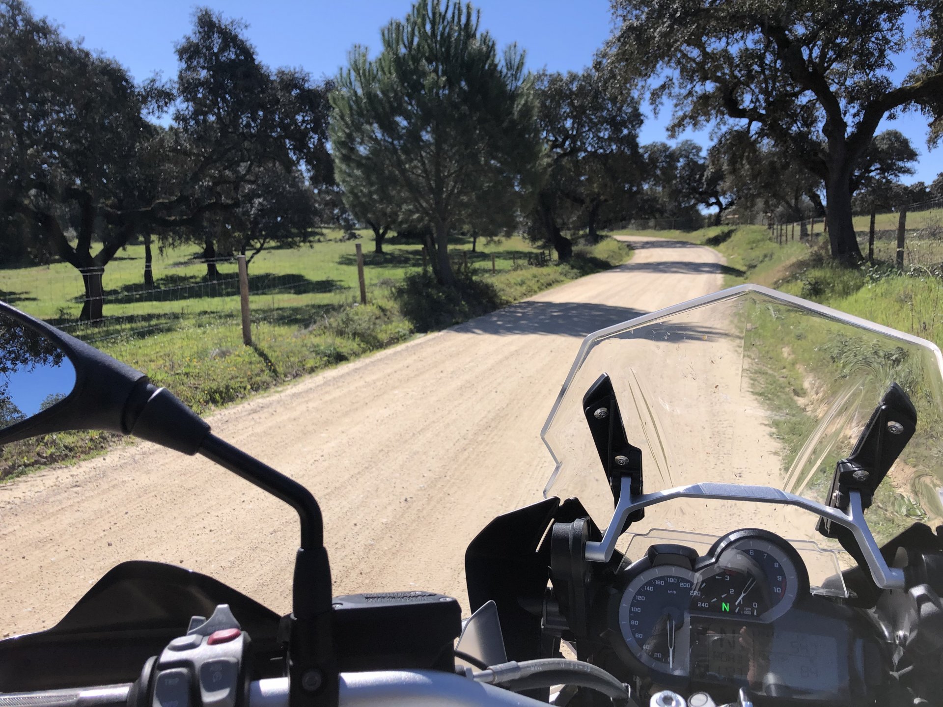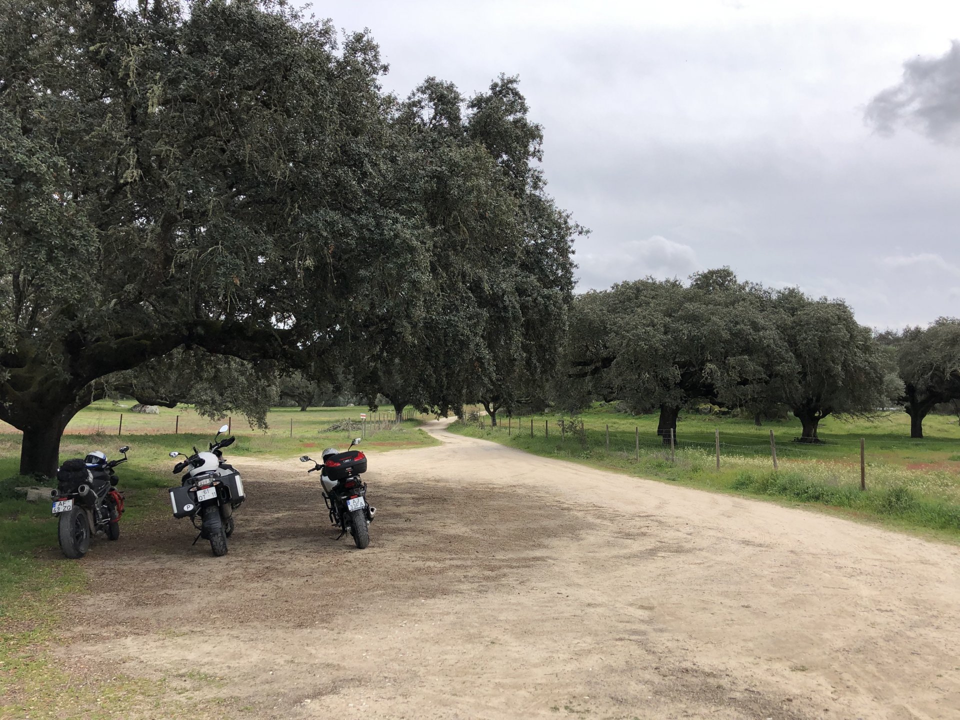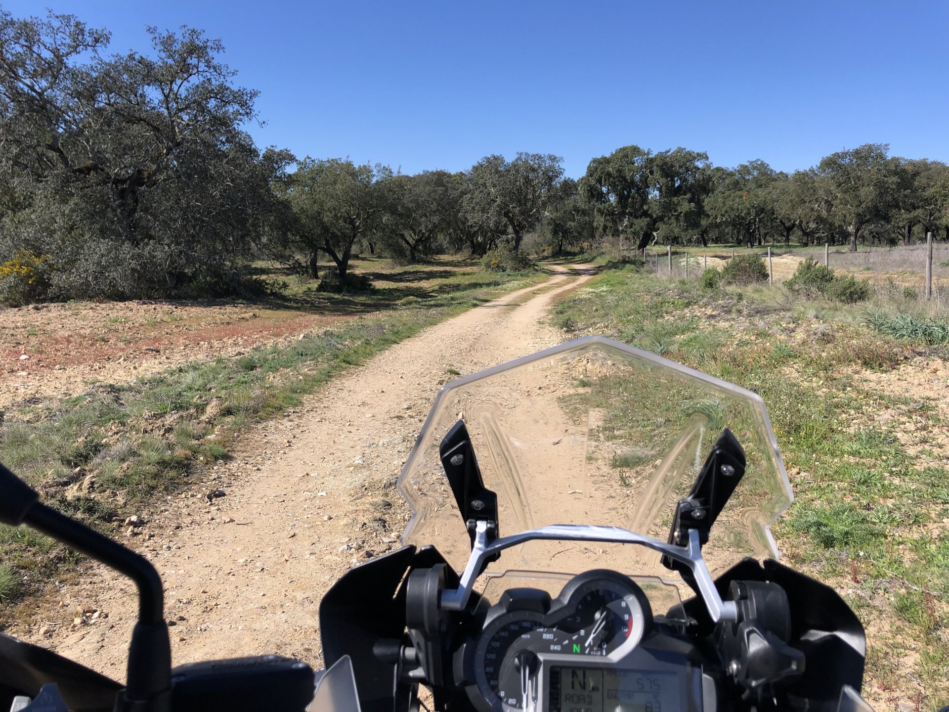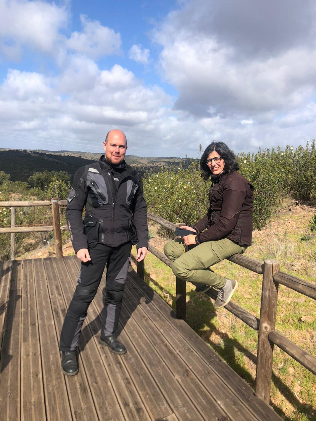 Sofia's very best friend came over from England to visit, and rented a bike for four days to go and see some of Southern Portugal. Sofia was going to take her on a short tour around Alentejo, there was warning of really bad weather, but still I decided to join for one day before going back up for work. Ended up aborting that plan and we spent a nice three days riding around. Screw work and long live motorcycles and good times! On a sunny but cold Sunday morning I set off from my place on my own, stopping for a breakfast expresso on my favourite place, Then rode into Alentejo on nice and empty roads, touring gently and enjoying the place, I had missed these more open spaces We were meeting up an hour's ride ahead, and I had some time to kill while the girls where picking up the rental bike and making their way to the meeting point, so I got off the main road and explored a little Found an amazing dirt road leading up to a small hotel and farm, I got a little excited and the day's top speed was certainly achieved on a straight dusty dirt road, that makes me quite happy These flowing corners made me wish for more aggressive tires, so that I could probably properly throw myself onto a tree playing Malcolm Smith Got to the agreed meeting point, had a snack consisting of a local typical chicken pastry and waited, and waited, and an hour later my company arrived: Barbara, used to Ducatis, quite enjoying the NC750's ease of ride and promptly declaring it the ideal rental bike for touring! I sat on it and think it's too low (as she does), it might have been a little lowered, I have no idea. After their midday snack, we rode off with the two best friends catching up ... on and on, relentlessly ... on the intercoms ... I took us to the castle at Arraiolos, which to me is one of the nicest views in the Alentejo region We then proceeded to Estremoz, our stay for the night, and I amused myself taking pictures of my rear view mirror, most of them out of focus but a couple of usable ones A stop to show Barbara a local winery, where a very small taste was had just before reaching the hotel A nice scenic road and we made it to the convent where we'd stay for the night The next day we had something to sort in Estremoz and that took all morning, which meant we left late. A stop for lunch near the Ducal Palace of Vila Viçosa was not avoided, though Quick stop by a famous dolmen... And then visiting the Castle of Monsaraz, which is nearby to where we'd stop for the day, didn't ride much at all that day but spirits were high: An aperitif was had at sunset while temperatures dropped, the cool fresh air had really opened my apetite. Showered and warm I fetched a little local cheese and wine, all they had in a period where tourists don't really pass here, and it was a result as we settled to see a cold Alentejo sunset before dinner We walked to a nice restaurant, converted from an old olive oil press room, and the food was amazing. I had (and shared) the octopus, it was declared unanimously delicious: The next day started with a cold morning. Stopping by a lookout of the Alqueva lake, here I am pondering my need to have brought proper touring pants as I was expecting lots of rain and cold, but happy for the sun. Quick stop in Mertola and I'm grinning at the prospect of the roads ahead of us. After the road crosses that river behind me in the picture it gets nice and fast, in my opinion you won't find a nicer 200km of tiny roads than what's ahead. Tarmac is dry, tires are good, sun is shining, prospect of being let lose on a nice road before a nice dinner and wines with a few laughs, etc... all that made for a happy Pedro I only stopped a couple of times, I have plenty of pictures of these roads from previous rides so only took a couple to catch the girls passing by. Barbara, being English and clearly used to a less brute civilization was pretty happy with the nice road surface, particularly the road markings (!!!), unlike my other favourite roads which lack these refinements and apparently are like farmers' track to a foreigner. Quick stop for water and deciding where to point our steeds for the night. A decision was made for Beja, trying to be within easy reach of Lisbon for the next early afternoon ... we did enjoy ourselves at dinner and Beja is a charming town to walk around searching for a restaurant. Sofia wanted to show off her favourite old bridge and again ride over something built more than 2000 years ago, so we did. It's still there and probably still will be long after electric motorcycles are finished when we'll all be riding martian plutonium powered bikes, those Romans and their slaves knew how to make a bridge: Here I am, acting as a guide and probably explaining the intricacies of roman ancient history and building bridges with rocks ... A german tourist was leaving just as we were arriving this place, and took our only group picture Couldn´t help but stop to check this out, someone converted an old dolmen and adapted it into the entrance of a chapel, I can't get mad at it although not the best conservationist effort ... Crossing the Ponte Vasco da Gama´s 12km length is a fine way to enter Lisbon, sadly, this meant returning the rental bike thus ending the trip. It had been a fun three days. After Barbara returned the Honda, I gave her a ride to Sofia's and proceeded to cook a nice dinner after going grocery shopping, it was a bit of a flop but out of sympathy and love they declared it a win. A lot of wine was consumed and a lot of reminiscing was done, I was amused with the realization of how small the world is when I spotted Barbara wearing a Luigi Moto jumper, isn't that where you work part time, @boboneleg? Earlier today I made my way north, by myself, and caught the only serious rain in the entire trip on the last 45 minutes before getting home. Here stopping to put winter gloves on in a rare moment of proficient motorcycling.4 points