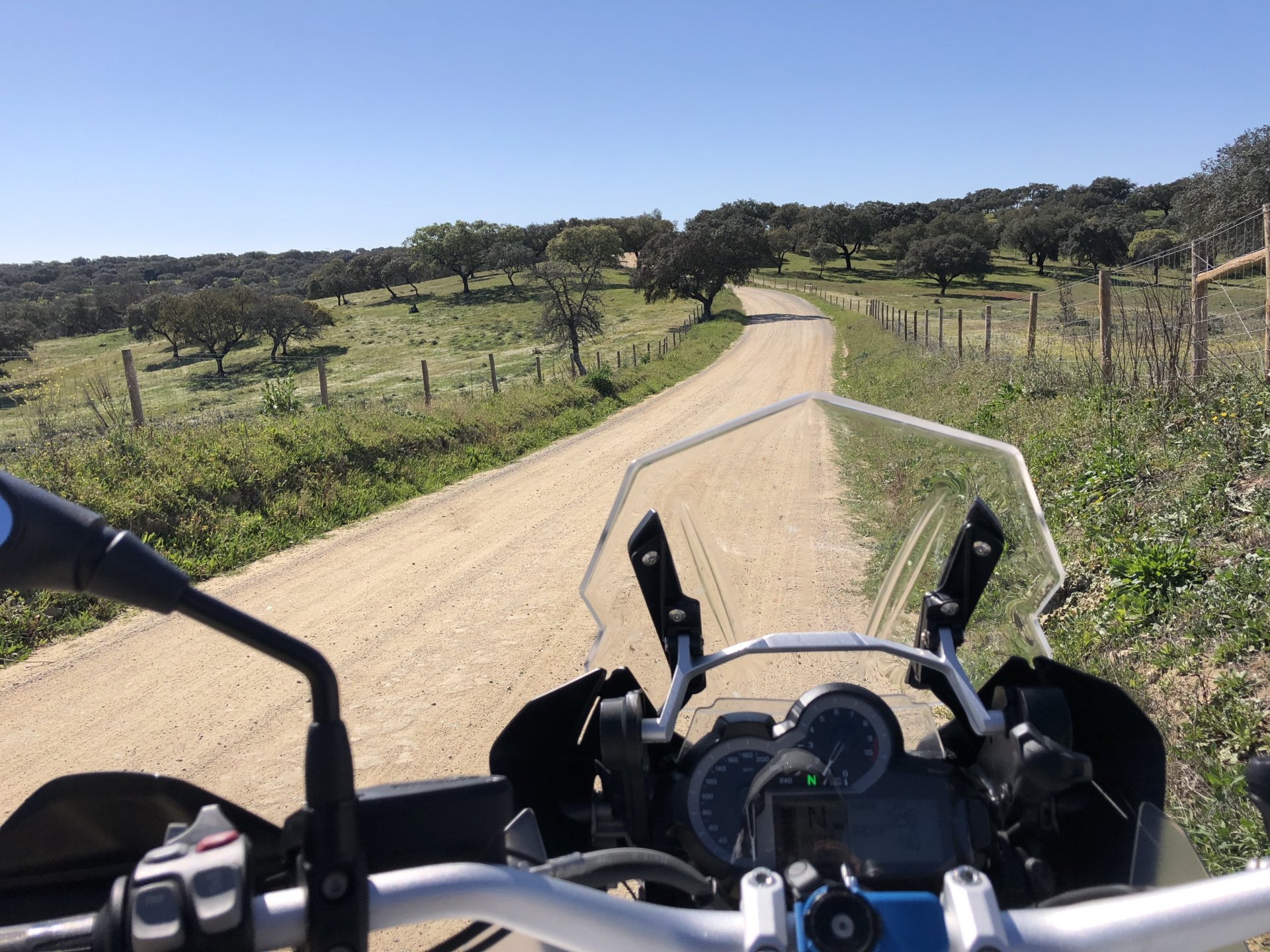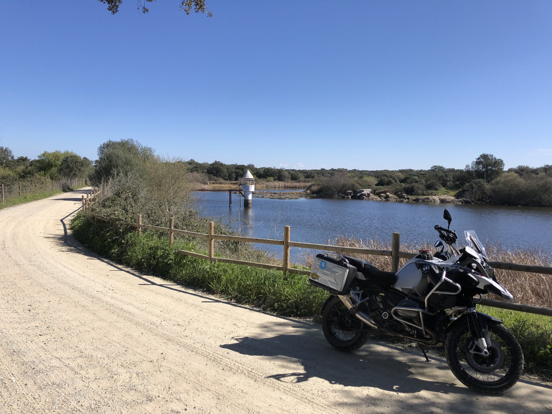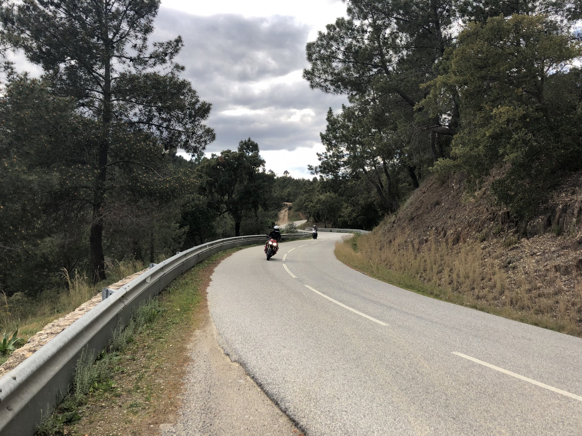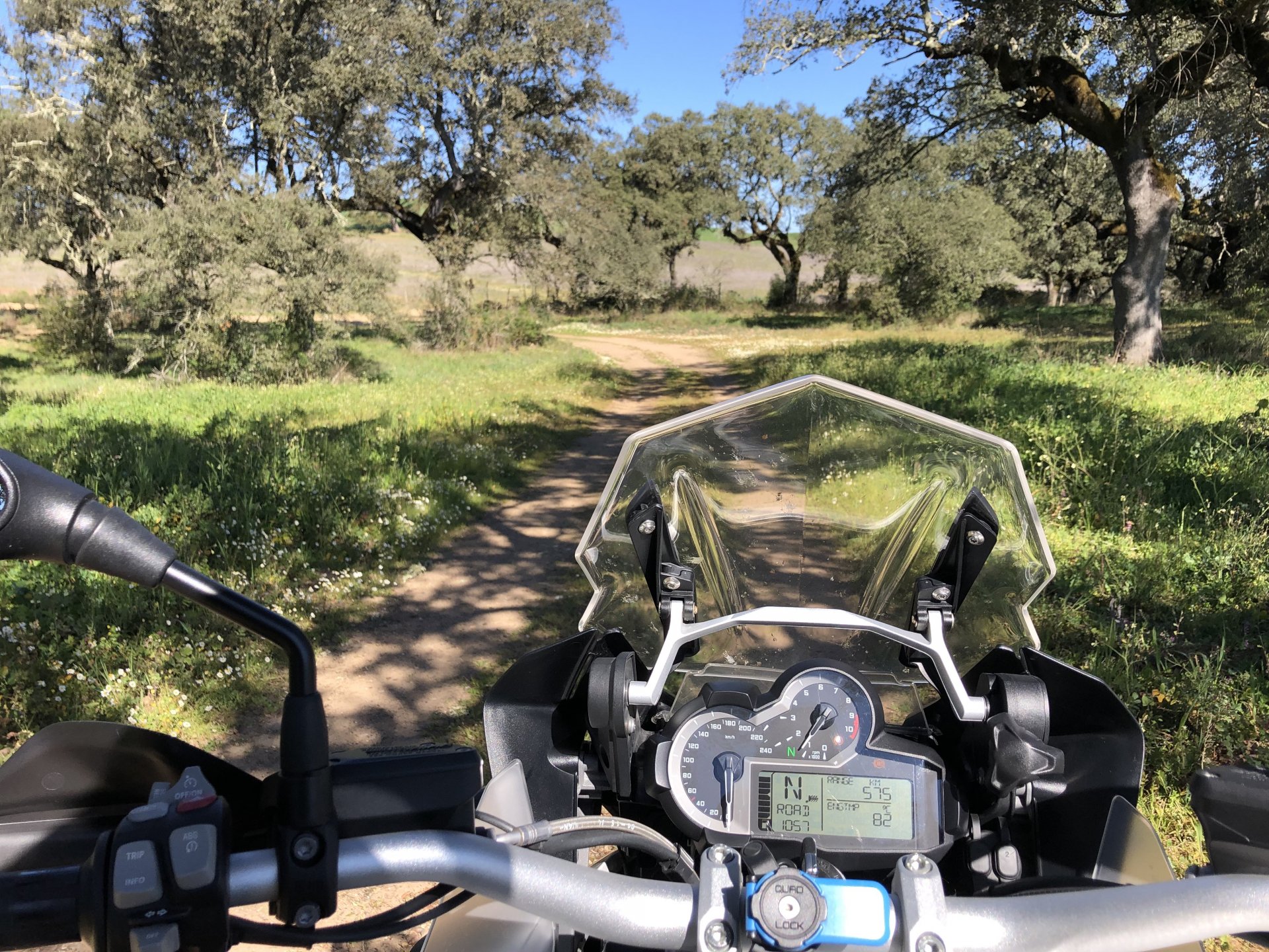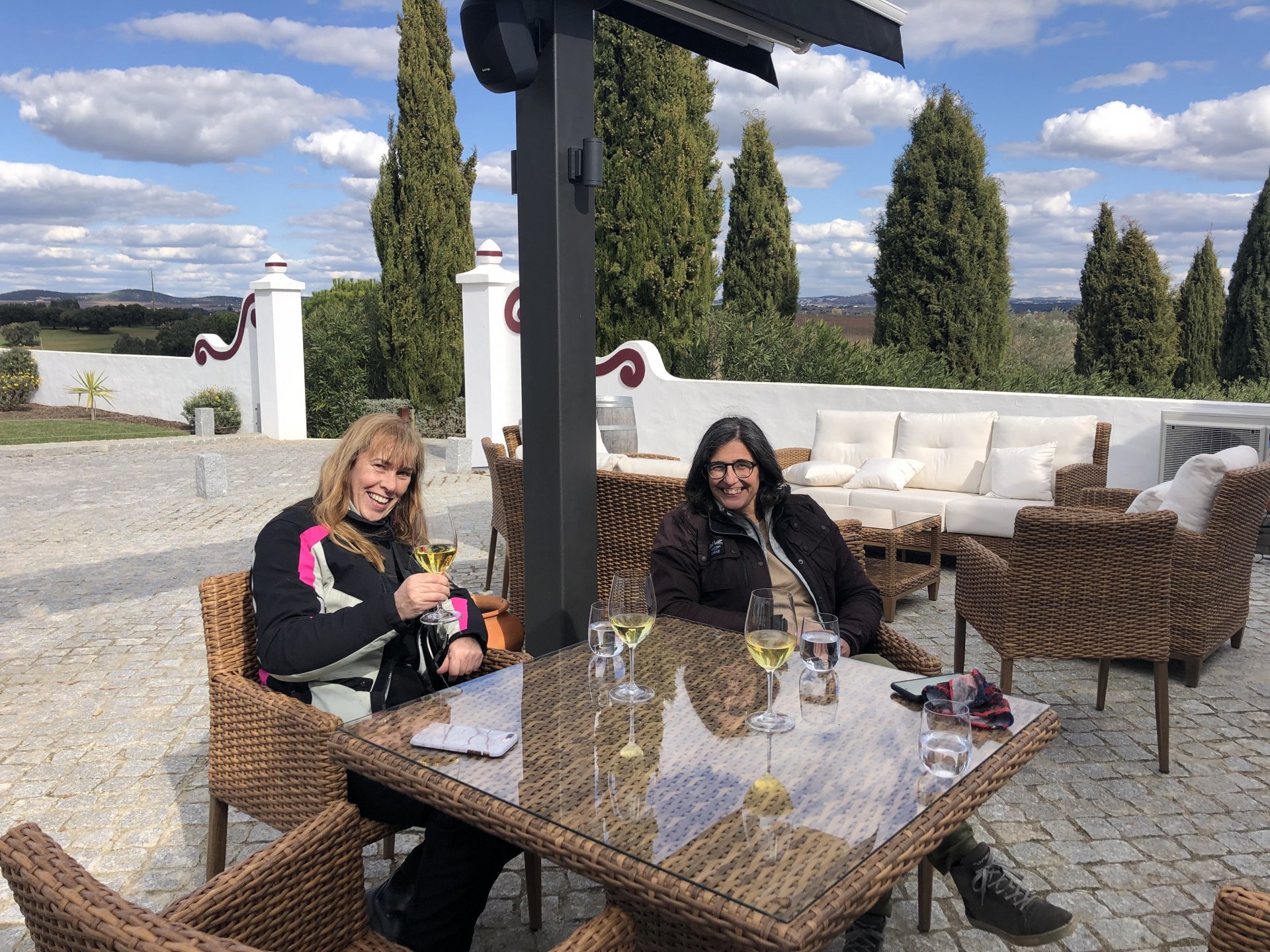 Sofia's very best friend came over from England to visit, and rented a bike for four days to go and see some of Southern Portugal. Sofia was going to take her on a short tour around Alentejo, there was warning of really bad weather, but still I decided to join for one day before going back up for work. Ended up aborting that plan and we spent a nice three days riding around. Screw work and long live motorcycles and good times! On a sunny but cold Sunday morning I set off from my place on my own, stopping for a breakfast expresso on my favourite place, Then rode into Alentejo on nice and empty roads, touring gently and enjoying the place, I had missed these more open spaces We were meeting up an hour's ride ahead, and I had some time to kill while the girls where picking up the rental bike and making their way to the meeting point, so I got off the main road and explored a little Found an amazing dirt road leading up to a small hotel and farm, I got a little excited and the day's top speed was certainly achieved on a straight dusty dirt road, that makes me quite happy These flowing corners made me wish for more aggressive tires, so that I could probably properly throw myself onto a tree playing Malcolm Smith Got to the agreed meeting point, had a snack consisting of a local typical chicken pastry and waited, and waited, and an hour later my company arrived: Barbara, used to Ducatis, quite enjoying the NC750's ease of ride and promptly declaring it the ideal rental bike for touring! I sat on it and think it's too low (as she does), it might have been a little lowered, I have no idea. After their midday snack, we rode off with the two best friends catching up ... on and on, relentlessly ... on the intercoms ... I took us to the castle at Arraiolos, which to me is one of the nicest views in the Alentejo region We then proceeded to Estremoz, our stay for the night, and I amused myself taking pictures of my rear view mirror, most of them out of focus but a couple of usable ones A stop to show Barbara a local winery, where a very small taste was had just before reaching the hotel A nice scenic road and we made it to the convent where we'd stay for the night The next day we had something to sort in Estremoz and that took all morning, which meant we left late. A stop for lunch near the Ducal Palace of Vila Viçosa was not avoided, though Quick stop by a famous dolmen... And then visiting the Castle of Monsaraz, which is nearby to where we'd stop for the day, didn't ride much at all that day but spirits were high: An aperitif was had at sunset while temperatures dropped, the cool fresh air had really opened my apetite. Showered and warm I fetched a little local cheese and wine, all they had in a period where tourists don't really pass here, and it was a result as we settled to see a cold Alentejo sunset before dinner We walked to a nice restaurant, converted from an old olive oil press room, and the food was amazing. I had (and shared) the octopus, it was declared unanimously delicious: The next day started with a cold morning. Stopping by a lookout of the Alqueva lake, here I am pondering my need to have brought proper touring pants as I was expecting lots of rain and cold, but happy for the sun. Quick stop in Mertola and I'm grinning at the prospect of the roads ahead of us. After the road crosses that river behind me in the picture it gets nice and fast, in my opinion you won't find a nicer 200km of tiny roads than what's ahead. Tarmac is dry, tires are good, sun is shining, prospect of being let lose on a nice road before a nice dinner and wines with a few laughs, etc... all that made for a happy Pedro I only stopped a couple of times, I have plenty of pictures of these roads from previous rides so only took a couple to catch the girls passing by. Barbara, being English and clearly used to a less brute civilization was pretty happy with the nice road surface, particularly the road markings (!!!), unlike my other favourite roads which lack these refinements and apparently are like farmers' track to a foreigner. Quick stop for water and deciding where to point our steeds for the night. A decision was made for Beja, trying to be within easy reach of Lisbon for the next early afternoon ... we did enjoy ourselves at dinner and Beja is a charming town to walk around searching for a restaurant. Sofia wanted to show off her favourite old bridge and again ride over something built more than 2000 years ago, so we did. It's still there and probably still will be long after electric motorcycles are finished when we'll all be riding martian plutonium powered bikes, those Romans and their slaves knew how to make a bridge: Here I am, acting as a guide and probably explaining the intricacies of roman ancient history and building bridges with rocks ... A german tourist was leaving just as we were arriving this place, and took our only group picture Couldn´t help but stop to check this out, someone converted an old dolmen and adapted it into the entrance of a chapel, I can't get mad at it although not the best conservationist effort ... Crossing the Ponte Vasco da Gama´s 12km length is a fine way to enter Lisbon, sadly, this meant returning the rental bike thus ending the trip. It had been a fun three days. After Barbara returned the Honda, I gave her a ride to Sofia's and proceeded to cook a nice dinner after going grocery shopping, it was a bit of a flop but out of sympathy and love they declared it a win. A lot of wine was consumed and a lot of reminiscing was done, I was amused with the realization of how small the world is when I spotted Barbara wearing a Luigi Moto jumper, isn't that where you work part time, @boboneleg? Earlier today I made my way north, by myself, and caught the only serious rain in the entire trip on the last 45 minutes before getting home. Here stopping to put winter gloves on in a rare moment of proficient motorcycling.4 points
