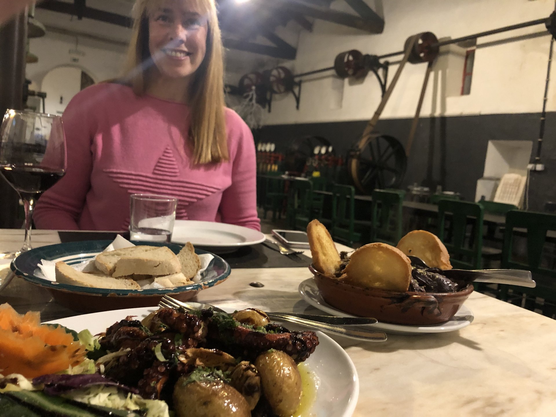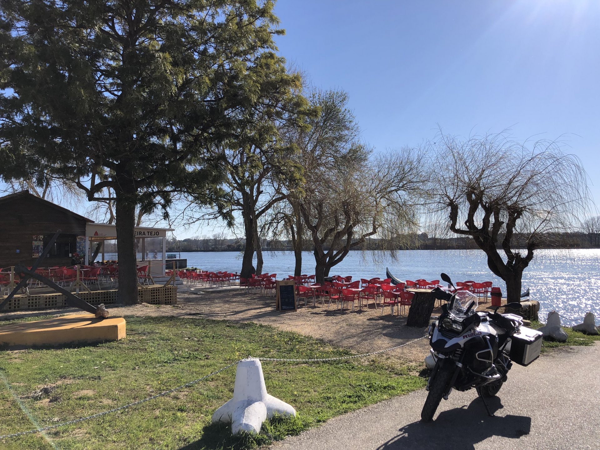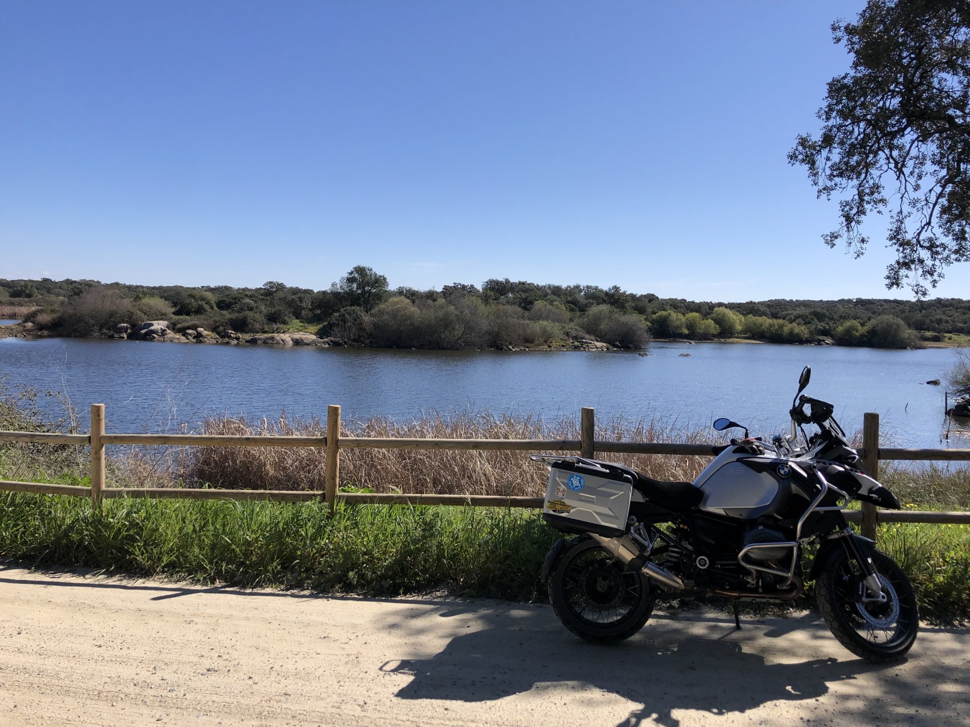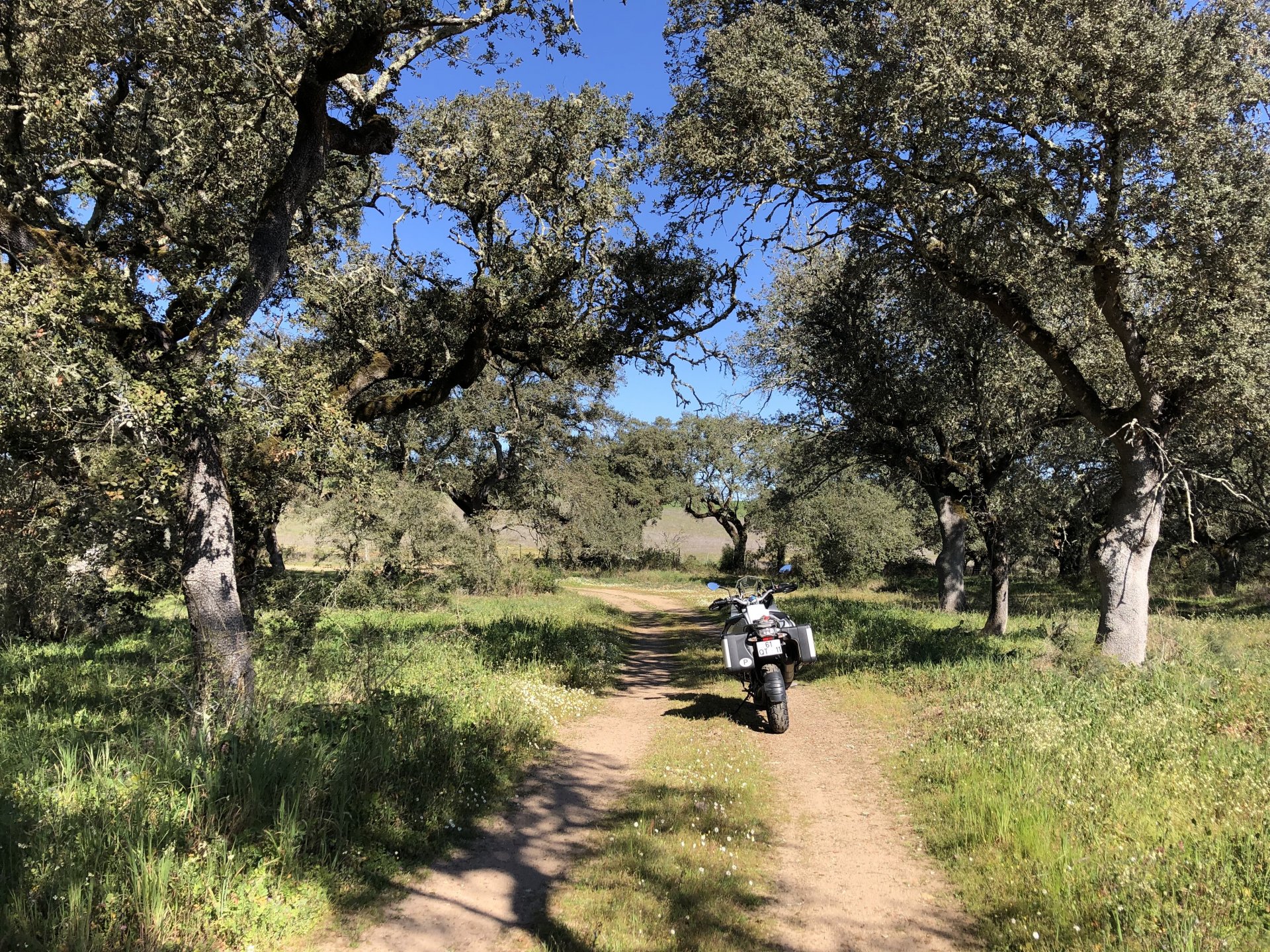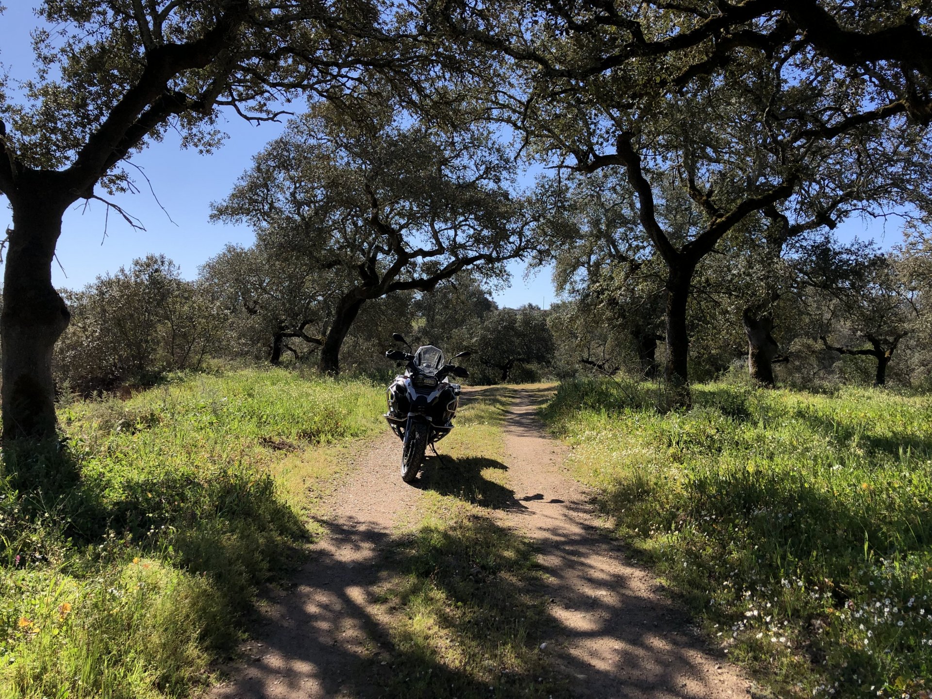 Sofia's very best friend came over from England to visit, and rented a bike for four days to go and see some of Southern Portugal. Sofia was going to take her on a short tour around Alentejo, there was warning of really bad weather, but still I decided to join for one day before going back up for work. Ended up aborting that plan and we spent a nice three days riding around. Screw work and long live motorcycles and good times! On a sunny but cold Sunday morning I set off from my place on my own, stopping for a breakfast expresso on my favourite place, Then rode into Alentejo on nice and empty roads, touring gently and enjoying the place, I had missed these more open spaces We were meeting up an hour's ride ahead, and I had some time to kill while the girls where picking up the rental bike and making their way to the meeting point, so I got off the main road and explored a little Found an amazing dirt road leading up to a small hotel and farm, I got a little excited and the day's top speed was certainly achieved on a straight dusty dirt road, that makes me quite happy These flowing corners made me wish for more aggressive tires, so that I could probably properly throw myself onto a tree playing Malcolm Smith Got to the agreed meeting point, had a snack consisting of a local typical chicken pastry and waited, and waited, and an hour later my company arrived: Barbara, used to Ducatis, quite enjoying the NC750's ease of ride and promptly declaring it the ideal rental bike for touring! I sat on it and think it's too low (as she does), it might have been a little lowered, I have no idea. After their midday snack, we rode off with the two best friends catching up ... on and on, relentlessly ... on the intercoms ... I took us to the castle at Arraiolos, which to me is one of the nicest views in the Alentejo region We then proceeded to Estremoz, our stay for the night, and I amused myself taking pictures of my rear view mirror, most of them out of focus but a couple of usable ones A stop to show Barbara a local winery, where a very small taste was had just before reaching the hotel A nice scenic road and we made it to the convent where we'd stay for the night The next day we had something to sort in Estremoz and that took all morning, which meant we left late. A stop for lunch near the Ducal Palace of Vila Viçosa was not avoided, though Quick stop by a famous dolmen... And then visiting the Castle of Monsaraz, which is nearby to where we'd stop for the day, didn't ride much at all that day but spirits were high: An aperitif was had at sunset while temperatures dropped, the cool fresh air had really opened my apetite. Showered and warm I fetched a little local cheese and wine, all they had in a period where tourists don't really pass here, and it was a result as we settled to see a cold Alentejo sunset before dinner We walked to a nice restaurant, converted from an old olive oil press room, and the food was amazing. I had (and shared) the octopus, it was declared unanimously delicious: The next day started with a cold morning. Stopping by a lookout of the Alqueva lake, here I am pondering my need to have brought proper touring pants as I was expecting lots of rain and cold, but happy for the sun. Quick stop in Mertola and I'm grinning at the prospect of the roads ahead of us. After the road crosses that river behind me in the picture it gets nice and fast, in my opinion you won't find a nicer 200km of tiny roads than what's ahead. Tarmac is dry, tires are good, sun is shining, prospect of being let lose on a nice road before a nice dinner and wines with a few laughs, etc... all that made for a happy Pedro I only stopped a couple of times, I have plenty of pictures of these roads from previous rides so only took a couple to catch the girls passing by. Barbara, being English and clearly used to a less brute civilization was pretty happy with the nice road surface, particularly the road markings (!!!), unlike my other favourite roads which lack these refinements and apparently are like farmers' track to a foreigner. Quick stop for water and deciding where to point our steeds for the night. A decision was made for Beja, trying to be within easy reach of Lisbon for the next early afternoon ... we did enjoy ourselves at dinner and Beja is a charming town to walk around searching for a restaurant. Sofia wanted to show off her favourite old bridge and again ride over something built more than 2000 years ago, so we did. It's still there and probably still will be long after electric motorcycles are finished when we'll all be riding martian plutonium powered bikes, those Romans and their slaves knew how to make a bridge: Here I am, acting as a guide and probably explaining the intricacies of roman ancient history and building bridges with rocks ... A german tourist was leaving just as we were arriving this place, and took our only group picture Couldn´t help but stop to check this out, someone converted an old dolmen and adapted it into the entrance of a chapel, I can't get mad at it although not the best conservationist effort ... Crossing the Ponte Vasco da Gama´s 12km length is a fine way to enter Lisbon, sadly, this meant returning the rental bike thus ending the trip. It had been a fun three days. After Barbara returned the Honda, I gave her a ride to Sofia's and proceeded to cook a nice dinner after going grocery shopping, it was a bit of a flop but out of sympathy and love they declared it a win. A lot of wine was consumed and a lot of reminiscing was done, I was amused with the realization of how small the world is when I spotted Barbara wearing a Luigi Moto jumper, isn't that where you work part time, @boboneleg? Earlier today I made my way north, by myself, and caught the only serious rain in the entire trip on the last 45 minutes before getting home. Here stopping to put winter gloves on in a rare moment of proficient motorcycling.4 points