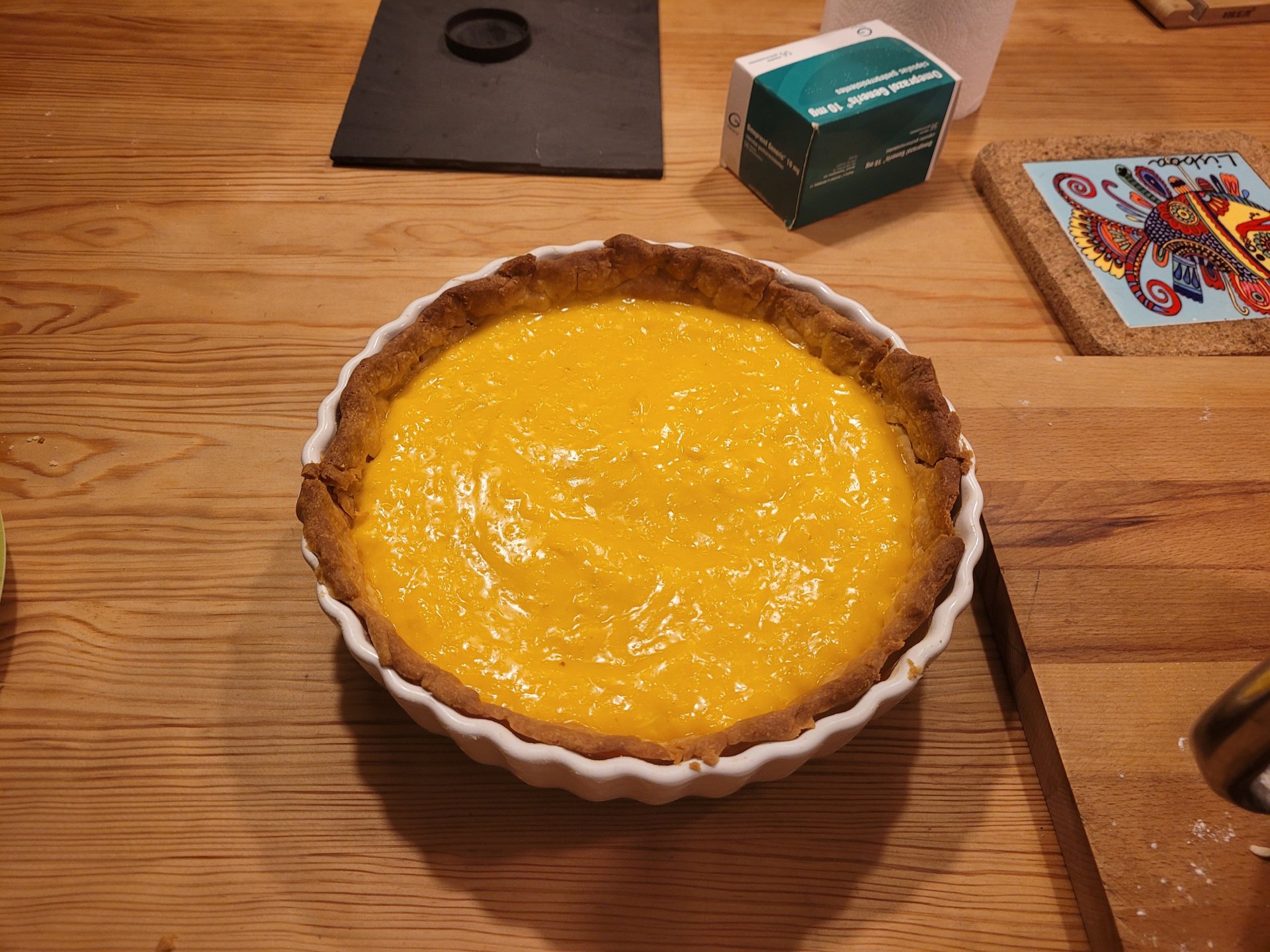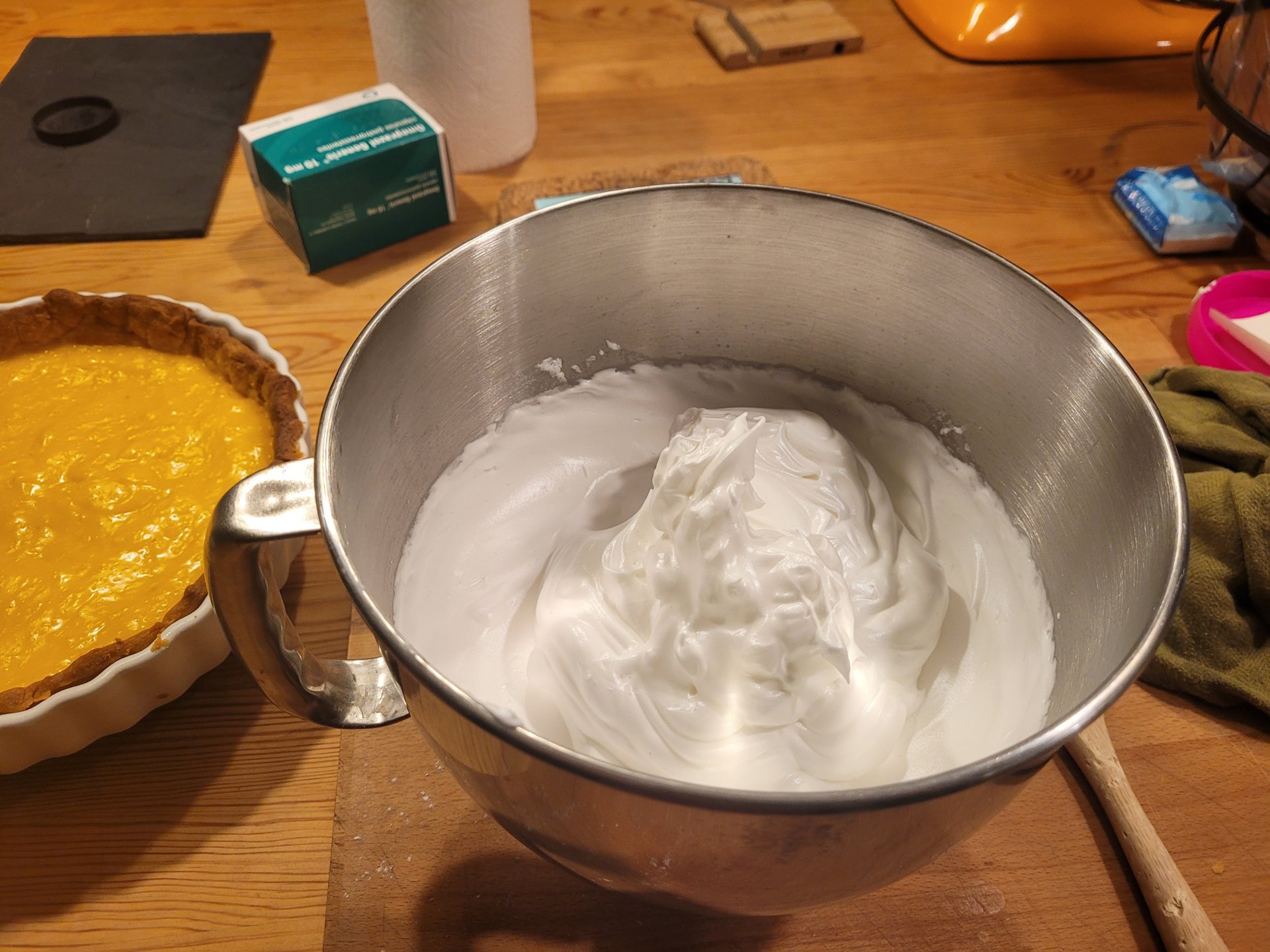 When life gives you lemons... Make lemon merengue pie! My new flatmate suggested I should do something with the big box of lemons a customer gave me, so I asked her what she liked made with lemons, and she said Lemon Merengue Pie, with real lemon curd! Immediately I looked for a recipe to attempt this delight I have never made before, none of its components actually! Decided to go with a recipe from Jamie Oliver and proceeded to do it in reverse order of the proper protocol as I normally do and also like normal, I got lucky and the curd set well and the pastry came out good and the Italian merengue was just about perfect! Very much helped by the eggs from another customer that gives me lots of them from her very well cared for chickens!! May all these Northern Europeans coming here in search of "The Good Life" find me and give me their produce!! The whole thing has been a journey of discovery for me and to finish it off had to use a kitchen lighter to try to burn the tips of the merengue, so really not the prettiest of results... We haven't tried it yet, will be super excited when we do, because this things has been 2 days in the making!! More pictures tomorrow of the unveiling and eating!! Sorry @Pedro for hijacking your thread, specially when you are not here and are not going to eat any of this!!4 points