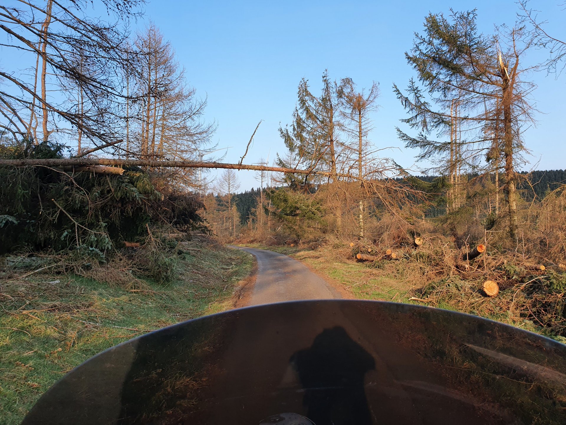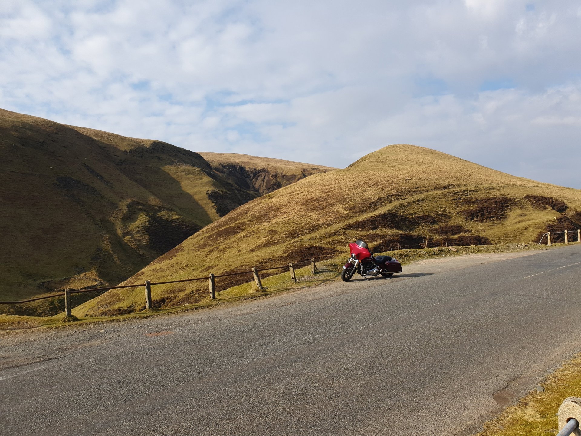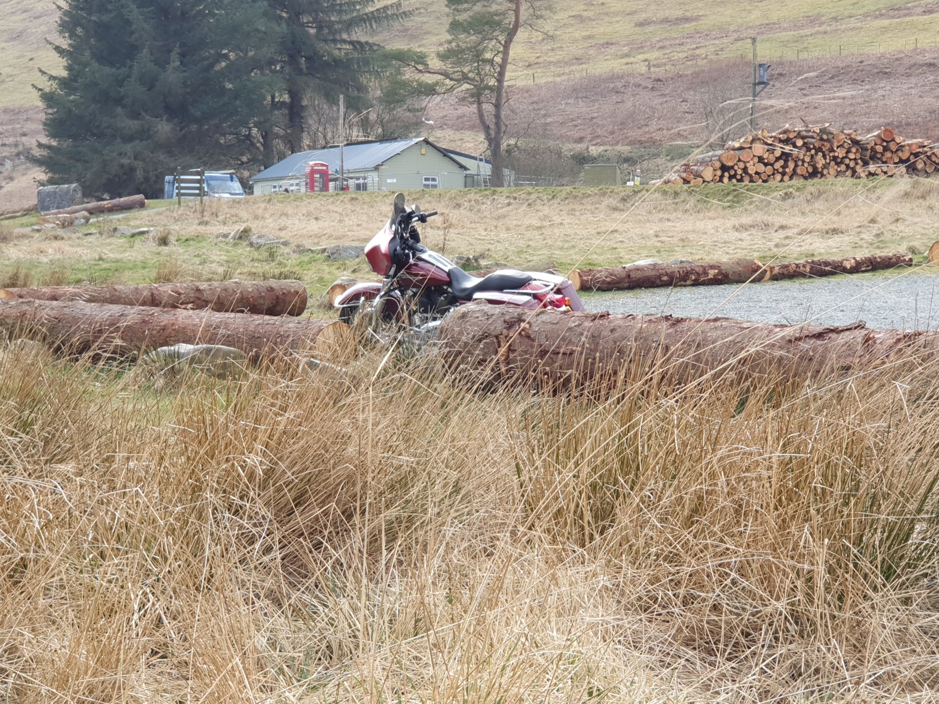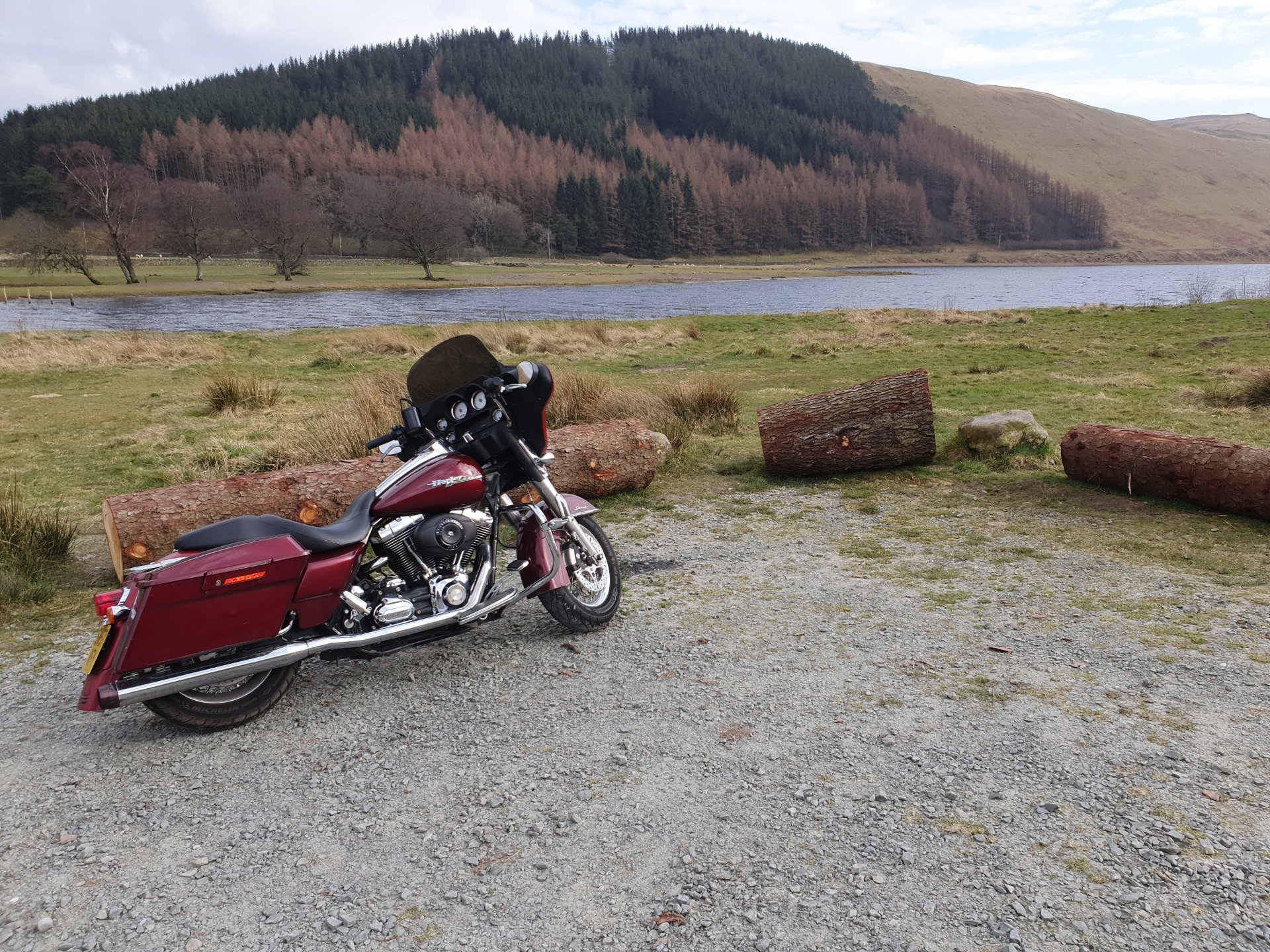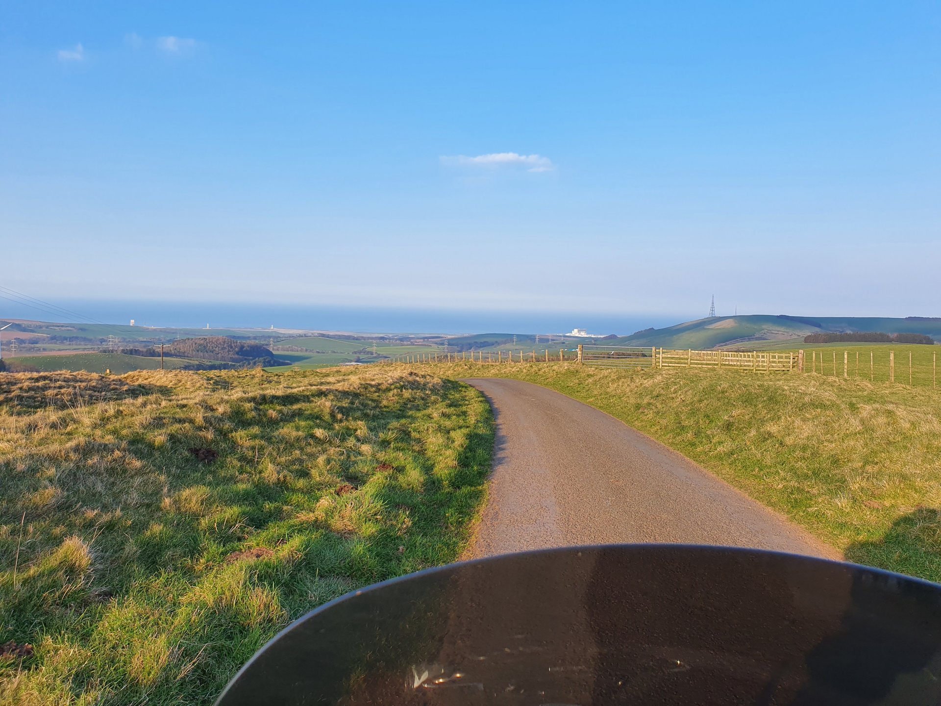 I went looking for famous people today but misread the names, instead of finding Blackadder I ended up at Whiteadder Reservoir. To get there I headed to the Lammermuir Hills. Instead of taking the route I know well I headed east to the reservoir, I had seen it from a distance but wanted to see it up close, it’s a huge body of water, I was surprised just how big the reservoir was. From here I decided to head to North Berwick, I had two options, a conventional road out of the hills or a single track road, the single track looked okay so I headed that way. I saw plenty of Petes girlfriends although a lot of them looked like they could defend themselves from his advances. After about three miles the road turned into more of a track as it went through a forest, in a lot of places it was washed out completely and trees were laying on the edge, there was even this one over the track. The Glide took it all in its stride of course and eventually the track opened up and I could see the coastline of Dunbar and beyond in the distance. I headed down through Dunbar and onto the coast road towards North Berwick, on the way I passed Tantallon Castle and could see the Bass Rock in the distance. I headed down into North Berwick to my favourite chip shop and had a fish supper sat on the bike before heading back to Edinburgh.2 points