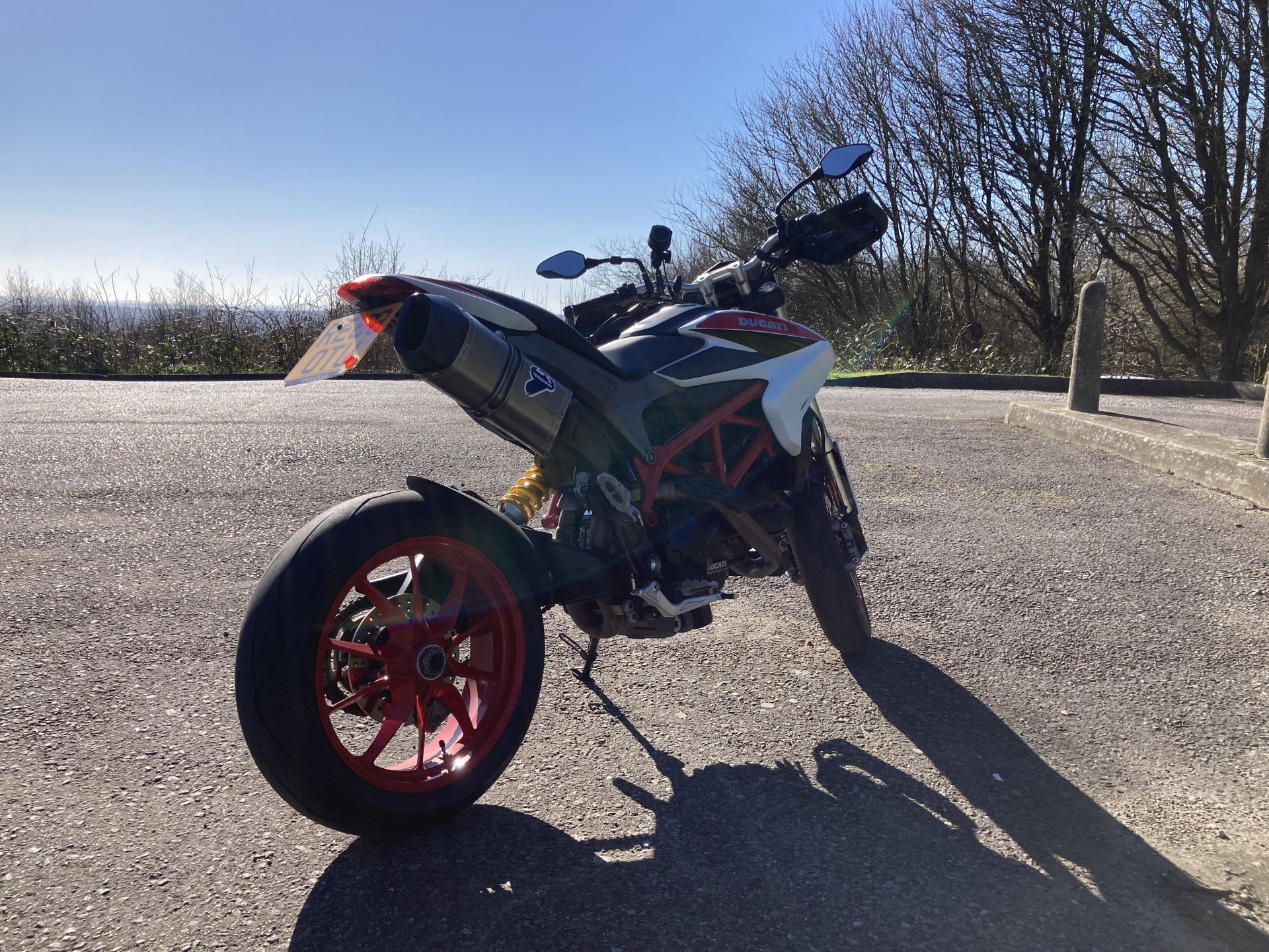 I choose this one because I'm proud of my bike and its bull terrier attitude of stopping for nothing!! Must tell Pirelli the Supercorsa can have less thread...3 points