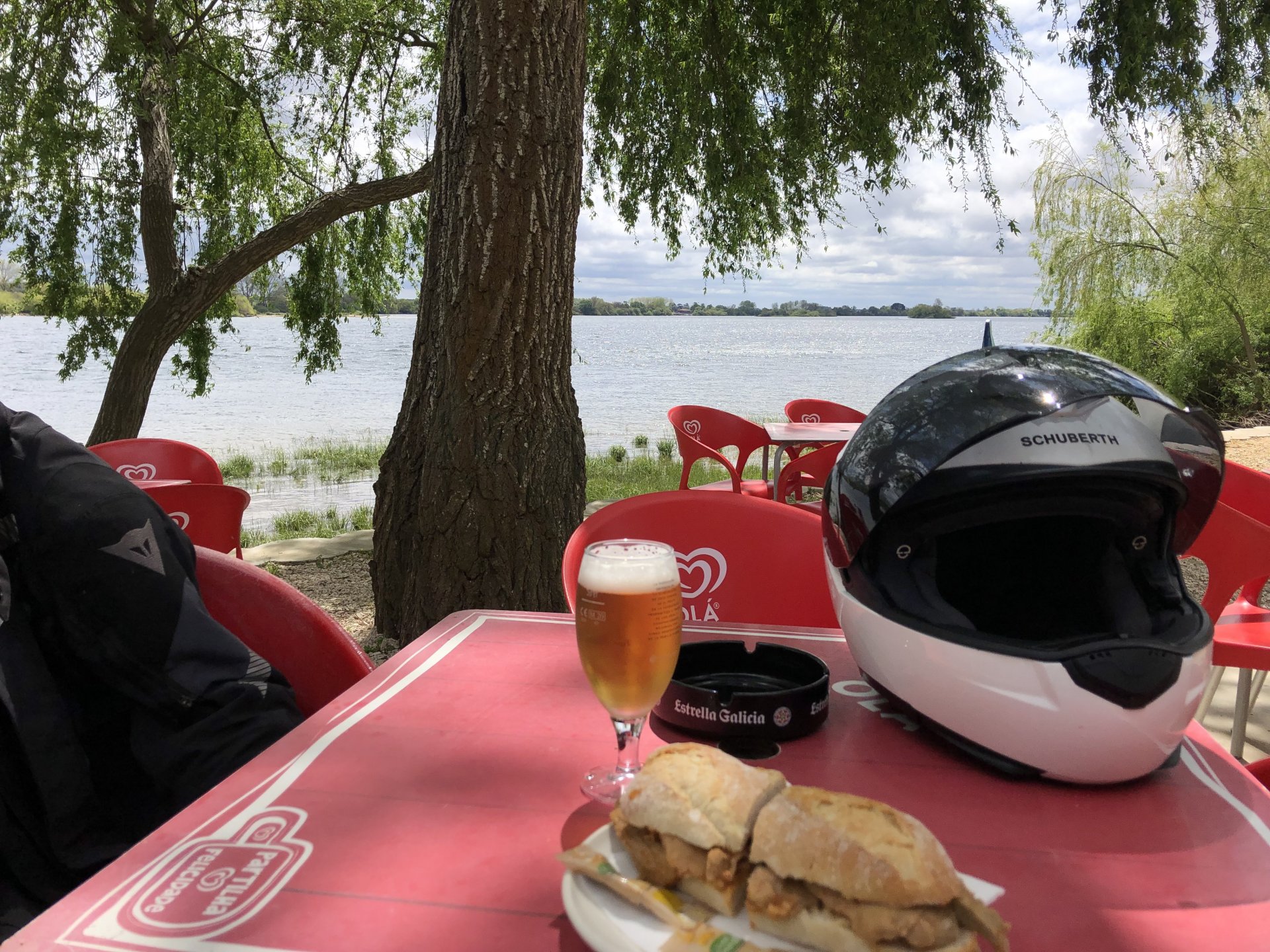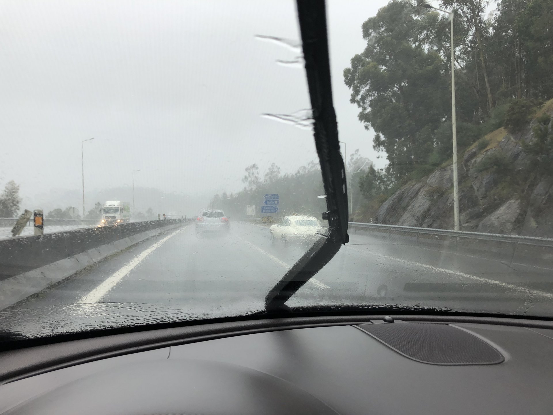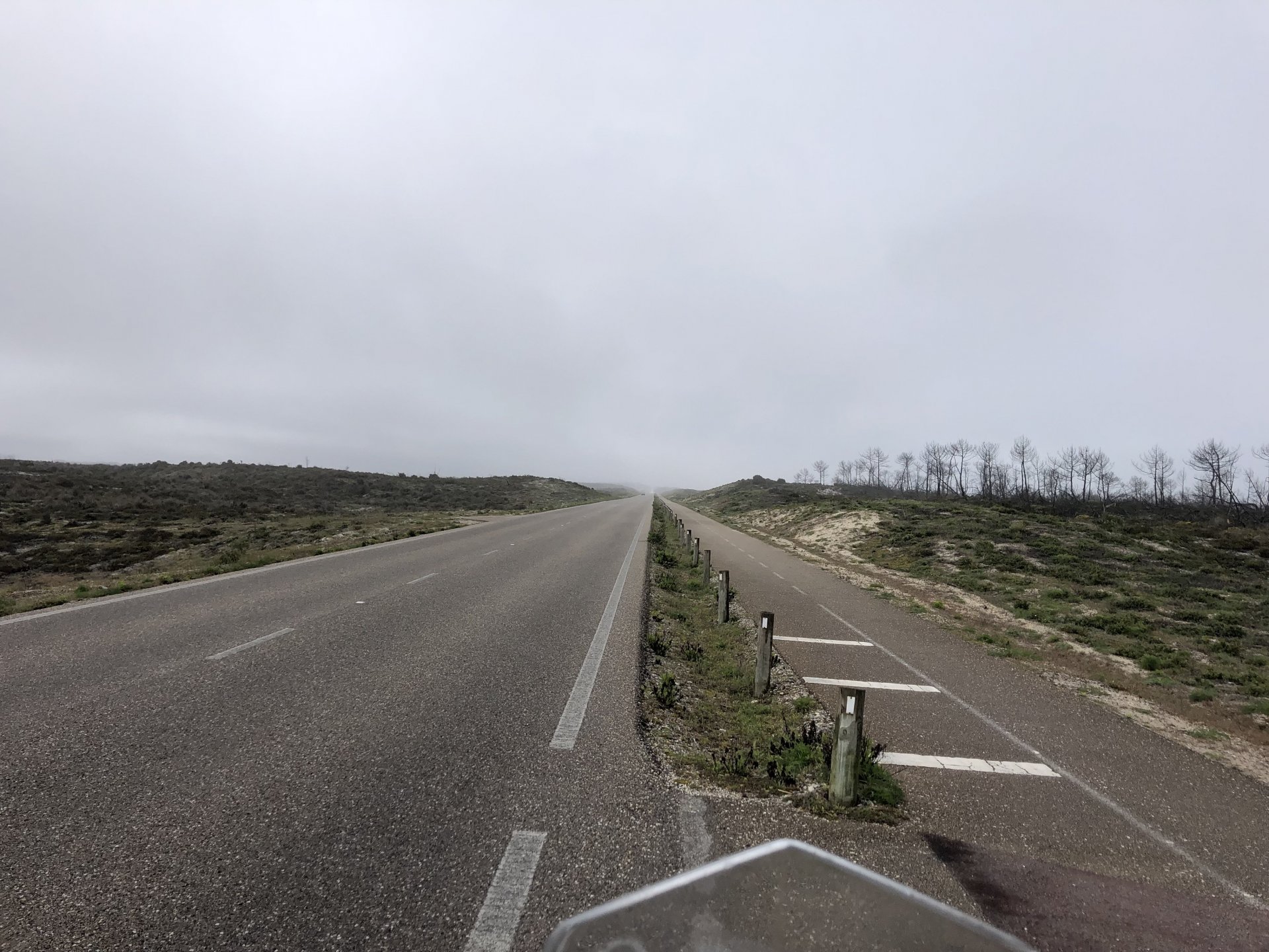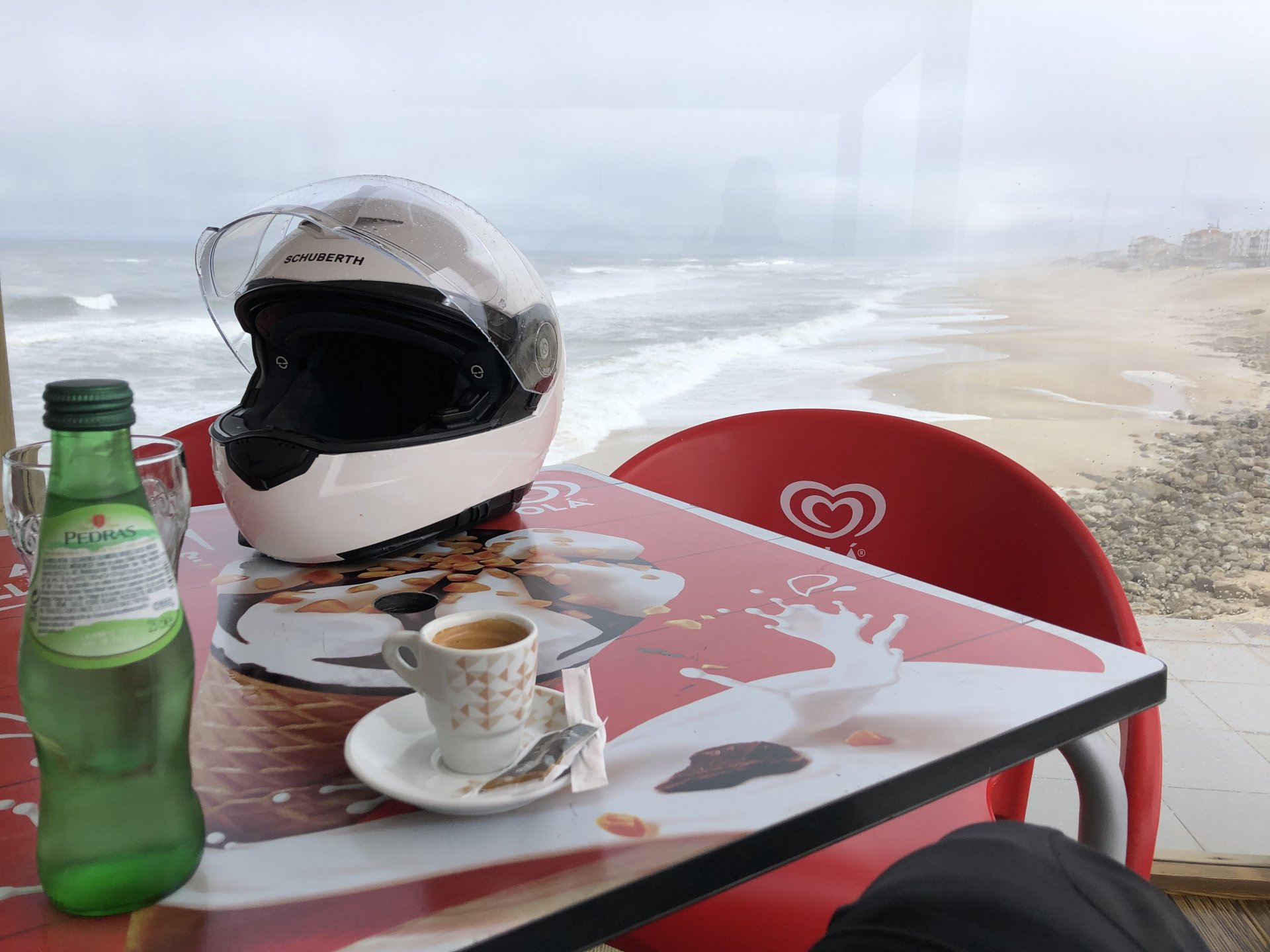 Rode home today, from my parents place up north. I had sort of planned to go on a long 4 or 5 day long ride, but the weather was shit as of yesterday, drove an hour each way yesterday to visit a client and this was the scenery: Lots of accidents on a very rainy motorway which tells me Portuguese people forget how to drive at the first rain, second and third day is not so bad which means all the worse ones crash right away. Didn't fancy touring around in rainy small roads, and also was in quite a shitty mood so just came home for a few days. Took the coastal road which is a lot less interesting than the hills, but I didn't feel like 5 hours of rain and cold. At first, it seemed like nice enough weather but only a few kms into it the fog started and then the rain, my jacket needs to be treated for water repellence, which made me curse Dainese, didn't get wet as the rain was not prolonged though, but also didn't feel like making many photo stops so no ride report. Only one stop for a coffee near a very moody beach: They call this the "Atlantic Road", it's a very epic name for a shitty road, Australia coast of California this is not Stopped for lunch in a little spot that seemed promising but as I was getting set up it started to rain and three cars full of spaniards arrived, next week being Easter they all go on to invade everything. I couldn't take the noisy lot and, eating outside being unappealing, just got back on the bike and rode home closer to home for a nice snack by the river A TDM came and parked next to the GS Got back on the bike before it started to rain again, bought groceries on the way and made it home with a filthy bike, for another expresso as I write this1 point