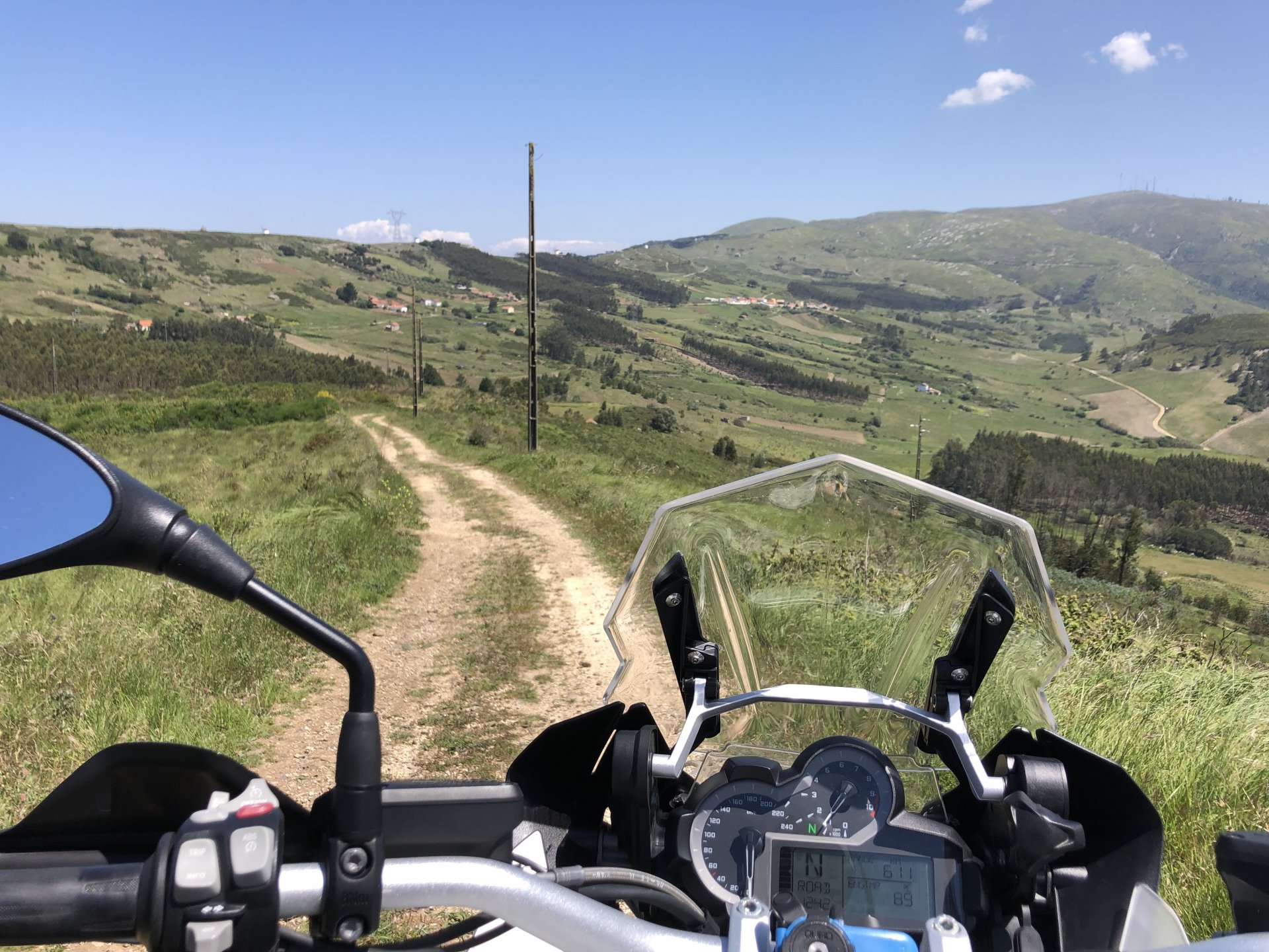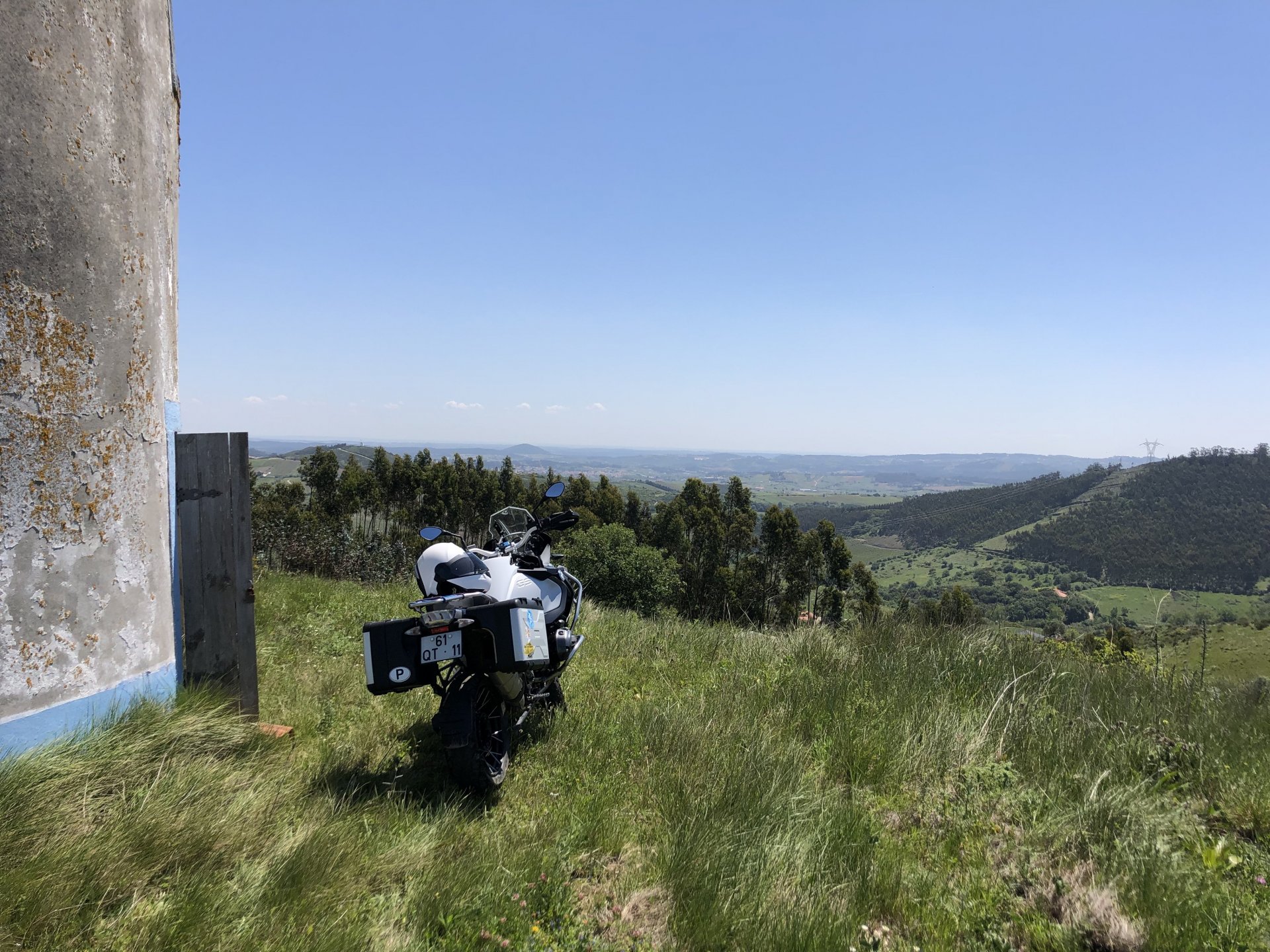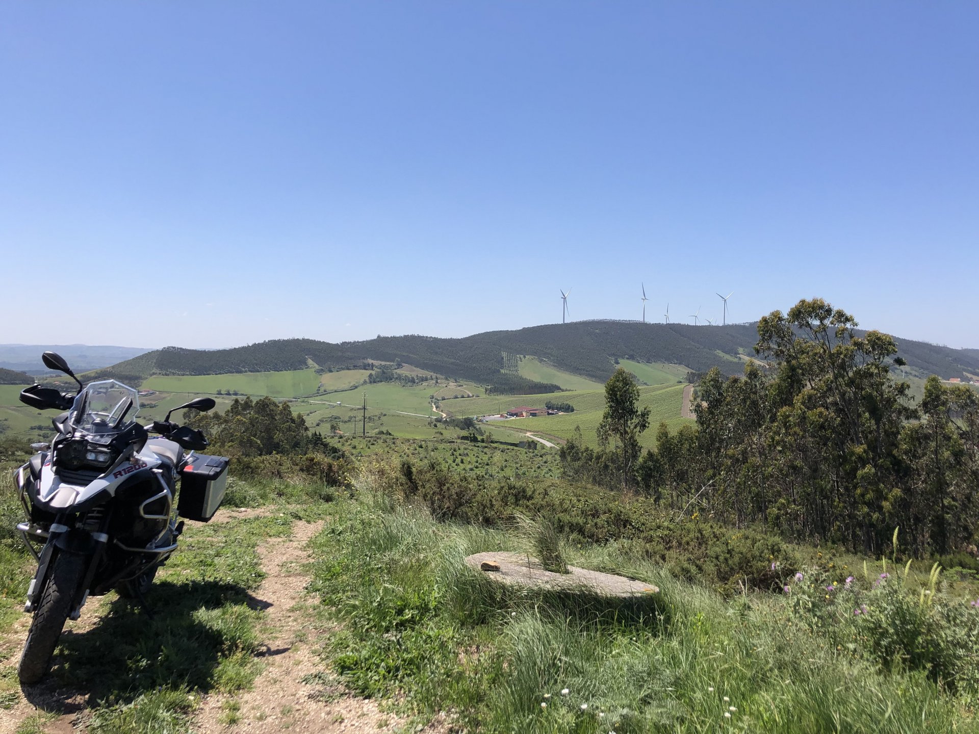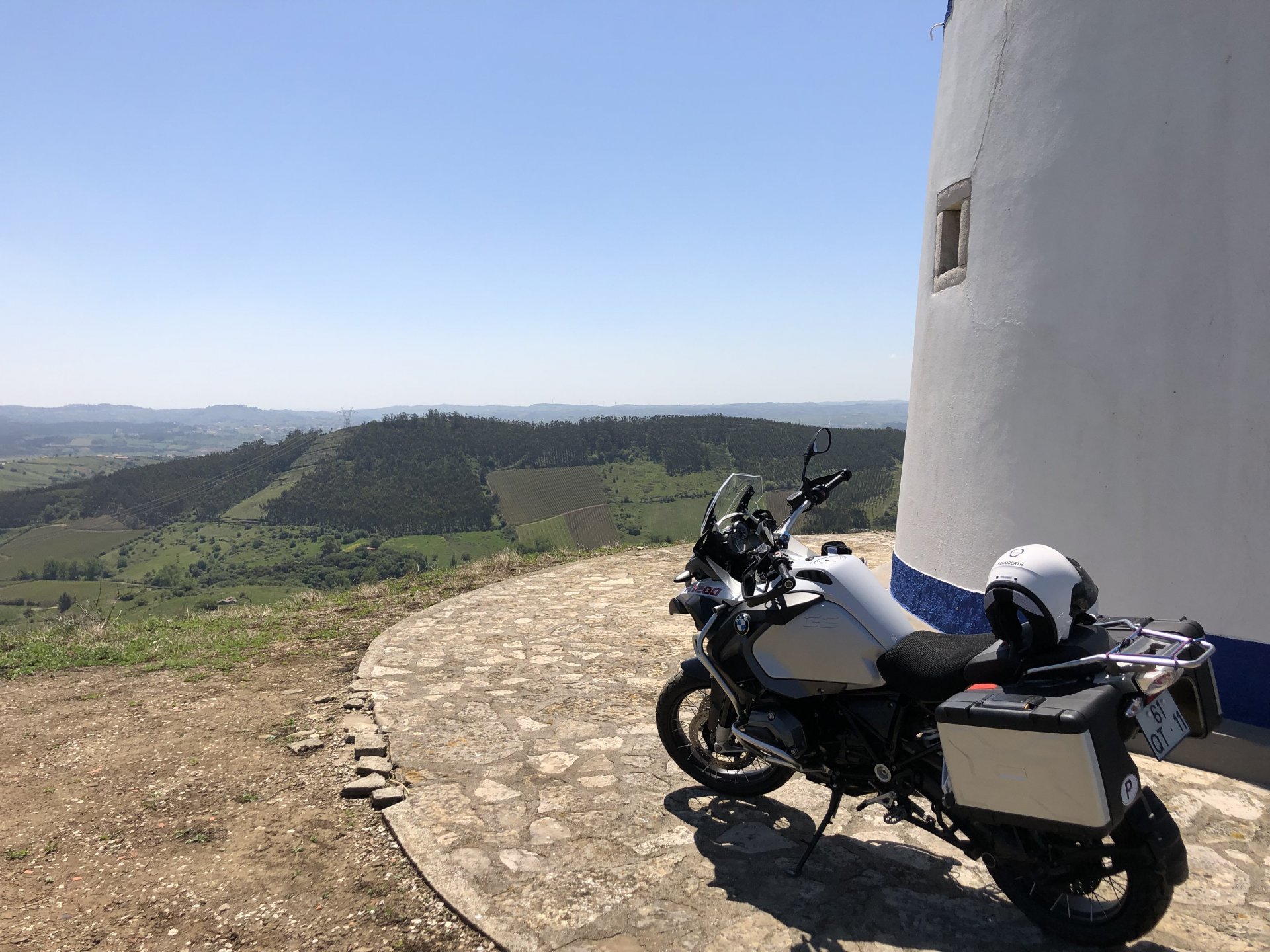 Rode from beautiful and cool seaside Ericeira to my home today, where it's hot and summery. The plan was to ride straight over since I have work to do, but in the middle of it got distracted by a short dirt road near the Montejunto area and went to see some more windmills. Had a bit of a moment going uphill in a narrow rocky dirt road where things got a little too uphill and bumpy for my taste, front wheel briefly in the air in first gear had me wondering about how smart it was doing that in a fully fueled 30 liter GS with luggage on , so I stopped for a breather. As is the norm, looking at the picture of the way in it looks like you can drive a Ferrari up there ... 619km on the range indicator: My home somewhere in the distance there, behind the bike: A km or so after and got back to tarmac, in all it was only about 3 or 4 km offroad but were quite interesting. Temperatures increased as I got over the hills going inland and suddenly it's 28º Stopped by the supermarket for fruit and improvised a topcase Got home and made sure my peaches are doing well in the sunshine: And so are the almonds: And that the little birds have finished furnishing their home for this year and have hatched already, you can't really see them though:2 points