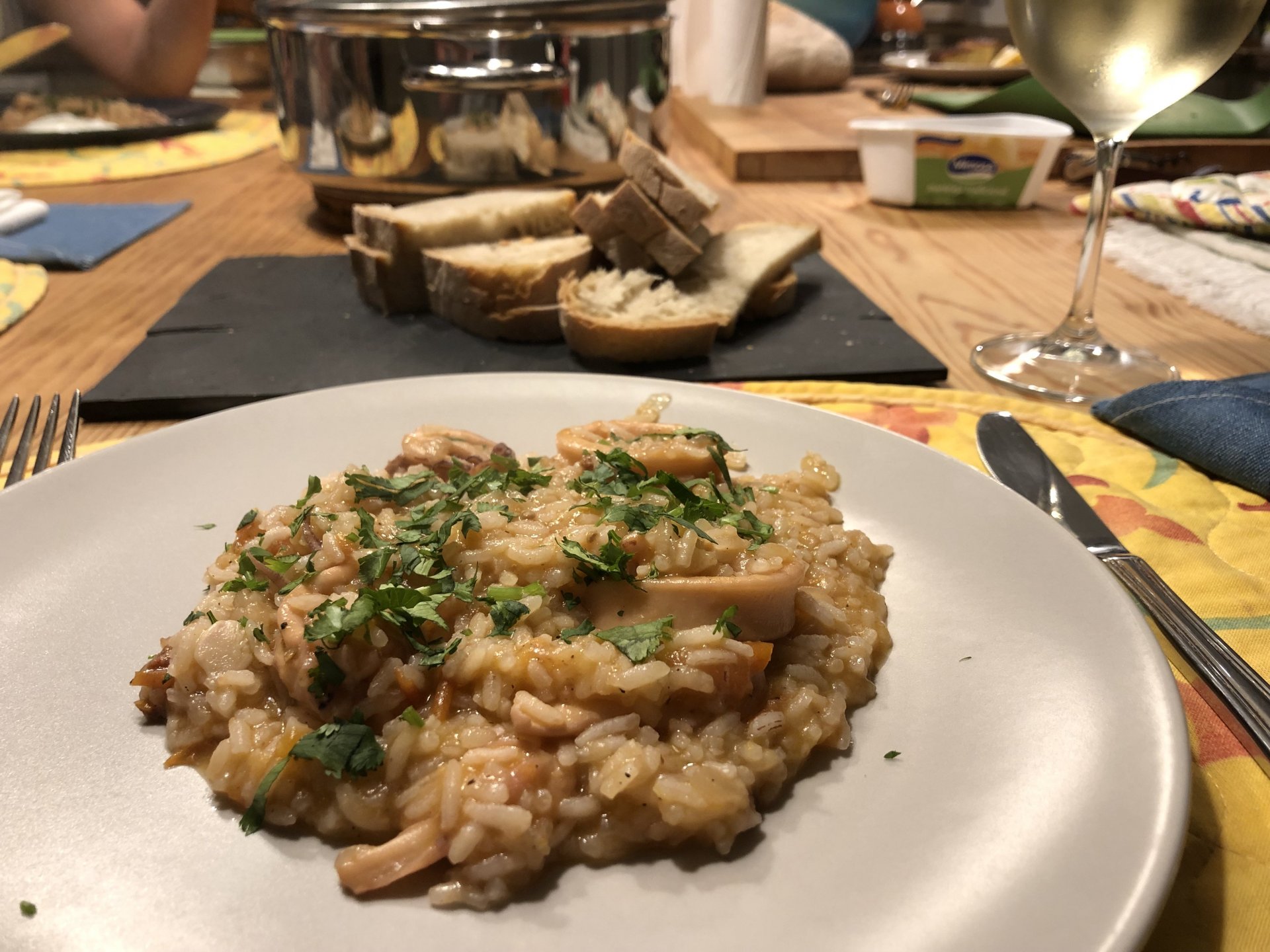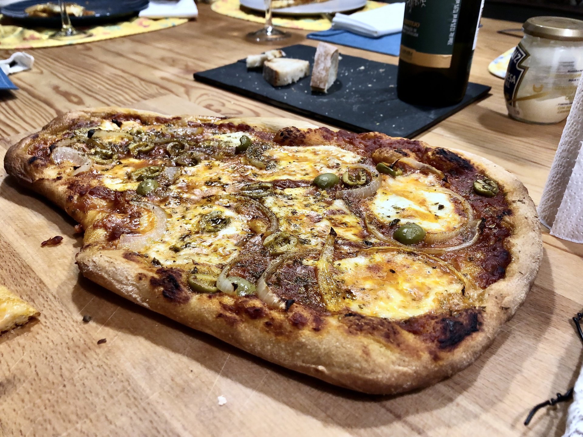 After Buckster's entry, this is never going to be the same, but here it goes anyway: Pennyroyal and oregano seasoned local farmed tomato salad, plus canned horse mackerel with my garden's amazing coriander, sliced onions and the neighbor's lemon's zest, with olive oil. The result is a lot better than the sum of the parts. THE tagliatelle "cacio & pepe", first time I got it properly right. Using a very nice truffle infused pecorino romano made it extra special. Alentejo blood chorizo and tomato rice, wild rice and white rice mix with my garden's fresh coriander. One of the tastiest things I´ve made for myself. Sourdough mix pizza, at Sofia's, from the ride report thread, not exactly round but proper tasty: For @boboneleg, "Queijo da Serra", buttery sheep's cheese from the Serra da Estrela, proper cheese! Squid rice, nothing fancy, oldschool portuguese and really great! The usual, roasted codfish and potatoes, plenty of onions and garlic, a classic on a rainy night3 points