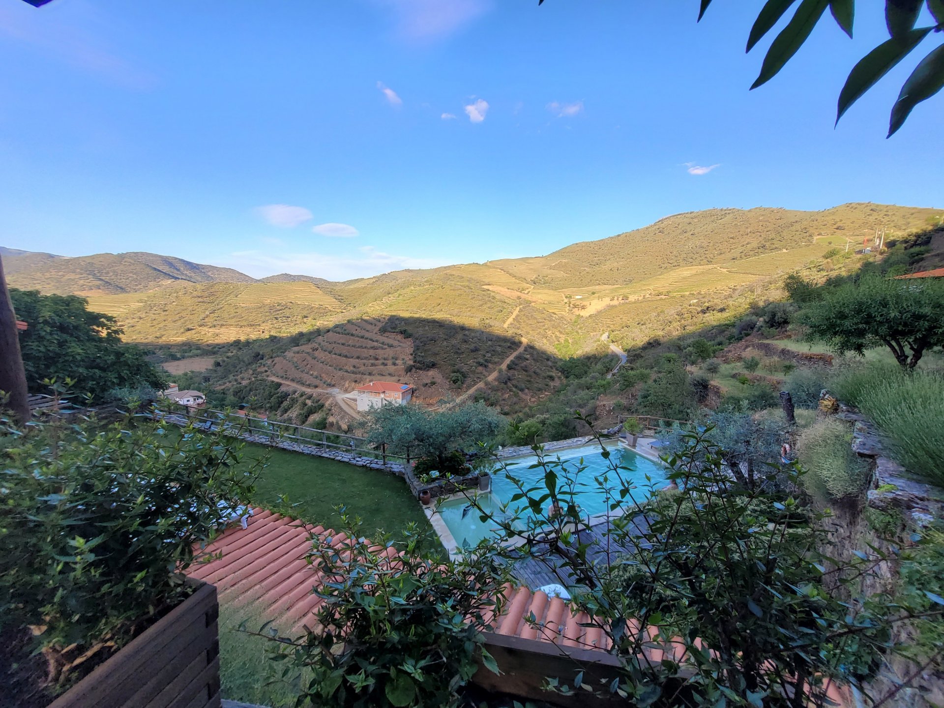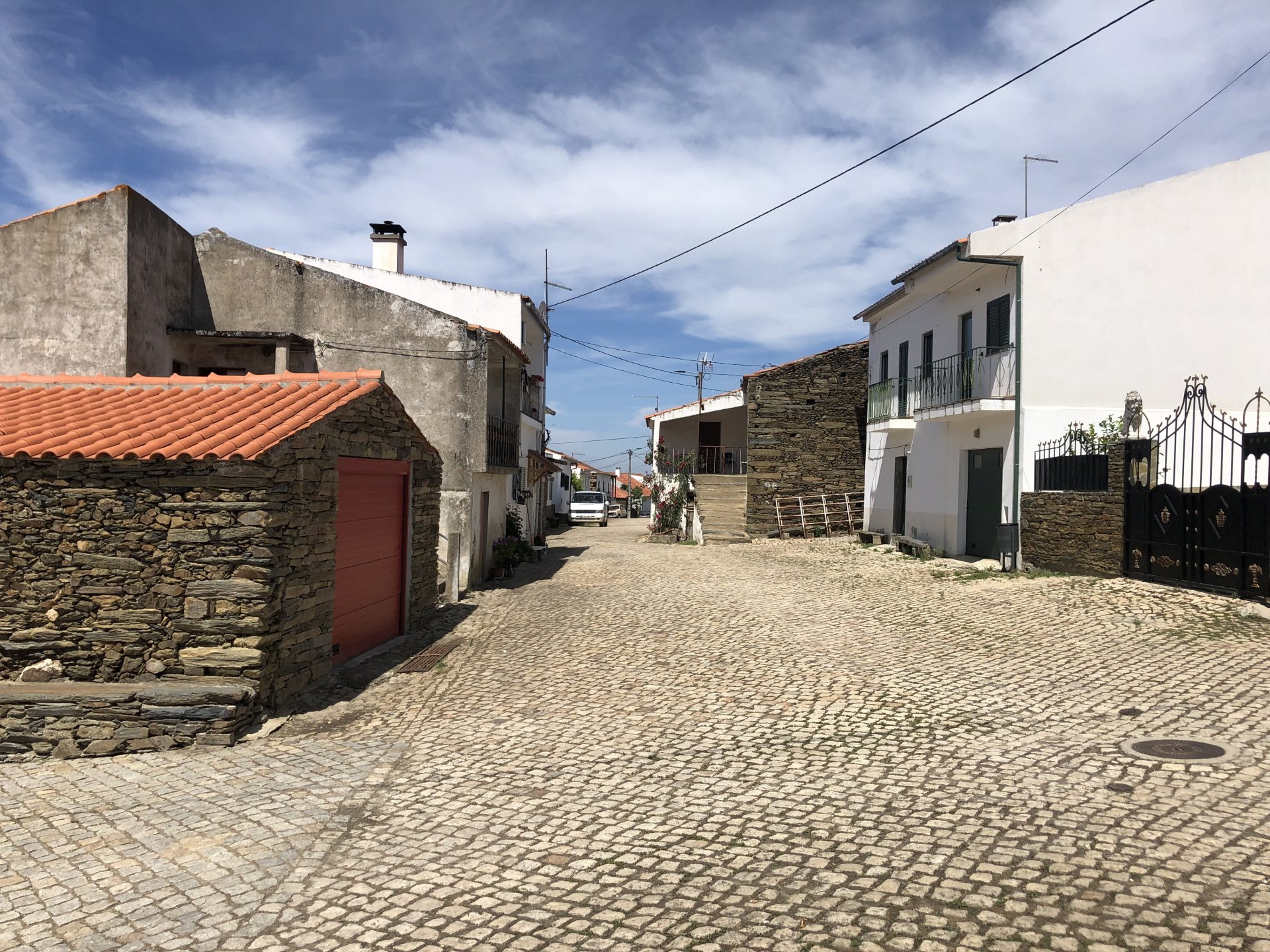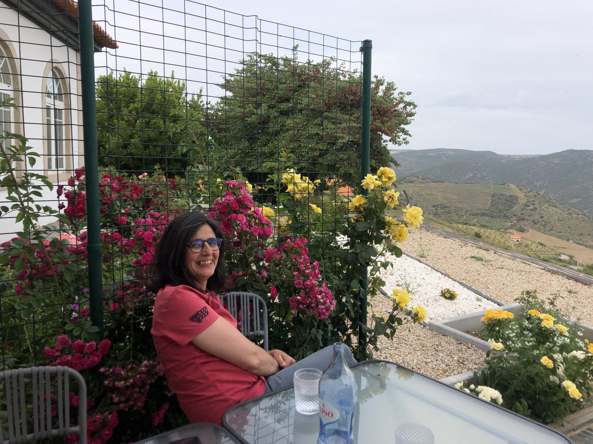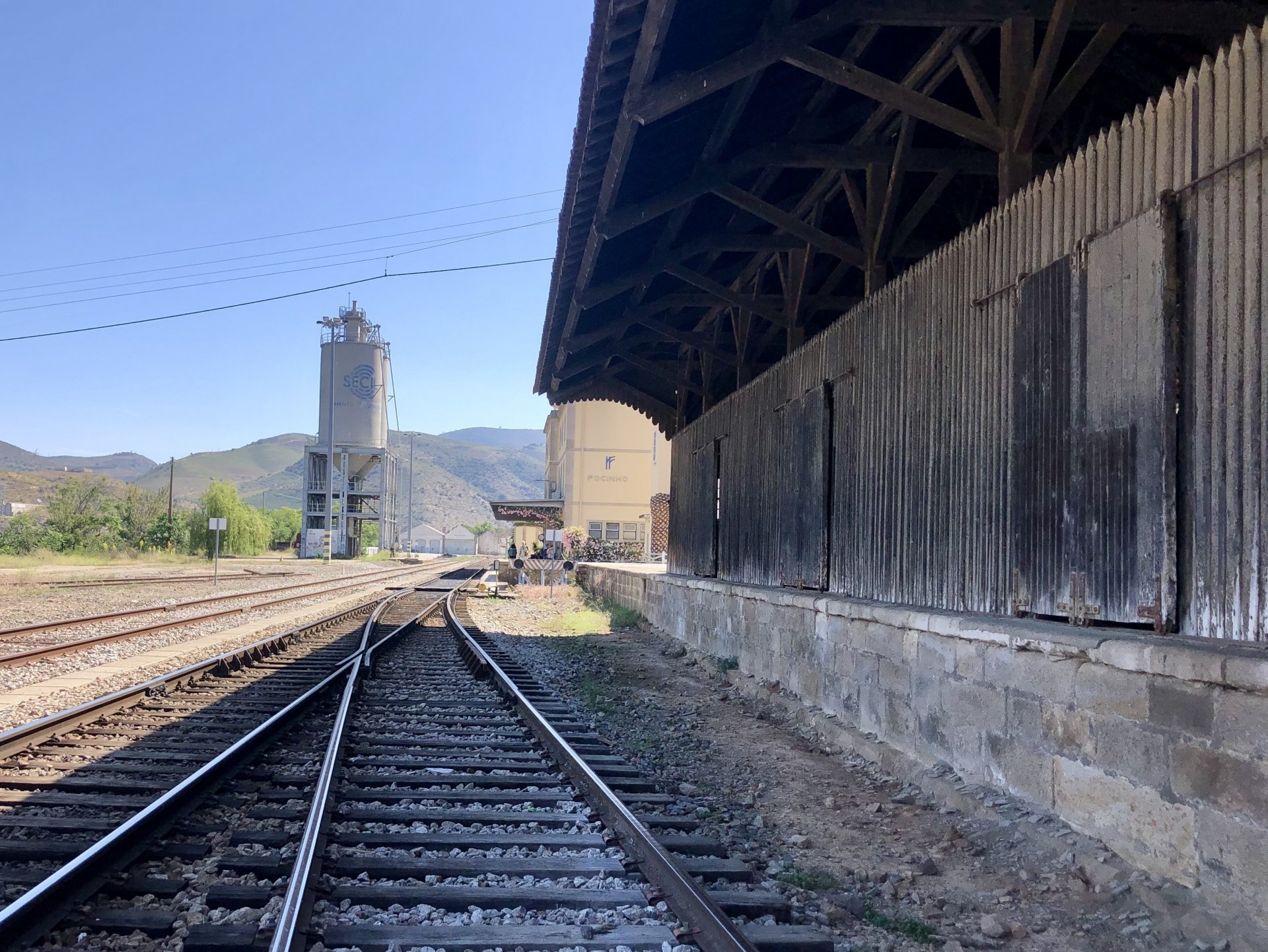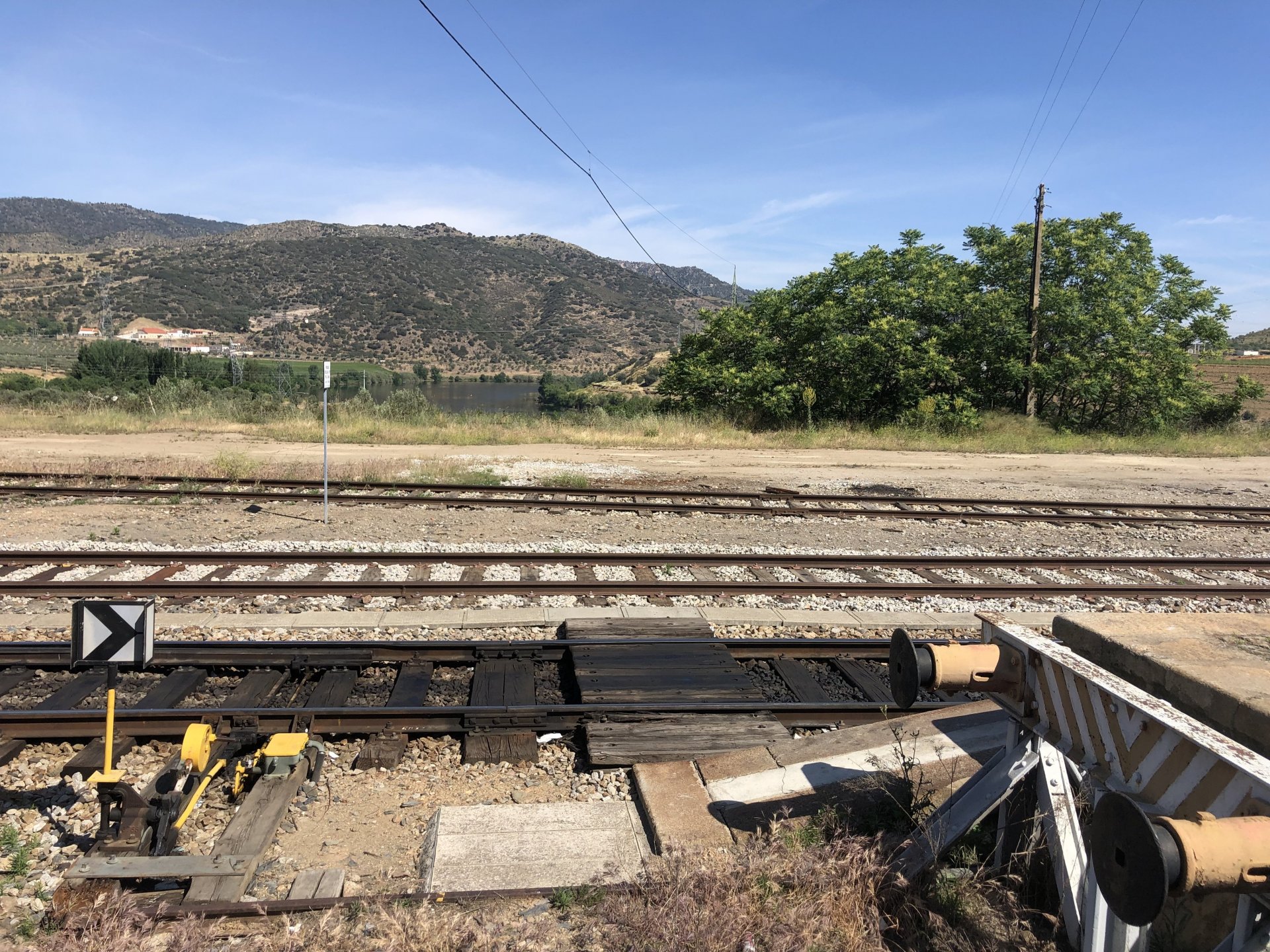 Waking up in Murça felt great, breakfast wasn't until 9AM so had plenty of time to get the stuff packed and cases on the bike like I like to do. Here is a little short clip of our balcony at 09:20, just before setting off, proper countryside soundtrack: Quick set off on the little N324 and we reached Mós quite quick, it's only a handful of kms till we saw the first viewpoint of the day at one of the many Saint Barbara Chapels, it was on top of a dirt road so instead of punishing the Speed Triple Sofia opted to ride on the back of my bike up there. Considering the terrain, it proved to be the right choice, too. The view from the top: A bush or tree growing on a split rock, I love stuff like this. We took our time there, I had an incredibly scenic piss and we carried on, took the M614 and shortly after we reached Pocinho. There was need for an expresso so the plan was to stop, but I got enchanted by the old train station and we took some pictures. The train still works using a more modern small building, but these two big wooden warehouses were from a time long gone when this region used to send most of its produce by train to Porto, mostly grapes and wine. They made for an interesting 20 minutes looking around Lots of flowers everywhere, you got to love the Douro! : So we stopped for a coffee with a view to the train station Half way through my cold water, I heard a diesel engine running on the line and ran over the street for a quick video, just for Pete, the train spotter: After Pocinho, I got on one of my favourite stretches of road, basically you go on a map and find find Poucinho or Vila Nova de Foz Coa, and get on the road following the river inwards into the general direction of Freixo de Espada à Cinta. We rode for a few kms before another stop, Sofia started getting a surge of calls and decided to stop in the shade to answer them. I kept myself occupied with taking a few pictures of a small High Douro village, "Peredo dos Castelhanos": Below, typical village scene, a 50kg Serra da Estrela shepherd dog comes home for lunch after giving me a friendly but still intimidating sideways look: And again we rode on, we didn't stop much for pictures of the road since Sofia was having such fun and I had already documented it in a previous trip, we rode to Freixo de Espada à Cinta, heading straight to Penedo Durão viewpoint for a snack. Penedo Durão is my favourite view in the whole of Portugal except for Sagres, there's a 900 meter drop to the river, with the spanish altiplano on the other side. Spain clearly the least favoured side of the river, as in other things.... We had a nice leftover bbq sandwich while looking at the Vultures and the Griffons and the hawks, I can spend hours there: A black vulture can go almost to 2,5 meters wing span, you can see it in the crappy iPhone picture below, just open it in your browser and zoom a little, it's an awe inspiring sight: As far as picnic locations go, it's hard to beat: I got soft, after a light lunch I started looking at the vultures and other birds, it was a surprise heat wave and approaching 36 or 37º. We stopped at Freixo de Espada à Cinta (Ash with a Sword tied to the Waist, LOL) for Speed Triple fuel, these inferior bikes have to fuel up everyday while mine is like a camel and can hold fuel for over a day's riding, anyways... as Sofia was fueling up her bike I moaned about it being hot and feeling like a stop in our friend Manuela's Inn for a dip in the pool and a nice dinner. It didn't take much convincing and I called in, after 5 minutes we were stopped for the day, bikes parked in the shade and me beelining to the pool: Is this hardcore motorcycling? No! Is this serious motorcycling? No! We did about 65 or 75 km that day, if that! It was properly enjoying the day! Before dinner and after a cold bottle of water and some nice orange juice and a nice soaking in the pool overlooking the Douro, we had a shower and I convinced myself it would be good to go for a walk to build up an apetite. I regretted as it's a hilly area and it was properly hot, regardless, here's a couple of pictures from our walk in Freixo de Espada à Cinta... We came back early, downed a bottle of cold water, and then had a bottle of Manuela's own production white wine, which is amazing, alongwith a nice dinner: It was a very short distance ridden that day, but high enjoyment and content. The next day would see more distance and more "Portugal", will post that tomorrow, maybe...1 point