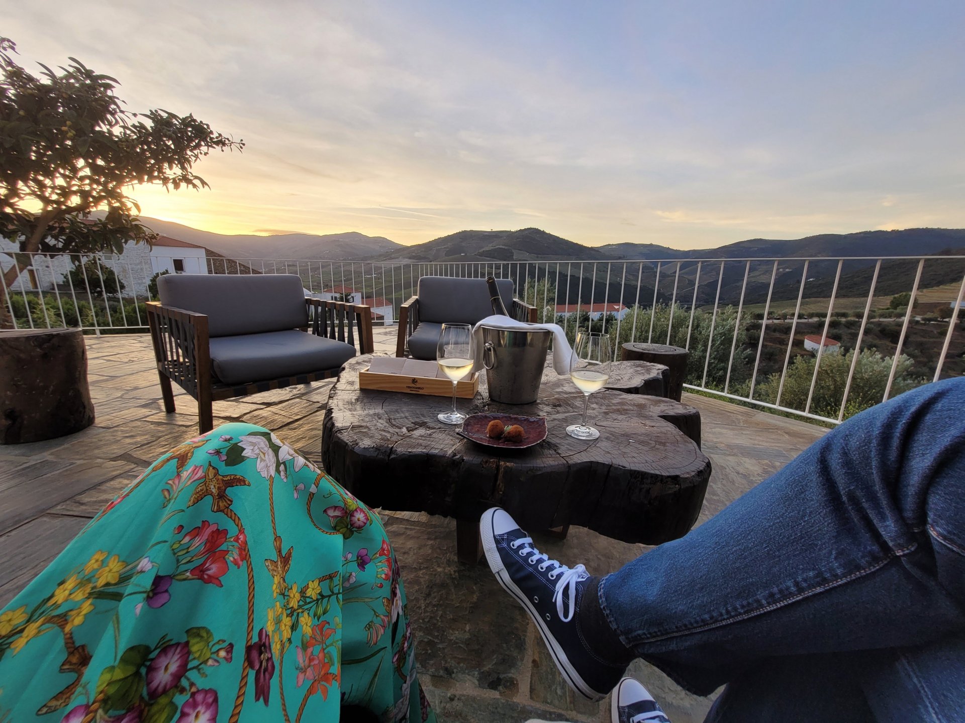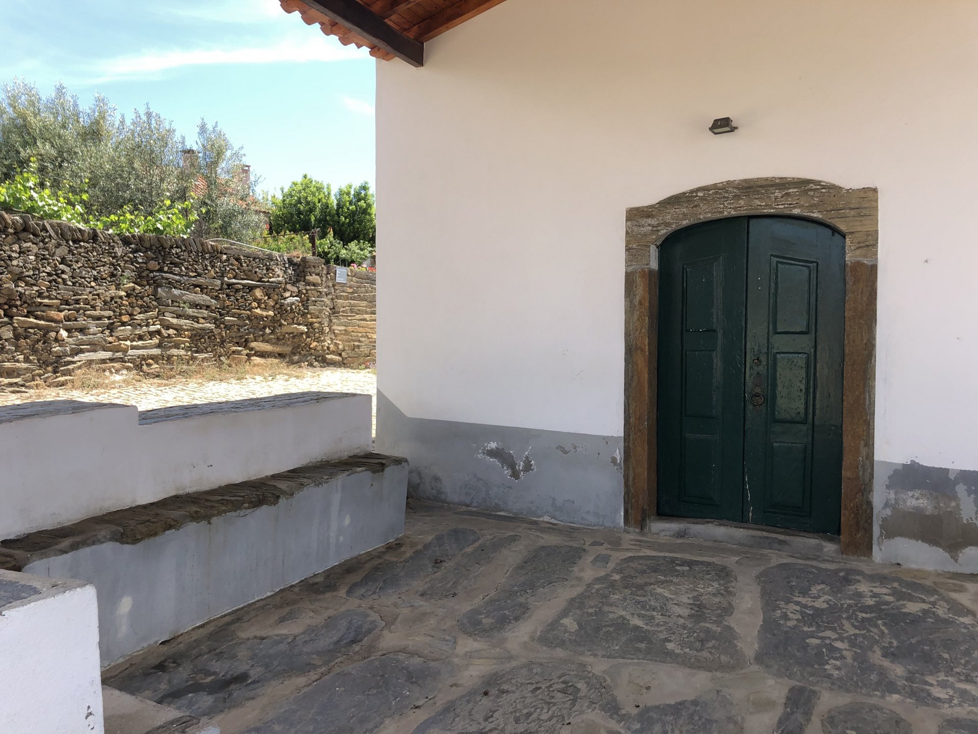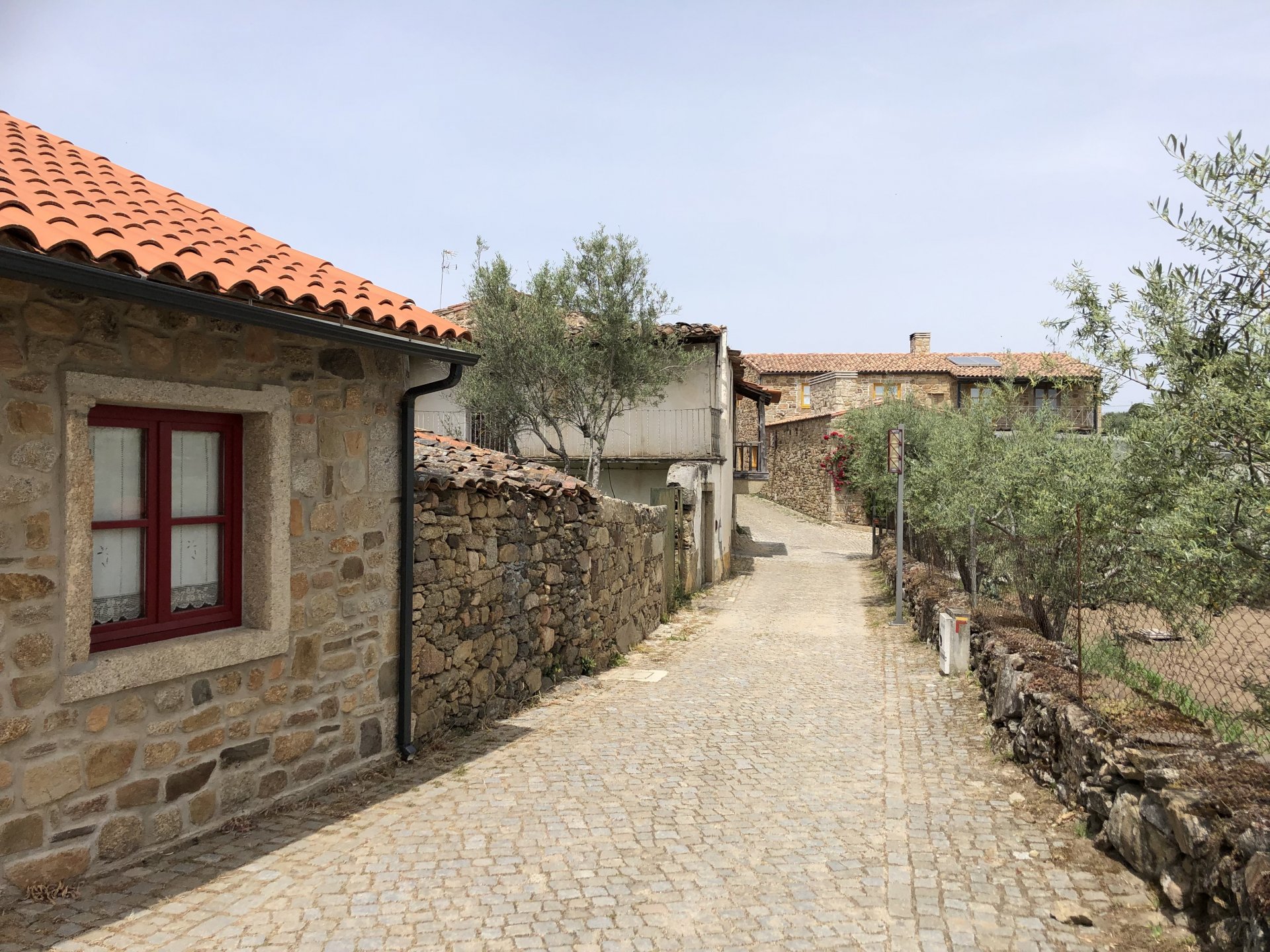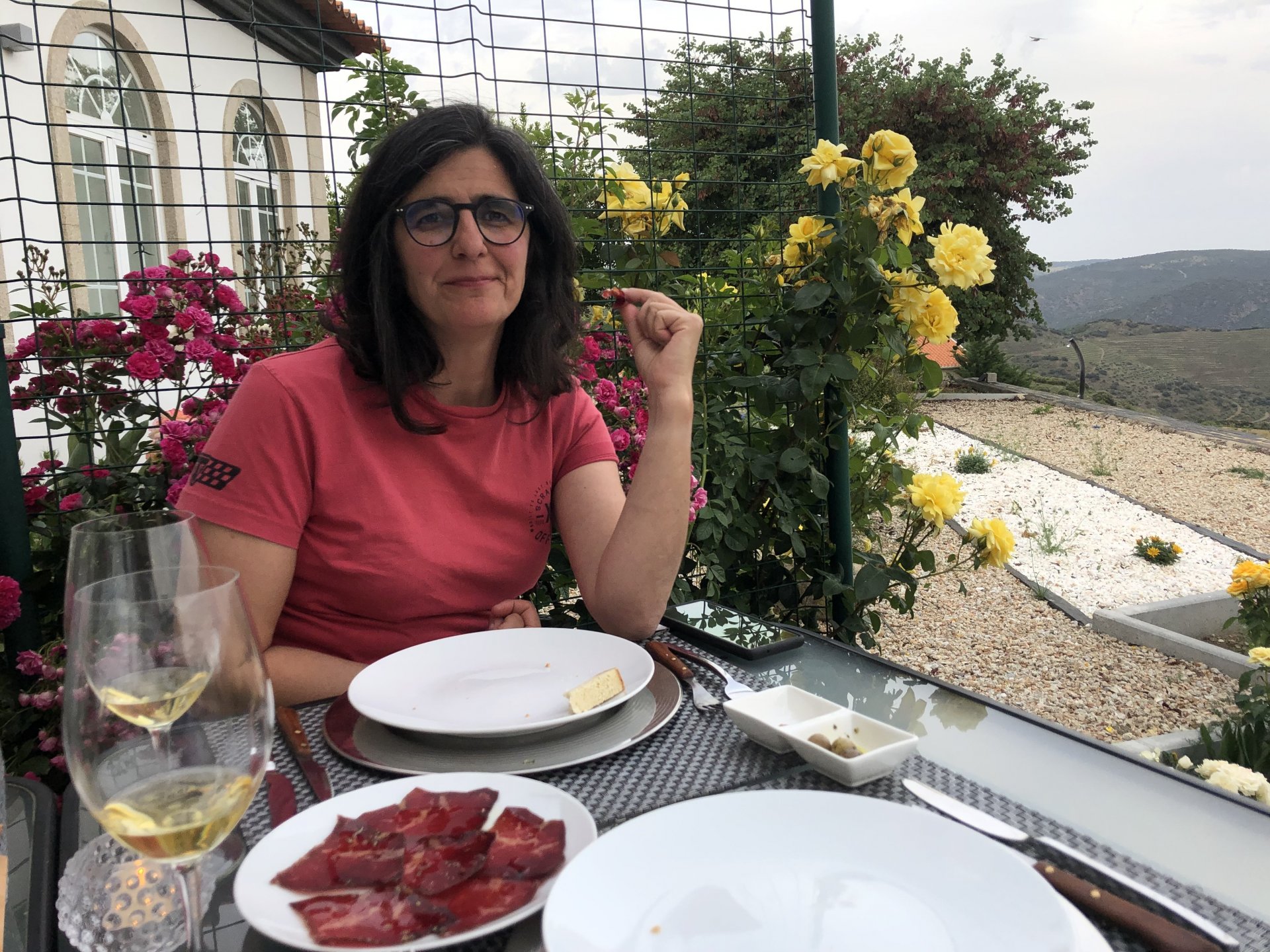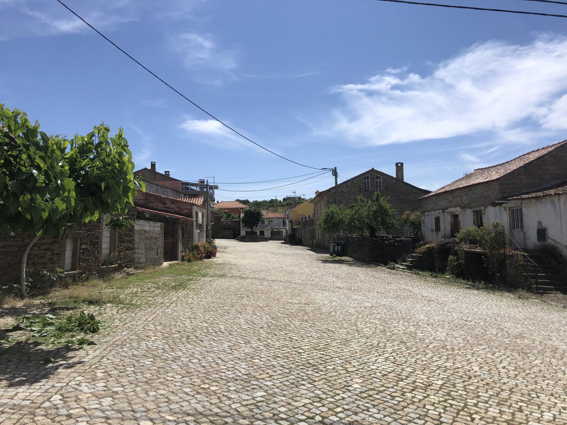 Waking up in Murça felt great, breakfast wasn't until 9AM so had plenty of time to get the stuff packed and cases on the bike like I like to do. Here is a little short clip of our balcony at 09:20, just before setting off, proper countryside soundtrack: Quick set off on the little N324 and we reached Mós quite quick, it's only a handful of kms till we saw the first viewpoint of the day at one of the many Saint Barbara Chapels, it was on top of a dirt road so instead of punishing the Speed Triple Sofia opted to ride on the back of my bike up there. Considering the terrain, it proved to be the right choice, too. The view from the top: A bush or tree growing on a split rock, I love stuff like this. We took our time there, I had an incredibly scenic piss and we carried on, took the M614 and shortly after we reached Pocinho. There was need for an expresso so the plan was to stop, but I got enchanted by the old train station and we took some pictures. The train still works using a more modern small building, but these two big wooden warehouses were from a time long gone when this region used to send most of its produce by train to Porto, mostly grapes and wine. They made for an interesting 20 minutes looking around Lots of flowers everywhere, you got to love the Douro! : So we stopped for a coffee with a view to the train station Half way through my cold water, I heard a diesel engine running on the line and ran over the street for a quick video, just for Pete, the train spotter: After Pocinho, I got on one of my favourite stretches of road, basically you go on a map and find find Poucinho or Vila Nova de Foz Coa, and get on the road following the river inwards into the general direction of Freixo de Espada à Cinta. We rode for a few kms before another stop, Sofia started getting a surge of calls and decided to stop in the shade to answer them. I kept myself occupied with taking a few pictures of a small High Douro village, "Peredo dos Castelhanos": Below, typical village scene, a 50kg Serra da Estrela shepherd dog comes home for lunch after giving me a friendly but still intimidating sideways look: And again we rode on, we didn't stop much for pictures of the road since Sofia was having such fun and I had already documented it in a previous trip, we rode to Freixo de Espada à Cinta, heading straight to Penedo Durão viewpoint for a snack. Penedo Durão is my favourite view in the whole of Portugal except for Sagres, there's a 900 meter drop to the river, with the spanish altiplano on the other side. Spain clearly the least favoured side of the river, as in other things.... We had a nice leftover bbq sandwich while looking at the Vultures and the Griffons and the hawks, I can spend hours there: A black vulture can go almost to 2,5 meters wing span, you can see it in the crappy iPhone picture below, just open it in your browser and zoom a little, it's an awe inspiring sight: As far as picnic locations go, it's hard to beat: I got soft, after a light lunch I started looking at the vultures and other birds, it was a surprise heat wave and approaching 36 or 37º. We stopped at Freixo de Espada à Cinta (Ash with a Sword tied to the Waist, LOL) for Speed Triple fuel, these inferior bikes have to fuel up everyday while mine is like a camel and can hold fuel for over a day's riding, anyways... as Sofia was fueling up her bike I moaned about it being hot and feeling like a stop in our friend Manuela's Inn for a dip in the pool and a nice dinner. It didn't take much convincing and I called in, after 5 minutes we were stopped for the day, bikes parked in the shade and me beelining to the pool: Is this hardcore motorcycling? No! Is this serious motorcycling? No! We did about 65 or 75 km that day, if that! It was properly enjoying the day! Before dinner and after a cold bottle of water and some nice orange juice and a nice soaking in the pool overlooking the Douro, we had a shower and I convinced myself it would be good to go for a walk to build up an apetite. I regretted as it's a hilly area and it was properly hot, regardless, here's a couple of pictures from our walk in Freixo de Espada à Cinta... We came back early, downed a bottle of cold water, and then had a bottle of Manuela's own production white wine, which is amazing, alongwith a nice dinner: It was a very short distance ridden that day, but high enjoyment and content. The next day would see more distance and more "Portugal", will post that tomorrow, maybe...1 point