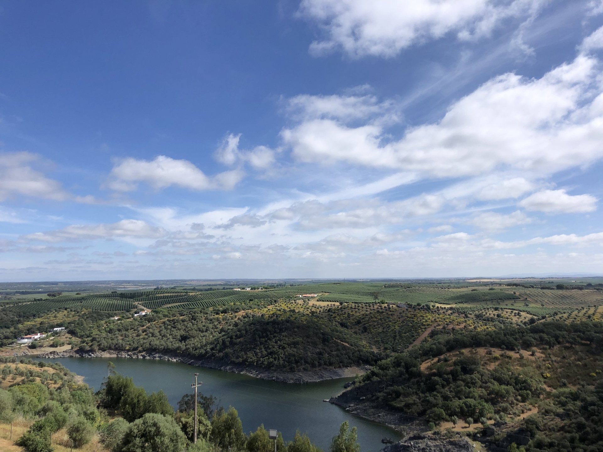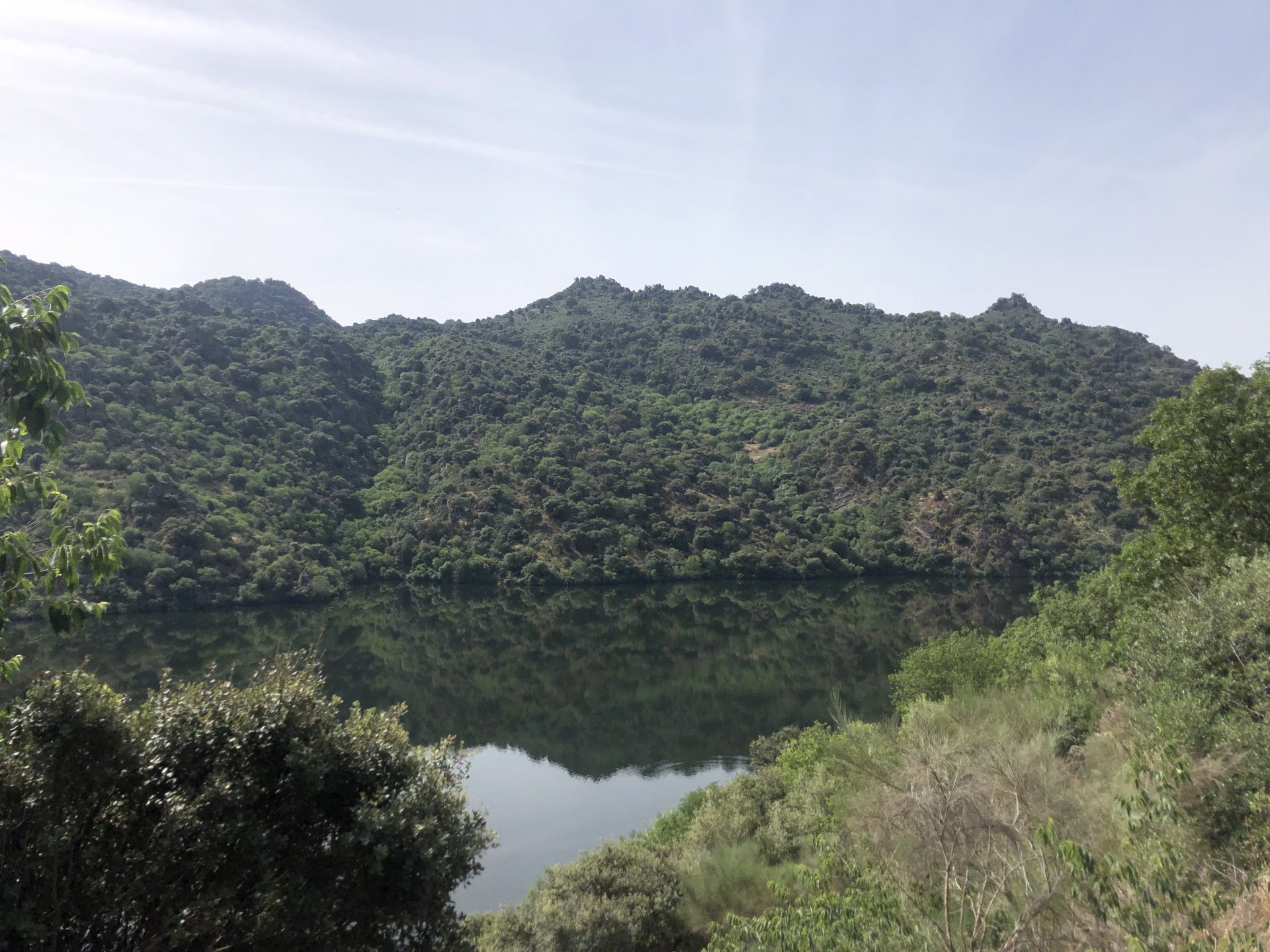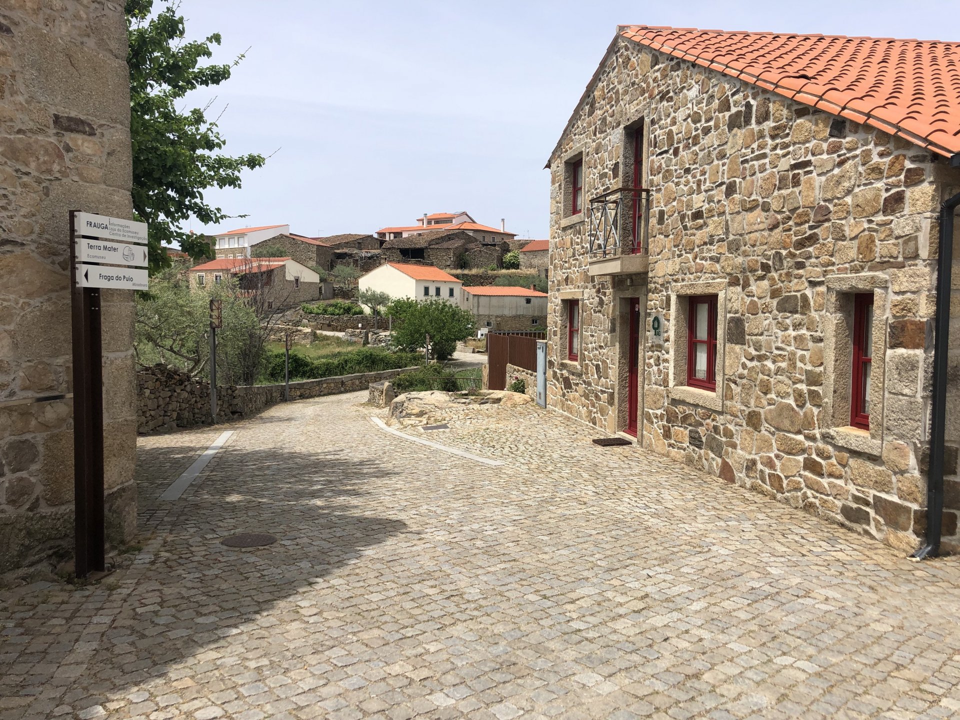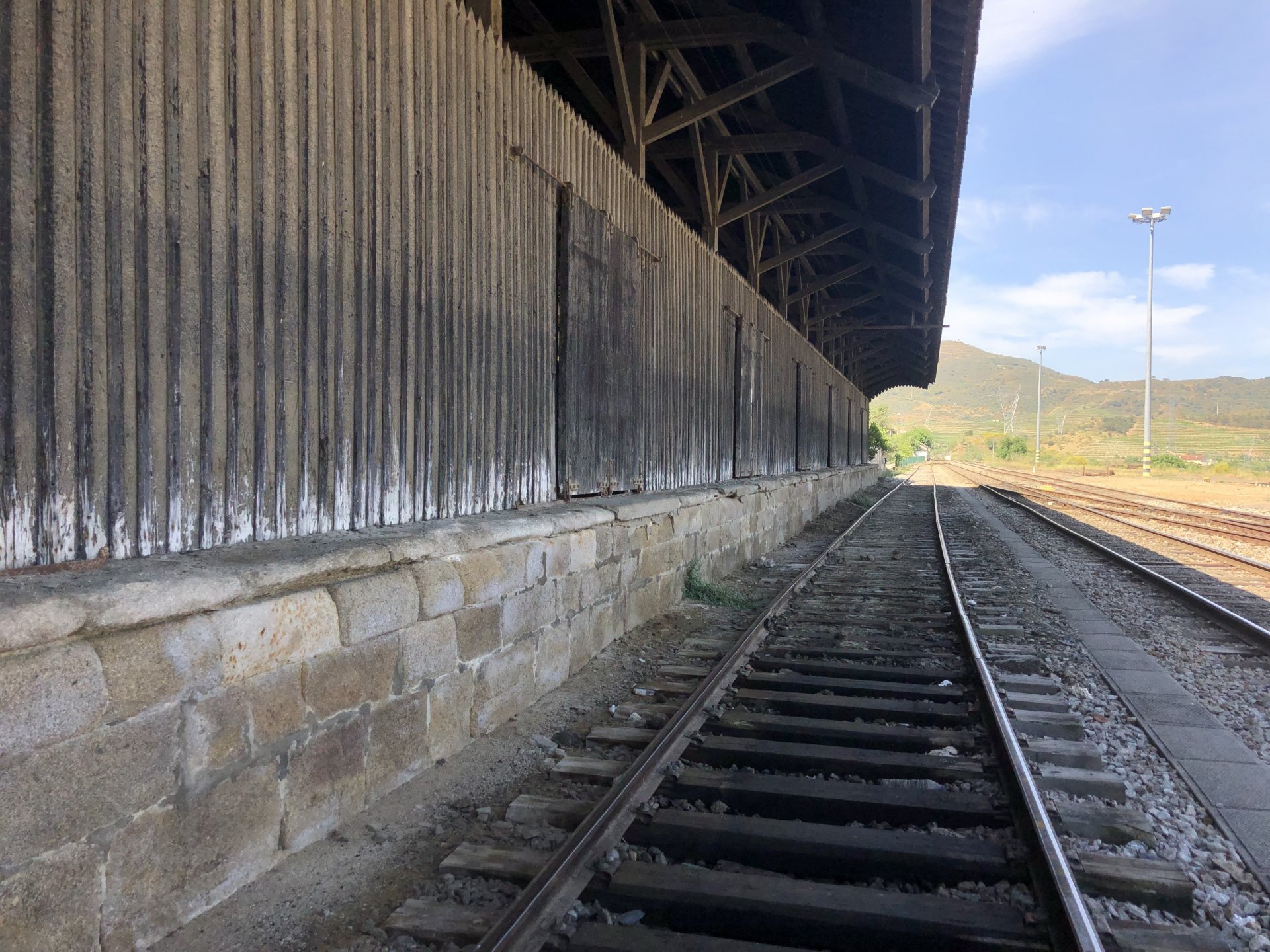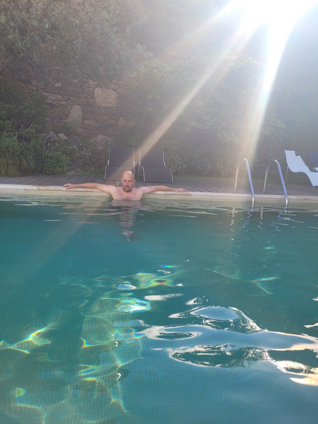Waking up in Murça felt great, breakfast wasn't until 9AM so had plenty of time to get the stuff packed and cases on the bike like I like to do. Here is a little short clip of our balcony at 09:20, just before setting off, proper countryside soundtrack: Quick set off on the little N324 and we reached Mós quite quick, it's only a handful of kms till we saw the first viewpoint of the day at one of the many Saint Barbara Chapels, it was on top of a dirt road so instead of punishing the Speed Triple Sofia opted to ride on the back of my bike up there. Considering the terrain, it proved to be the right choice, too. The view from the top: A bush or tree growing on a split rock, I love stuff like this. We took our time there, I had an incredibly scenic piss and we carried on, took the M614 and shortly after we reached Pocinho. There was need for an expresso so the plan was to stop, but I got enchanted by the old train station and we took some pictures. The train still works using a more modern small building, but these two big wooden warehouses were from a time long gone when this region used to send most of its produce by train to Porto, mostly grapes and wine. They made for an interesting 20 minutes looking around Lots of flowers everywhere, you got to love the Douro! : So we stopped for a coffee with a view to the train station Half way through my cold water, I heard a diesel engine running on the line and ran over the street for a quick video, just for Pete, the train spotter: After Pocinho, I got on one of my favourite stretches of road, basically you go on a map and find find Poucinho or Vila Nova de Foz Coa, and get on the road following the river inwards into the general direction of Freixo de Espada à Cinta. We rode for a few kms before another stop, Sofia started getting a surge of calls and decided to stop in the shade to answer them. I kept myself occupied with taking a few pictures of a small High Douro village, "Peredo dos Castelhanos": Below, typical village scene, a 50kg Serra da Estrela shepherd dog comes home for lunch after giving me a friendly but still intimidating sideways look: And again we rode on, we didn't stop much for pictures of the road since Sofia was having such fun and I had already documented it in a previous trip, we rode to Freixo de Espada à Cinta, heading straight to Penedo Durão viewpoint for a snack. Penedo Durão is my favourite view in the whole of Portugal except for Sagres, there's a 900 meter drop to the river, with the spanish altiplano on the other side. Spain clearly the least favoured side of the river, as in other things.... We had a nice leftover bbq sandwich while looking at the Vultures and the Griffons and the hawks, I can spend hours there: A black vulture can go almost to 2,5 meters wing span, you can see it in the crappy iPhone picture below, just open it in your browser and zoom a little, it's an awe inspiring sight: As far as picnic locations go, it's hard to beat: I got soft, after a light lunch I started looking at the vultures and other birds, it was a surprise heat wave and approaching 36 or 37º. We stopped at Freixo de Espada à Cinta (Ash with a Sword tied to the Waist, LOL) for Speed Triple fuel, these inferior bikes have to fuel up everyday while mine is like a camel and can hold fuel for over a day's riding, anyways... as Sofia was fueling up her bike I moaned about it being hot and feeling like a stop in our friend Manuela's Inn for a dip in the pool and a nice dinner. It didn't take much convincing and I called in, after 5 minutes we were stopped for the day, bikes parked in the shade and me beelining to the pool: Is this hardcore motorcycling? No! Is this serious motorcycling? No! We did about 65 or 75 km that day, if that! It was properly enjoying the day! Before dinner and after a cold bottle of water and some nice orange juice and a nice soaking in the pool overlooking the Douro, we had a shower and I convinced myself it would be good to go for a walk to build up an apetite. I regretted as it's a hilly area and it was properly hot, regardless, here's a couple of pictures from our walk in Freixo de Espada à Cinta... We came back early, downed a bottle of cold water, and then had a bottle of Manuela's own production white wine, which is amazing, alongwith a nice dinner: It was a very short distance ridden that day, but high enjoyment and content. The next day would see more distance and more "Portugal", will post that tomorrow, maybe...1 point