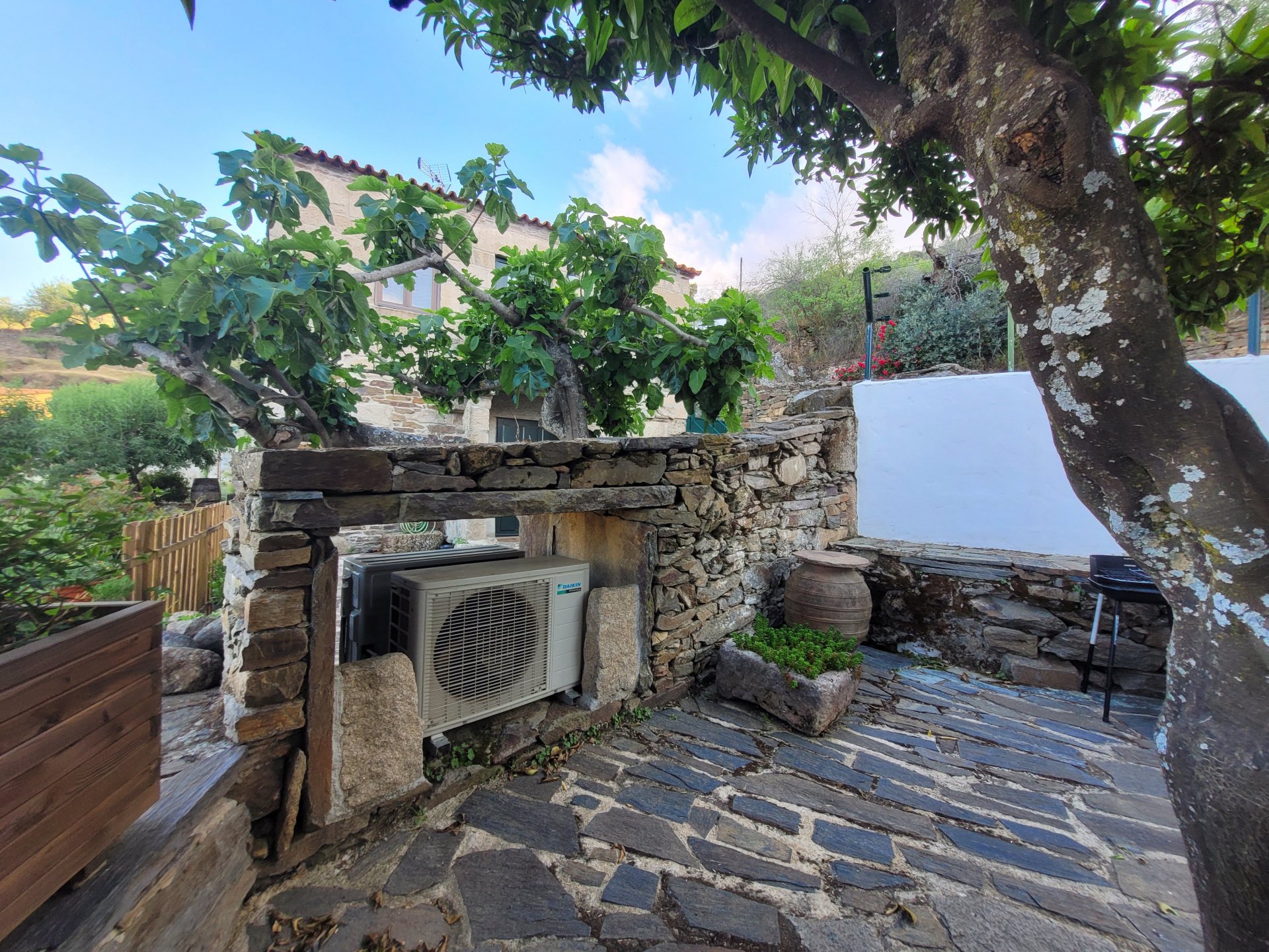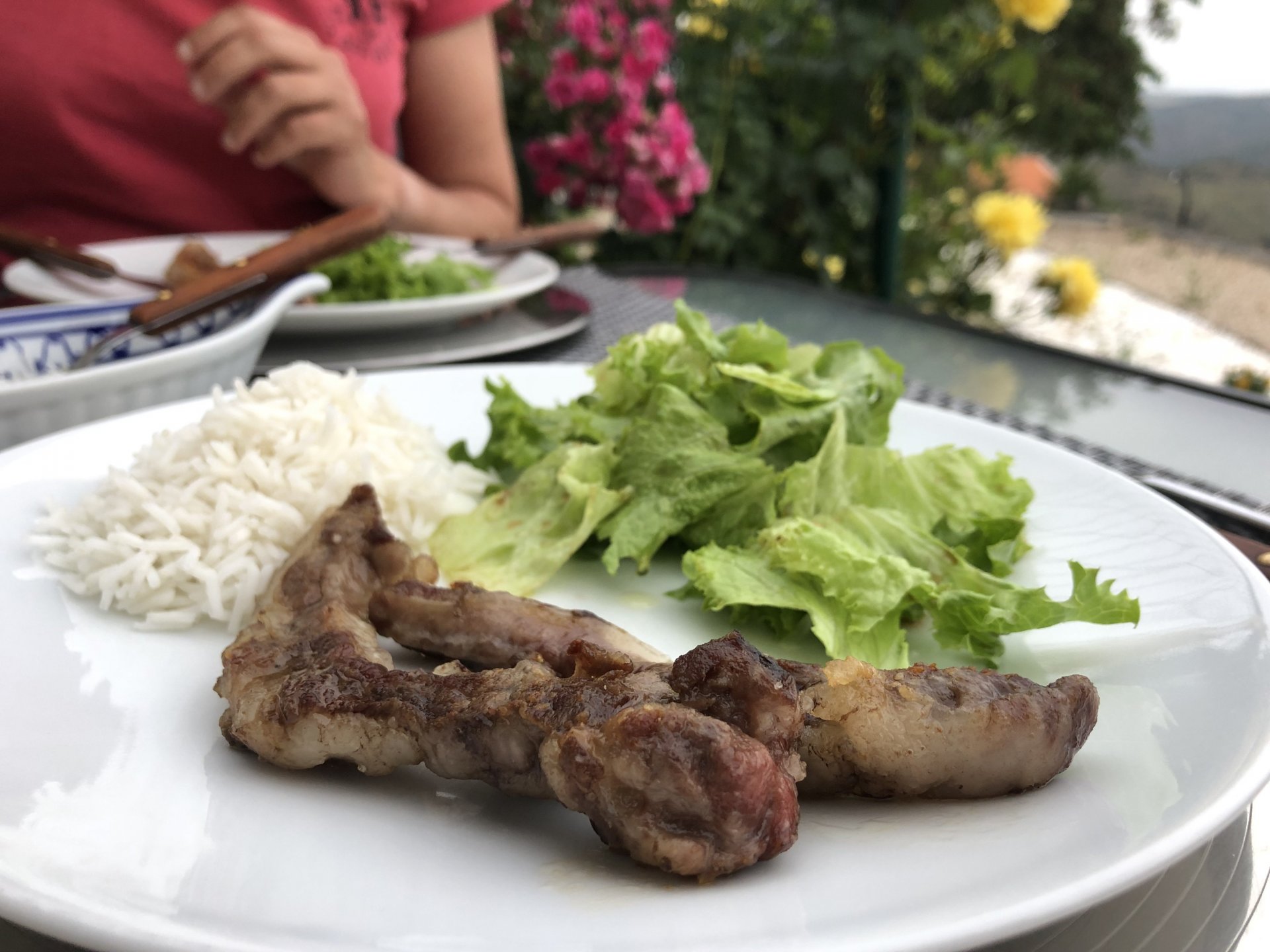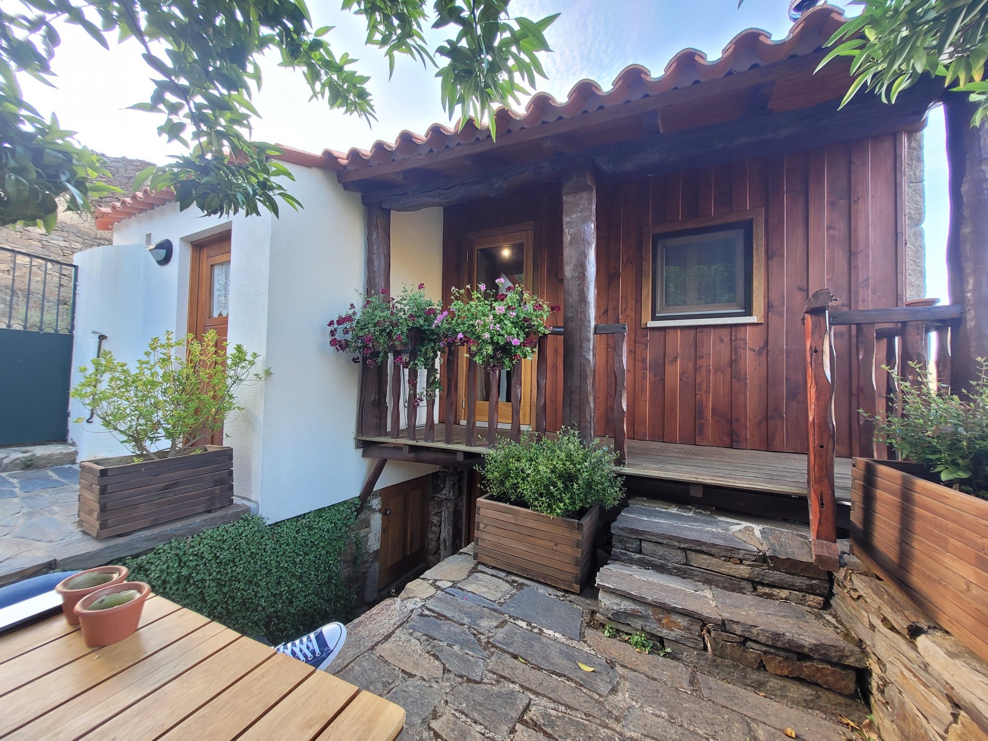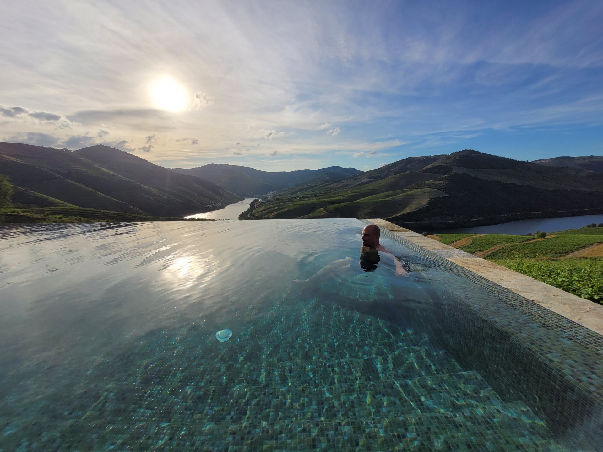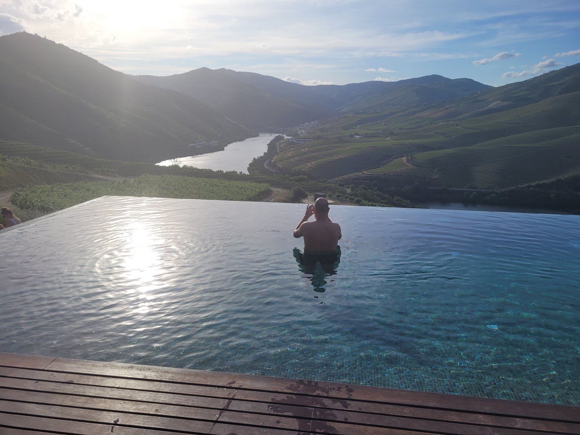 Waking up in Murça felt great, breakfast wasn't until 9AM so had plenty of time to get the stuff packed and cases on the bike like I like to do. Here is a little short clip of our balcony at 09:20, just before setting off, proper countryside soundtrack: Quick set off on the little N324 and we reached Mós quite quick, it's only a handful of kms till we saw the first viewpoint of the day at one of the many Saint Barbara Chapels, it was on top of a dirt road so instead of punishing the Speed Triple Sofia opted to ride on the back of my bike up there. Considering the terrain, it proved to be the right choice, too. The view from the top: A bush or tree growing on a split rock, I love stuff like this. We took our time there, I had an incredibly scenic piss and we carried on, took the M614 and shortly after we reached Pocinho. There was need for an expresso so the plan was to stop, but I got enchanted by the old train station and we took some pictures. The train still works using a more modern small building, but these two big wooden warehouses were from a time long gone when this region used to send most of its produce by train to Porto, mostly grapes and wine. They made for an interesting 20 minutes looking around Lots of flowers everywhere, you got to love the Douro! : So we stopped for a coffee with a view to the train station Half way through my cold water, I heard a diesel engine running on the line and ran over the street for a quick video, just for Pete, the train spotter: After Pocinho, I got on one of my favourite stretches of road, basically you go on a map and find find Poucinho or Vila Nova de Foz Coa, and get on the road following the river inwards into the general direction of Freixo de Espada à Cinta. We rode for a few kms before another stop, Sofia started getting a surge of calls and decided to stop in the shade to answer them. I kept myself occupied with taking a few pictures of a small High Douro village, "Peredo dos Castelhanos": Below, typical village scene, a 50kg Serra da Estrela shepherd dog comes home for lunch after giving me a friendly but still intimidating sideways look: And again we rode on, we didn't stop much for pictures of the road since Sofia was having such fun and I had already documented it in a previous trip, we rode to Freixo de Espada à Cinta, heading straight to Penedo Durão viewpoint for a snack. Penedo Durão is my favourite view in the whole of Portugal except for Sagres, there's a 900 meter drop to the river, with the spanish altiplano on the other side. Spain clearly the least favoured side of the river, as in other things.... We had a nice leftover bbq sandwich while looking at the Vultures and the Griffons and the hawks, I can spend hours there: A black vulture can go almost to 2,5 meters wing span, you can see it in the crappy iPhone picture below, just open it in your browser and zoom a little, it's an awe inspiring sight: As far as picnic locations go, it's hard to beat: I got soft, after a light lunch I started looking at the vultures and other birds, it was a surprise heat wave and approaching 36 or 37º. We stopped at Freixo de Espada à Cinta (Ash with a Sword tied to the Waist, LOL) for Speed Triple fuel, these inferior bikes have to fuel up everyday while mine is like a camel and can hold fuel for over a day's riding, anyways... as Sofia was fueling up her bike I moaned about it being hot and feeling like a stop in our friend Manuela's Inn for a dip in the pool and a nice dinner. It didn't take much convincing and I called in, after 5 minutes we were stopped for the day, bikes parked in the shade and me beelining to the pool: Is this hardcore motorcycling? No! Is this serious motorcycling? No! We did about 65 or 75 km that day, if that! It was properly enjoying the day! Before dinner and after a cold bottle of water and some nice orange juice and a nice soaking in the pool overlooking the Douro, we had a shower and I convinced myself it would be good to go for a walk to build up an apetite. I regretted as it's a hilly area and it was properly hot, regardless, here's a couple of pictures from our walk in Freixo de Espada à Cinta... We came back early, downed a bottle of cold water, and then had a bottle of Manuela's own production white wine, which is amazing, alongwith a nice dinner: It was a very short distance ridden that day, but high enjoyment and content. The next day would see more distance and more "Portugal", will post that tomorrow, maybe...1 point