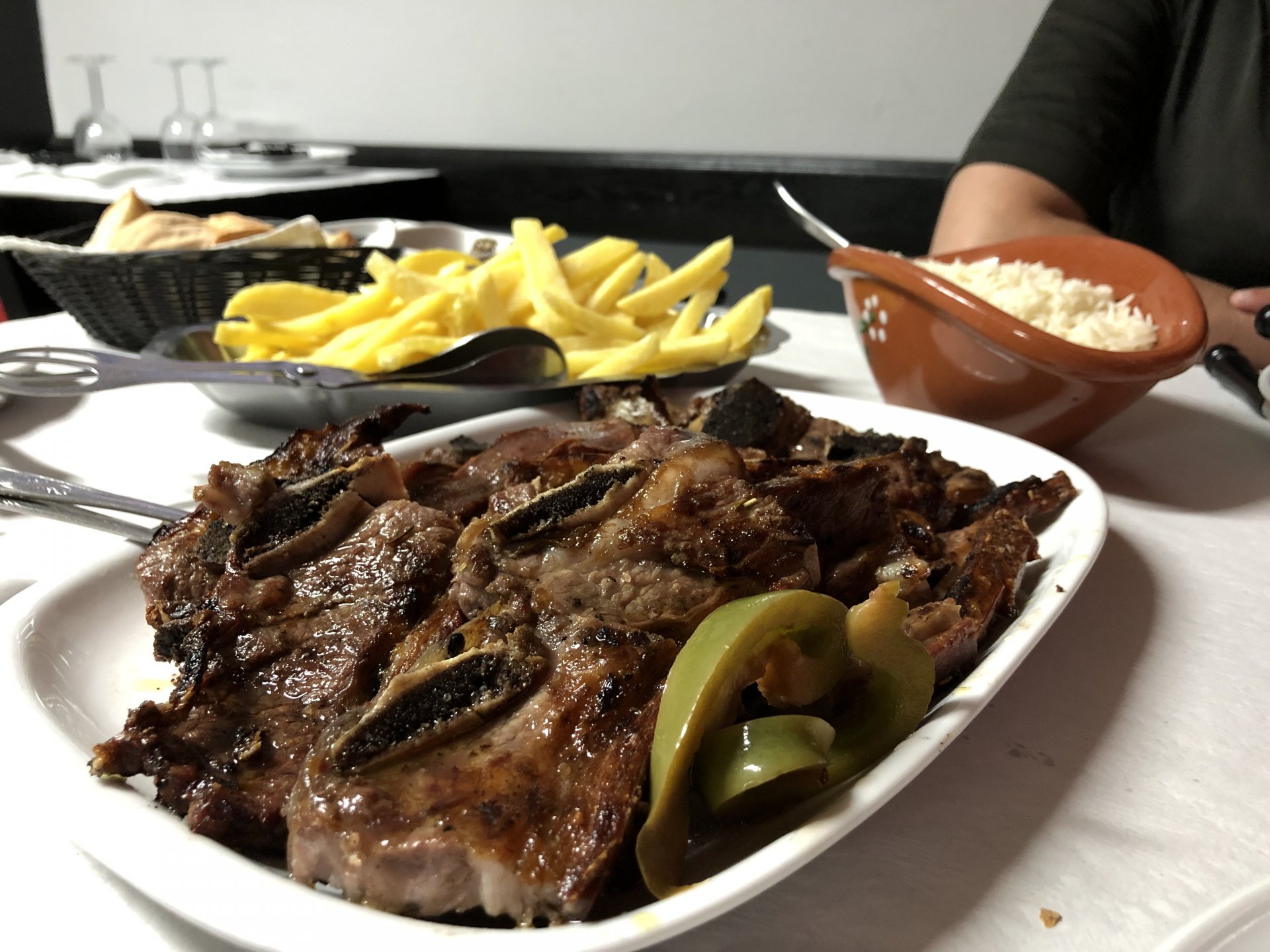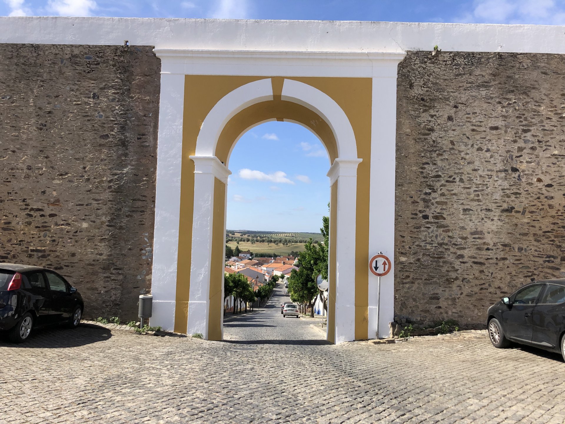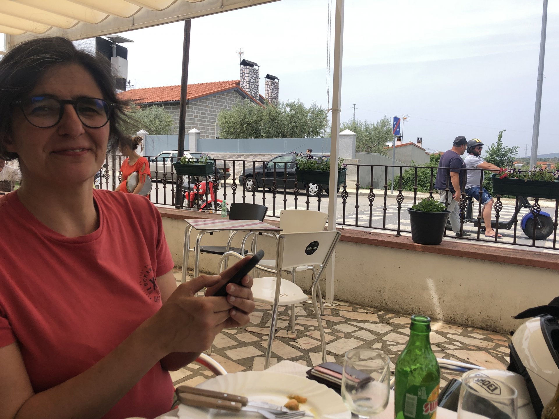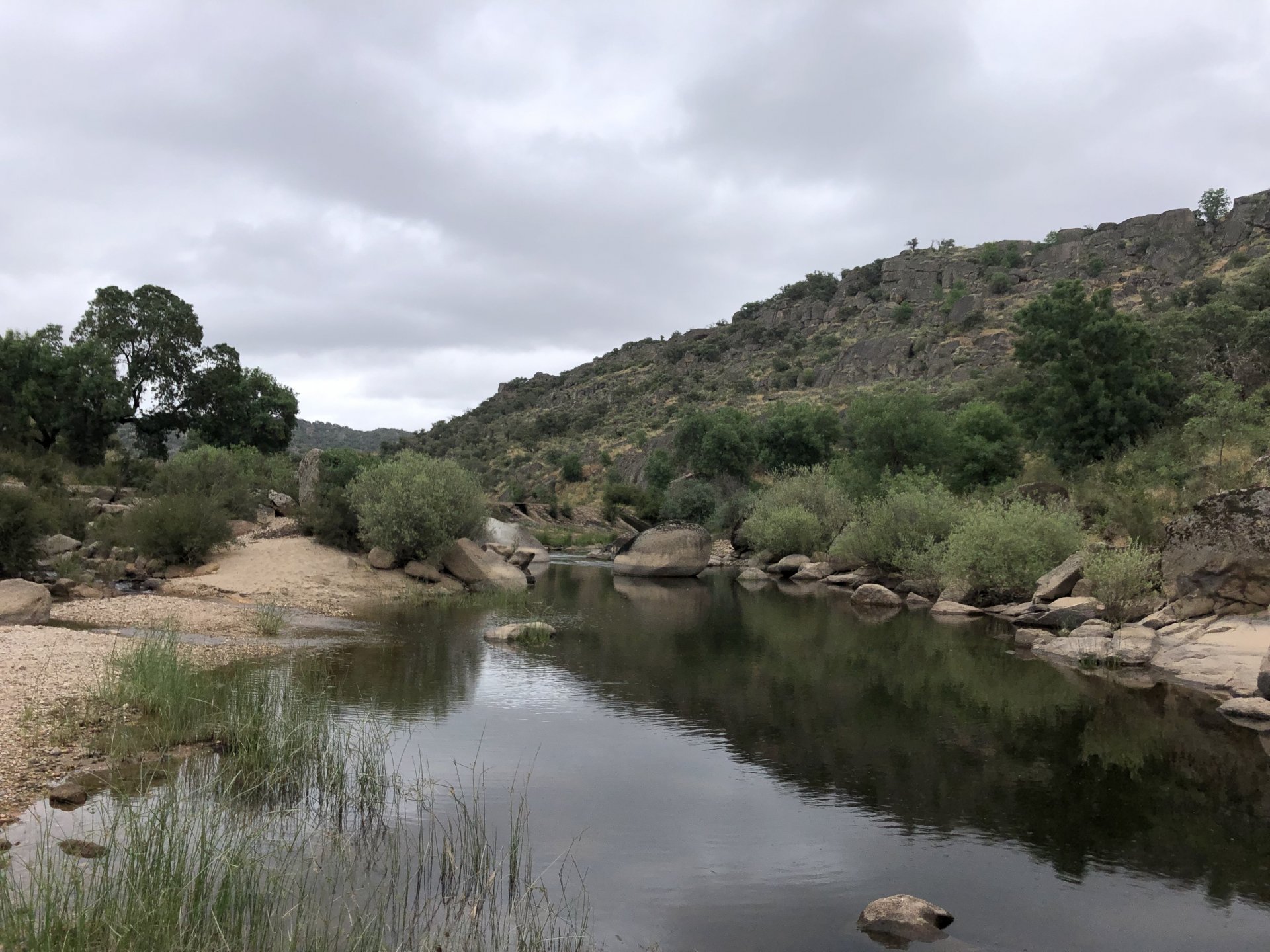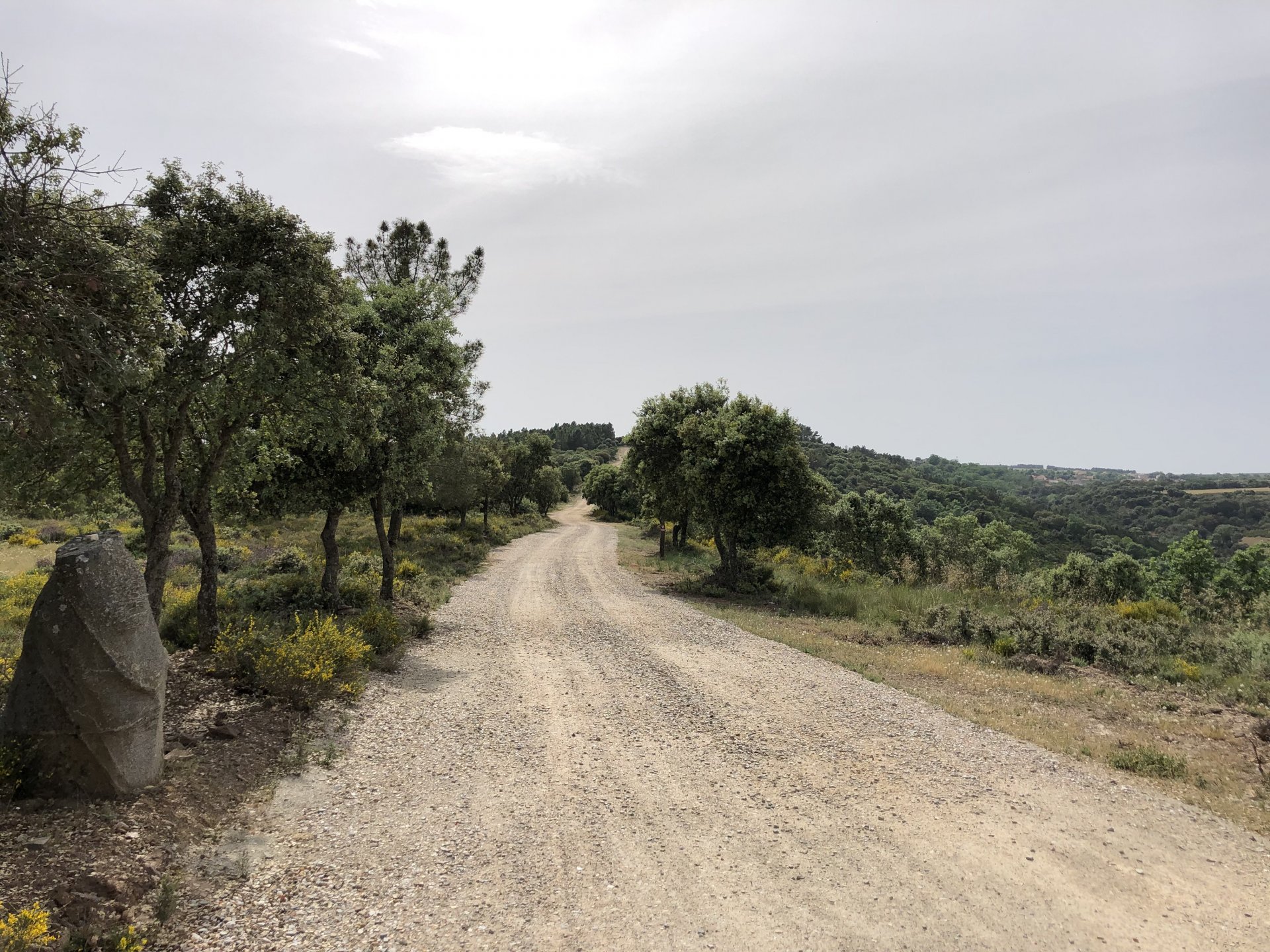 The next day we wake up, put up with an annoying hostess yet a little more and have a pretty mediocre breakfast. The simple but tasty bread rolls from the north replaced with a pretentious person serving tasteless crap. I gave the bikes a wipe to get rid of the most apparent muddy rain drops from the previous afternoon's rain, and we set off, stopping in Rosmaninhal to sort out a navigational miscommunication, and again Sofia finds herself making another friend The tiny municipal road from Rosmaninhal through Tegueiro to Segura is only 25km but it's amazing, and I love it. It's quite narrow so that an average light truck doesn't leave much space for anything else, but it's nice tarmac, often broken in places, with patches of dirt and broken road thrown in. If there was to be a road for trail bikes or supermotos this would be it. I could spend an afternoon riding back and forward there The views couldn't be more different to the previous days' locations up in Trás os Montes and High Douro: Extreme heat and overloaded trucks will do this to tarmac. We got to Segura safe and sound, and went to take a look at the Rio Erges, that's Spain on the other side of the water We started by heading back on the same lovely road we came in before, and I tried to stop for a picture in similar style to the one I took the first time I was there, except the first time I was by myself and at 40º, today with Sofia it was about 18 or 20º and about to rain. I like these worn out by time road marks. Stopped at Nisa for a lunch snack, and Sofia was delighted and envious that the local vet has a parking place reserved for his clients' This Roman bridge has been abandoned from use, but clearly strong enough to handle any load, it's just that the modern two lane road built 50 meters to the side doesn't suit it anymore. It's a shame. The plan was to go home to Ericeira from there, but plans change and instead we made way to Estremoz and then Alter do Chão to sleep in a lovely little hotel built in an old monastery. I ´ve put pictures of all these places before, and sadly took none this time. Dinner in a tiny cafe in Alentejo made up for the previous night's disgrace with a wonderful typical treat, no pictures of that either as the phone was left in the room. Bikes slept soundly inside an old warehouse belonging to the monastery, and after a later than ideal breakfast we were off to go home to the coast. No motorways were meant to be taken, and we did just that. Rode through lovely Alentejo plains and oaks It was starting to warm up when we stopped in Avis for a coffee and a look around: Tiny roads turned to 5 or 6km of dirt road, I had been through there before but I never remember what the surface is like unless it's properly dreadful. Sofia didn't back off and the Speed Triple sailed through smoothly, stopping halfway to look at a stream As we approached Lisbon, we started seeing a lot of bikes, and a lot of foreign ones too. On a short stop we met with some Welsh bikers returning home from watching the Superbikes at the Estoril (Lisbon area). They were riding back to Santander via inner roads, and seemed to be enjoying it immensely, in their late 60s or mid 70s. Someone got really happy from talking to UK people After that, we rode home almost non stop, it was the end of a nice few days mostly filled with wonderful northern Portuguese scenery.2 points
