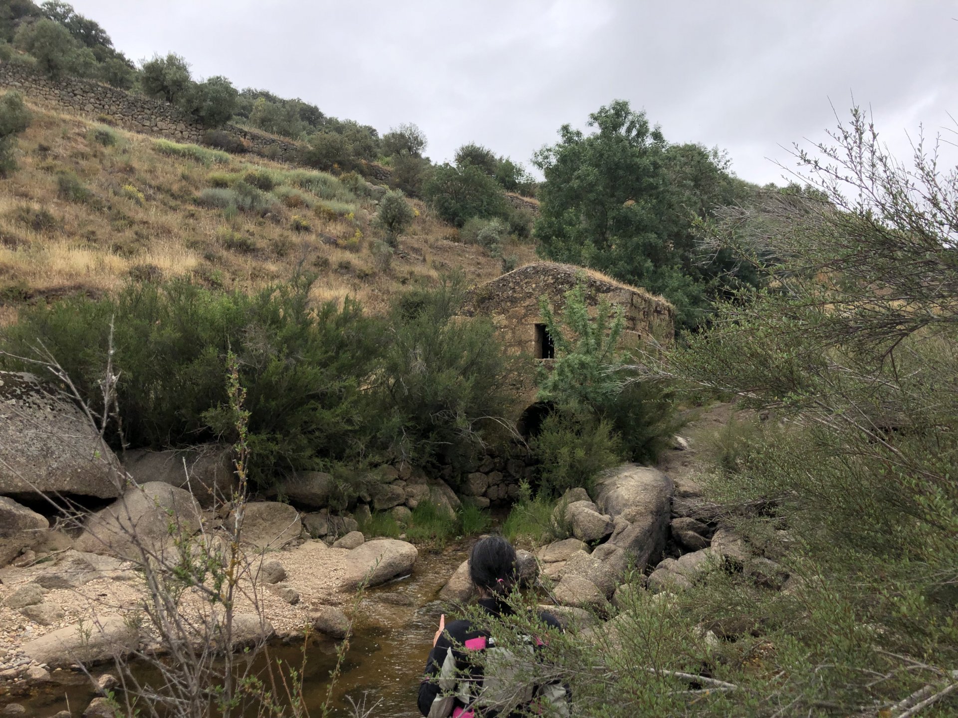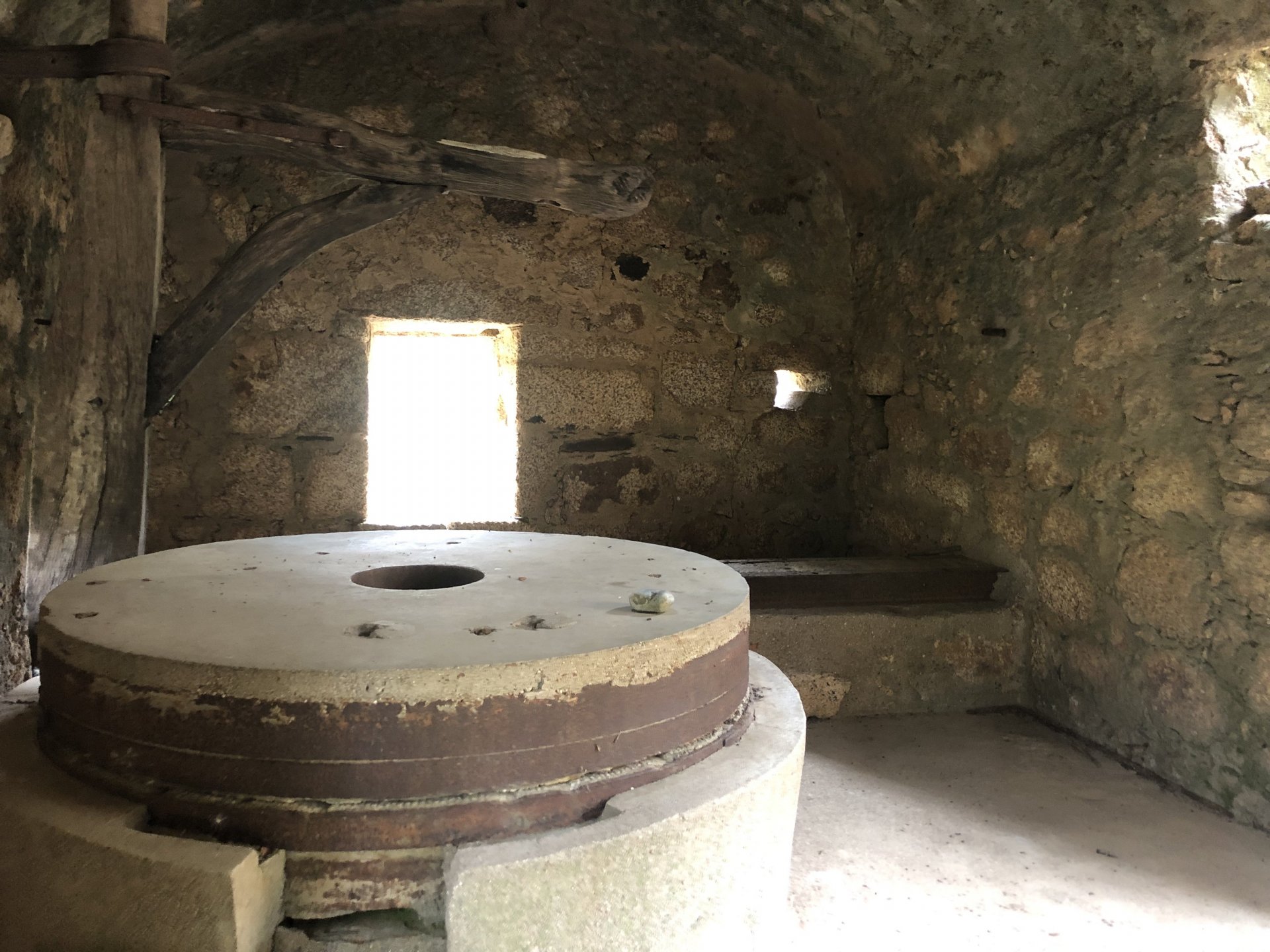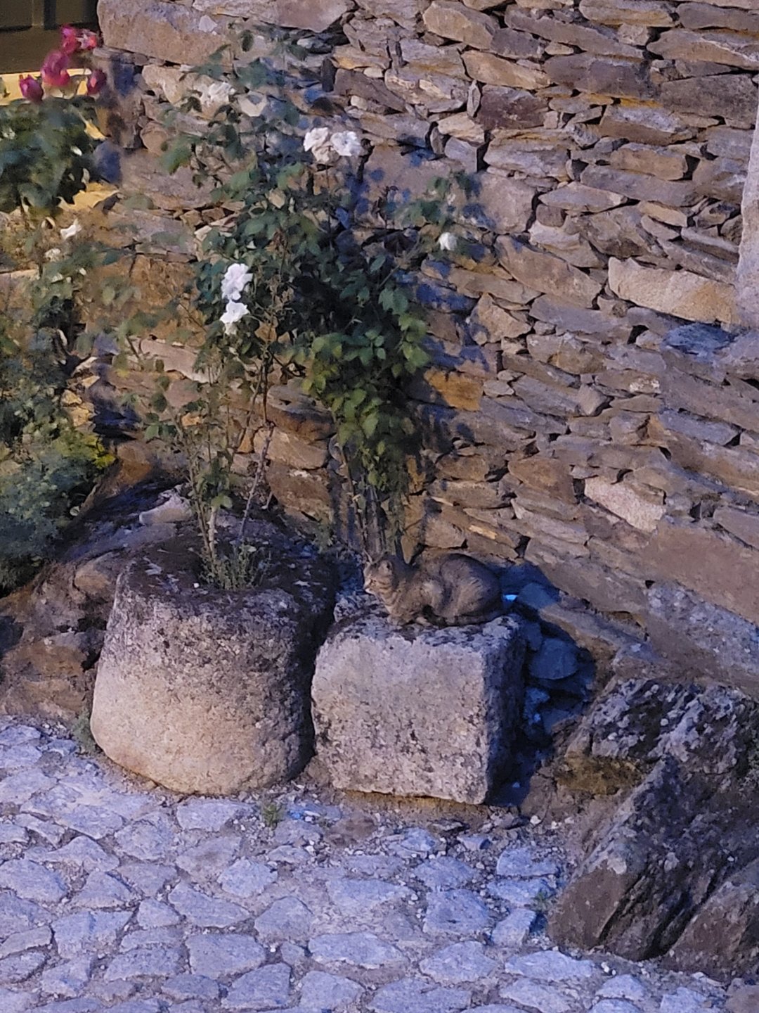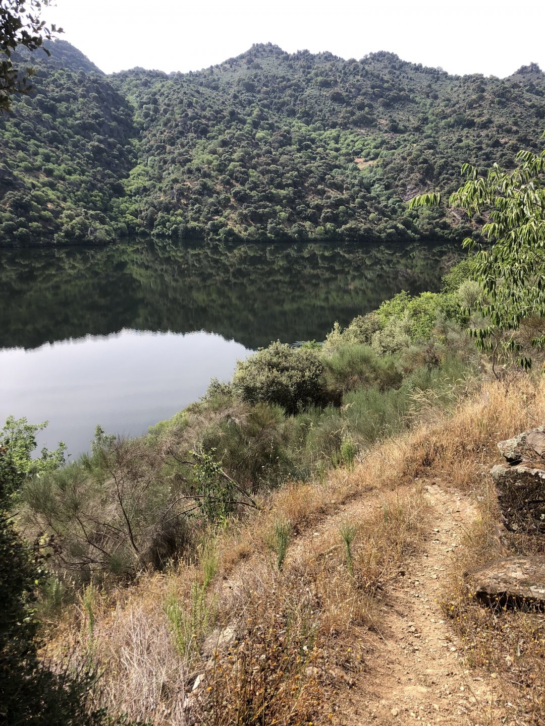 Continuing, we woke up to a warm morning in Freixo de Espada à Cinta, stopped by the local pharmacy for some chapstick, I wanted to get some more potent anti histaminic nasal spray but there's nothing stronger than what I got. One thing that bothered me a bit over the previous days were my polen allergies, whenever we went near blooming olive trees or some kinds of fields it hits hard. 20 or 30 minutes North of where we started, along the N221, we take a detour to Mazouco, and ride down to the riverside to check something quite special. After a short walk down a narrow path leading right next to the water, we find the Cavalo de Mazouco. The engraving of this horse, or probably mare, is probably Europe's oldest open air art work. It's over 10.000 years old and only really noticed by the general public in the 70s. Back then the water level was lower, too. Quite the view, at the little horse's place After a few minutes taking in the sights, with the grey overcast skies kind of ruining the pictures, we made way north, again another 20 or 30 minutes to another view point via back roads: After a km or so of nice smooth dirt road, we reach one of the highlights of the trip, the Carrascalinhos Viewpoint at Fornos. It was impressive both for it's views over the river, but more so because of the number of Vultures and Griffons we saw, never had I seen so many in one place. At over 2 meters wingspan they are impressive when they fly near you. The shadow they cast is like one of a small airplane, we stayed for a while. My phone doesn't make them justice, but here it goes anyway. Being sat on a rock for a while, bugs almost instantly started crawling over me, like this weirdly colored beetle and a tiny caterpillar that was put back onto some vegetation. Next to Penedo Durão, the viewpoint of Carrascalinho is the other obligatory stop if you're passing by this area. The N221 from Miranda do Douro all the way to Barca de Alva a must, with all it's little detours. We headed north yet again, getting out of the more hilly Douro and towards a more typical Trás os Montes landscape, a hilly Altiplano with huge rocks thrown all over the place. Another stop at Bemposta, this time for lunch. We had a little look over the viewpoint, surrounded by houses appearing to be older than time, and stopped at a local café. I wanted Sofia to be amongst the locals so we went somewhere with a few construction trucks parked in front, the accent they speak with here is incredibly different to what Sofia is used to in the Lisbon area it's funny. In fact, Miranda do Douro has it's own language, called Mirandês, with it 's own vocabulary and taught as a second language in the area. In some villages, it is still a first language amongst older people. Hearty portions in this part of the country, I went inside to order and the girl was a little shocked that both of us would share a portion. I have no pictures of said food, but we left with a full stomach. Had a few laughs with the guys there, and were ready for a full afternoon. Half an hour of riding, and another stop, this time at the preserved village of Picote. The place has been meticulously restored and was a pleasure to walk through, even the fields' entries were nice, this didn't really feel like Portugal as it's usually a bit rougher. A great place to see and maybe next time a sleepover location. It was getting proper hot though, at maybe 33 or 35º. Quite fun to see all the signs in Mirandês instead of Portuguese. Eventually, we rode off and arrived at Miranda do Douro, parked in the old town next to a shiny scooter and went to buy some souvenirs. Miranda do Douro is a lovely place, I shall stay longer next time. From Miranda do Douro we went to Paradela, just a 15 or 20 minute ride but it's the place where the river enters Portugal, we went and visited the northernmost place in this trip. Getting there it was proper hot, so stopped for an icecream, some water and a coffee at a local country style café. Sofia made a sensation with the café owner and her mother. They have family everywhere, near where I'm from, where Sofia lives, all over Portugal, and took great pride in showing off her husband's ZZR1100 on top of which they went to France and toured around a few years ago. Northern hospitality: We left the Speed Triple behind and rode the 4 or 5km dirt road to the last Douro lookout on the GS. It was quite hot and dusty, the loose gravel wouldn't have been much fun on the Triumph. A nice place to visit. The dam in the picture above is still in the spanish side, flowing over a trickle of water it might or might not be one of the reasons much of the north is in a draught currently. We said goodbye to the border and rode heading to Alfandega da Fé. The weather was quite hot but threatening to rain, progress now was faster and the roads allowed a constant speed over 100kmh to be easily done. Quick stop to take a picture of an ancient harvester, just casually parked in the middle of a field: A quick stop in Vimioso to figure out where to sleep, and realize the landscape had changed dramatically in only a few kms We rode into Morais at around 19:00 I think, after a long day of short rides and amazing scenery. The surprise heat wave made it a little harder than it had to be, but all was cool. Morais is a tiny town and we were to sleep in a small place, the owner showed up to get paid for the room and left us to ourselves, being the only guests and breakfast available on the café across the street we should just close the door behind us in the morning. The bikes splept outside and the big GS made sure the Triumph couldn't be messed with. A little walk around before dinner looking for an ATM, revealed Sr. Morais' old house, the town founder long gone and his place is left there waiting for someone to do something with it. We had dinner in a small bbq place, inside as the mosquitoes were relentless outside. We stayed in and drank cold wine and chatted almost till they we