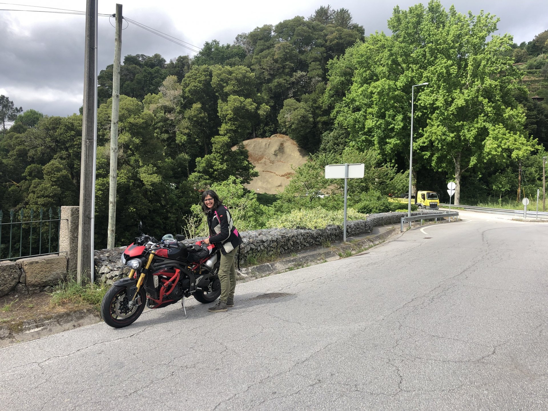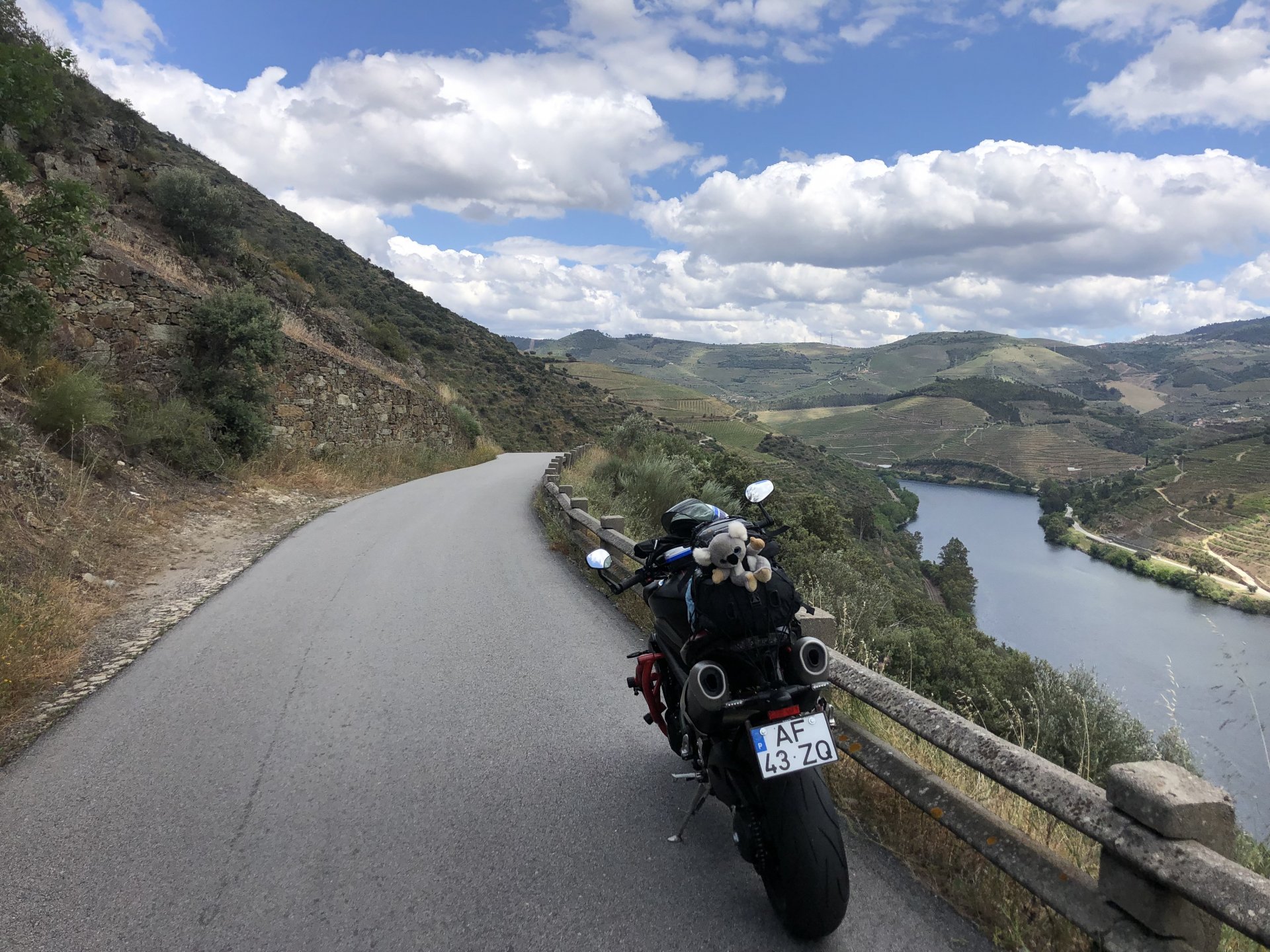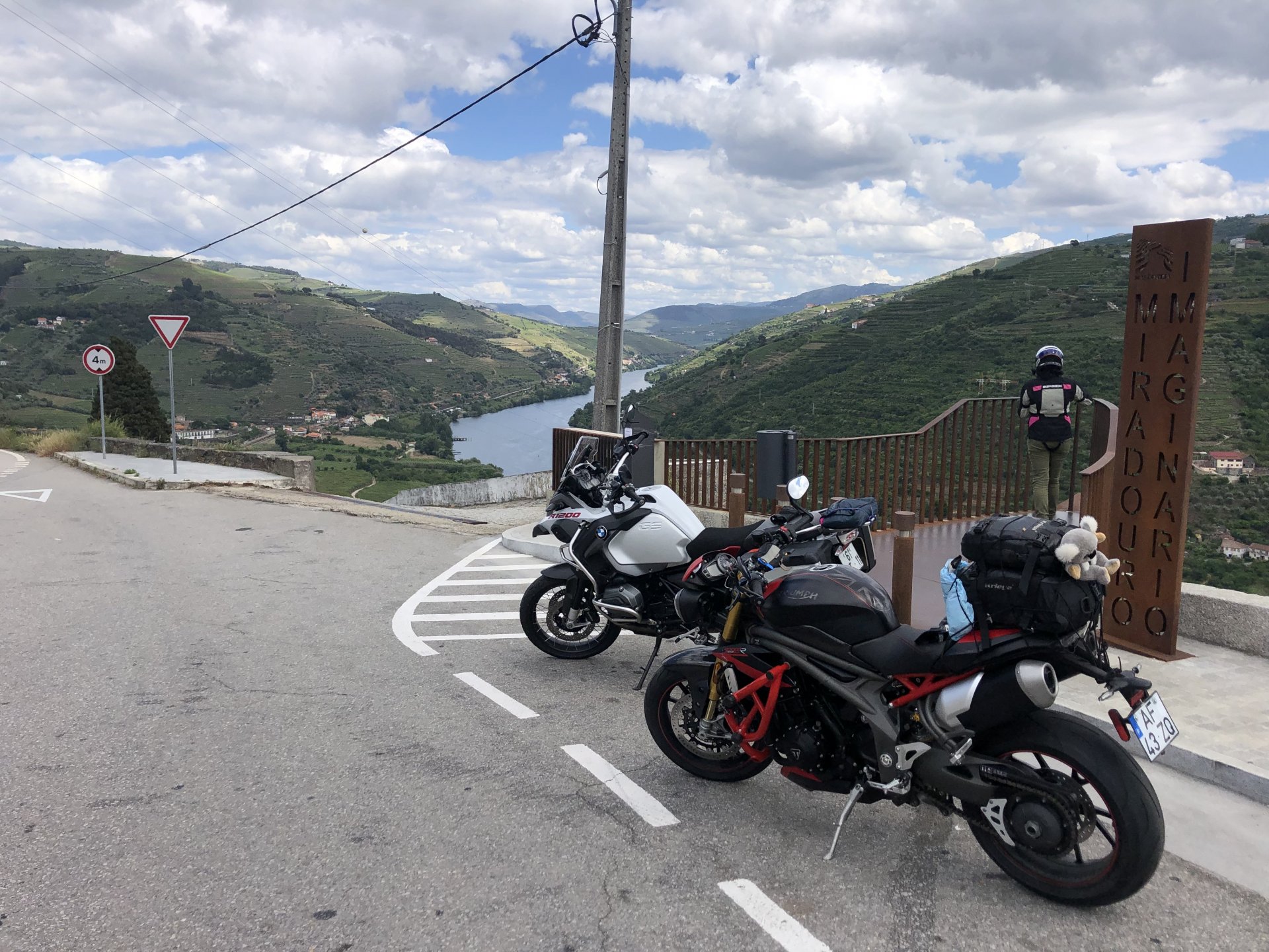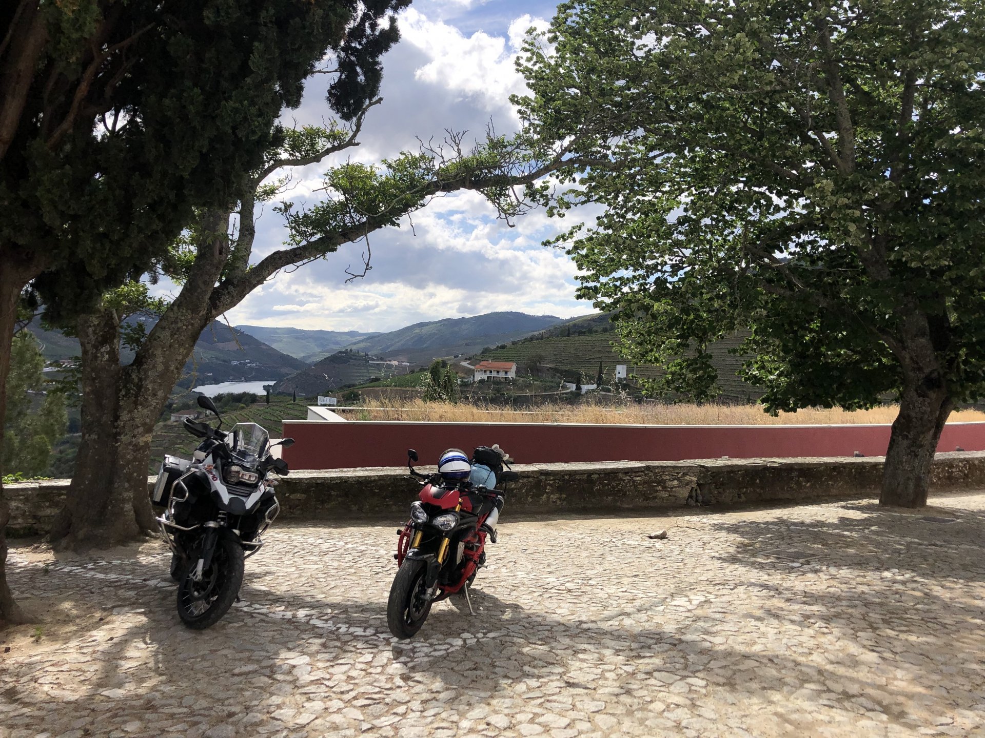 A few days ago me and Sofia decided to go for a ride along the Douro river, following it all the way from Porto (where it reaches the Atlantic ocean) until the border with Spain a little north of Miranda do Douro where it enters Portugal. The Douro is the oldest demarcated wine making region in the world, the river and the weather make great grapes. The land is very steep and mountain like, so farmers have been making steps on hills to make use of every single square meter they can get a plant in, this practice makes for unique landscapes. The weather here varies from extreme heat in the summer to freezing cold in the winter, the soil is arid and rocky, which makes for a hard living if you're a farmer. The locals are used to tough conditions and are built like their houses, not big but resilient, they show a hard exterior but as soon as you say hello they're nothing but smiles and hospitality. Portugal is a tiny country, but the high Douro and Trás os Montes are a world apart when compared to the wide open south. Trás os Montes is the name of the region that is more or less the most northern eastern square of Portugal, it is translated to "Behind the Hills". The roads are amazing, I try to keep out of the main ones and if you ride an easy to ride bike you can't go wrong with that, having said that progress can be slow if you stop in a lot of scenic points like we did. On this trip it took us 3 days of leisurely touring to get to somewhere we could easily reach in one day on the same roads, but the point of this trip was to enjoy the region, the roads, the views, the food and wine, and stay in some amazing places taking everything in. This is my report of it, I'm sure Sofia will join in later with some pictures of her own. The day started early, by 09:00 we got the only 15km of motorway we would use for the week out of the way and quickly stopped for breakfast on a small bakery by the road, getting into the swing of things and the rhythm of our traveling. Some very nice bread, fresh orange juice and a nice expresso, couldn't resist a second expresso and a little sweet though. We are following the N108 from Porto until Peso da Régua, 5 minutes after breakfast I take us on a detour out of the main road and climb Serra da Boneca, 2 or 300 meters of gravel road lead to the first view point, this is 20 minutes away from busy Porto: Back on the road and crossing a village riding down the hill back to the N road, we stop by a beautiful old farm house: The little "levada" is a tiny irrigation channel built next to the wall all the way down, they carry water through tens of miles that way Next: DRAMA! A few kms later, and Sofia got a strange feeling of sliding from the back of the Triumph, and then approaching a roundabout it stopped! Looking at it fuel was flowing freely out from under the tank when you hit the starter but stopped with everything off. Clearly a fuel line had come off, but I couldn't see it. The tool kit had lost the allen key that you need to lift the tank and I only carry torx for my bike. It could be a disaster, but spirits were still high. I called a nearby shop and dealer, which I found on google maps being only 5km away, their pictures on google made me confident they were the right place to get anything going. Sofia went to work taking the luggage off. 20 minutes later and the Triumph's tow arrived, a little push got it over the ramp that is more used to dirt bikes and in a few minutes we were on the way. Once there the Speed Triple went straight in and they went to work with it. I made myself busy getting out of their face and made a photo report of the shop. It turned out to be a very interesting shop and dealer with some surprising bikes there. This is the heart of dirt bikes in Portugal, the dirt season is coming to an end with the summer dust, lots of quads in for repairs and rebuilds, let me take you on a tour of the place. The shop's garage, all sorts of quads in need of help: An old Sachs V5 with the forks being rebuilt, it's a common daily ride in this parts: Supermoto quad, they race these in karting tracks, some use plated ones to have fun on roundabouts too ... An old CBR600, with a nasty paint job and what must be an incredibly loud exhaust Xstreme Motorsport quad, it's for tiny kids but still smaller than it appears on the picture DT50 engine being built, it's not going to be a 50cc anymore ... Artwork A nicely rebuilt Sachs V5, 5 speeds in a 50cc made this a fast bike in Portugal back when in England you were riding big twins Up on the street level we went to have a look at the dealership part of the businesss, and it threw in a few surprises: Sofia trying out a tiny but impeccable DT50LC, the only pink bike a guy could have. One of the most sold bikes in Portugal over the years. They're here Mawsley, they're in Portugal! Mawsley? Offroad equipment section Kid's bike section, cuteness overload: Big bike section Pete would love this: And an extra big one: And now for special bikes, first a 2 stroke race bike for the local street races Something odd: And two really cool old Harleys A little later and the guilty part was found, the red clip doesn't clip into place anymore, and allows the thing to come out with pressure. They obviously had none in stock so reverted to a little improvisation and a couple of cleverly tightened zip ties now hold the clip from opening. Back on the road after a wash to get all the fuel stains off, which pleased Sofia as the bike was filthy from the previous day's rain getting north. Back on the road, the two hours delay was annoying but all turned into quite a fun experience. A quick stop for a snack and we're back to sightseeing, quick stop in Mesão Frio: We rode straight through Peso da Régua, it was quite busy with tourists and we wanted to make a little time. After Peso da Régua we got out of the N108 but continued on the north bank of the river, heading to Covelinhas and São Leonardo da Galafura via tiny roads. Sofia had b