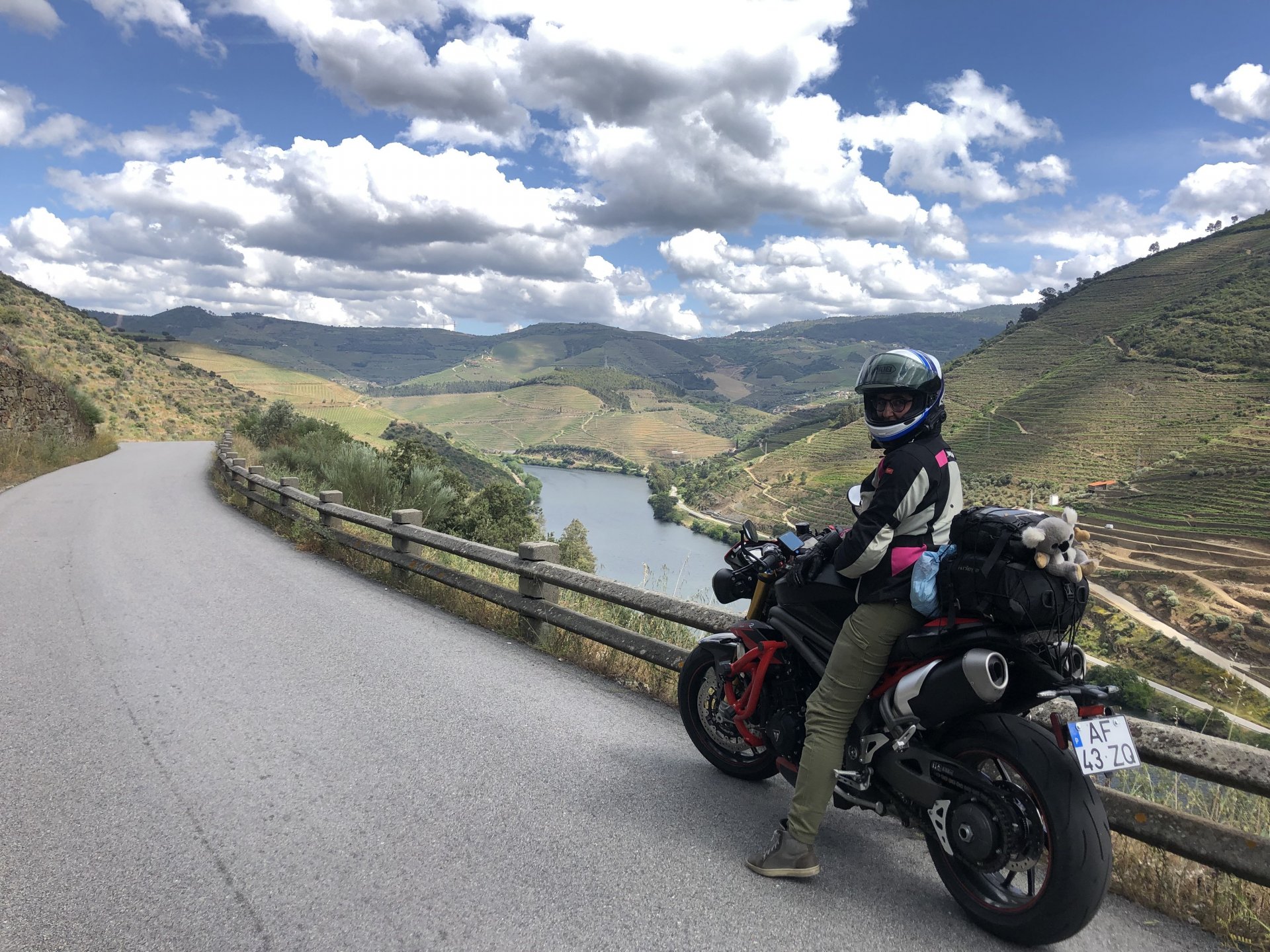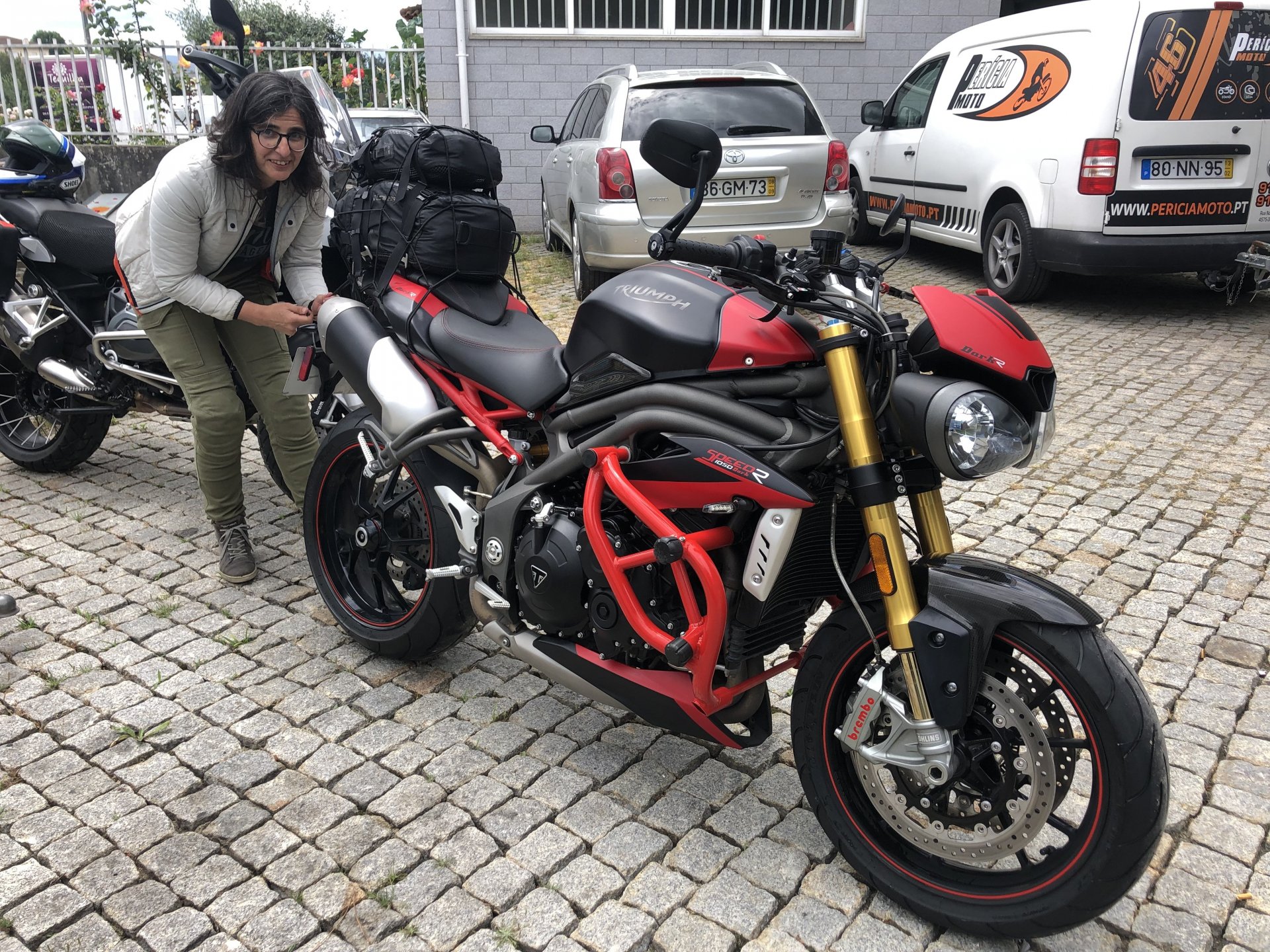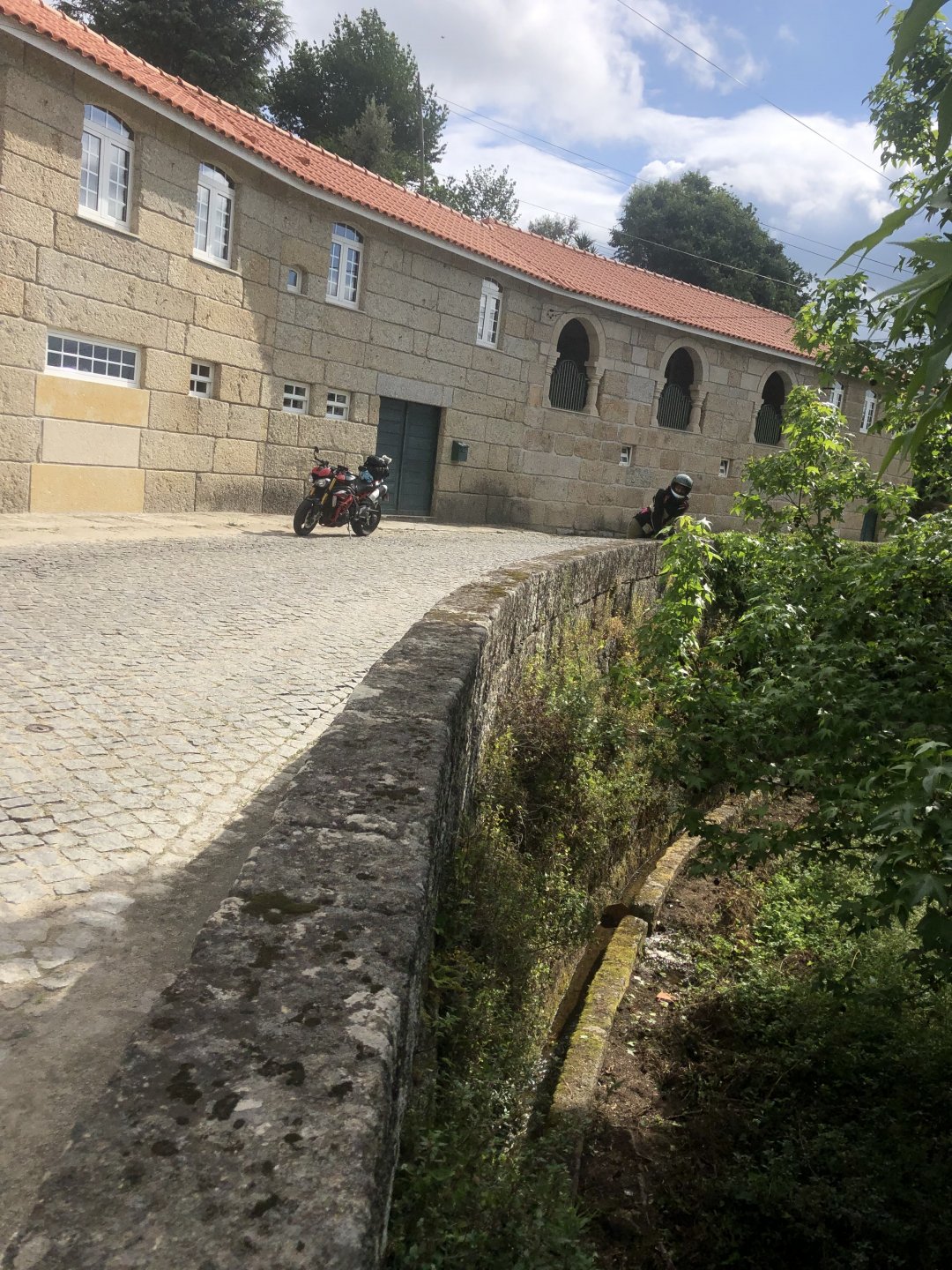 A few days ago me and Sofia decided to go for a ride along the Douro river, following it all the way from Porto (where it reaches the Atlantic ocean) until the border with Spain a little north of Miranda do Douro where it enters Portugal. The Douro is the oldest demarcated wine making region in the world, the river and the weather make great grapes. The land is very steep and mountain like, so farmers have been making steps on hills to make use of every single square meter they can get a plant in, this practice makes for unique landscapes. The weather here varies from extreme heat in the summer to freezing cold in the winter, the soil is arid and rocky, which makes for a hard living if you're a farmer. The locals are used to tough conditions and are built like their houses, not big but resilient, they show a hard exterior but as soon as you say hello they're nothing but smiles and hospitality. Portugal is a tiny country, but the high Douro and Trás os Montes are a world apart when compared to the wide open south. Trás os Montes is the name of the region that is more or less the most northern eastern square of Portugal, it is translated to "Behind the Hills". The roads are amazing, I try to keep out of the main ones and if you ride an easy to ride bike you can't go wrong with that, having said that progress can be slow if you stop in a lot of scenic points like we did. On this trip it took us 3 days of leisurely touring to get to somewhere we could easily reach in one day on the same roads, but the point of this trip was to enjoy the region, the roads, the views, the food and wine, and stay in some amazing places taking everything in. This is my report of it, I'm sure Sofia will join in later with some pictures of her own. The day started early, by 09:00 we got the only 15km of motorway we would use for the week out of the way and quickly stopped for breakfast on a small bakery by the road, getting into the swing of things and the rhythm of our traveling. Some very nice bread, fresh orange juice and a nice expresso, couldn't resist a second expresso and a little sweet though. We are following the N108 from Porto until Peso da Régua, 5 minutes after breakfast I take us on a detour out of the main road and climb Serra da Boneca, 2 or 300 meters of gravel road lead to the first view point, this is 20 minutes away from busy Porto: Back on the road and crossing a village riding down the hill back to the N road, we stop by a beautiful old farm house: The little "levada" is a tiny irrigation channel built next to the wall all the way down, they carry water through tens of miles that way Next: DRAMA! A few kms later, and Sofia got a strange feeling of sliding from the back of the Triumph, and then approaching a roundabout it stopped! Looking at it fuel was flowing freely out from under the tank when you hit the starter but stopped with everything off. Clearly a fuel line had come off, but I couldn't see it. The tool kit had lost the allen key that you need to lift the tank and I only carry torx for my bike. It could be a disaster, but spirits were still high. I called a nearby shop and dealer, which I found on google maps being only 5km away, their pictures on google made me confident they were the right place to get anything going. Sofia went to work taking the luggage off. 20 minutes later and the Triumph's tow arrived, a little push got it over the ramp that is more used to dirt bikes and in a few minutes we were on the way. Once there the Speed Triple went straight in and they went to work with it. I made myself busy getting out of their face and made a photo report of the shop. It turned out to be a very interesting shop and dealer with some surprising bikes there. This is the heart of dirt bikes in Portugal, the dirt season is coming to an end with the summer dust, lots of quads in for repairs and rebuilds, let me take you on a tour of the place. The shop's garage, all sorts of quads in need of help: An old Sachs V5 with the forks being rebuilt, it's a common daily ride in this parts: Supermoto quad, they race these in karting tracks, some use plated ones to have fun on roundabouts too ... An old CBR600, with a nasty paint job and what must be an incredibly loud exhaust Xstreme Motorsport quad, it's for tiny kids but still smaller than it appears on the picture DT50 engine being built, it's not going to be a 50cc anymore ... Artwork A nicely rebuilt Sachs V5, 5 speeds in a 50cc made this a fast bike in Portugal back when in England you were riding big twins Up on the street level we went to have a look at the dealership part of the businesss, and it threw in a few surprises: Sofia trying out a tiny but impeccable DT50LC, the only pink bike a guy could have. One of the most sold bikes in Portugal over the years. They're here Mawsley, they're in Portugal! Mawsley? Offroad equipment section Kid's bike section, cuteness overload: Big bike section Pete would love this: And an extra big one: And now for special bikes, first a 2 stroke race bike for the local street races Something odd: And two really cool old Harleys A little later and the guilty part was found, the red clip doesn't clip into place anymore, and allows the thing to come out with pressure. They obviously had none in stock so reverted to a little improvisation and a couple of cleverly tightened zip ties now hold the clip from opening. Back on the road after a wash to get all the fuel stains off, which pleased Sofia as the bike was filthy from the previous day's rain getting north. Back on the road, the two hours delay was annoying but all turned into quite a fun experience. A quick stop for a snack and we're back to sightseeing, quick stop in Mesão Frio: We rode straight through Peso da Régua, it was quite busy with tourists and we wanted to make a little time. After Peso da Régua we got out of the N108 but continued on the north bank of the river, heading to Covelinhas and São Leonardo da Galafura via tiny roads. Sofia had b