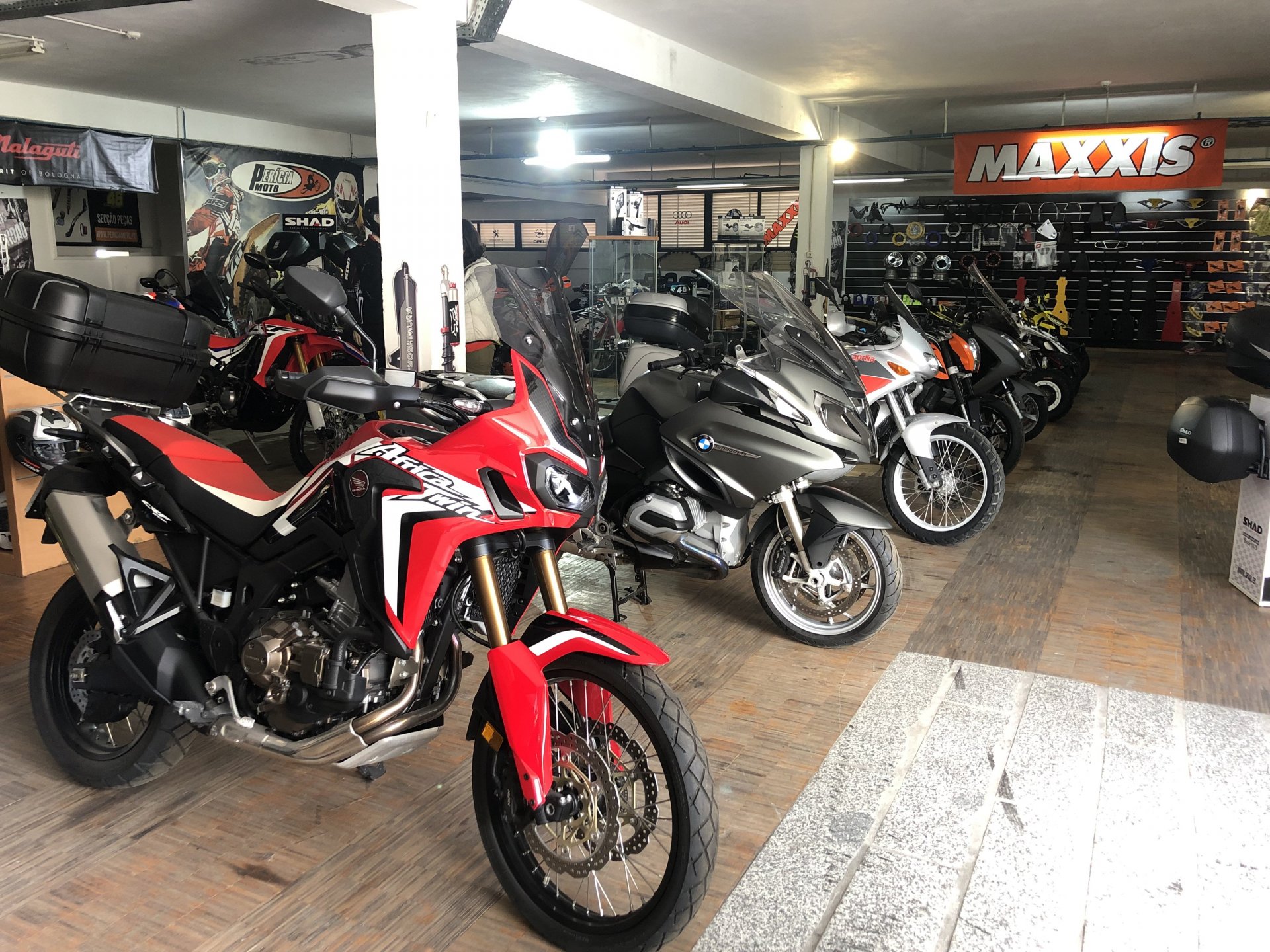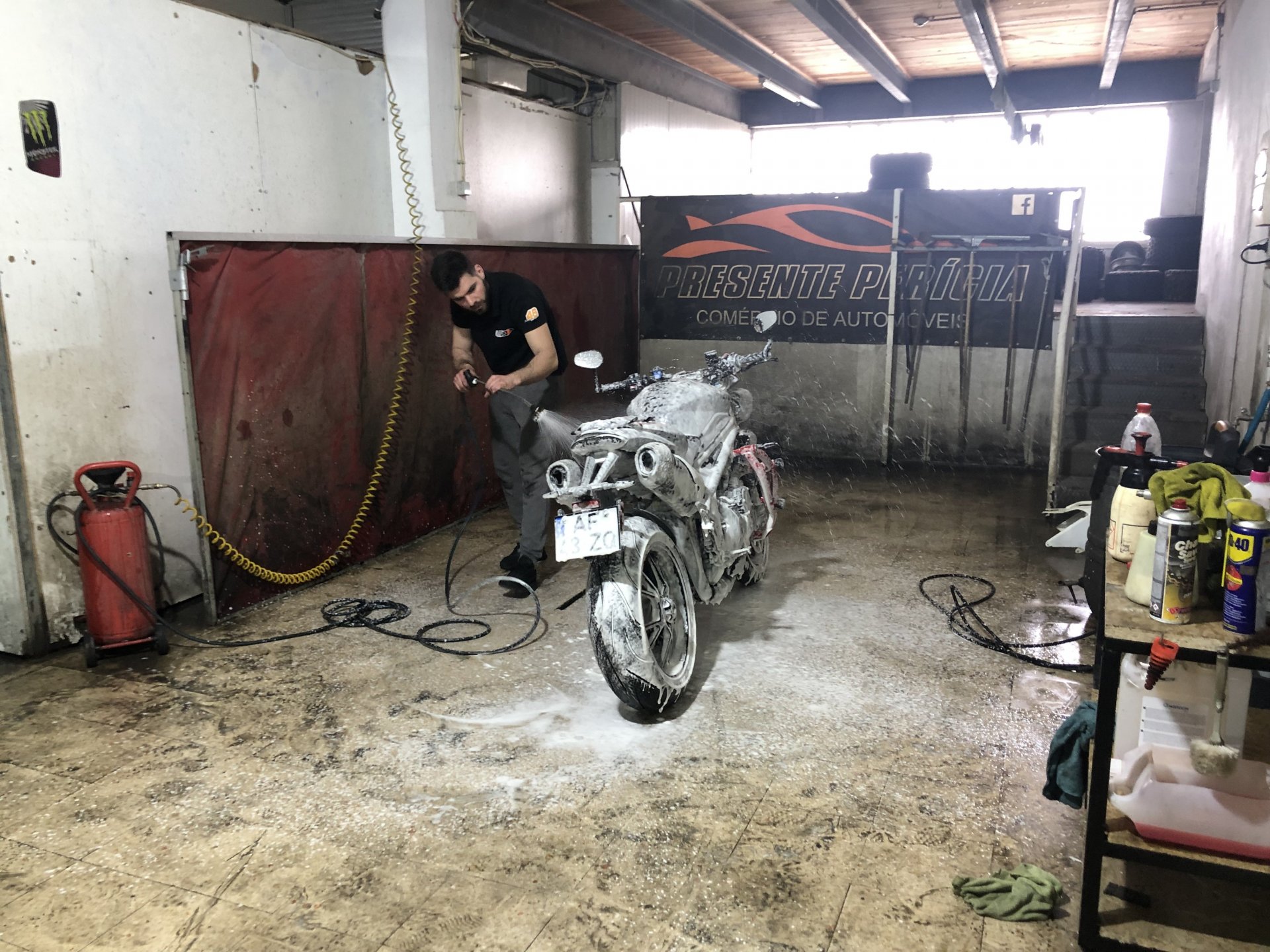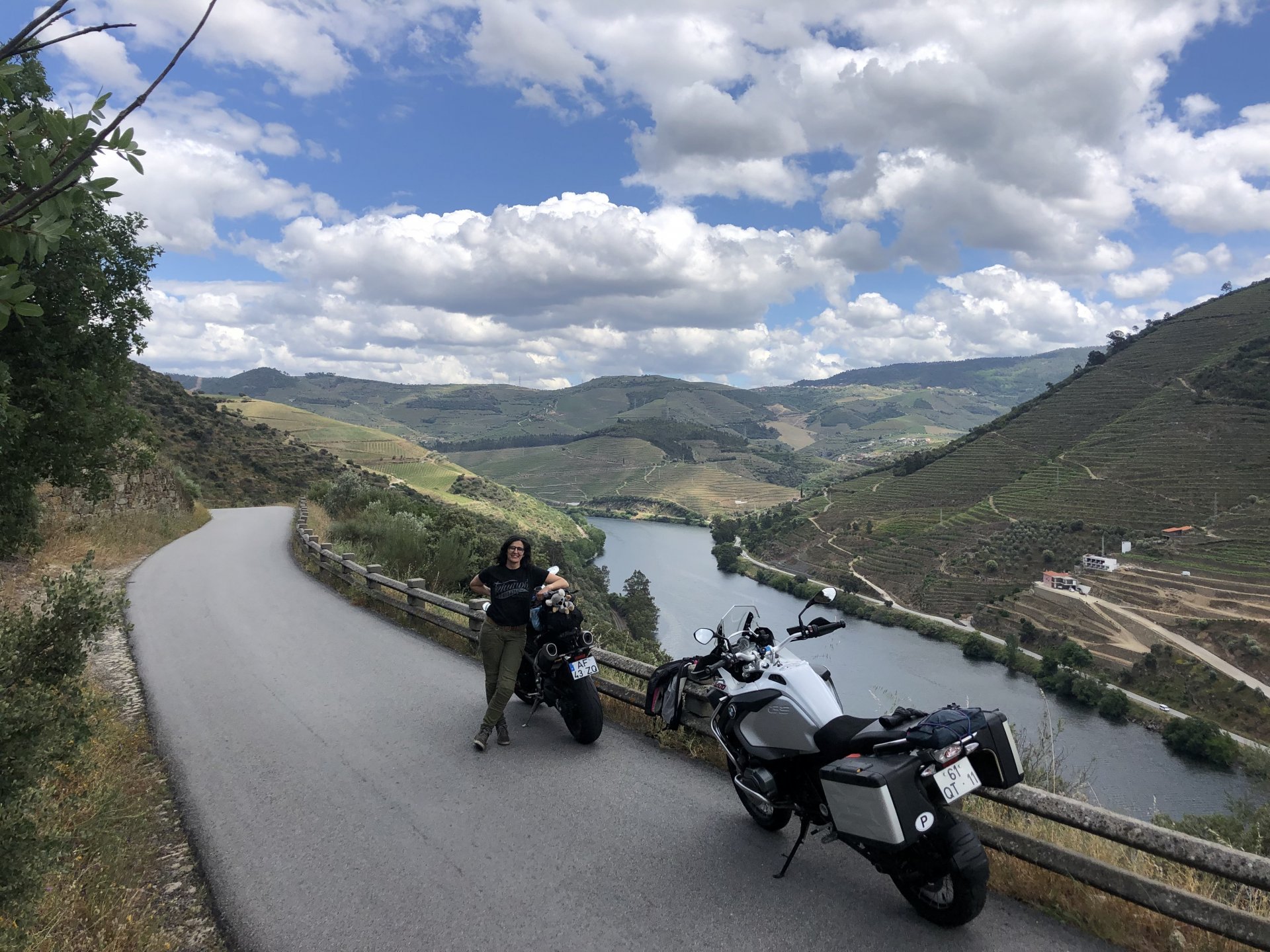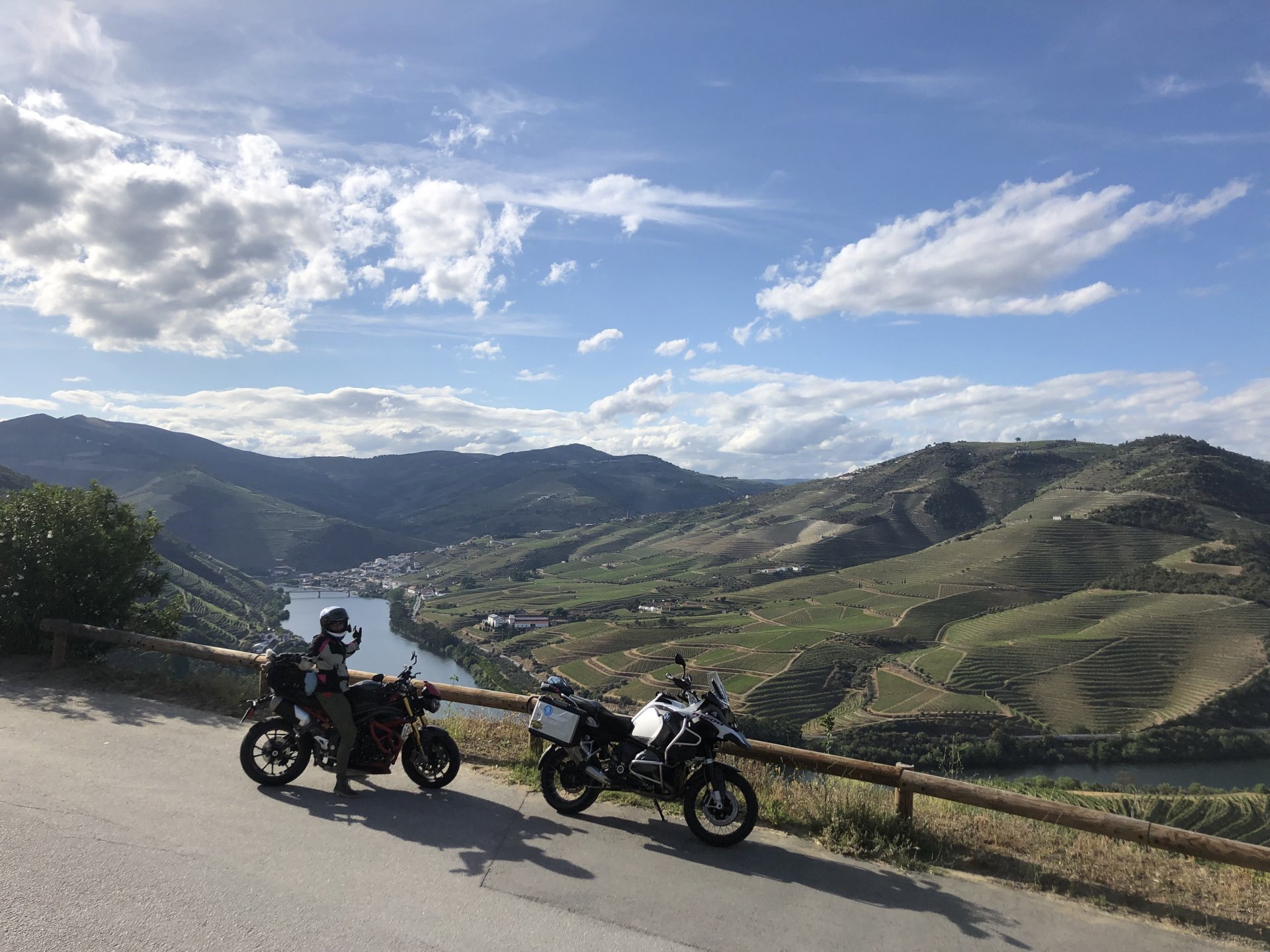 A few days ago me and Sofia decided to go for a ride along the Douro river, following it all the way from Porto (where it reaches the Atlantic ocean) until the border with Spain a little north of Miranda do Douro where it enters Portugal. The Douro is the oldest demarcated wine making region in the world, the river and the weather make great grapes. The land is very steep and mountain like, so farmers have been making steps on hills to make use of every single square meter they can get a plant in, this practice makes for unique landscapes. The weather here varies from extreme heat in the summer to freezing cold in the winter, the soil is arid and rocky, which makes for a hard living if you're a farmer. The locals are used to tough conditions and are built like their houses, not big but resilient, they show a hard exterior but as soon as you say hello they're nothing but smiles and hospitality. Portugal is a tiny country, but the high Douro and Trás os Montes are a world apart when compared to the wide open south. Trás os Montes is the name of the region that is more or less the most northern eastern square of Portugal, it is translated to "Behind the Hills". The roads are amazing, I try to keep out of the main ones and if you ride an easy to ride bike you can't go wrong with that, having said that progress can be slow if you stop in a lot of scenic points like we did. On this trip it took us 3 days of leisurely touring to get to somewhere we could easily reach in one day on the same roads, but the point of this trip was to enjoy the region, the roads, the views, the food and wine, and stay in some amazing places taking everything in. This is my report of it, I'm sure Sofia will join in later with some pictures of her own. The day started early, by 09:00 we got the only 15km of motorway we would use for the week out of the way and quickly stopped for breakfast on a small bakery by the road, getting into the swing of things and the rhythm of our traveling. Some very nice bread, fresh orange juice and a nice expresso, couldn't resist a second expresso and a little sweet though. We are following the N108 from Porto until Peso da Régua, 5 minutes after breakfast I take us on a detour out of the main road and climb Serra da Boneca, 2 or 300 meters of gravel road lead to the first view point, this is 20 minutes away from busy Porto: Back on the road and crossing a village riding down the hill back to the N road, we stop by a beautiful old farm house: The little "levada" is a tiny irrigation channel built next to the wall all the way down, they carry water through tens of miles that way Next: DRAMA! A few kms later, and Sofia got a strange feeling of sliding from the back of the Triumph, and then approaching a roundabout it stopped! Looking at it fuel was flowing freely out from under the tank when you hit the starter but stopped with everything off. Clearly a fuel line had come off, but I couldn't see it. The tool kit had lost the allen key that you need to lift the tank and I only carry torx for my bike. It could be a disaster, but spirits were still high. I called a nearby shop and dealer, which I found on google maps being only 5km away, their pictures on google made me confident they were the right place to get anything going. Sofia went to work taking the luggage off. 20 minutes later and the Triumph's tow arrived, a little push got it over the ramp that is more used to dirt bikes and in a few minutes we were on the way. Once there the Speed Triple went straight in and they went to work with it. I made myself busy getting out of their face and made a photo report of the shop. It turned out to be a very interesting shop and dealer with some surprising bikes there. This is the heart of dirt bikes in Portugal, the dirt season is coming to an end with the summer dust, lots of quads in for repairs and rebuilds, let me take you on a tour of the place. The shop's garage, all sorts of quads in need of help: An old Sachs V5 with the forks being rebuilt, it's a common daily ride in this parts: Supermoto quad, they race these in karting tracks, some use plated ones to have fun on roundabouts too ... An old CBR600, with a nasty paint job and what must be an incredibly loud exhaust Xstreme Motorsport quad, it's for tiny kids but still smaller than it appears on the picture DT50 engine being built, it's not going to be a 50cc anymore ... Artwork A nicely rebuilt Sachs V5, 5 speeds in a 50cc made this a fast bike in Portugal back when in England you were riding big twins Up on the street level we went to have a look at the dealership part of the businesss, and it threw in a few surprises: Sofia trying out a tiny but impeccable DT50LC, the only pink bike a guy could have. One of the most sold bikes in Portugal over the years. They're here Mawsley, they're in Portugal! Mawsley? Offroad equipment section Kid's bike section, cuteness overload: Big bike section Pete would love this: And an extra big one: And now for special bikes, first a 2 stroke race bike for the local street races Something odd: And two really cool old Harleys A little later and the guilty part was found, the red clip doesn't clip into place anymore, and allows the thing to come out with pressure. They obviously had none in stock so reverted to a little improvisation and a couple of cleverly tightened zip ties now hold the clip from opening. Back on the road after a wash to get all the fuel stains off, which pleased Sofia as the bike was filthy from the previous day's rain getting north. Back on the road, the two hours delay was annoying but all turned into quite a fun experience. A quick stop for a snack and we're back to sightseeing, quick stop in Mesão Frio: We rode straight through Peso da Régua, it was quite busy with tourists and we wanted to make a little time. After Peso da Régua we got out of the N108 but continued on the north bank of the river, heading to Covelinhas and São Leonardo da Galafura via tiny roads. Sofia had b