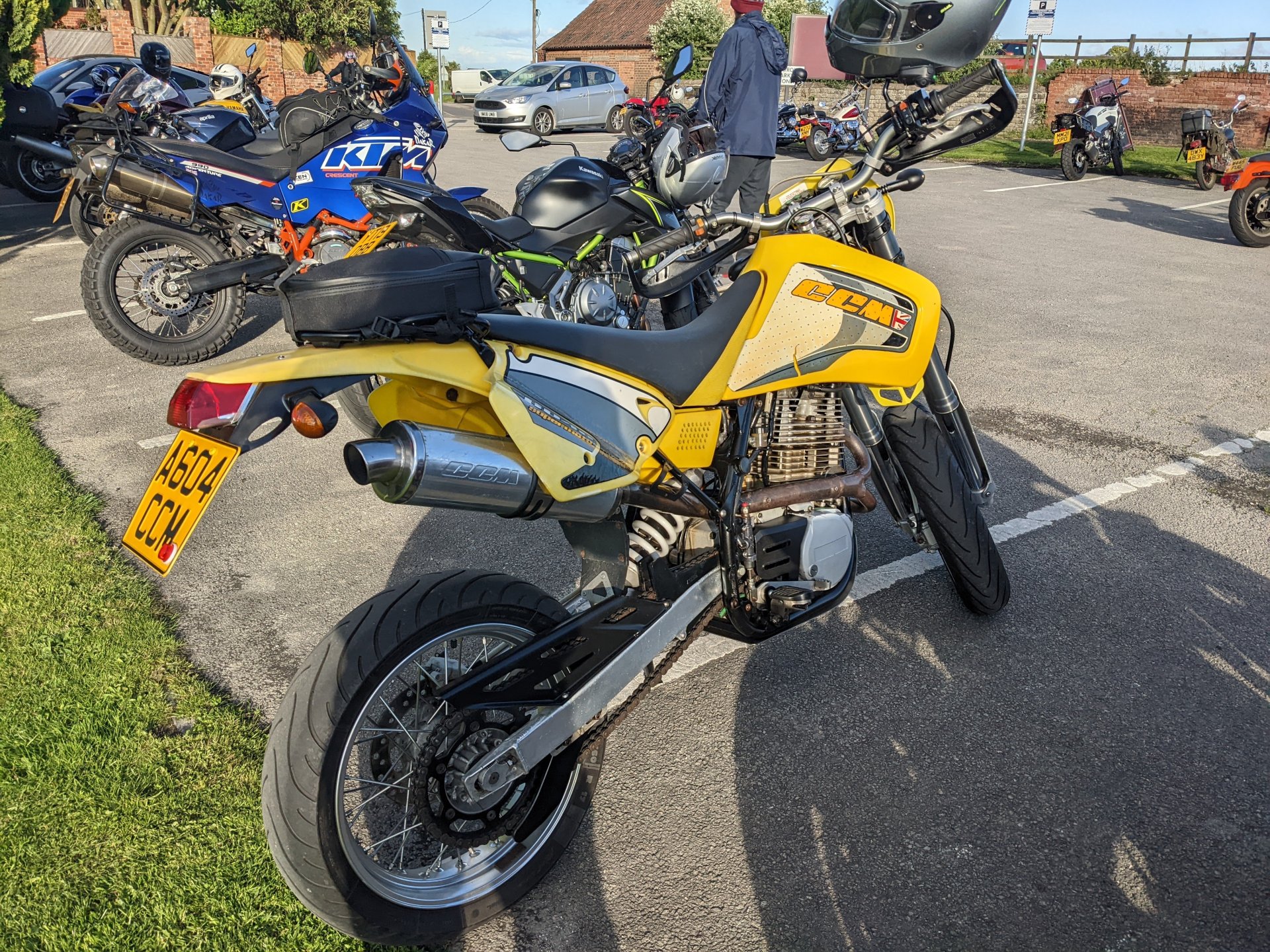 Great pics Reggie.....you need to tell the old man to come on here! He'll feel young again if he does! That's a DR650 motor in that CCM I'd say!1 point