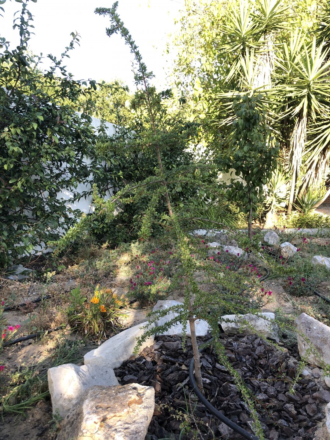 So today my tree was brought home. Maria picked a handful of Argan nuts off the floor in Morocco, and about 3 years ago I one of them started growing with a little help from myself: Yesterday, aproximately 3 years since it started growing, I wanted to give it a chance to grow and this home is where it belongs. So, using a friend's van I drove it 250km home And it was put on the ground with the help of a stake to help it cope with the high wind here for the first few weeks, and also to help straighten her a little bit. I finished watering when it was already dark and freezing. Also brought 60 new plants to help turn this garden around, so tomorrow is going to be busy gardening.1 point